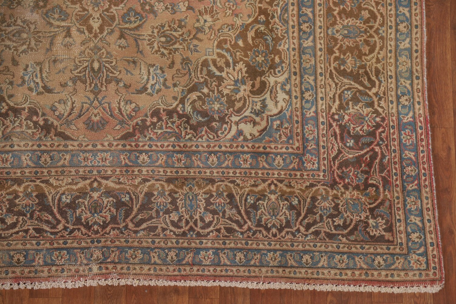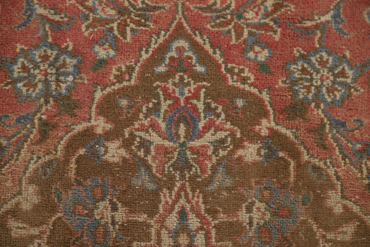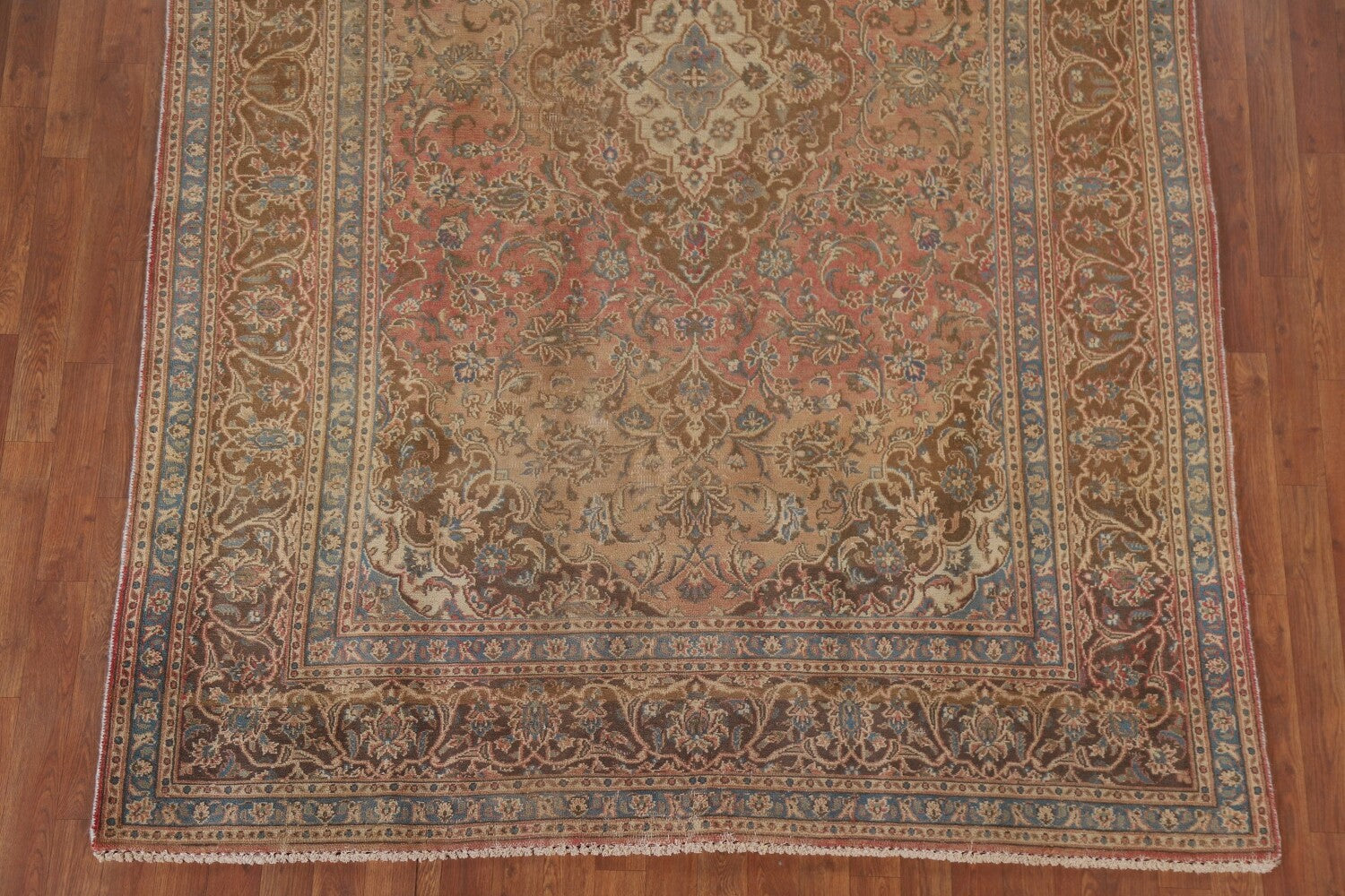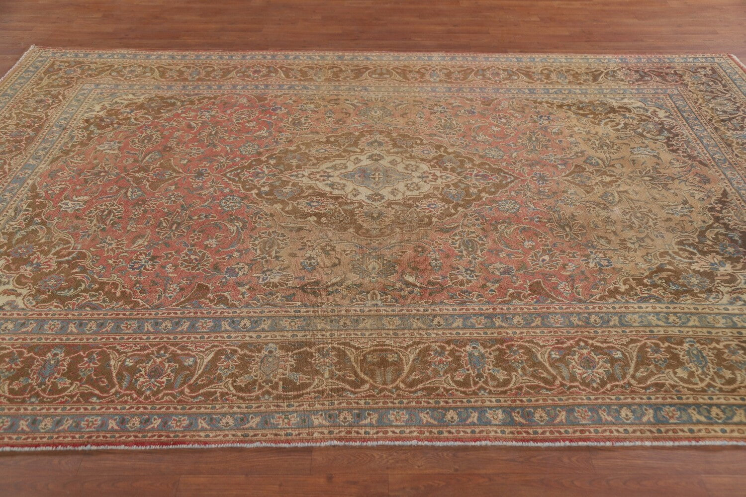 A Beautiful Genuine Persia ( Persia ) Kashan rug is Hand Knotted by skillful weavers in Persia ( Persia ) with 100% Wool Material. This rug is in Very Good (Low Pile-Abrash) condition. dimensions are 9' 5'' X 6' 4'' in foot and 287 X 193 in centimeter. the primary color is Pink.