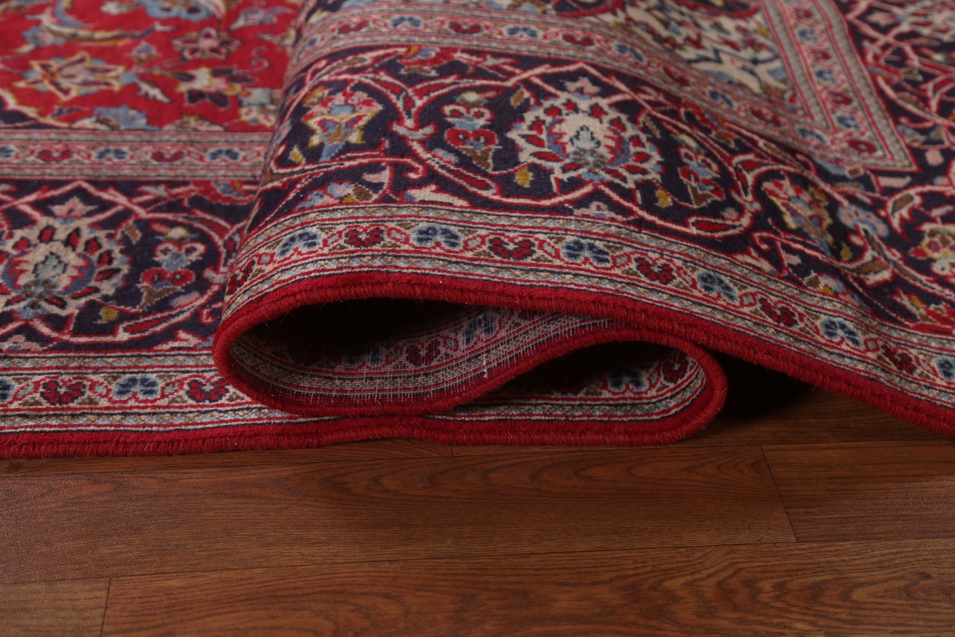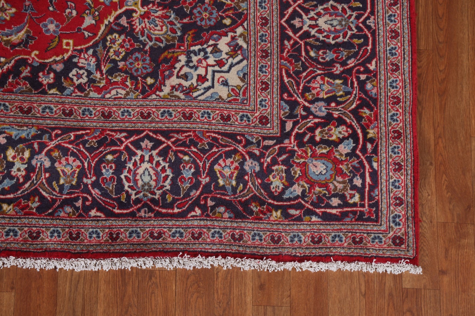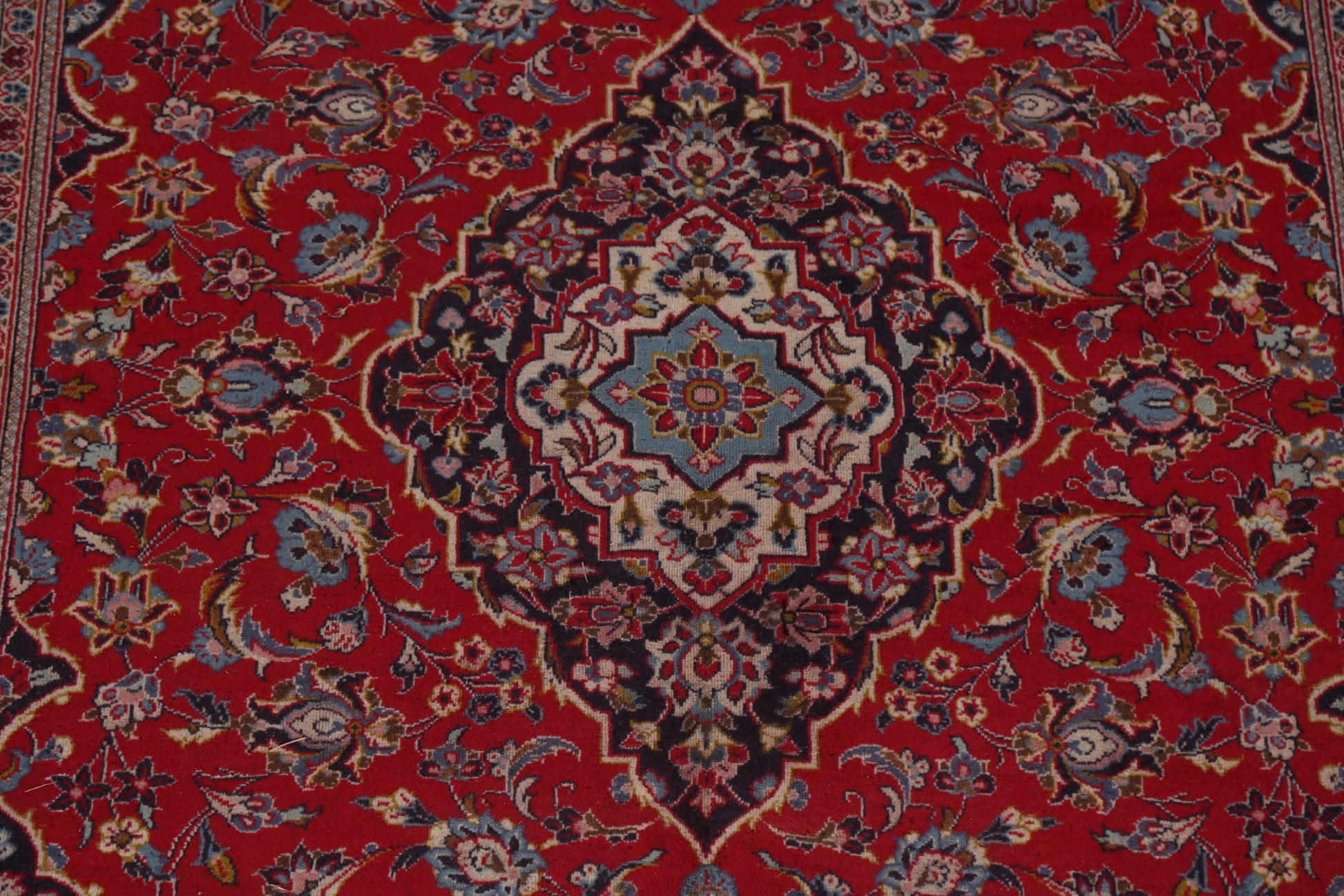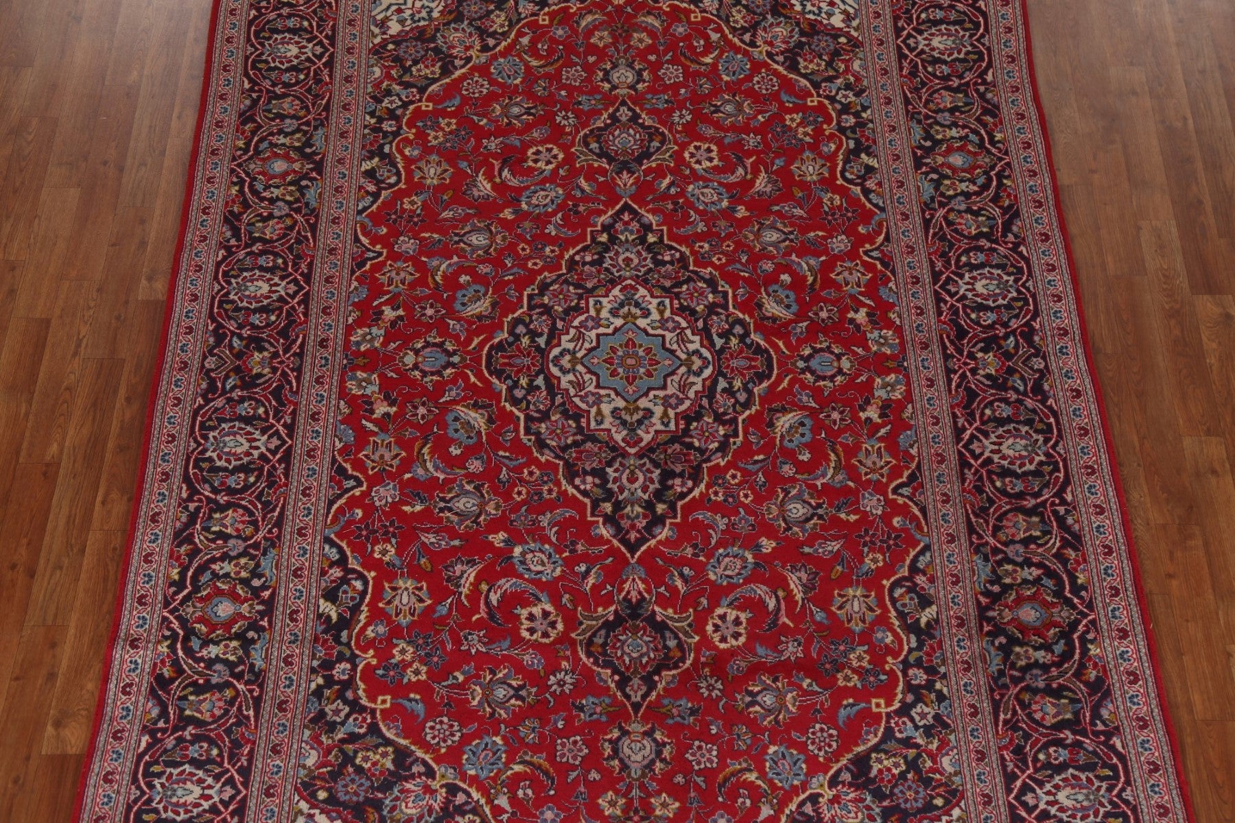 A Beautiful Genuine Persia ( Persia ) Kashan rug is Hand Knotted by skillful weavers in Persia ( Persia ) with 100% Wool Material. This rug is in Very Good ( Low Pile ) condition. dimensions are 9' 11'' X 6' 6'' in foot and 302 X 198 in centimeter. the primary color is Red.