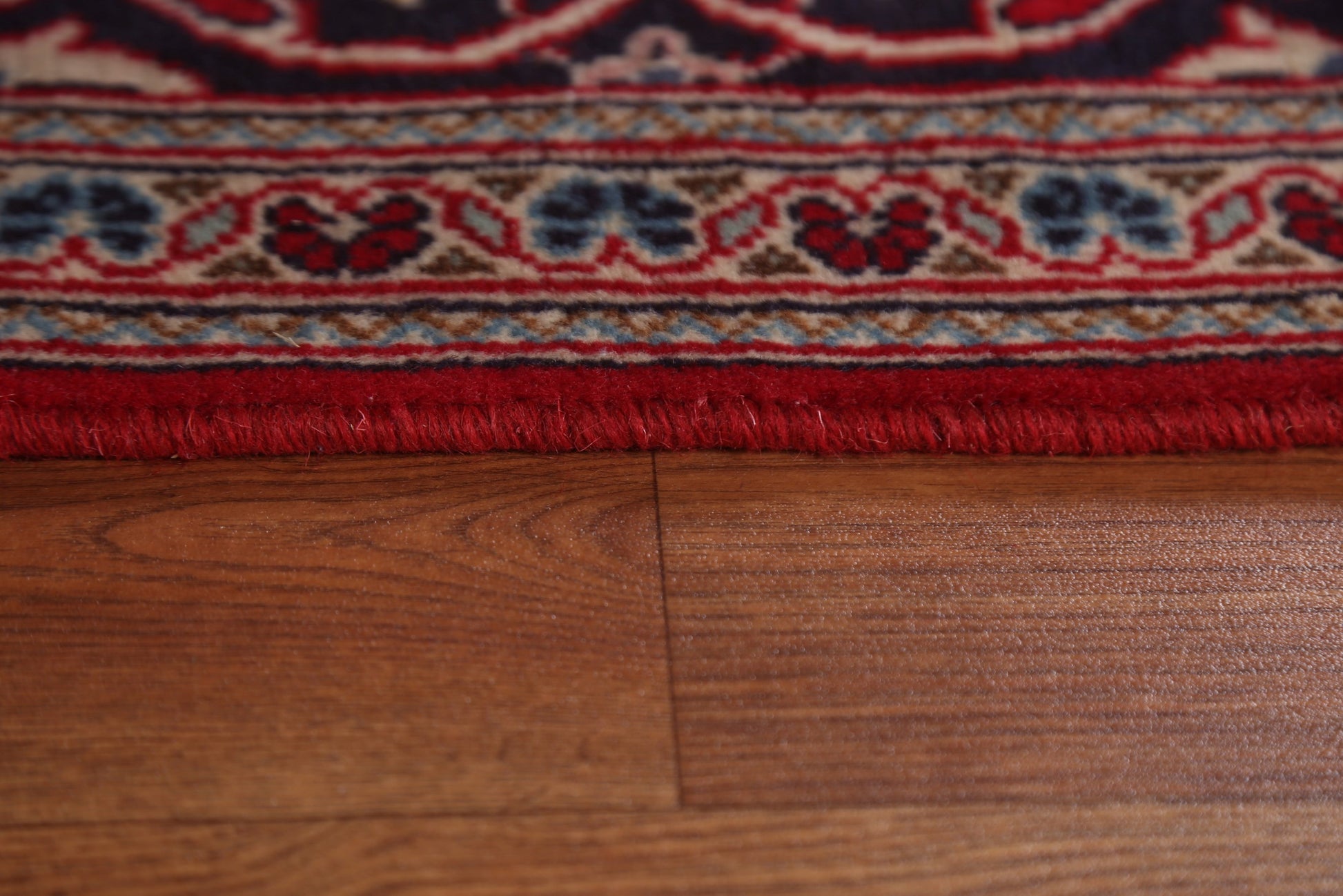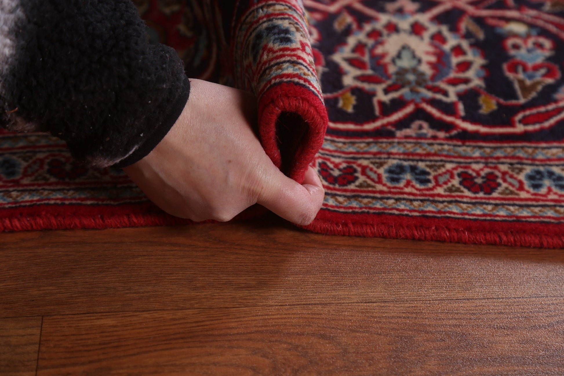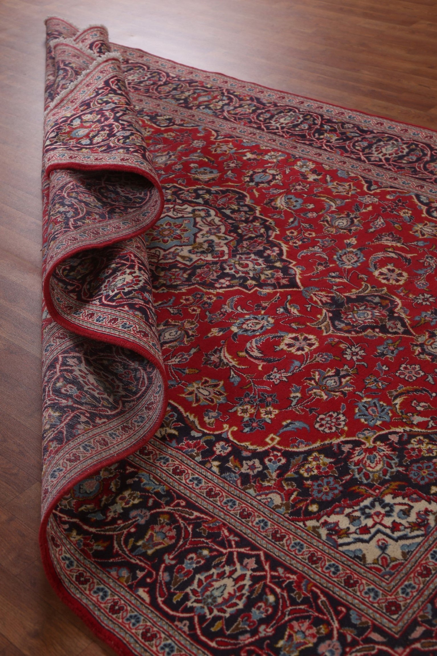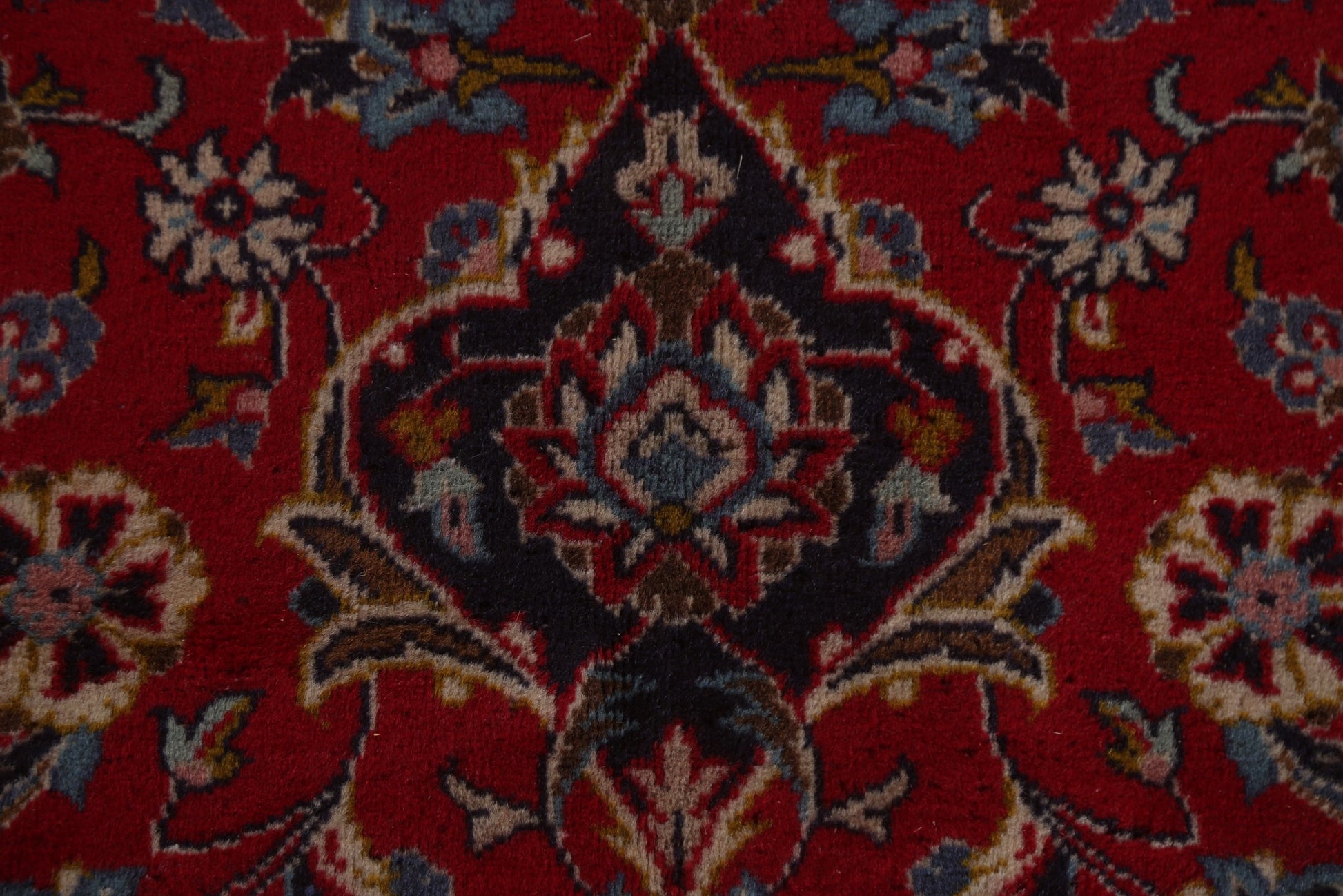 A Beautiful Genuine Persia ( Persia ) Kashan rug is Hand Knotted by skillful weavers in Persia ( Persia ) with 100% Wool Material. This rug is in Very Good ( Low Pile ) condition. dimensions are 9' 11'' X 6' 6'' in foot and 302 X 198 in centimeter. the primary color is Red.