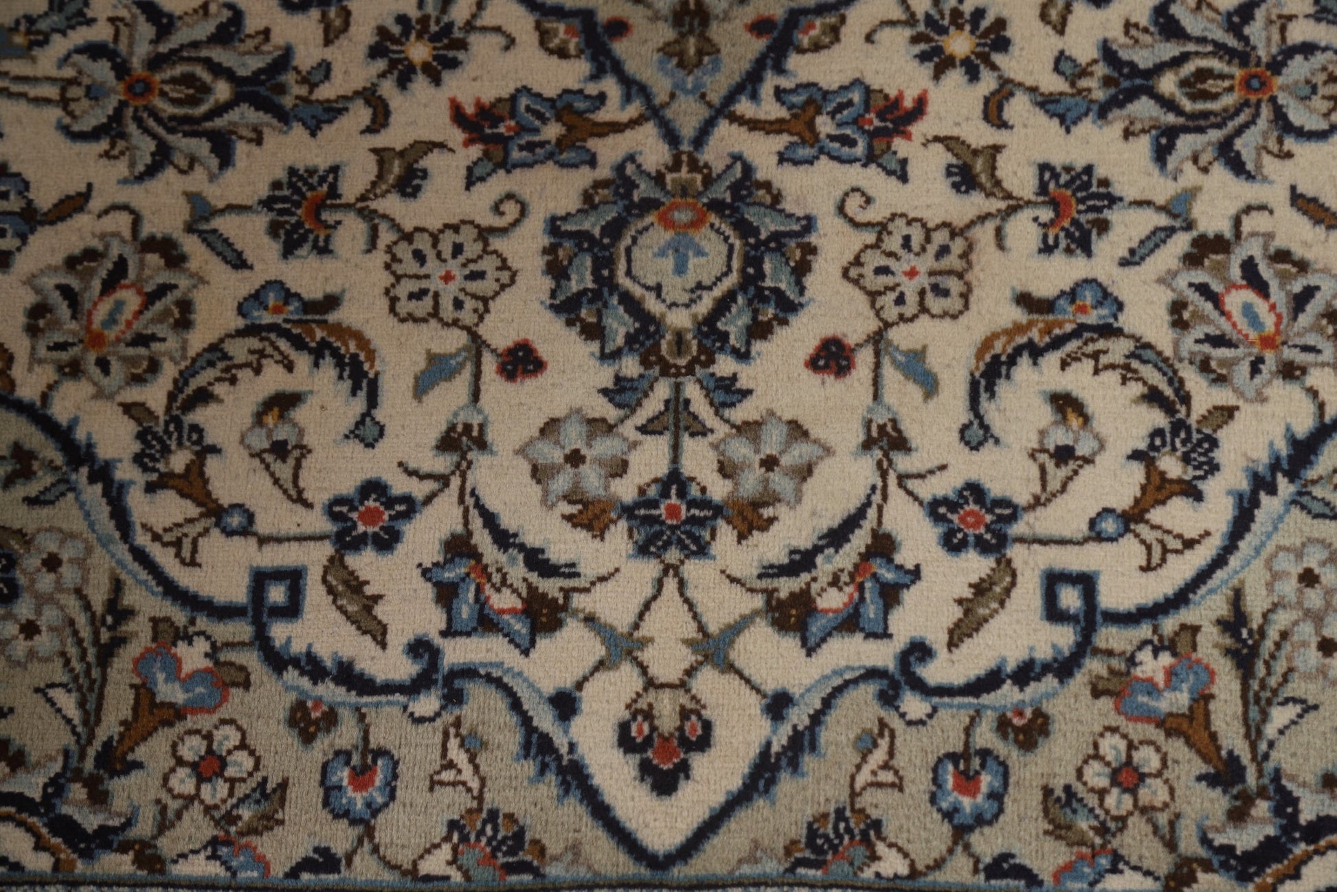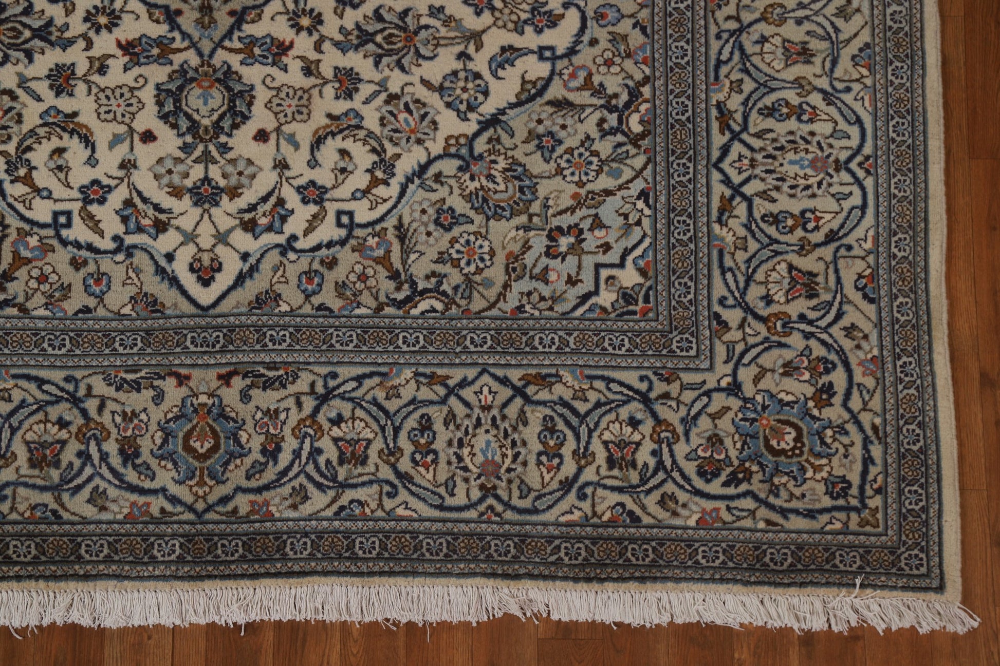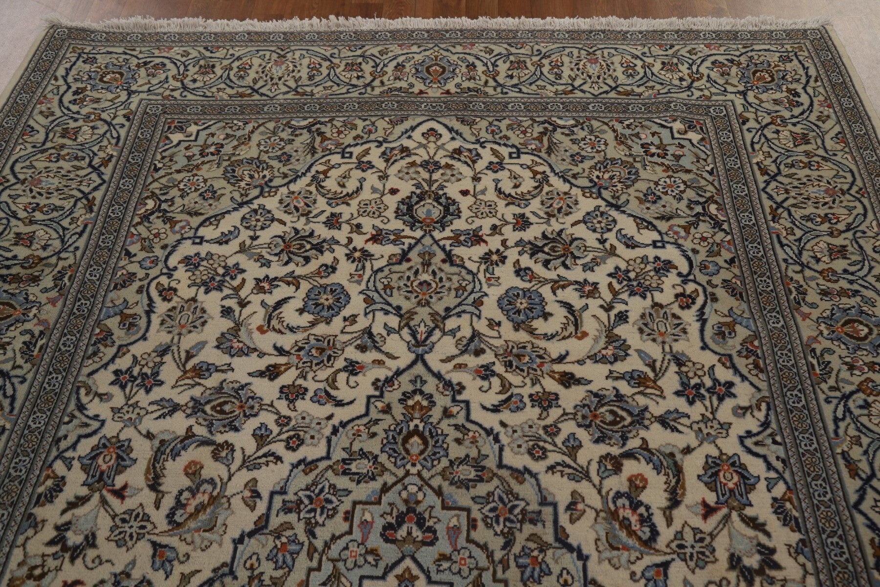 A Beautiful Genuine Persia ( Persia ) Kashan rug is Hand Knotted by skillful weavers in Persia ( Persia ) with 100% Wool Material. This rug is in Very Good condition. dimensions are 9' 8'' X 6' 6'' in foot and 295 X 198 in centimeter. the primary color is Beige & Ivories.