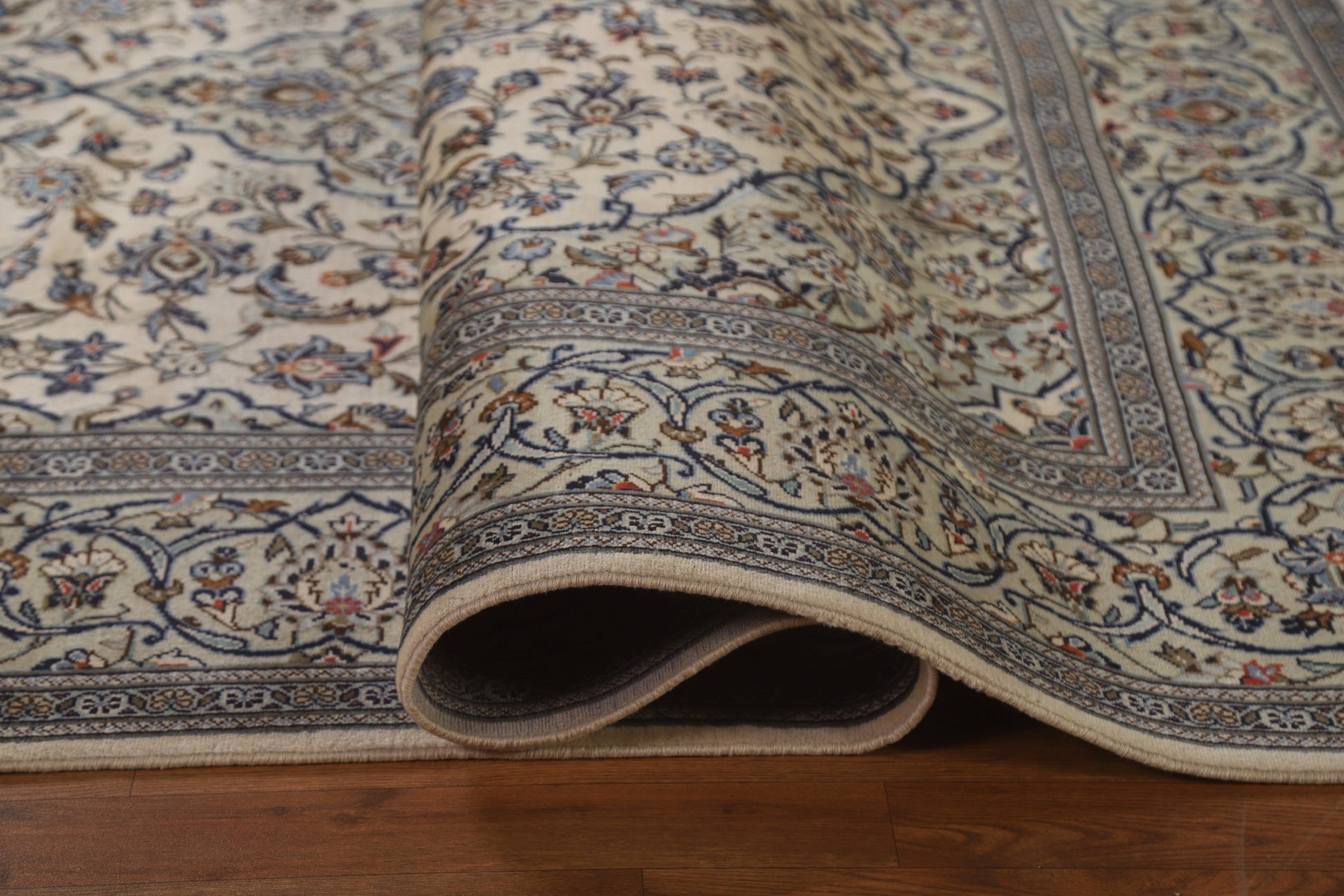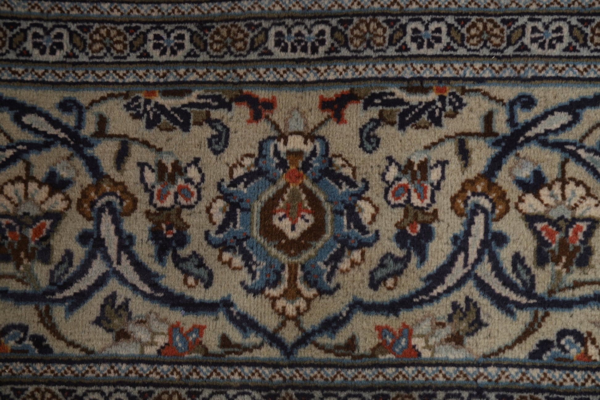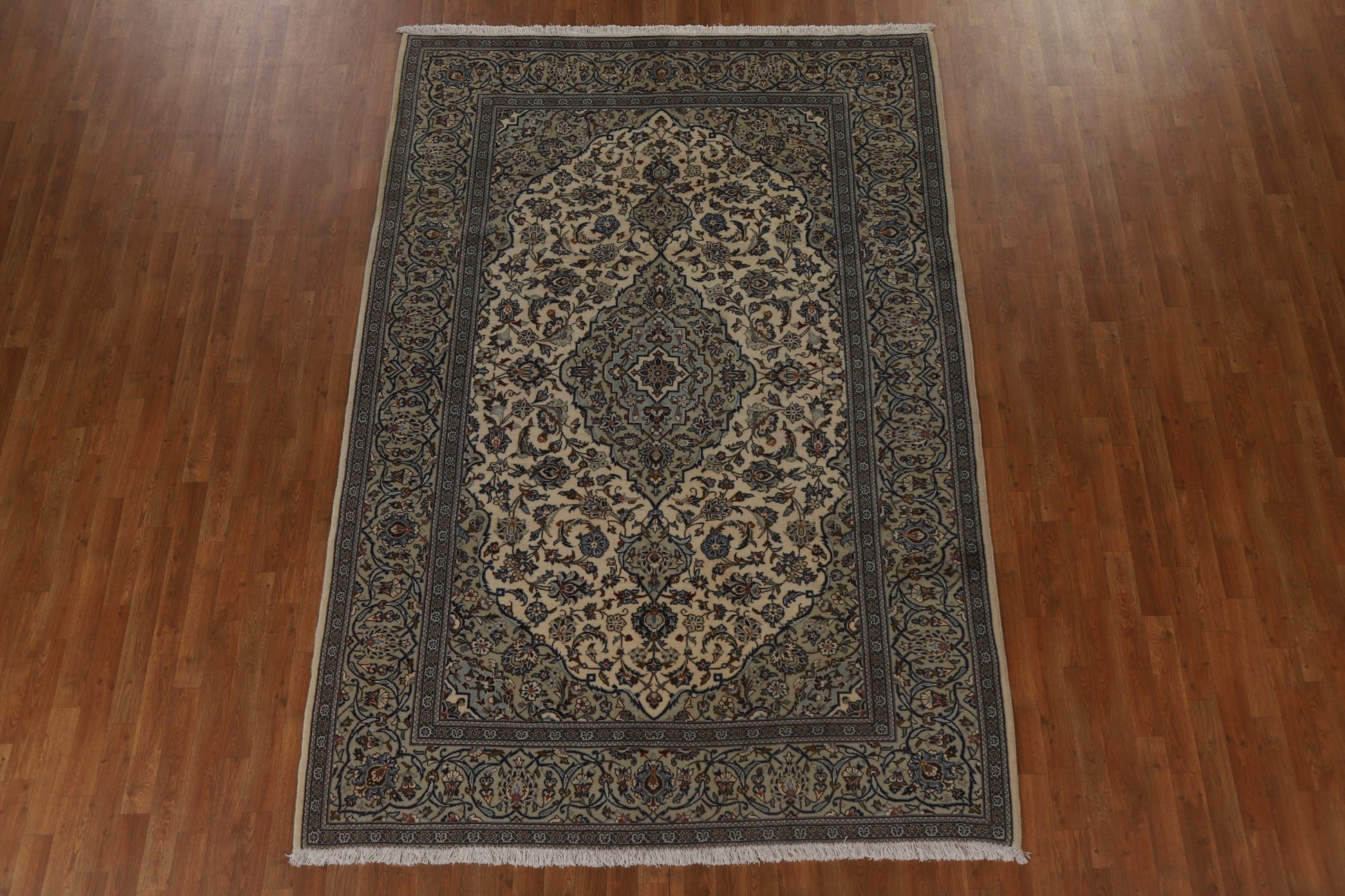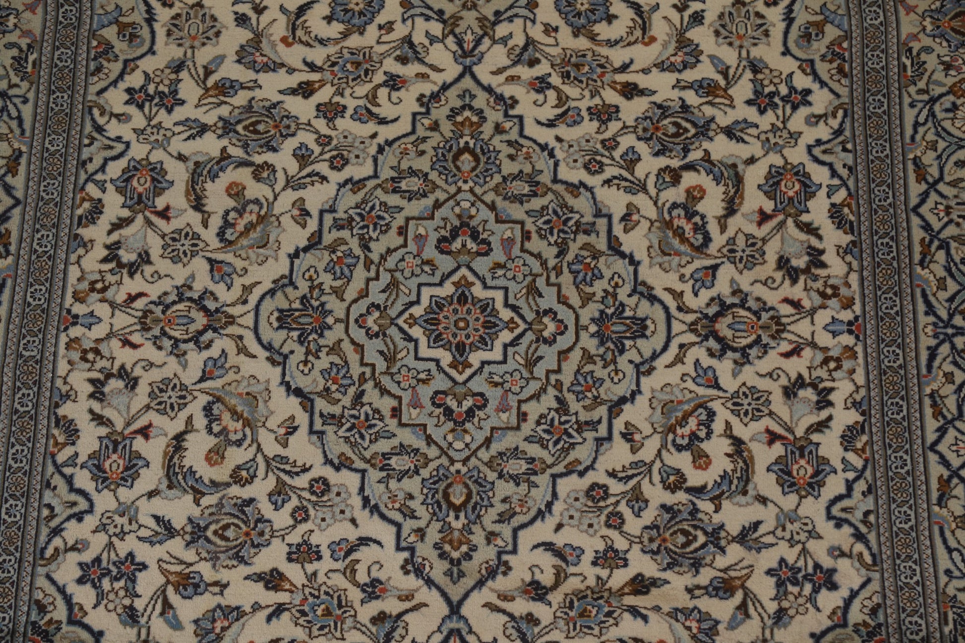 A Beautiful Genuine Persia ( Persia ) Kashan rug is Hand Knotted by skillful weavers in Persia ( Persia ) with 100% Wool Material. This rug is in Very Good condition. dimensions are 9' 8'' X 6' 6'' in foot and 295 X 198 in centimeter. the primary color is Beige & Ivories.