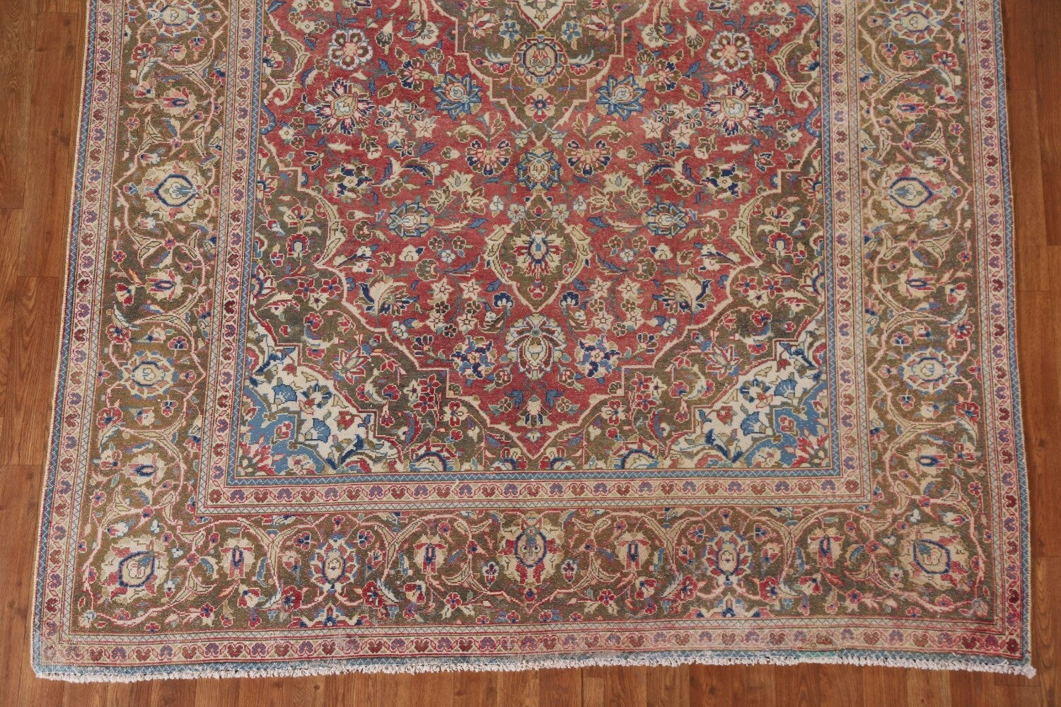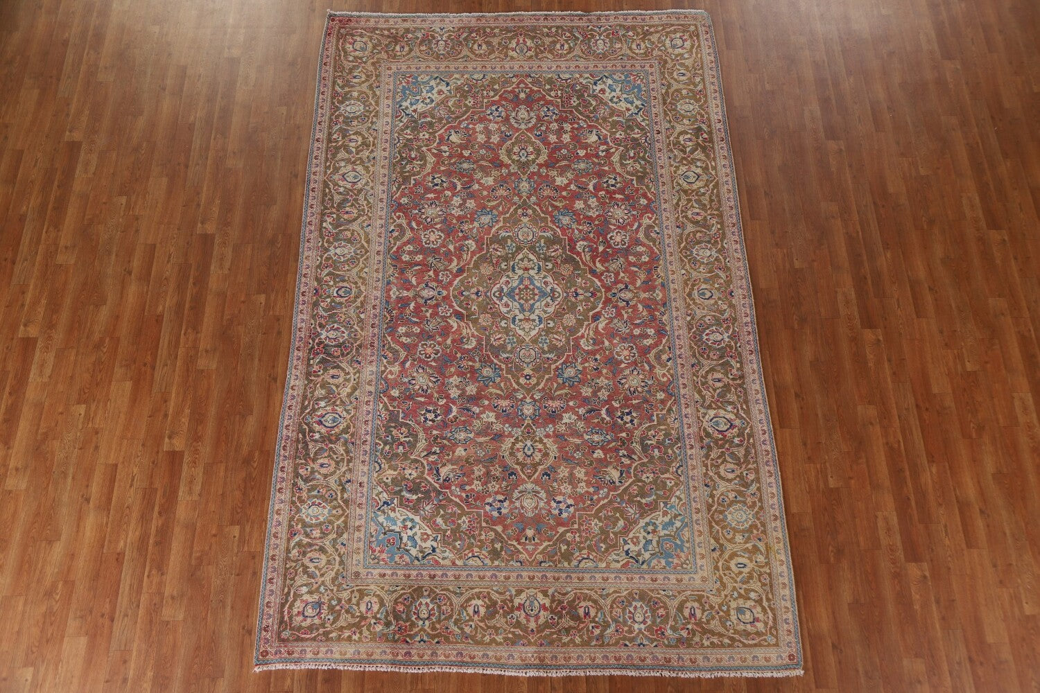 A Beautiful Genuine Persia ( Persia ) Kashan rug is Hand Knotted by skillful weavers in Persia ( Persia ) with 100% Wool Material. This rug is in Very Good (Low Pile-Abrash) condition. dimensions are 10' 2'' X 6' 6'' in foot and 310 X 198 in centimeter. the primary color is Red.