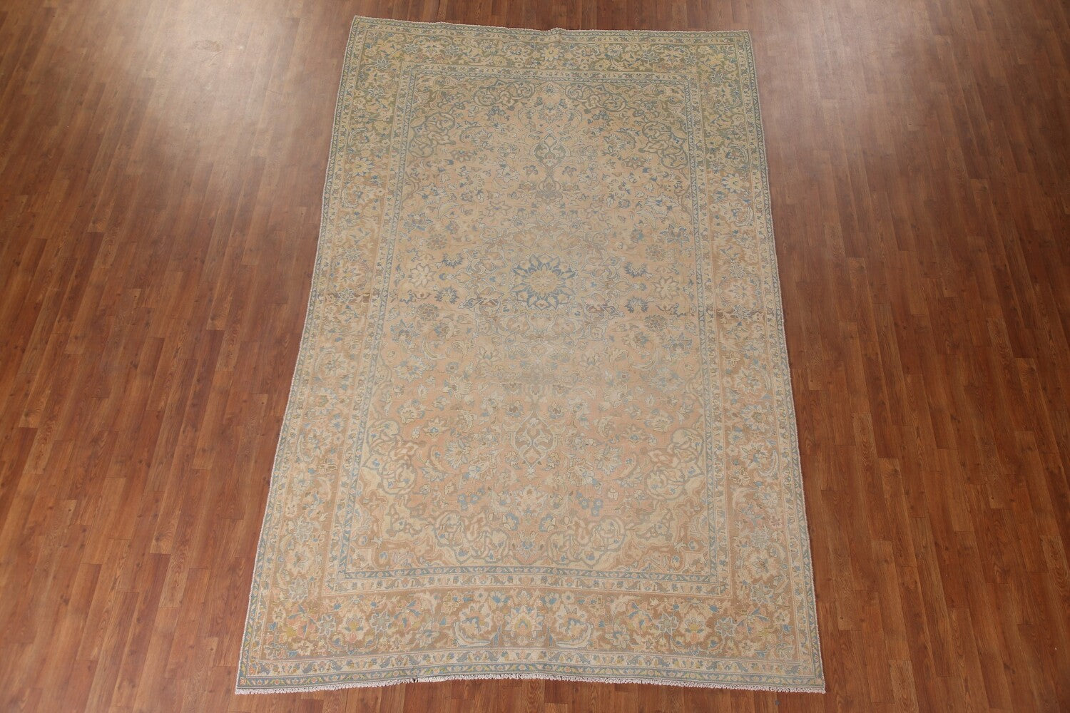 A Beautiful Genuine Persia ( Persia ) Kashan rug is Hand Knotted by skillful weavers in Persia ( Persia ) with 100% Wool Material. This rug is in Very Good (Low Pile-Abrash-Repair) condition. dimensions are 10' 11'' X 7' 0'' in foot and 333 X 213 in centimeter. the primary color is Coral.