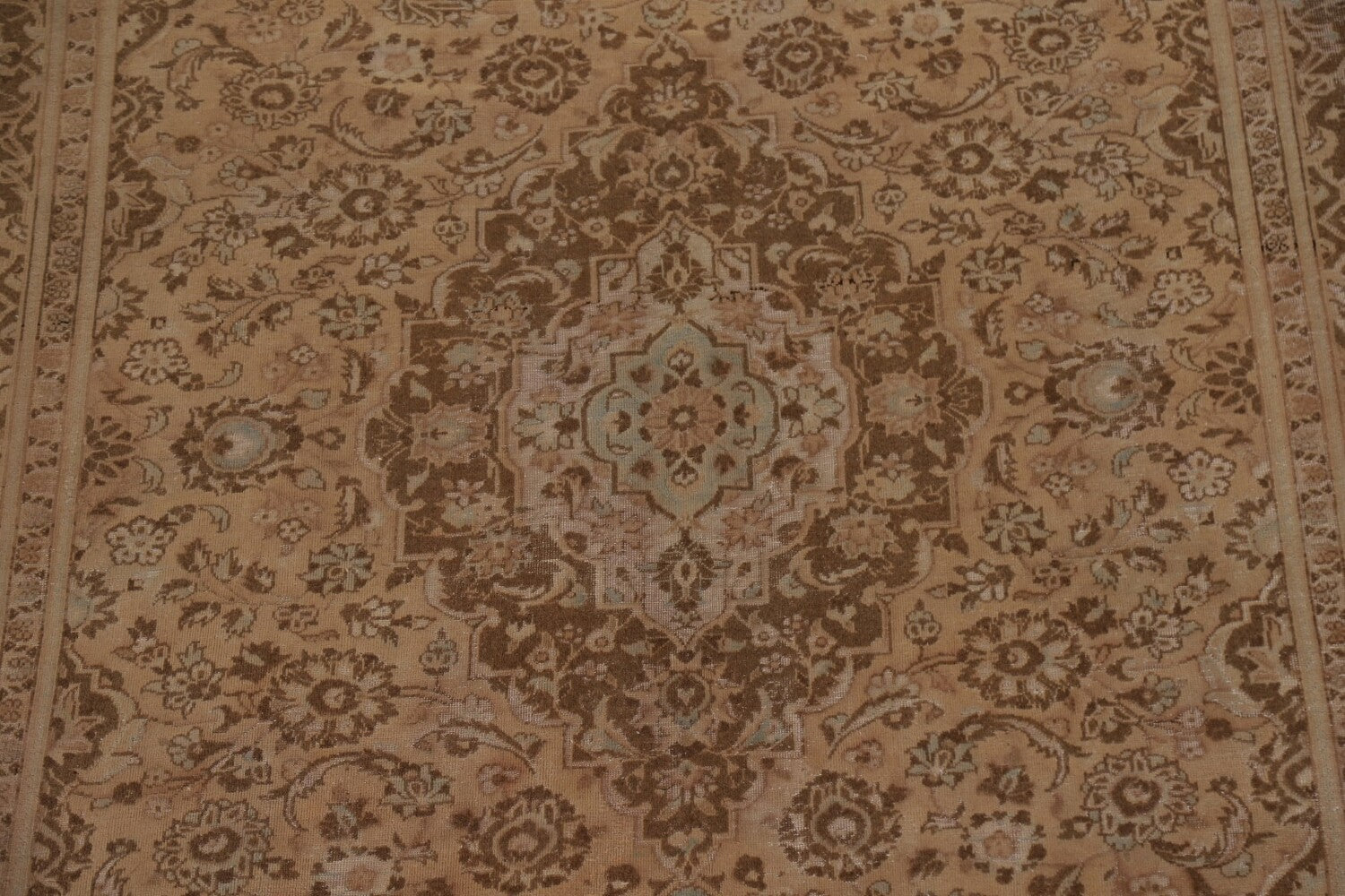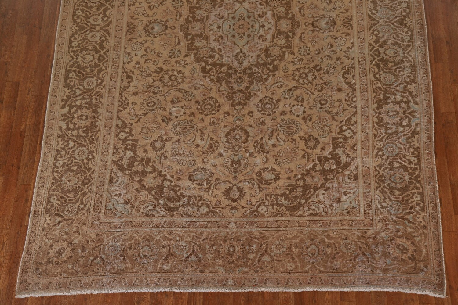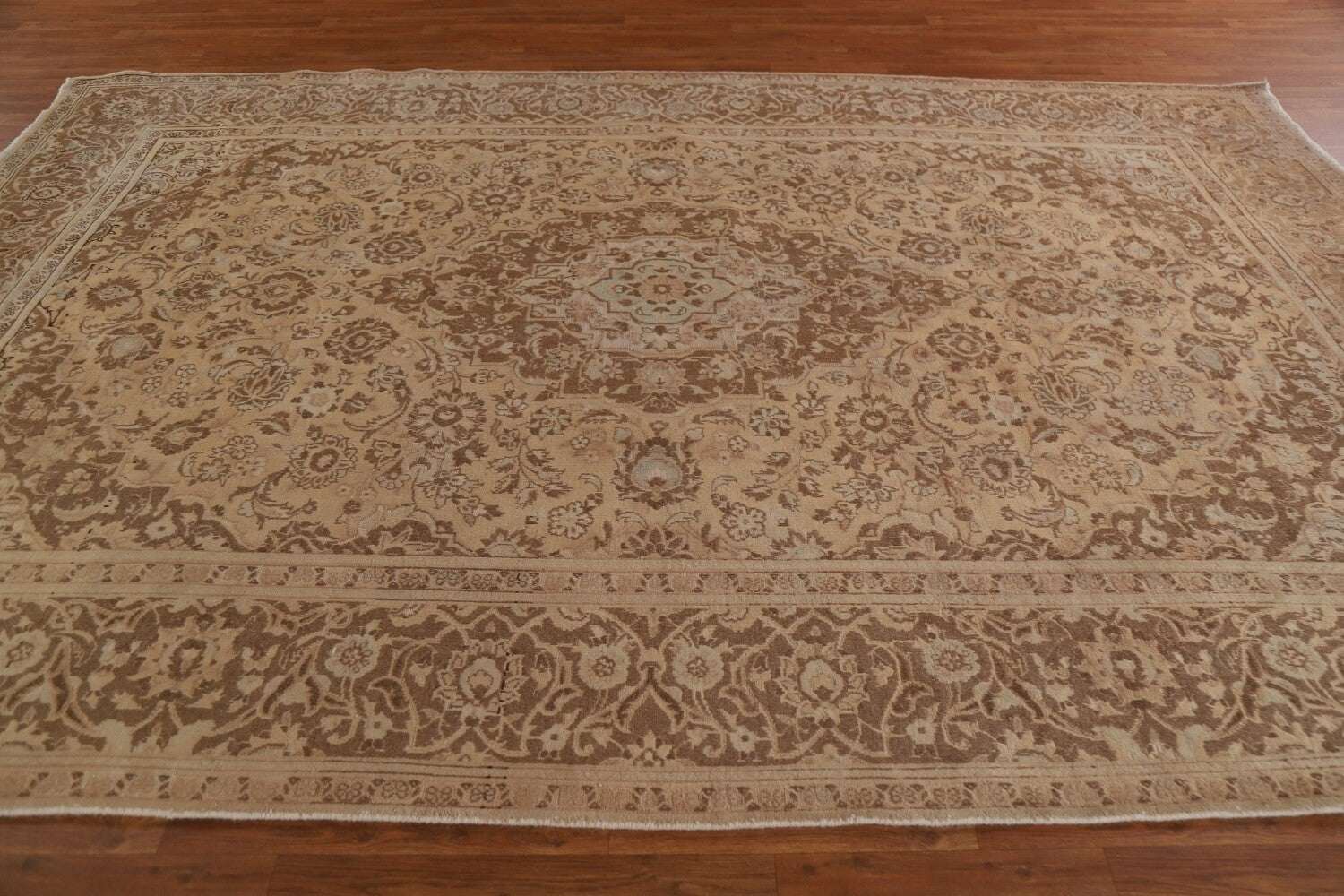 A Beautiful Genuine Persia ( Persia ) Kashan rug is Hand Knotted by skillful weavers in Persia ( Persia ) with 100% Wool Material. This rug is in Very Good (Evenly Low Pile) condition. dimensions are 11' 3'' X 7' 10'' in foot and 343 X 239 in centimeter. the primary color is Peach.