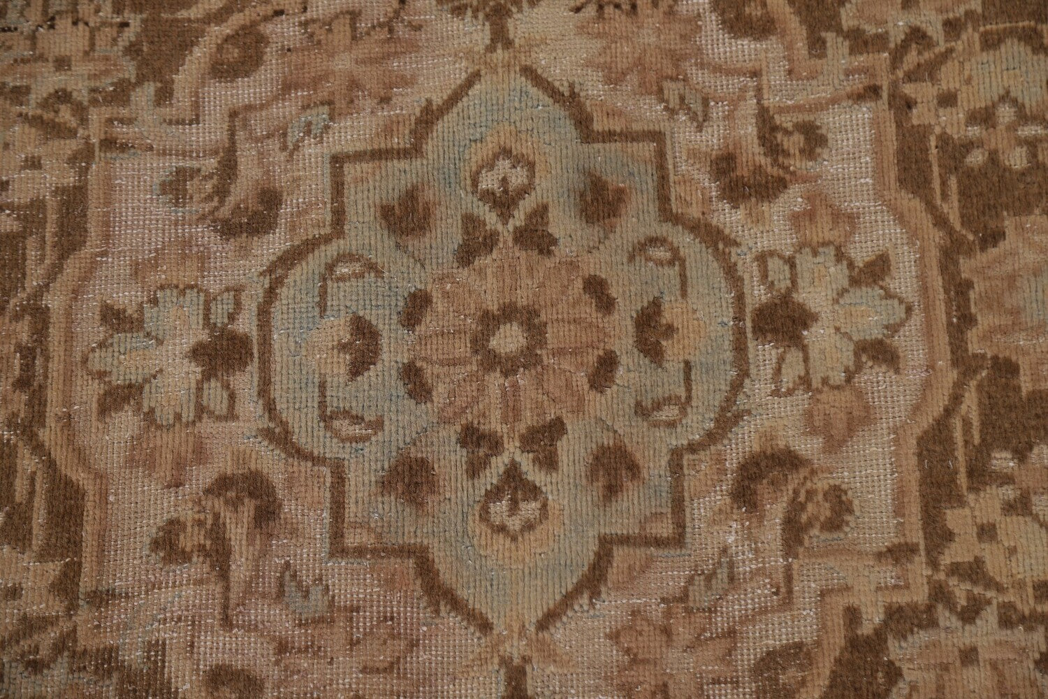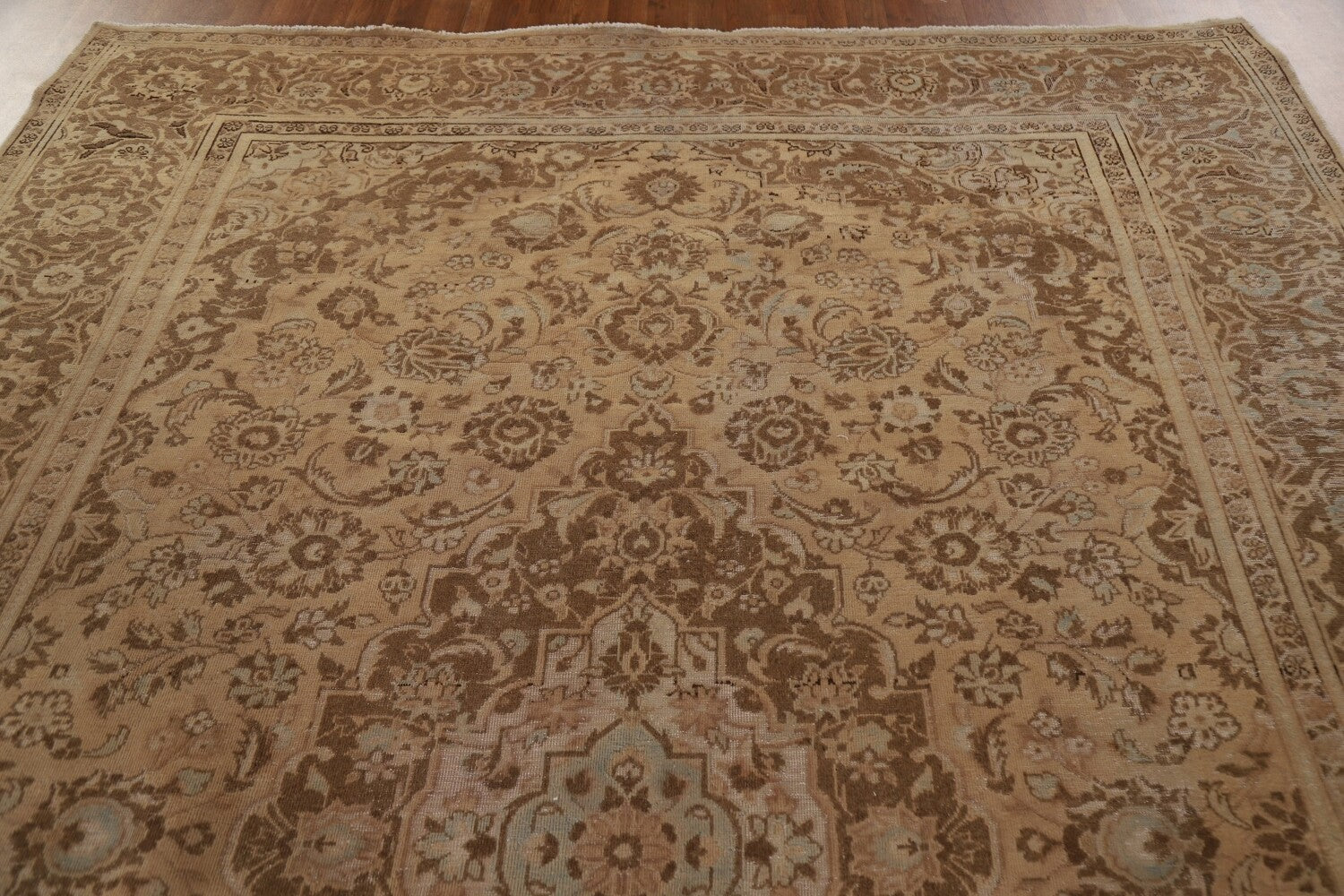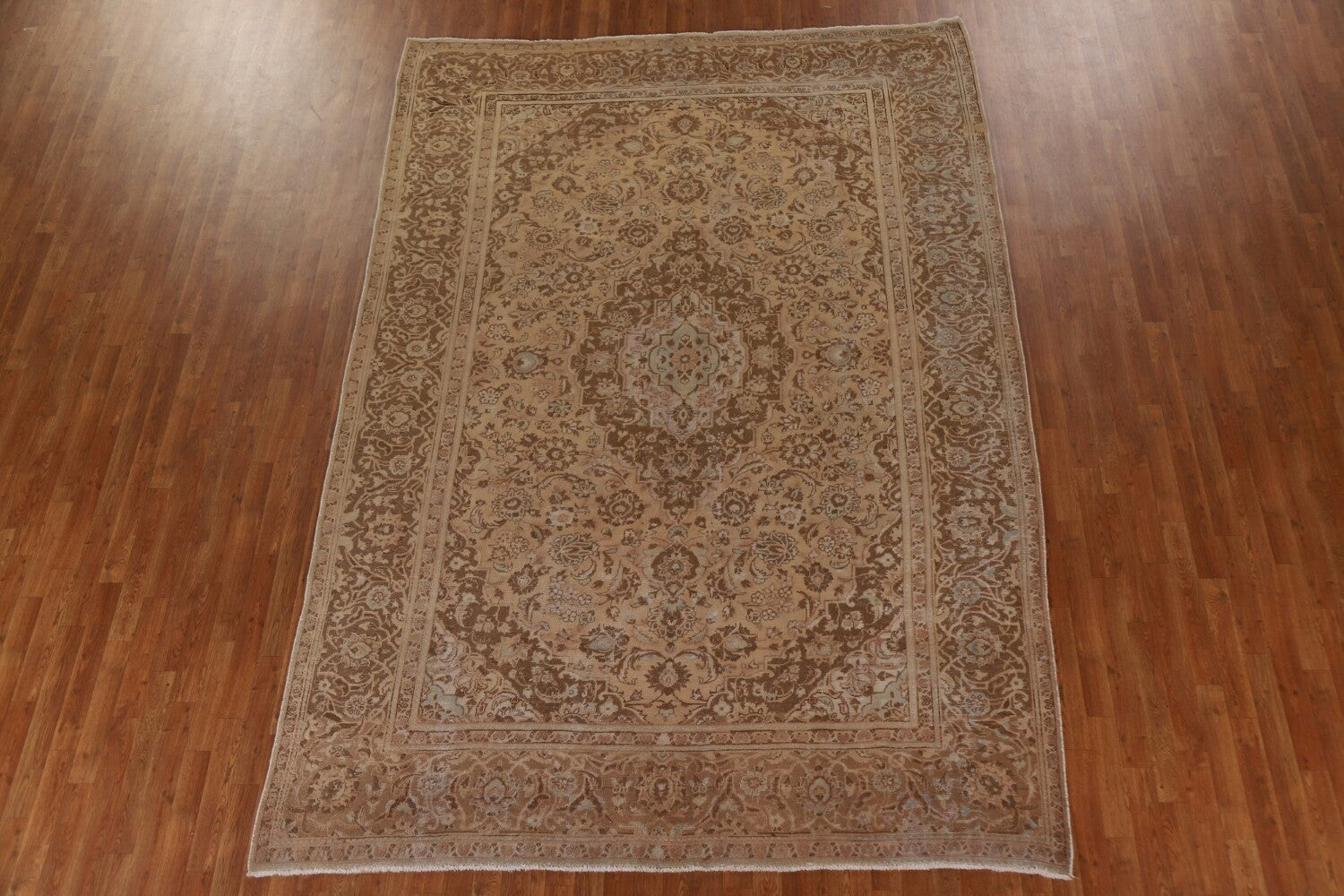 A Beautiful Genuine Persia ( Persia ) Kashan rug is Hand Knotted by skillful weavers in Persia ( Persia ) with 100% Wool Material. This rug is in Very Good (Evenly Low Pile) condition. dimensions are 11' 3'' X 7' 10'' in foot and 343 X 239 in centimeter. the primary color is Peach.