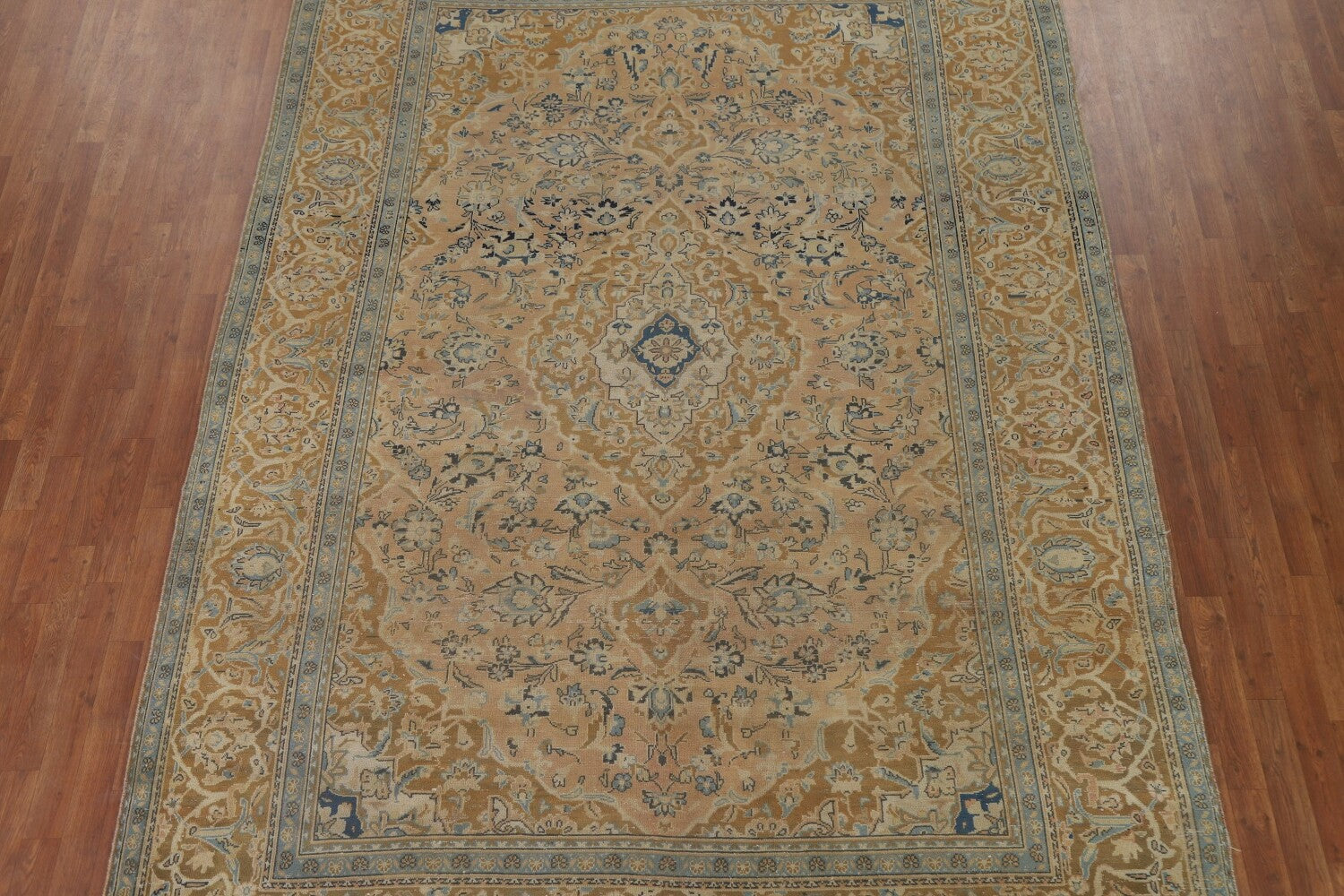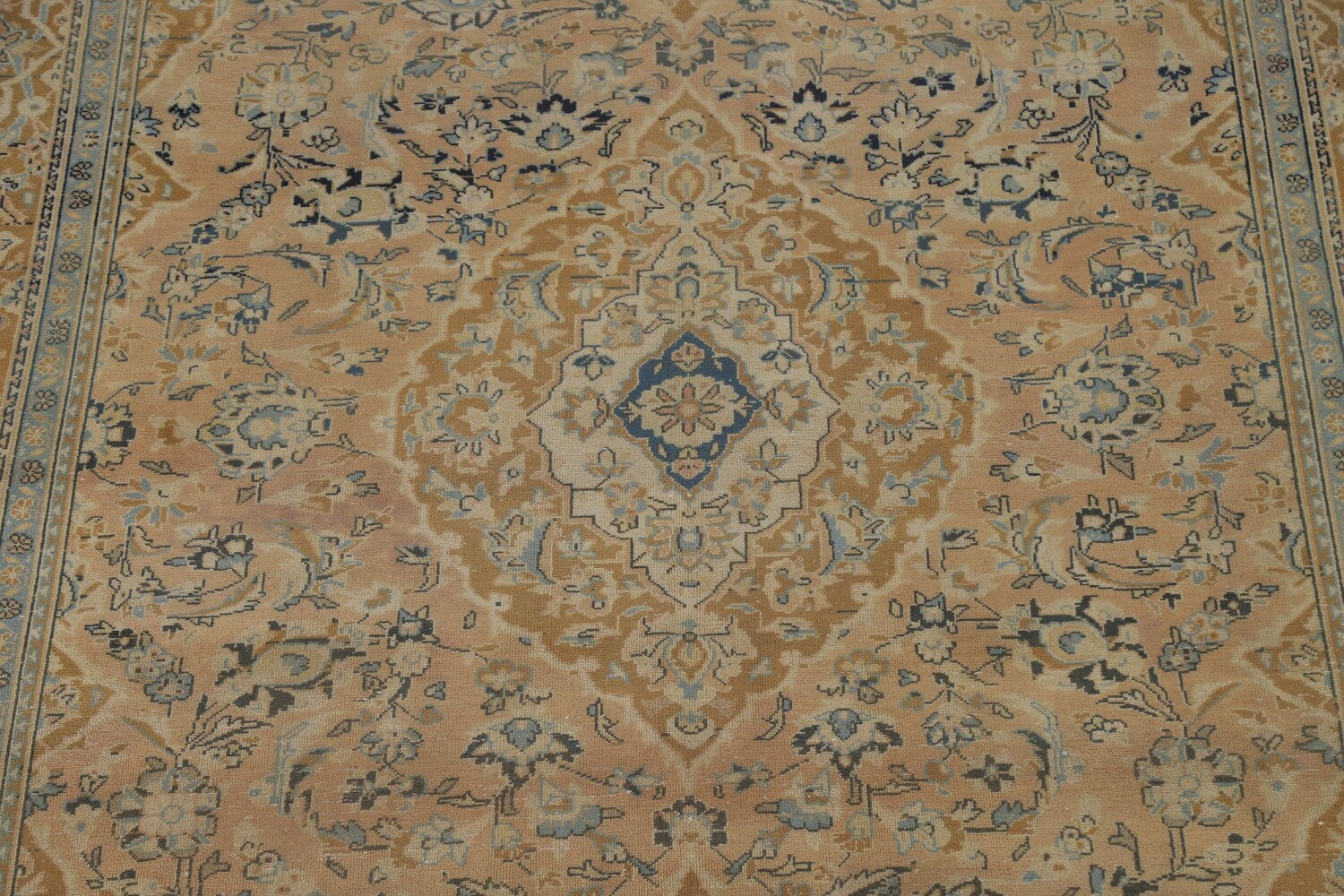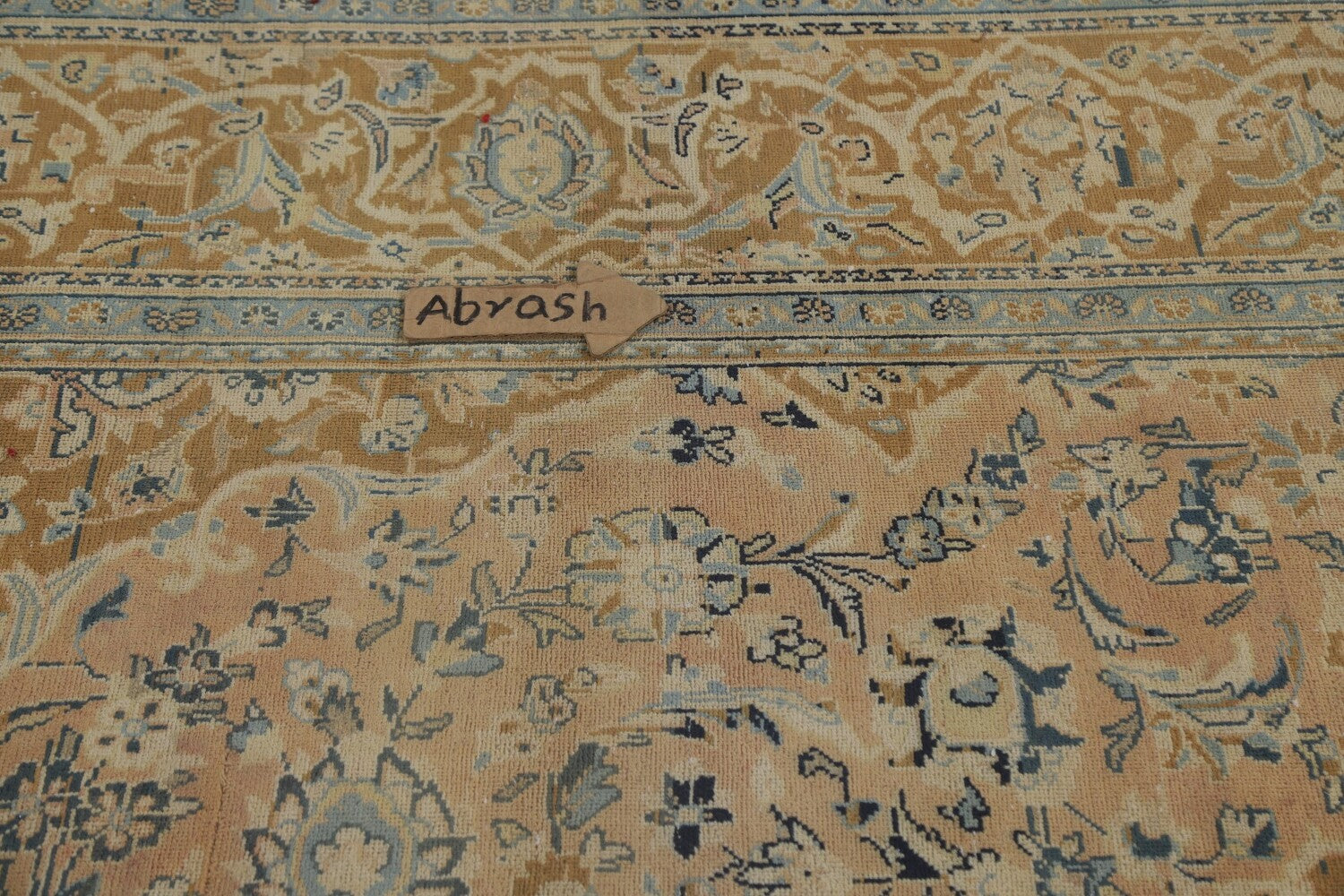 A Beautiful Genuine Persia ( Persia ) Kashan rug is Hand Knotted by skillful weavers in Persia ( Persia ) with 100% Wool Material. This rug is in Very Good (Low Pile-Abrash) condition. dimensions are 11' 2'' X 7' 10'' in foot and 340 X 239 in centimeter. the primary color is Peach.