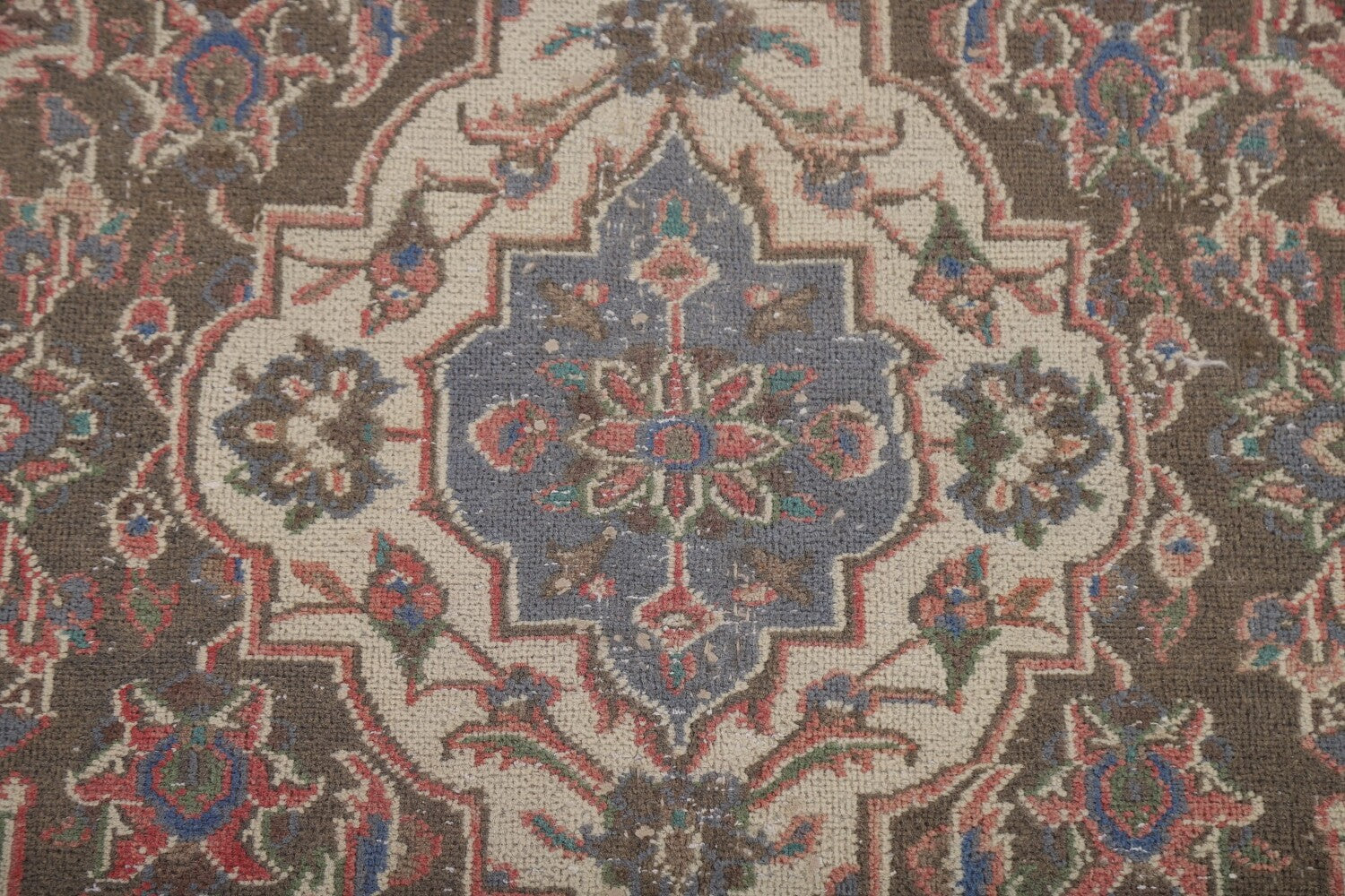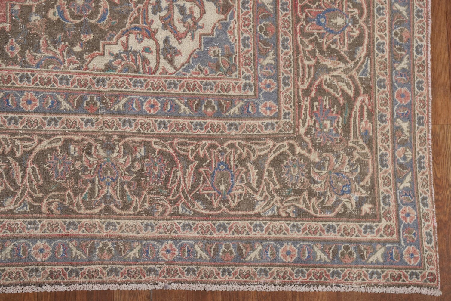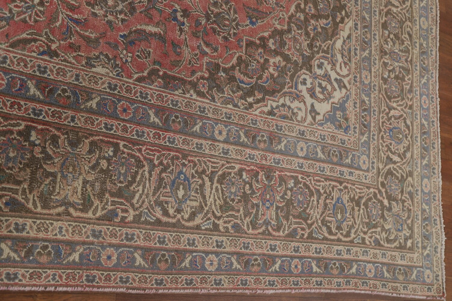 A Beautiful Genuine Persia ( Persia ) Kashan rug is Hand Knotted by skillful weavers in Persia ( Persia ) with 100% Wool Material. This rug is in Very Good (Low Pile) condition. dimensions are 11' 1'' X 7' 9'' in foot and 338 X 236 in centimeter. the primary color is Pink.