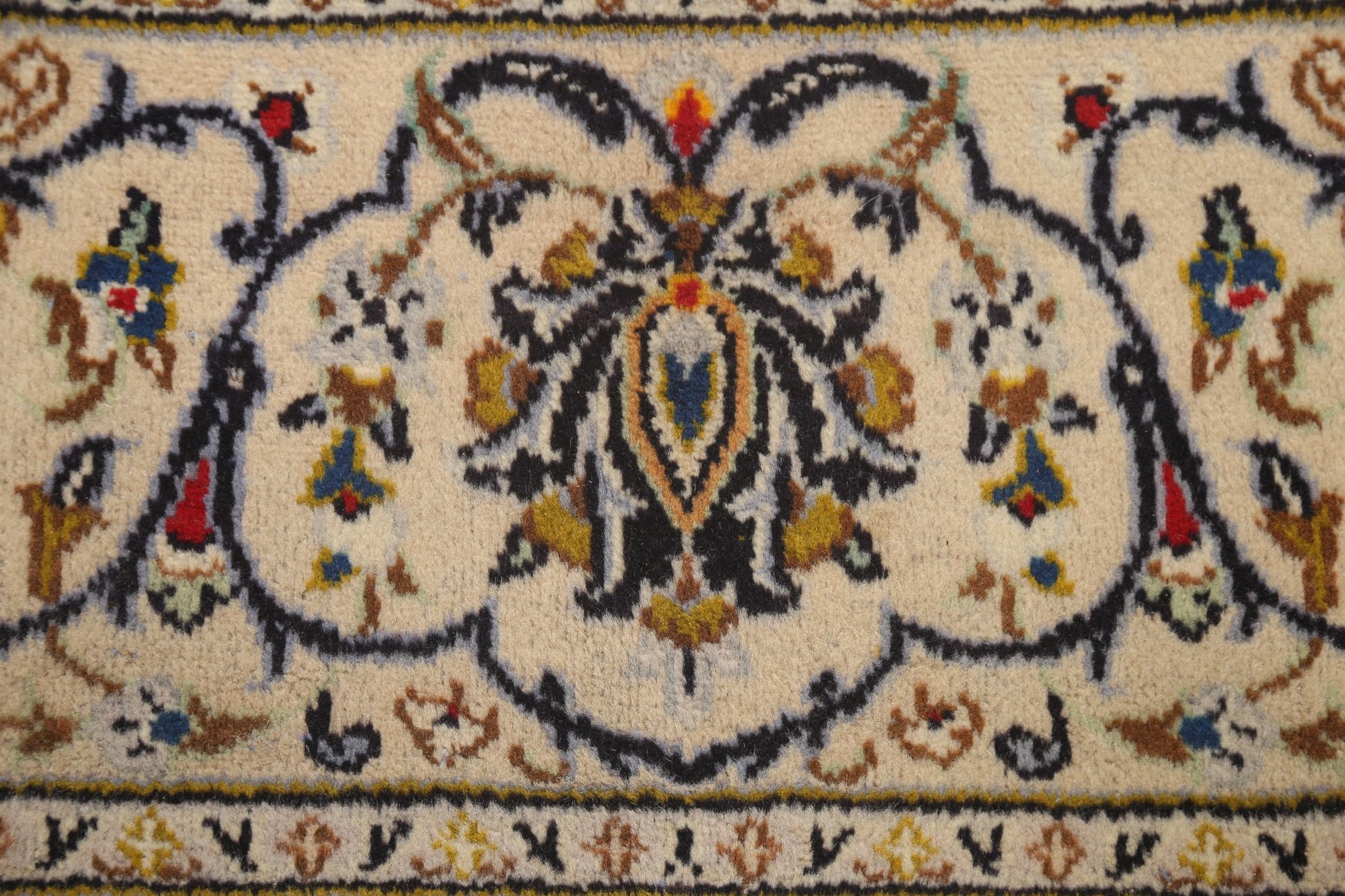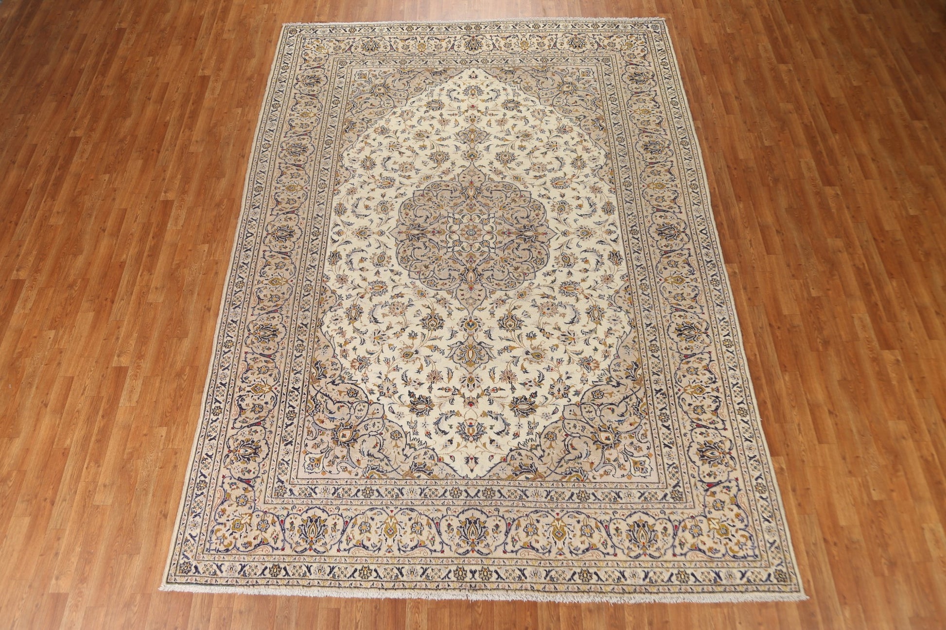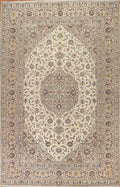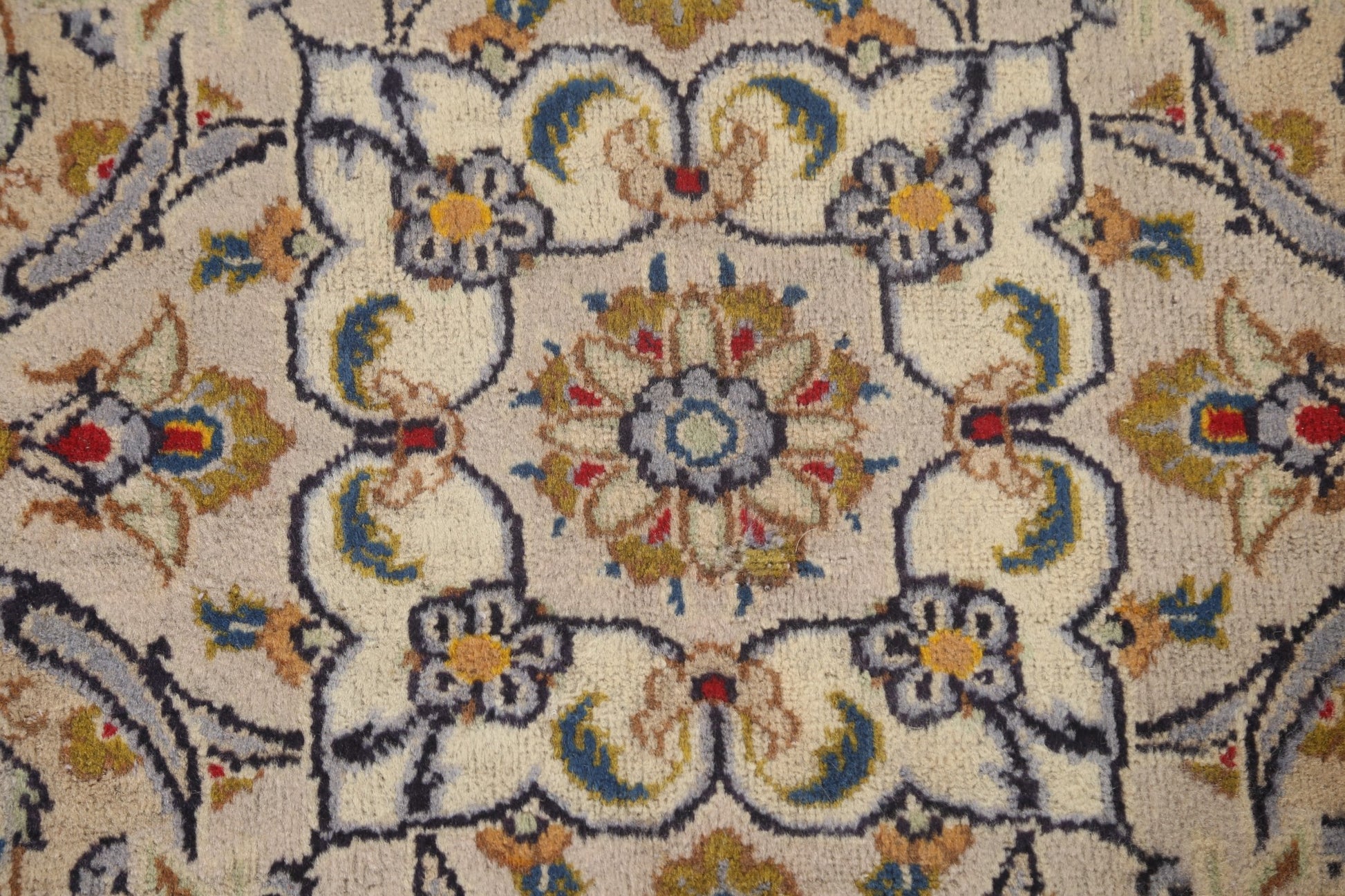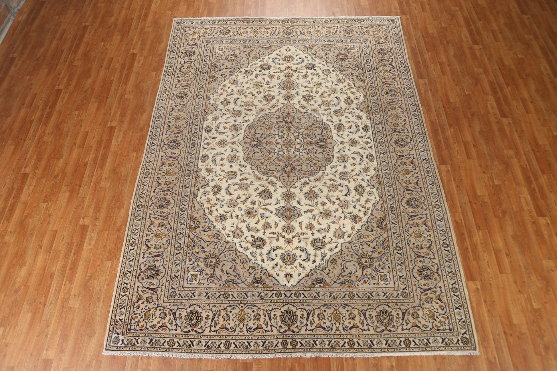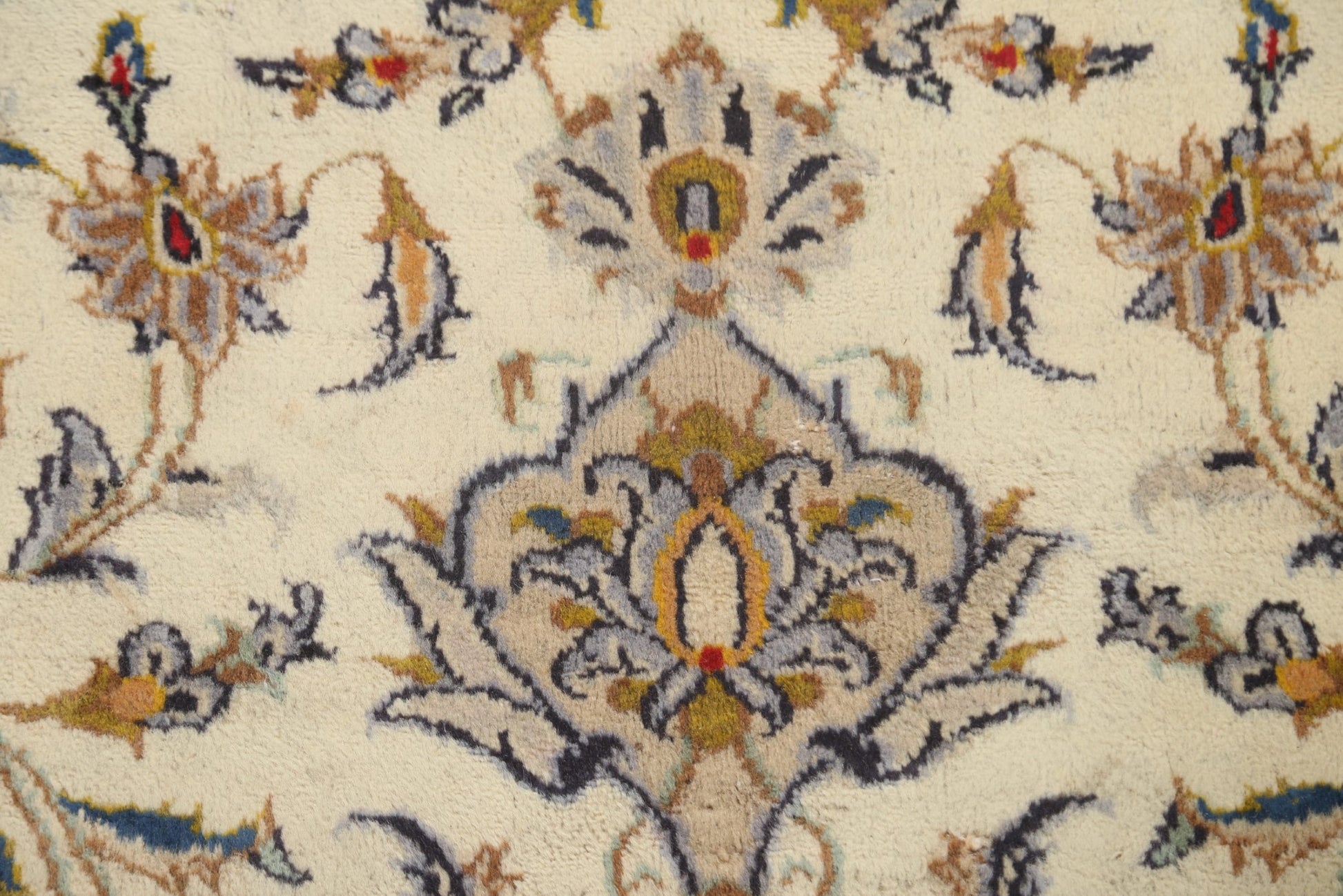 A Beautiful Genuine Persia ( Persia ) Kashan rug is Hand Knotted by skillful weavers in Persia ( Persia ) with 100% Wool Material. This rug is in Very Good ( Low Pile ) condition. dimensions are 11' 4'' X 8' 1'' in foot and 345 X 246 in centimeter. the primary color is Beige & Ivories.