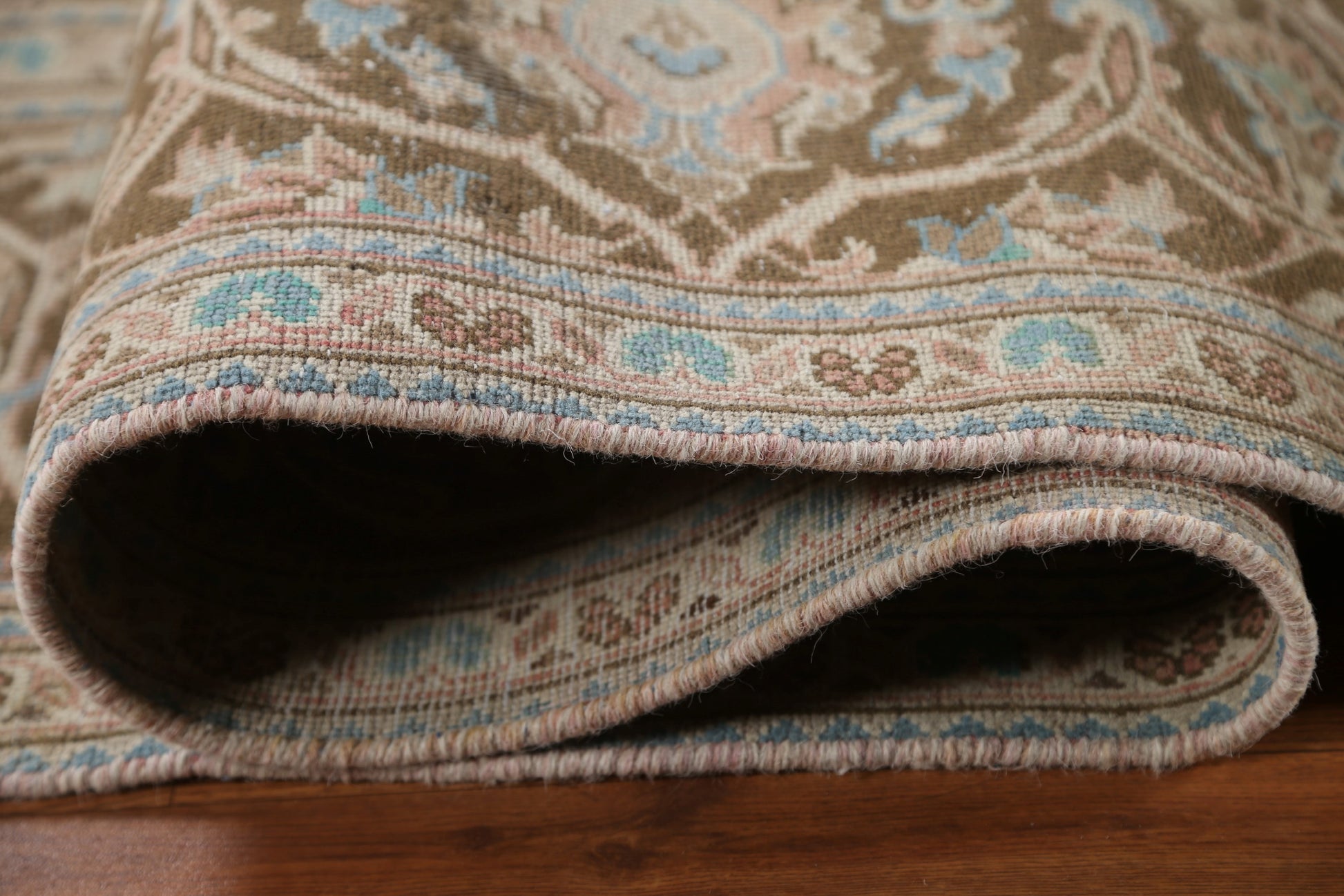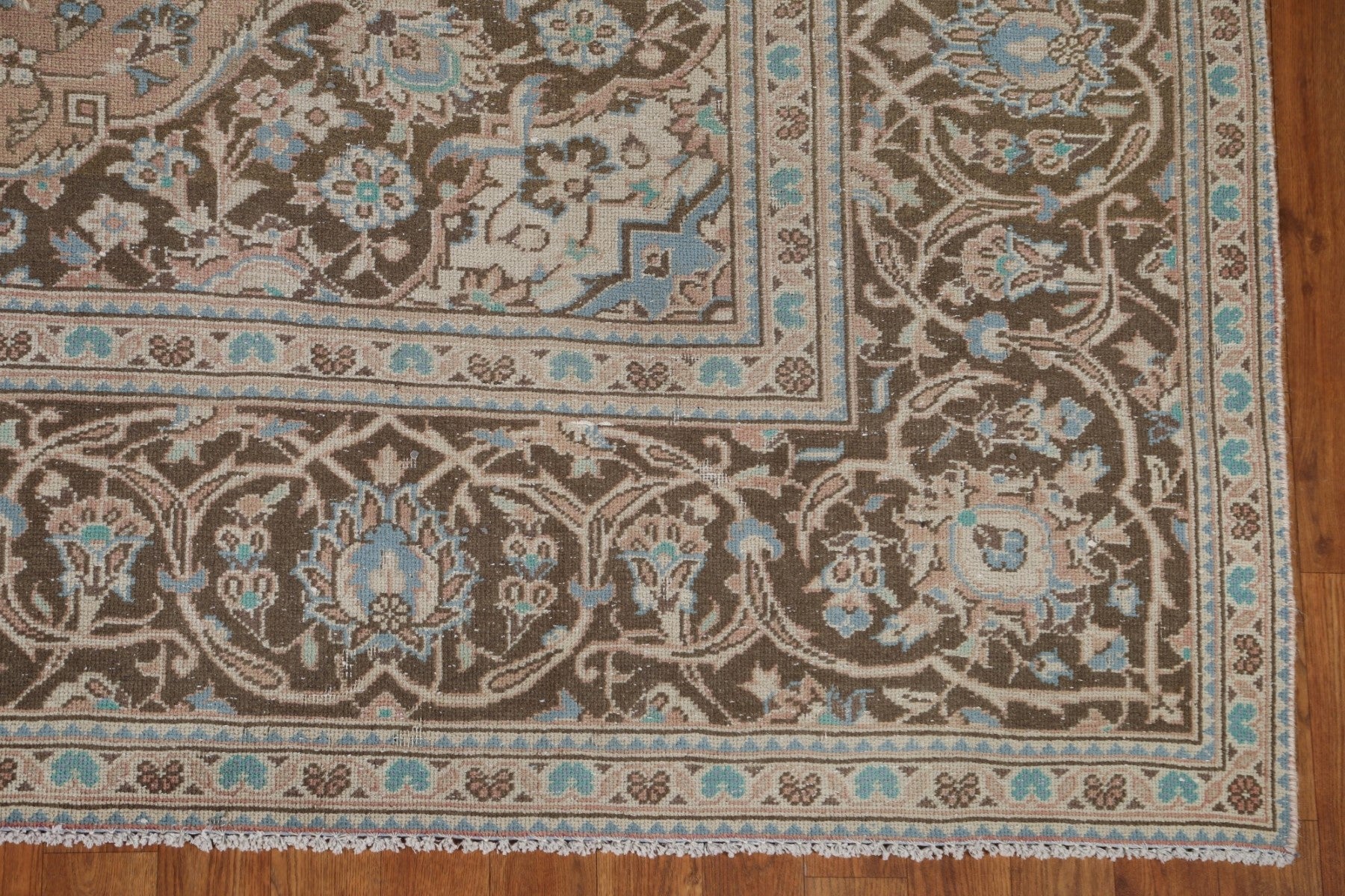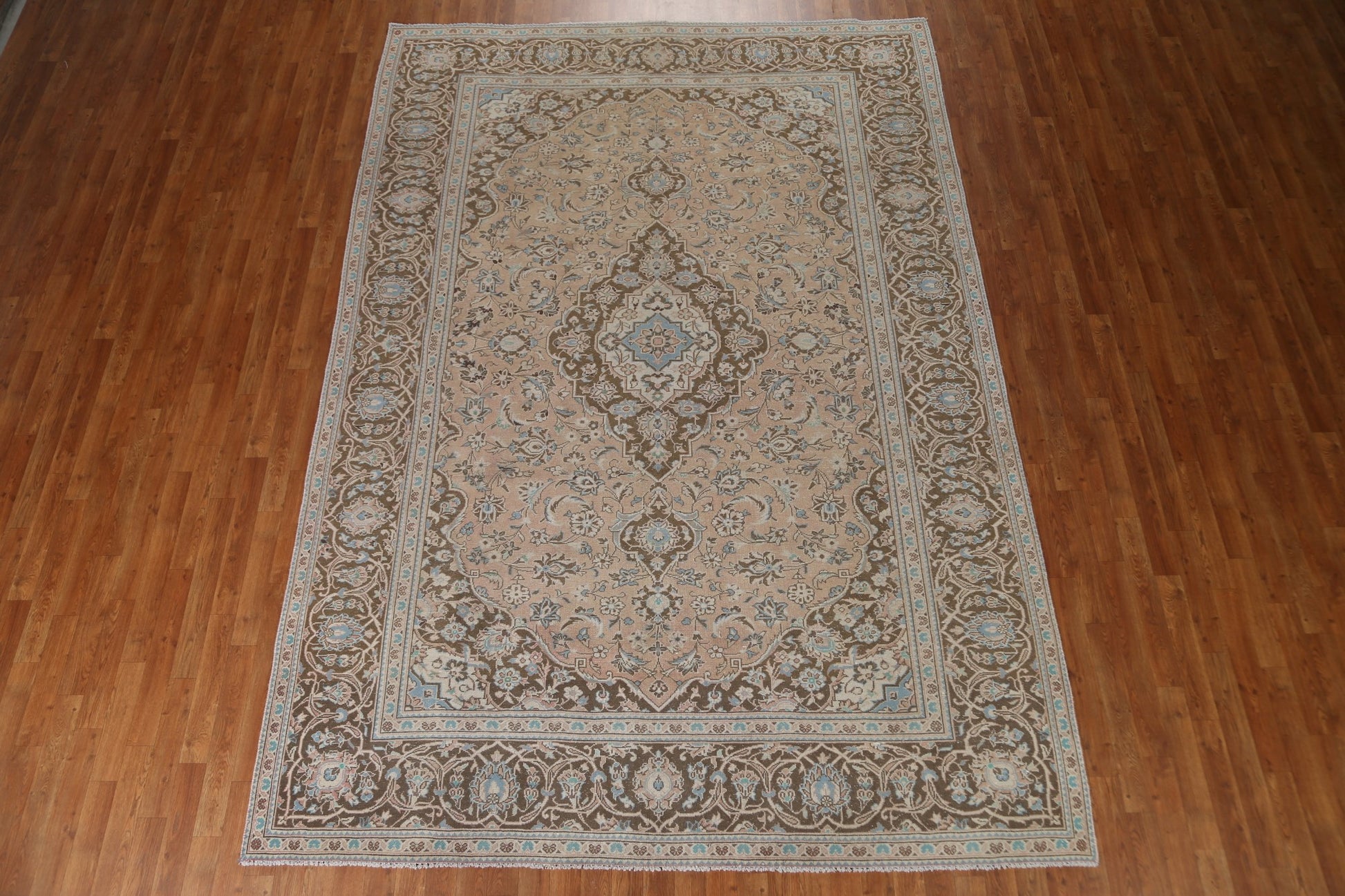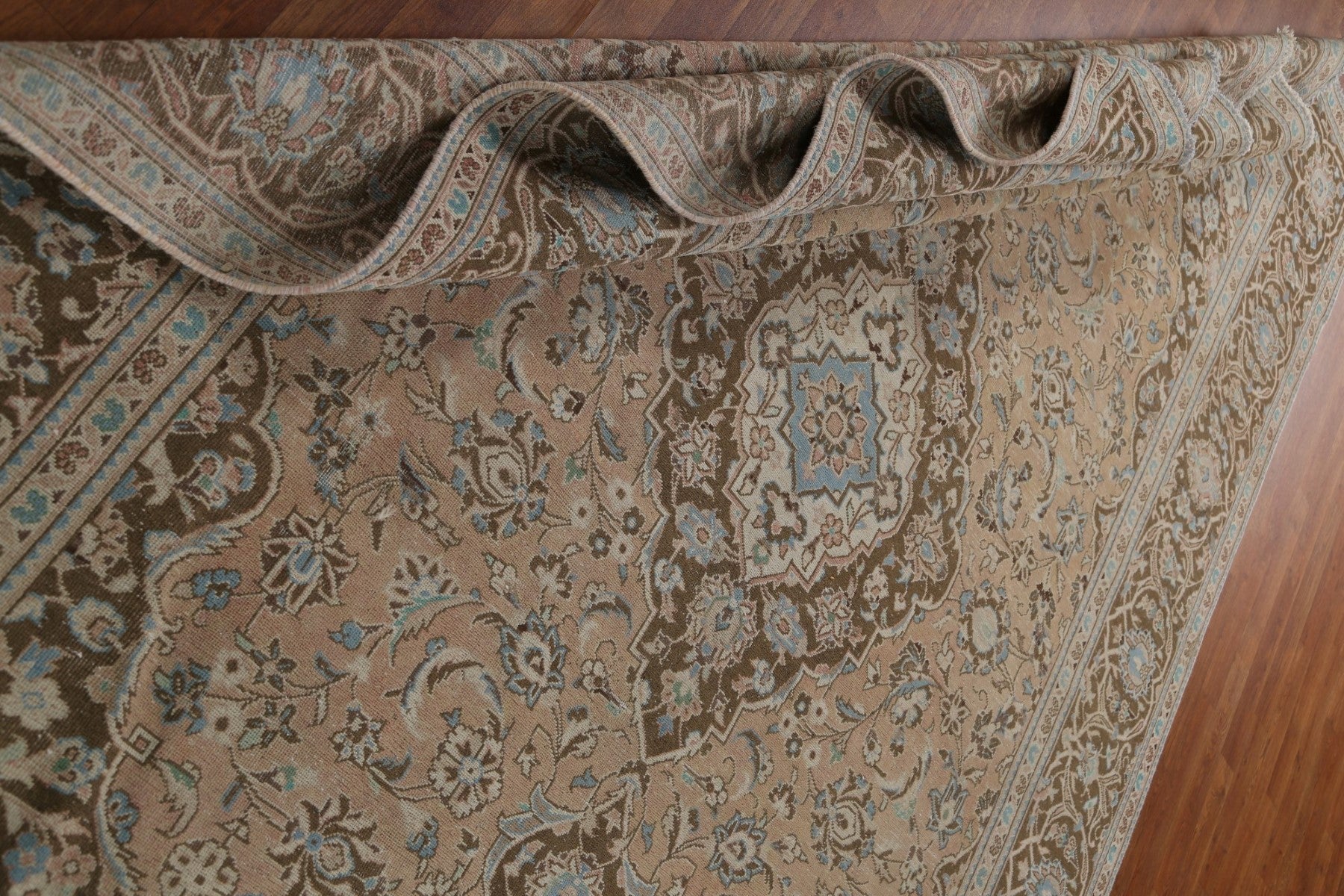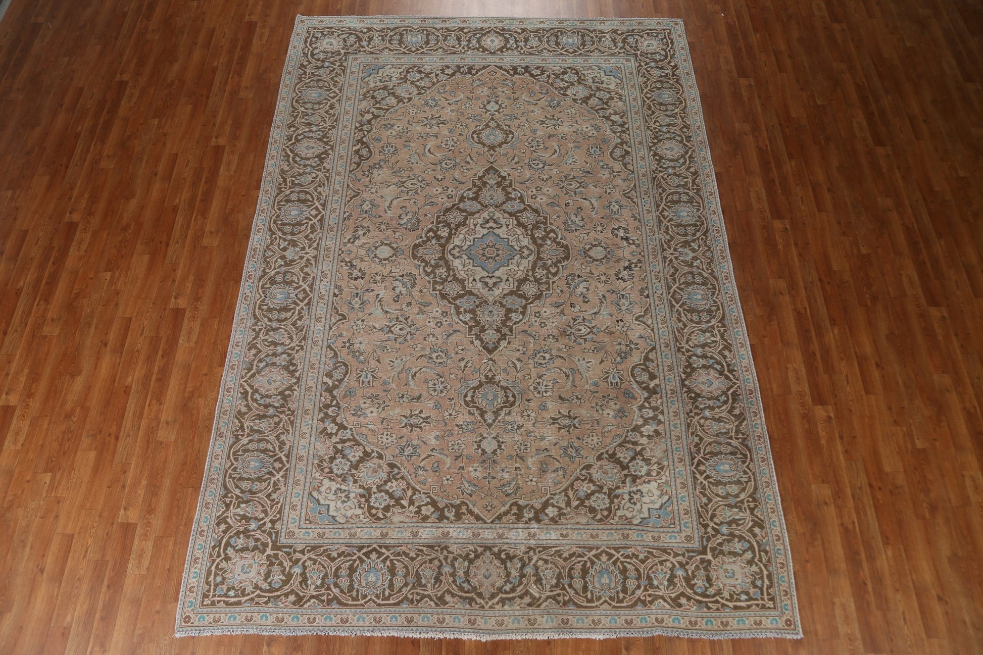 A Beautiful Genuine Persia ( Persia ) Kashan rug is Hand Knotted by skillful weavers in Persia ( Persia ) with 100% Wool Material. This rug is in Very Good (Evenly Low Pile) condition. dimensions are 11' 3'' X 7' 9'' in foot and 343 X 236 in centimeter. the primary color is Peach.