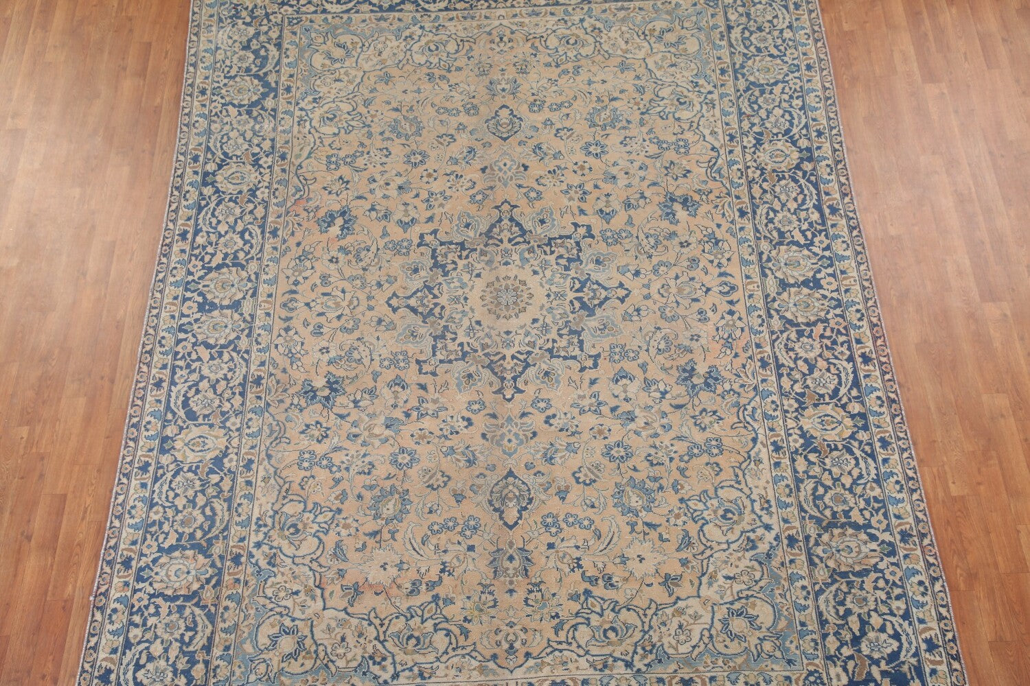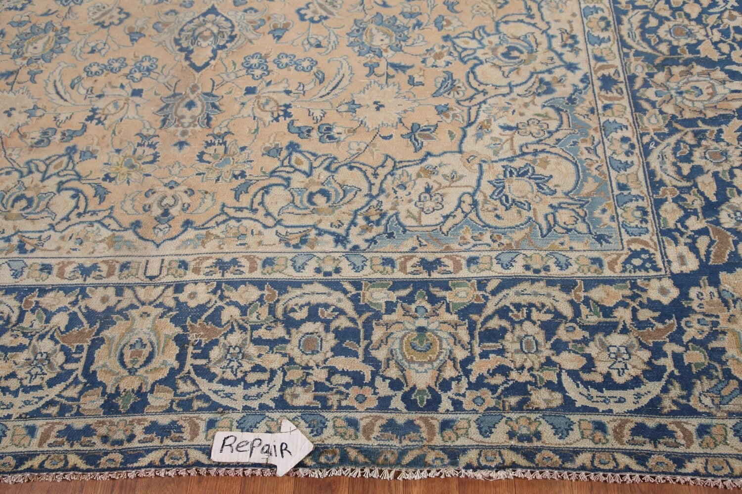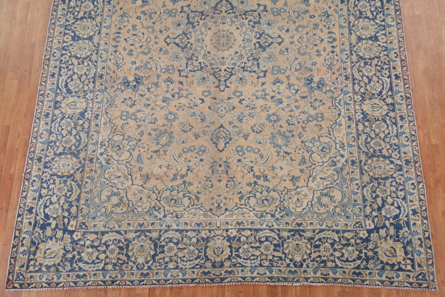 A Beautiful Genuine Persia ( Persia ) Kashan rug is Hand Knotted by skillful weavers in Persia ( Persia ) with 100% Wool Material. This rug is in Very Good (Low Pile-Repair) condition. dimensions are 11' 6'' X 8' 5'' in foot and 351 X 257 in centimeter. the primary color is Peach.