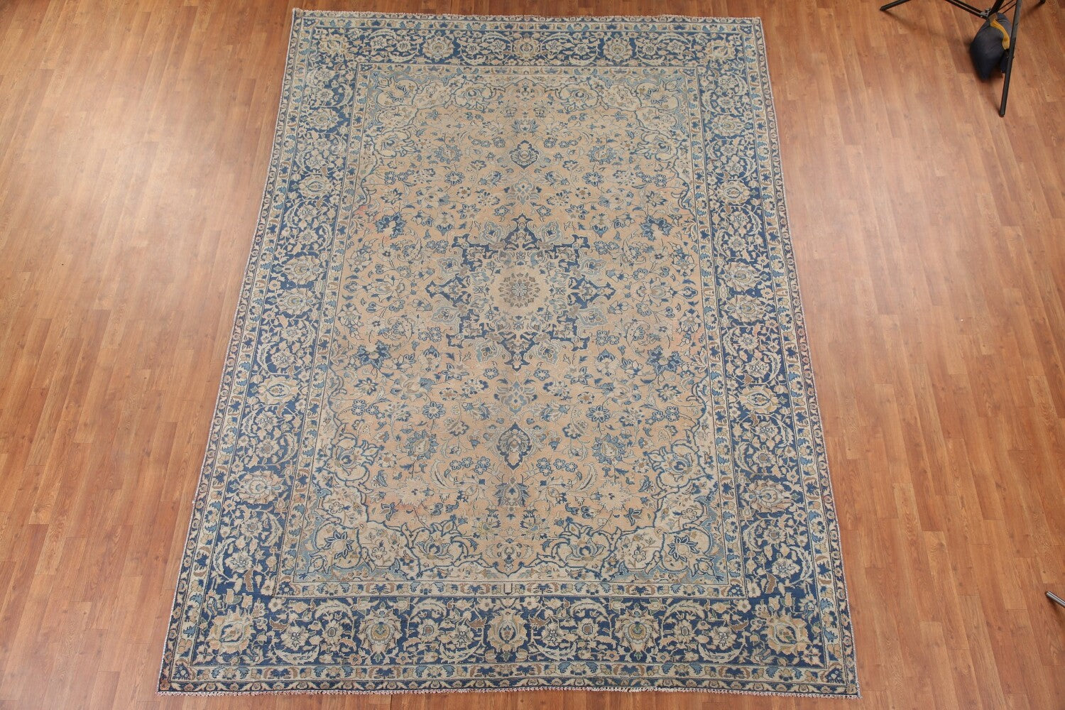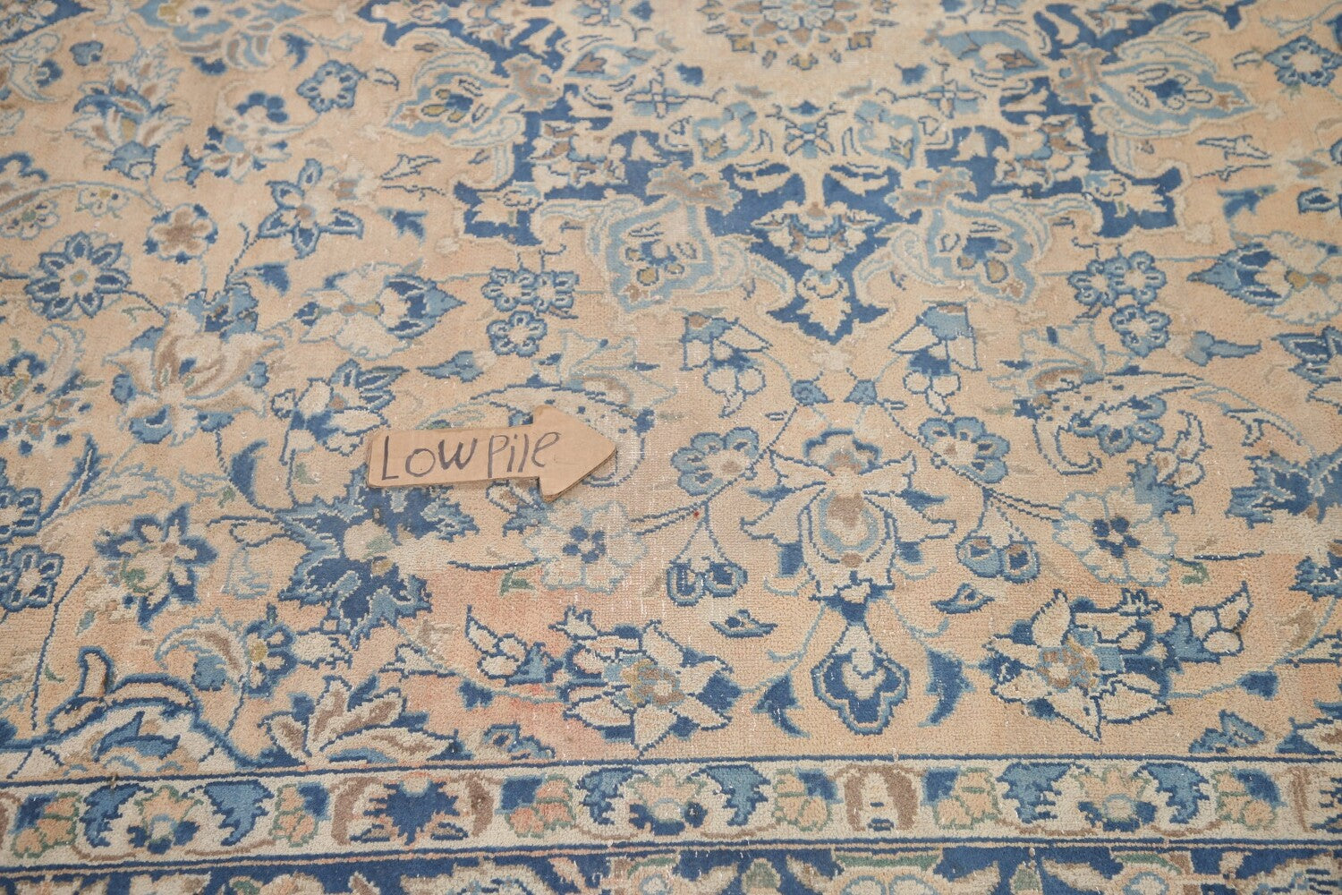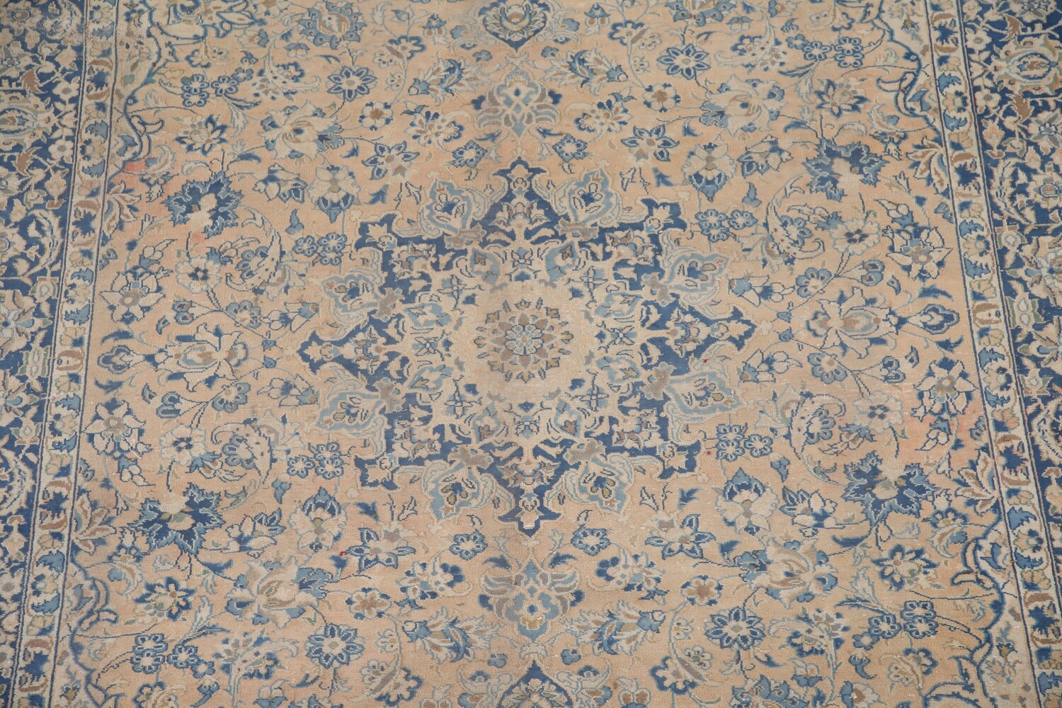 A Beautiful Genuine Persia ( Persia ) Kashan rug is Hand Knotted by skillful weavers in Persia ( Persia ) with 100% Wool Material. This rug is in Very Good (Low Pile-Repair) condition. dimensions are 11' 6'' X 8' 5'' in foot and 351 X 257 in centimeter. the primary color is Peach.