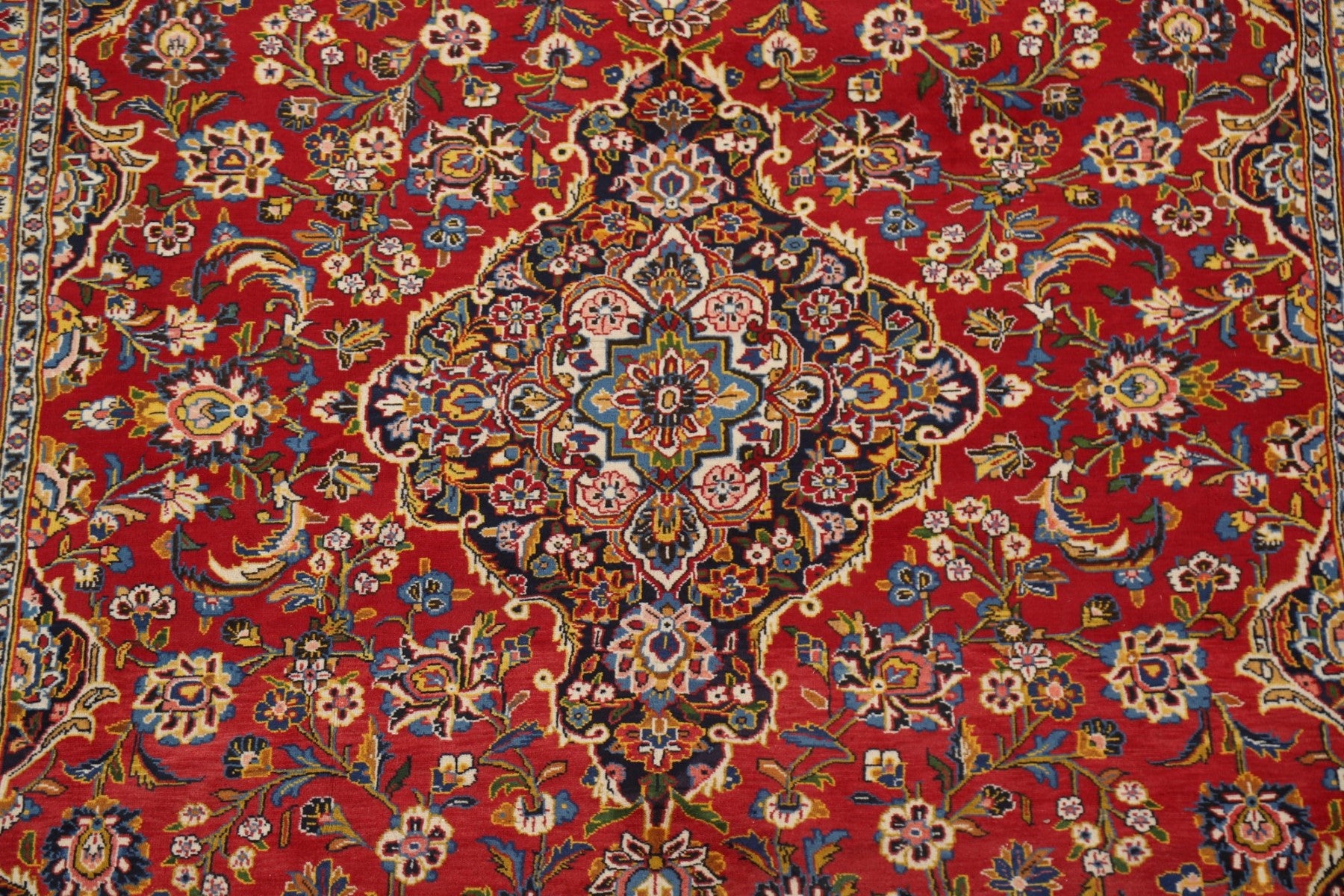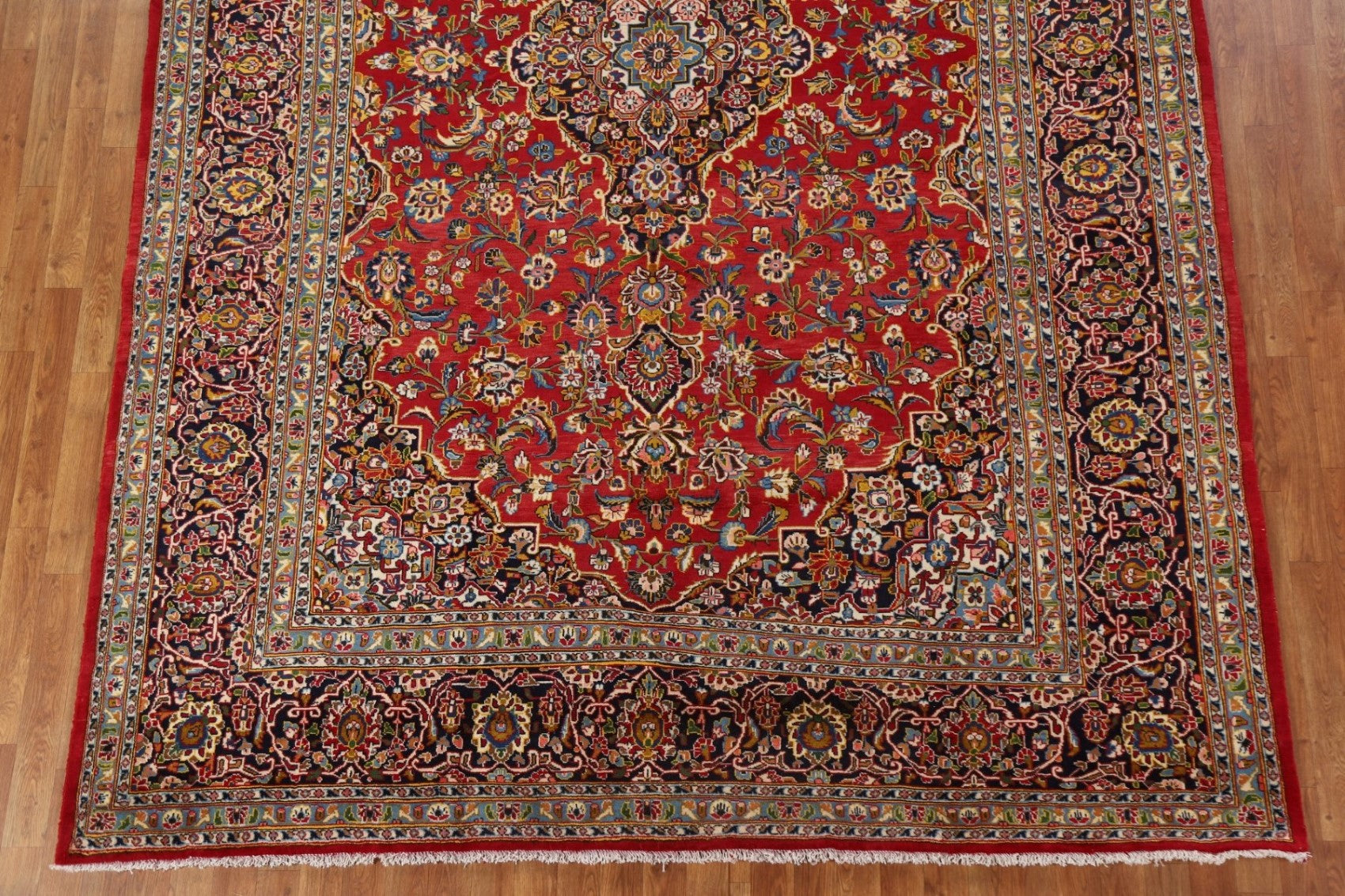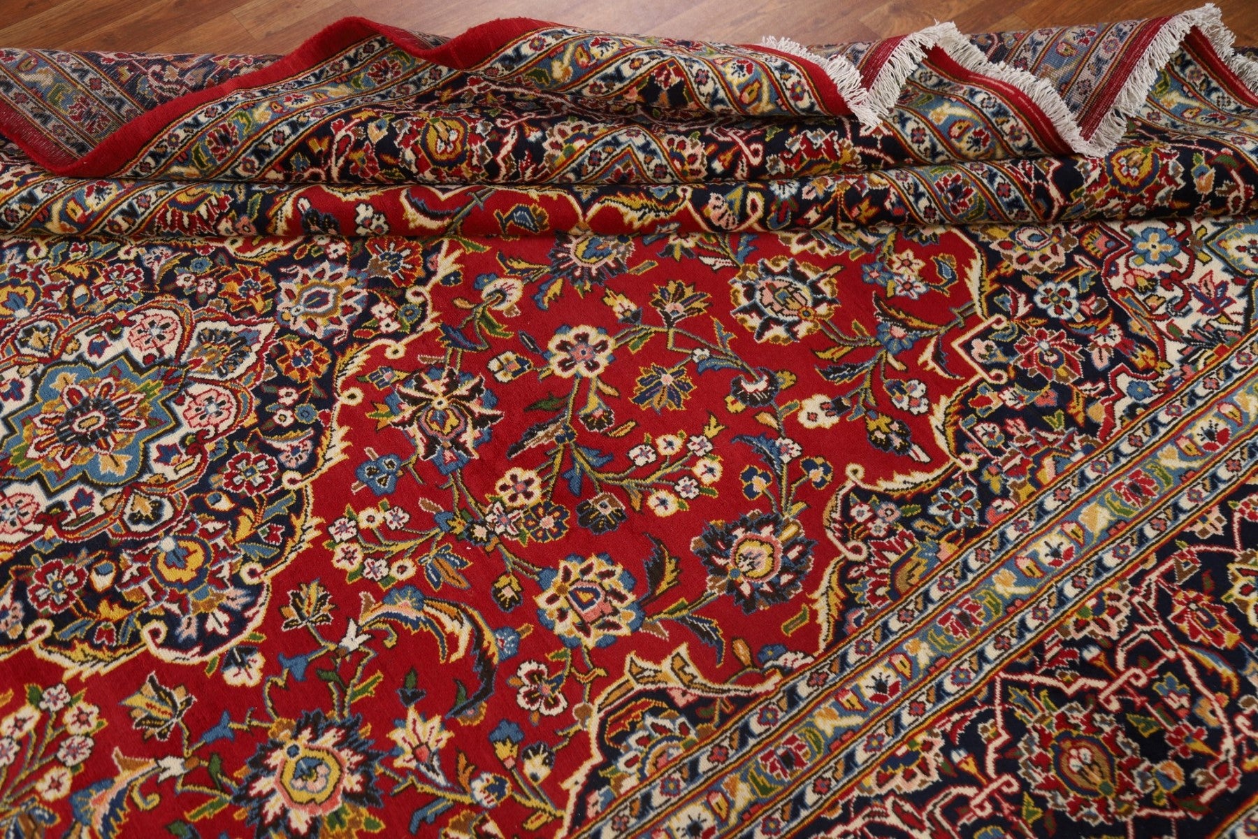 A Beautiful Genuine Persia ( Persia ) Kashan rug is Hand Knotted by skillful weavers in Persia ( Persia ) with 100% Wool Material. This rug is in Very Good condition. dimensions are 11' 10'' X 7' 11'' in foot and 361 X 241 in centimeter. the primary color is Red.