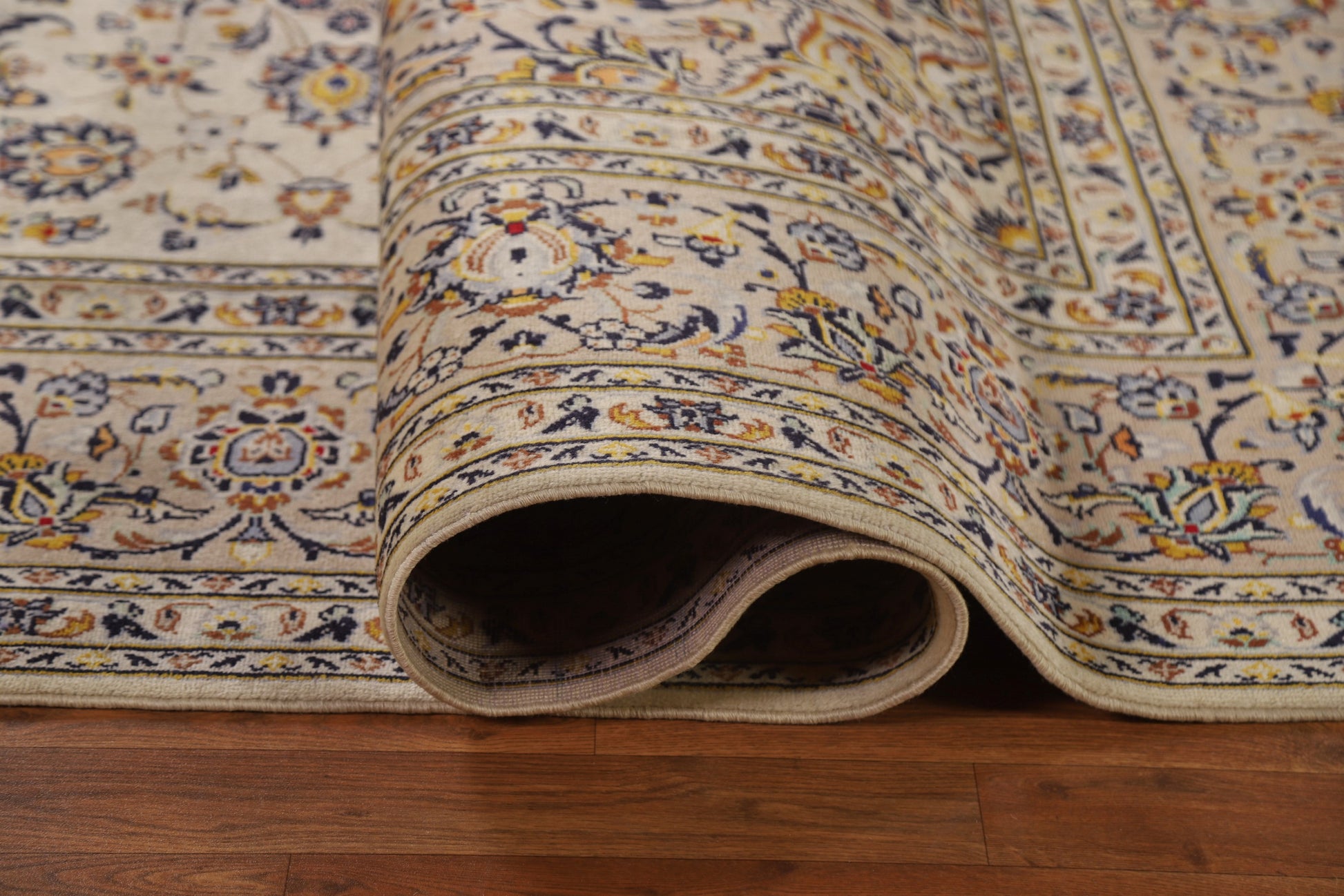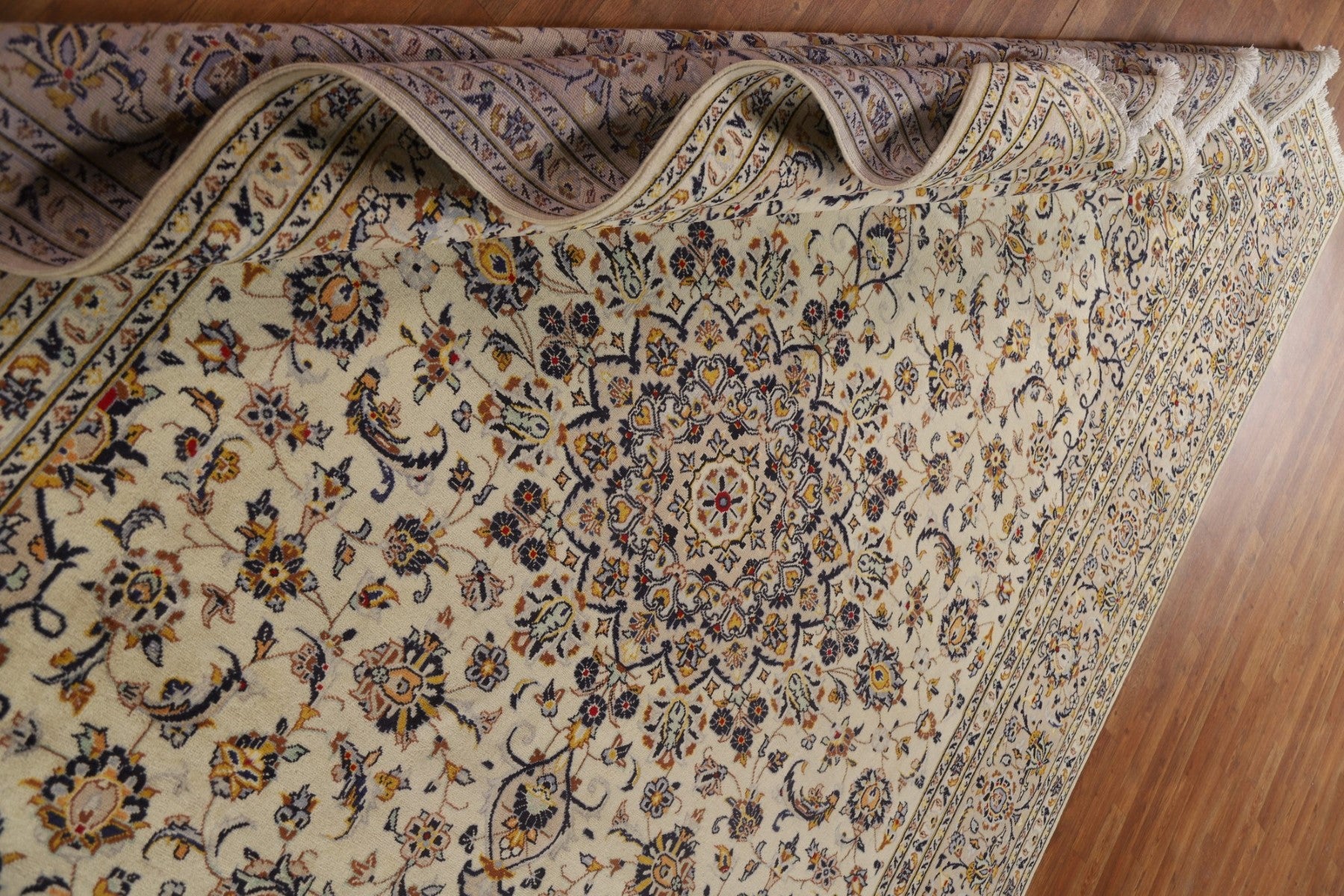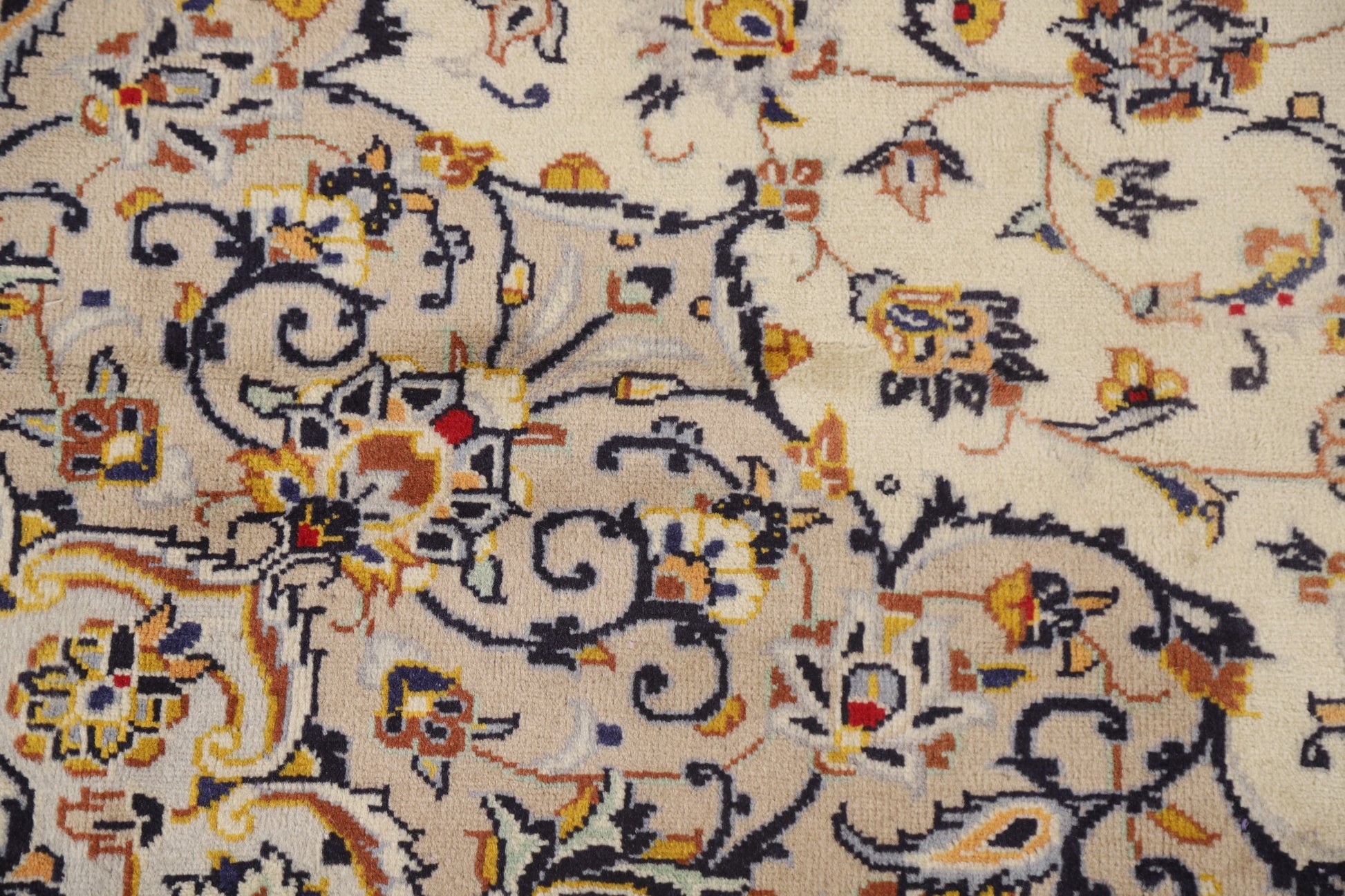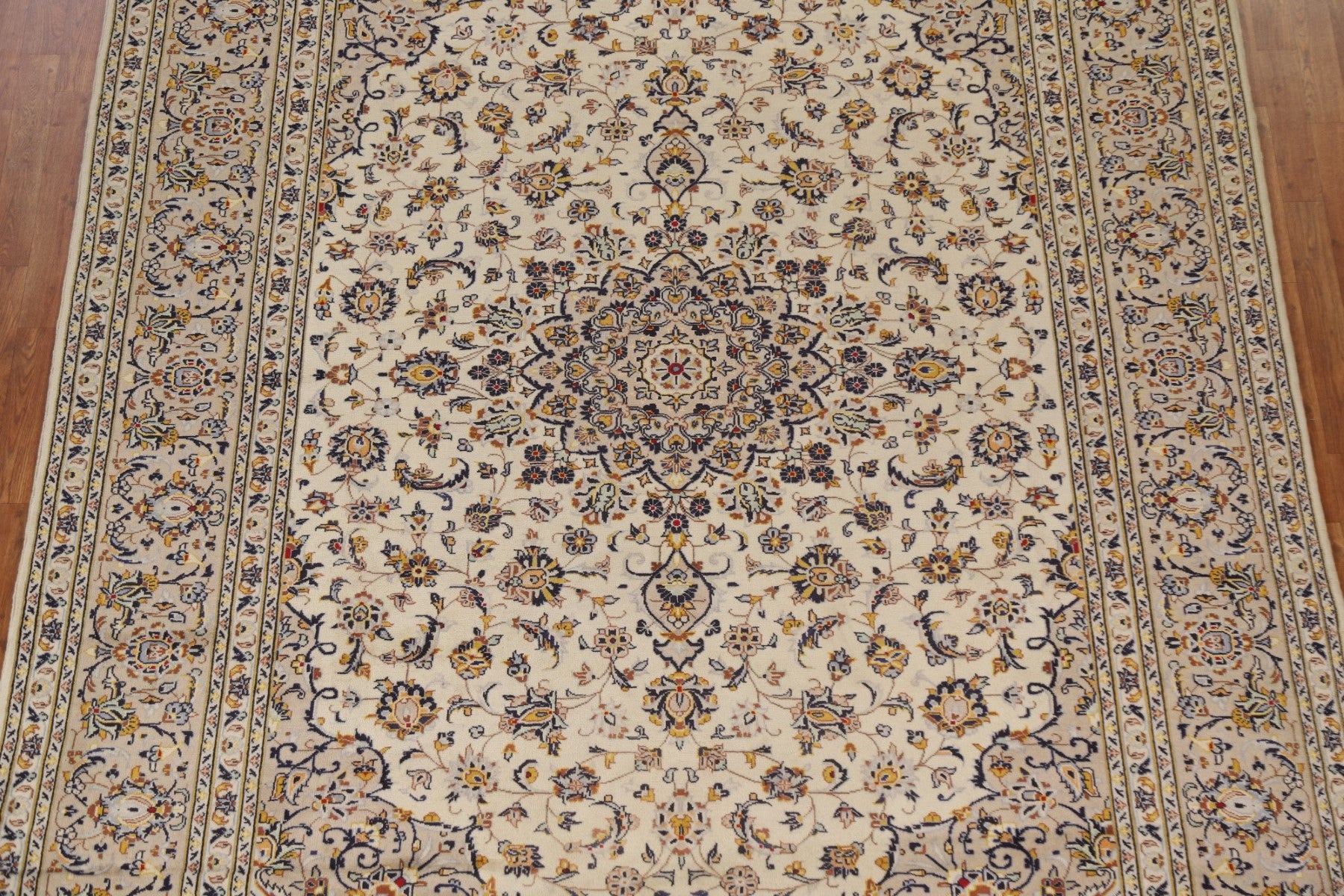 A Beautiful Genuine Persia ( Persia ) Kashan rug is Hand Knotted by skillful weavers in Persia ( Persia ) with 100% Wool Material. This rug is in Very Good condition. dimensions are 11' 9'' X 8' 4'' in foot and 358 X 254 in centimeter. the primary color is Beige & Ivories.
