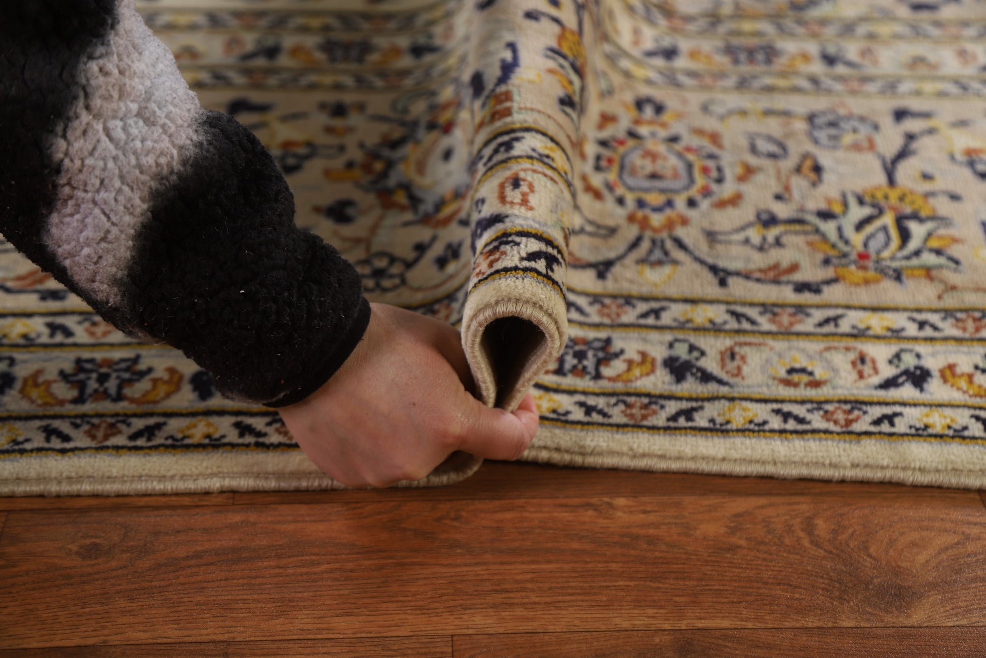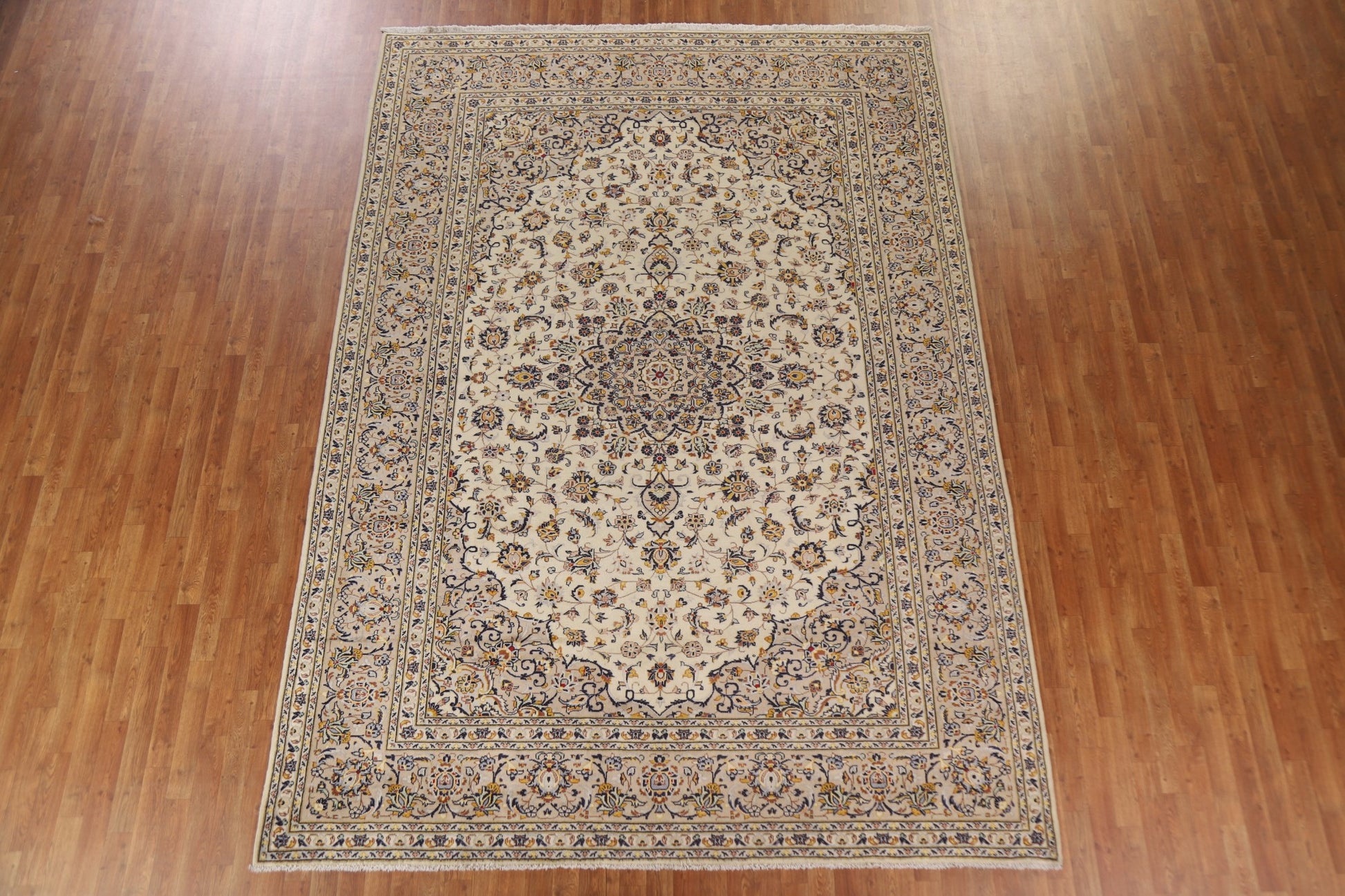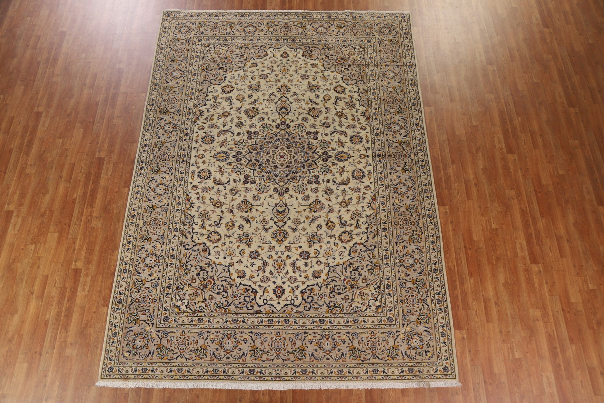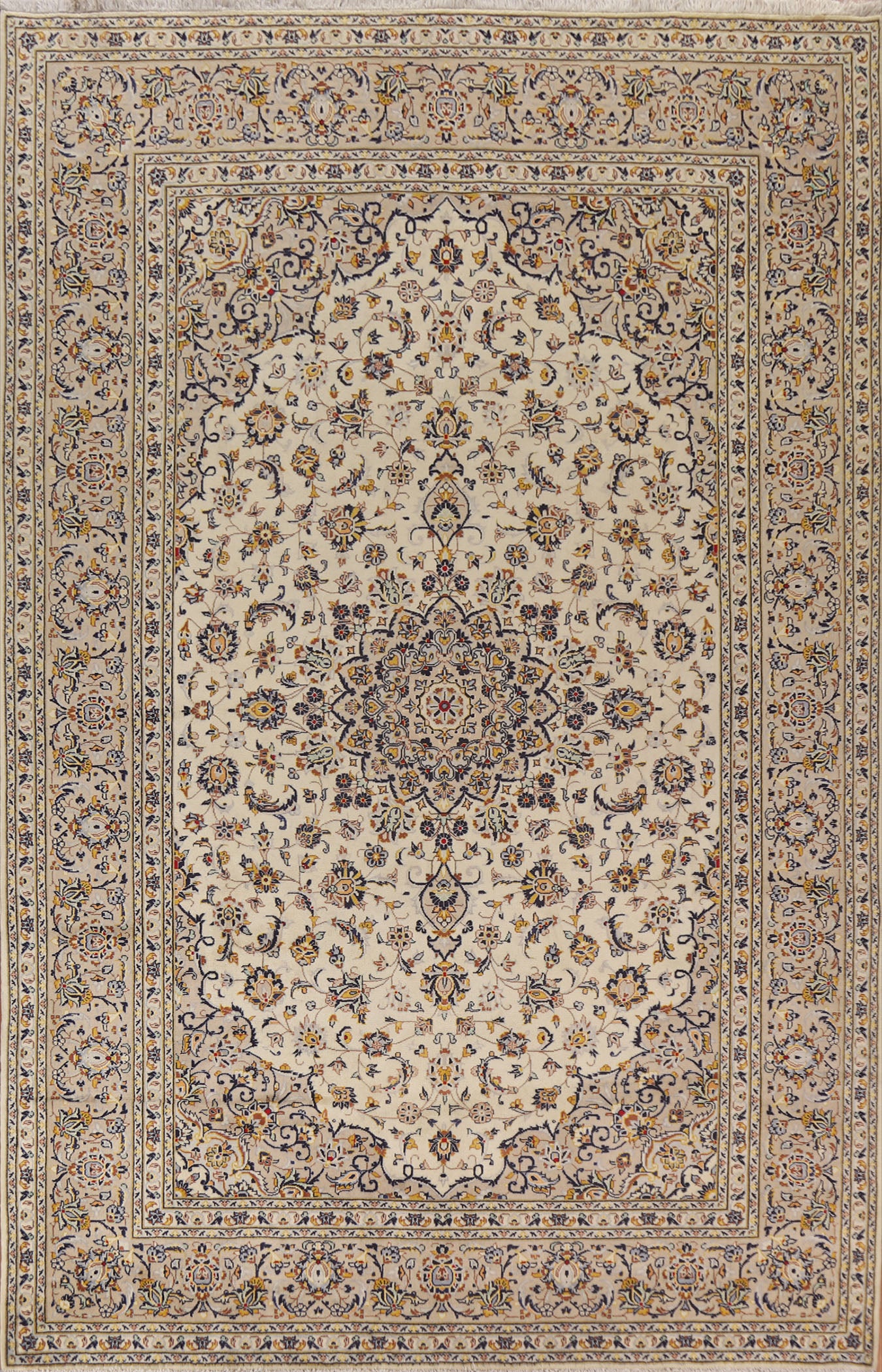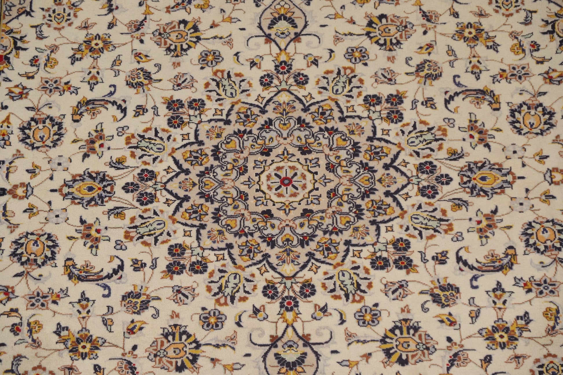 A Beautiful Genuine Persia ( Persia ) Kashan rug is Hand Knotted by skillful weavers in Persia ( Persia ) with 100% Wool Material. This rug is in Very Good condition. dimensions are 11' 9'' X 8' 4'' in foot and 358 X 254 in centimeter. the primary color is Beige & Ivories.