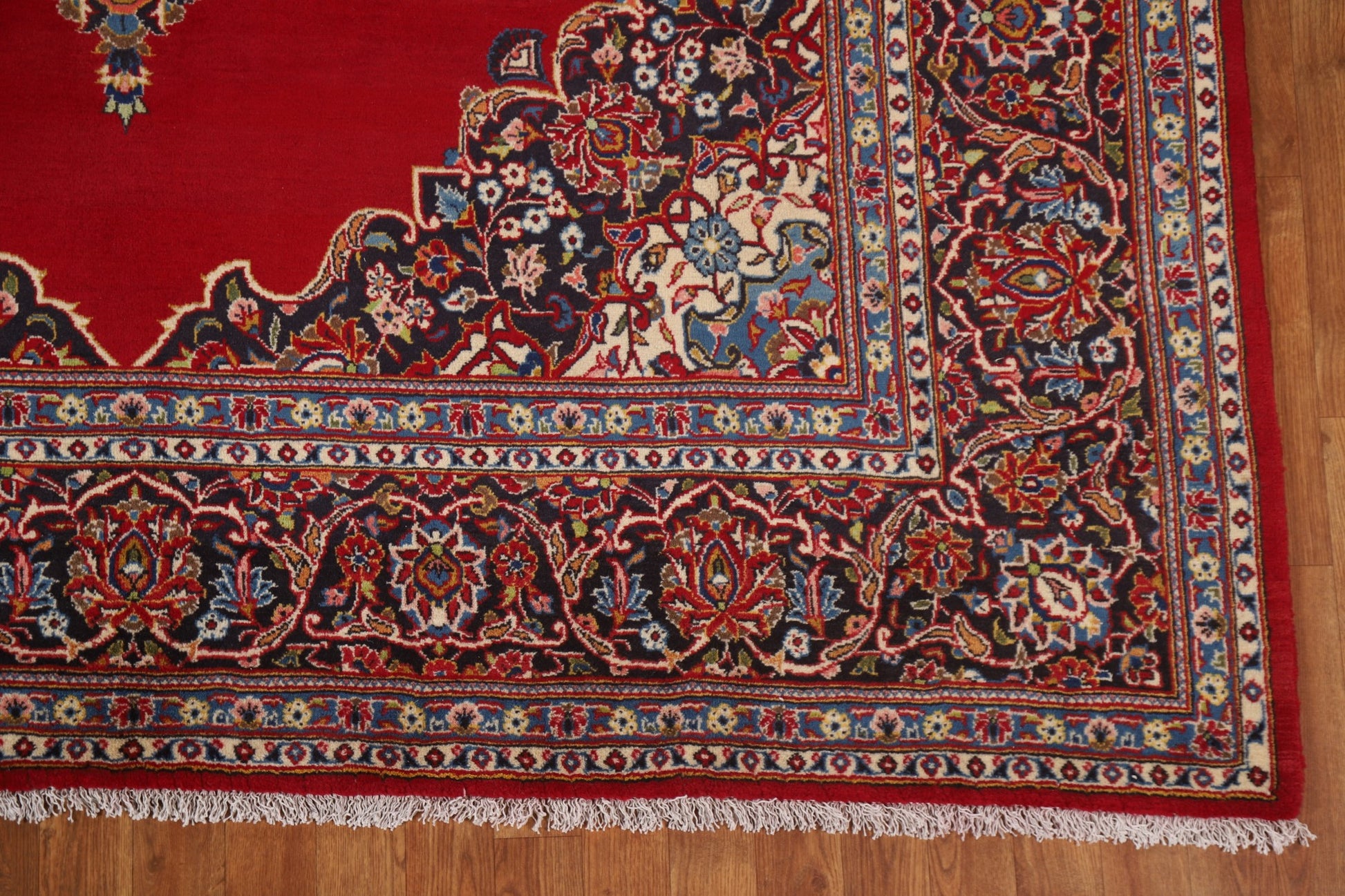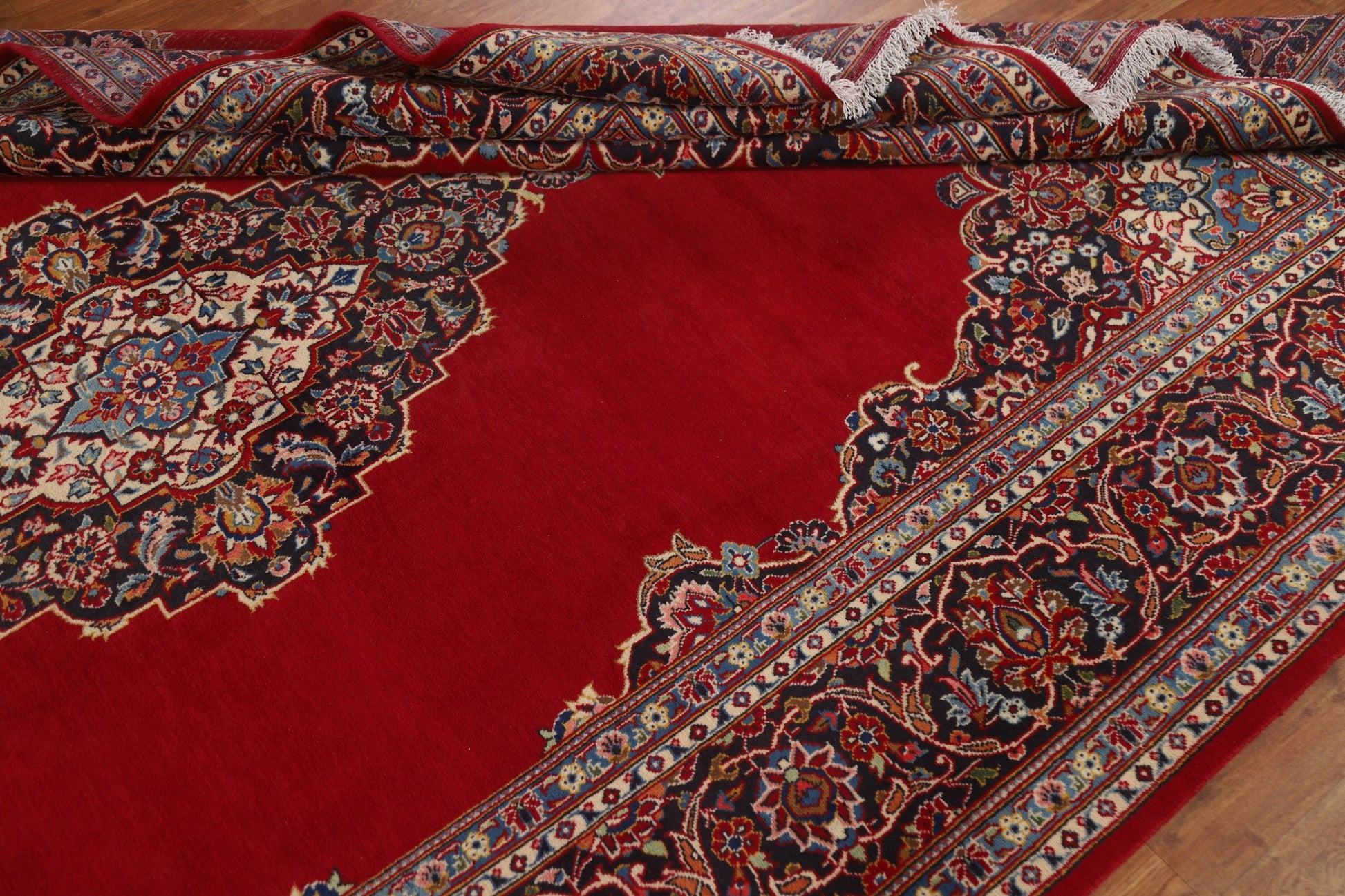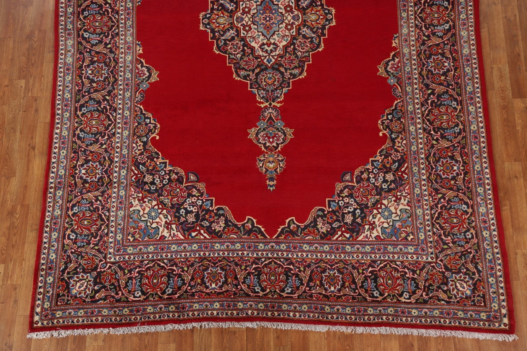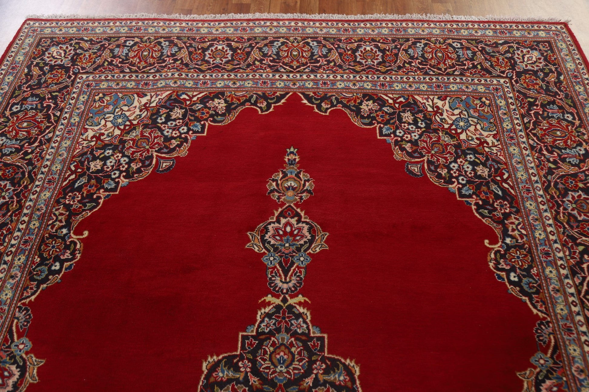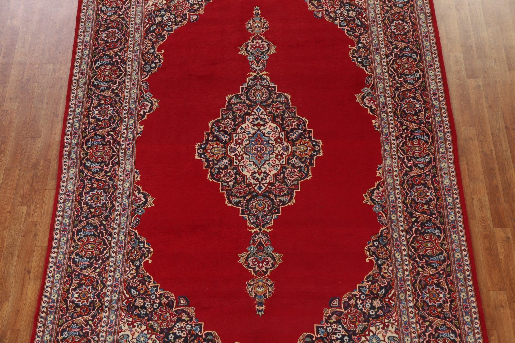 A Beautiful Genuine Persia ( Persia ) Kashan rug is Hand Knotted by skillful weavers in Persia ( Persia ) with 100% Wool Material. This rug is in Excellent condition. dimensions are 11' 7'' X 7' 6'' in foot and 353 X 229 in centimeter. the primary color is Red.