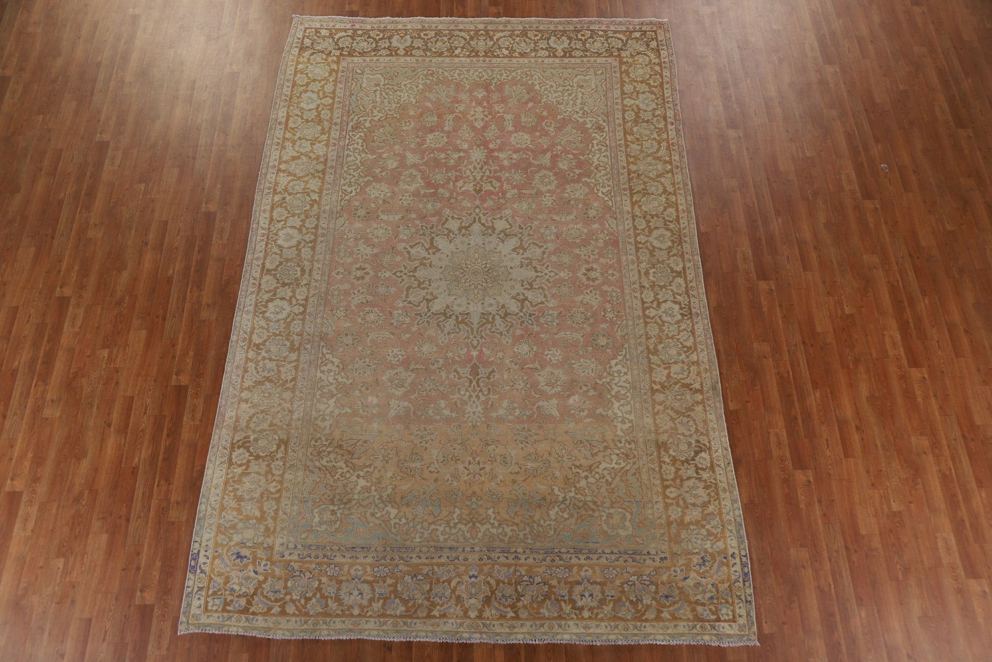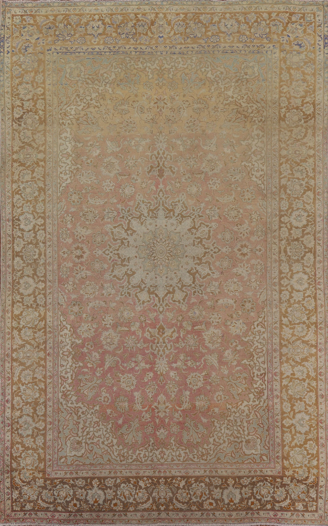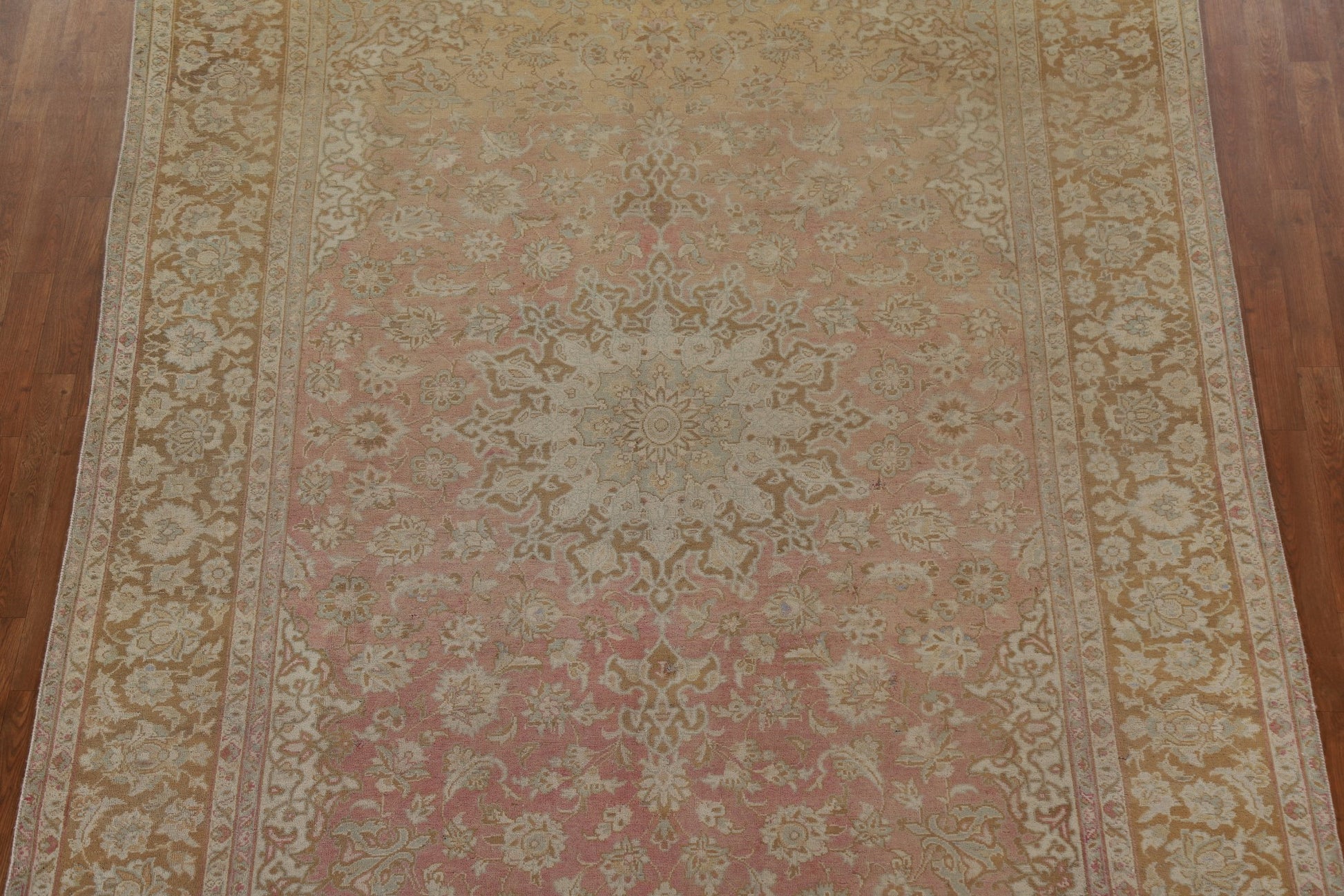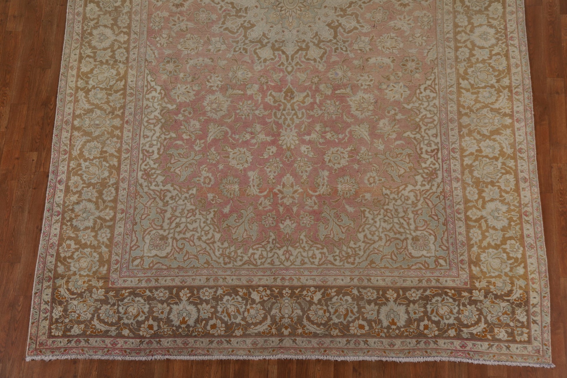 A Beautiful Genuine Persia ( Persia ) Kashan rug is Hand Knotted by skillful weavers in Persia ( Persia ) with 100% Wool Material. This rug is in Very Good (Low Pile-Abrash) condition. dimensions are 11' 9'' X 7' 9'' in foot and 358 X 236 in centimeter. the primary color is Pink.