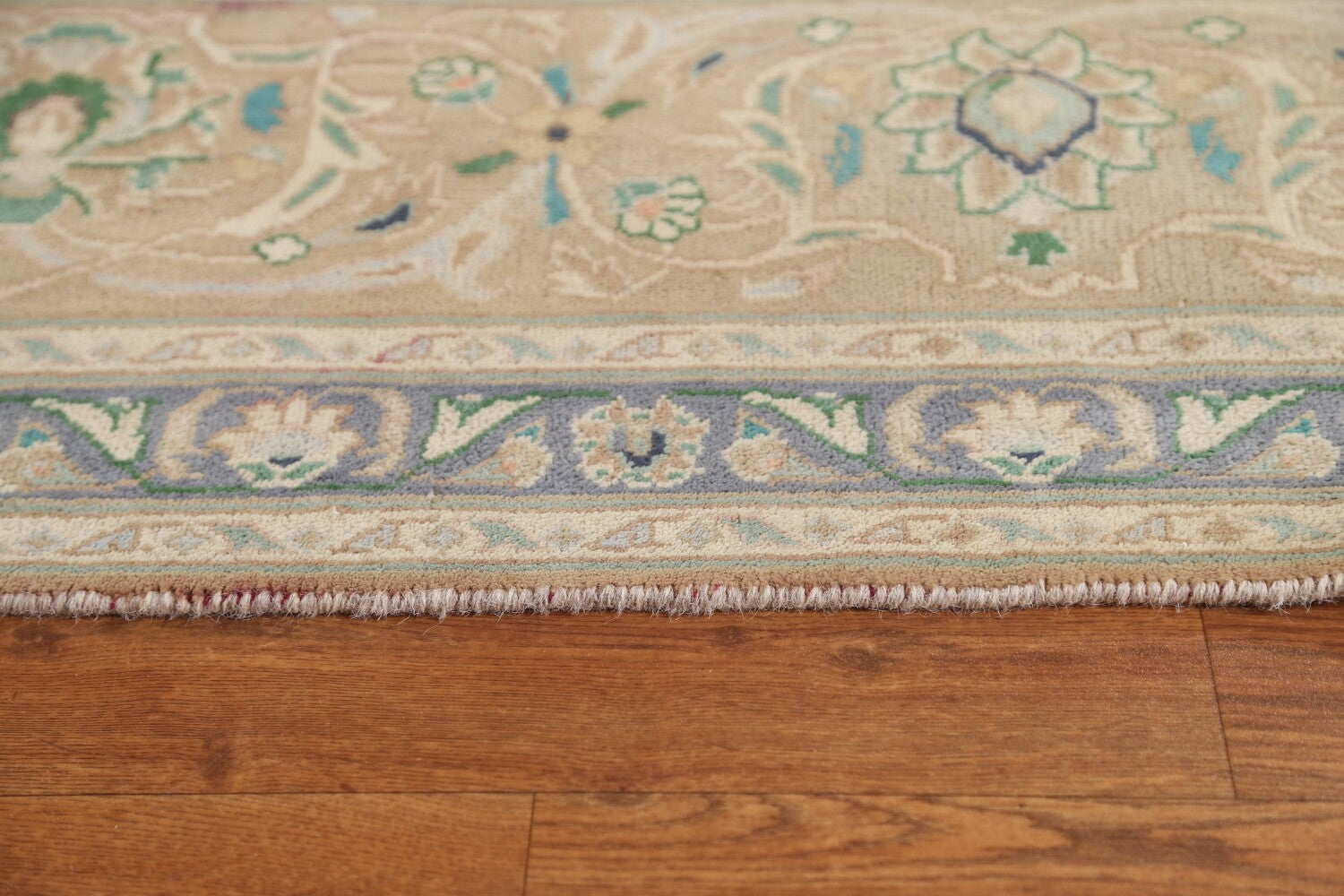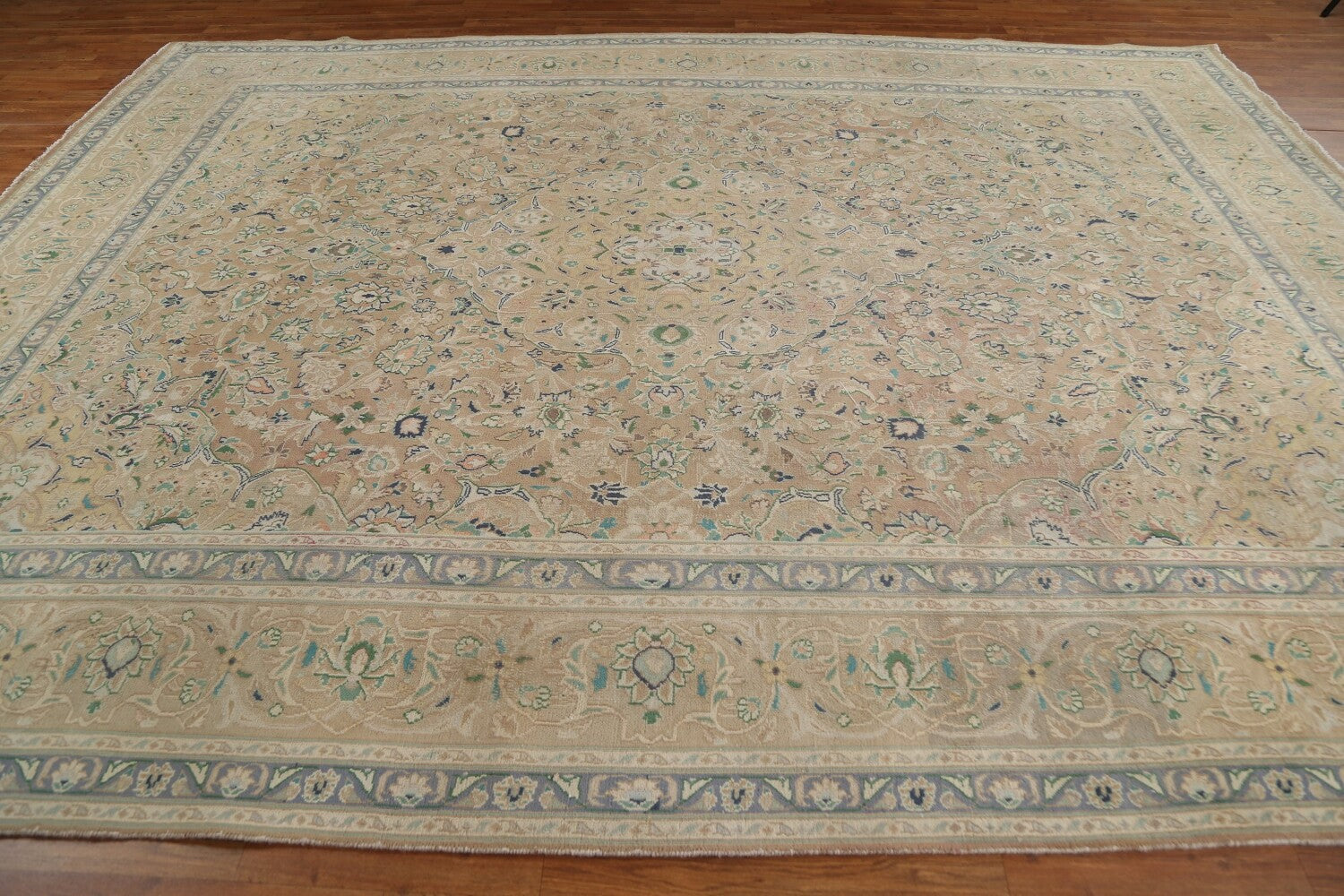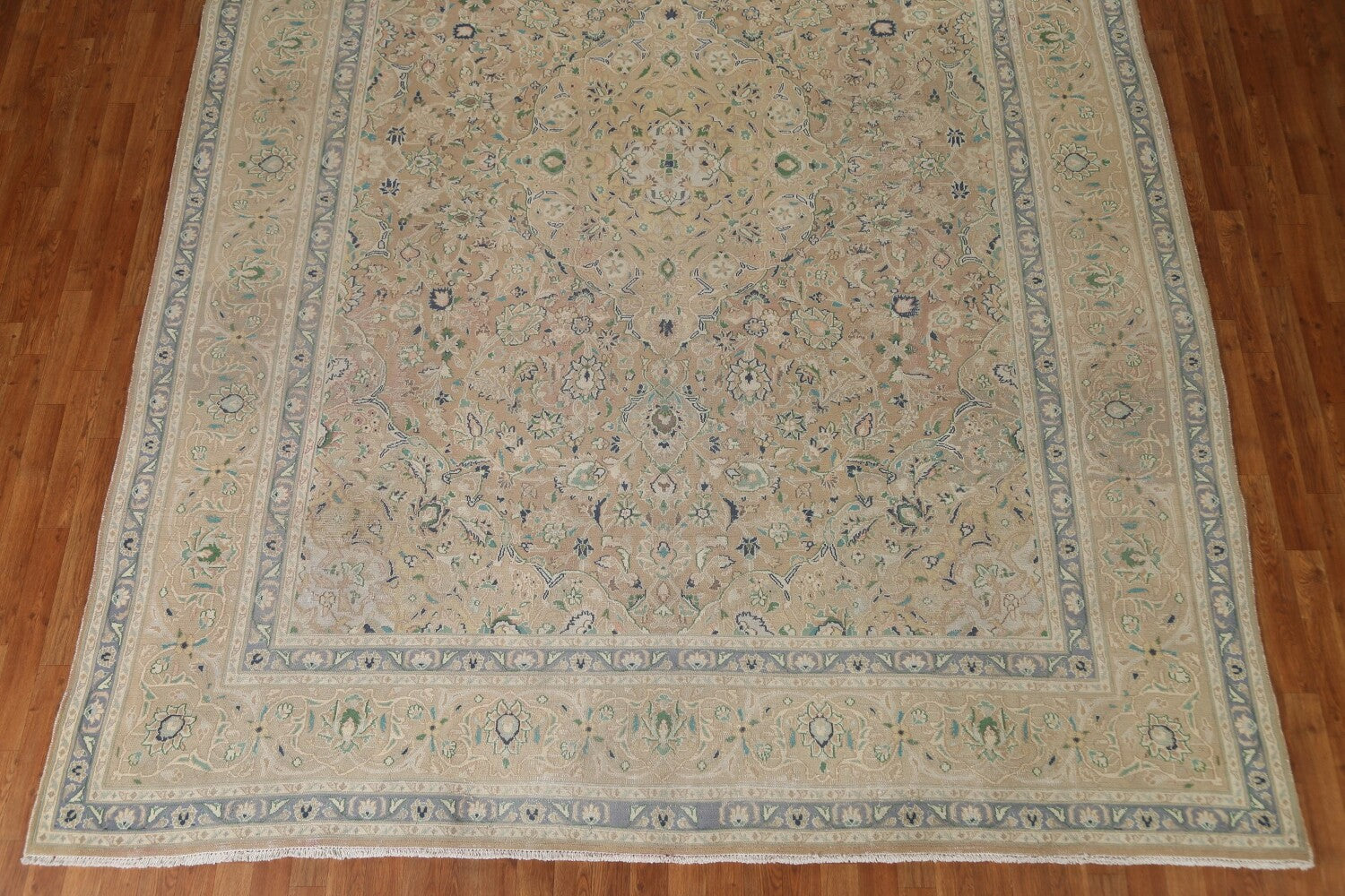 A Beautiful Genuine Persia ( Persia ) Kashan rug is Hand Knotted by skillful weavers in Persia ( Persia ) with 100% Wool Material. This rug is in Very Good (Evenly Low Pile) condition. dimensions are 12' 4'' X 9' 3'' in foot and 376 X 282 in centimeter. the primary color is Peach.