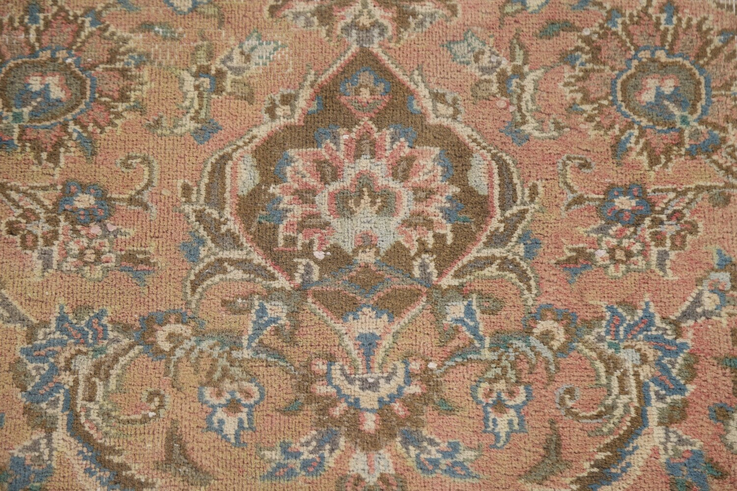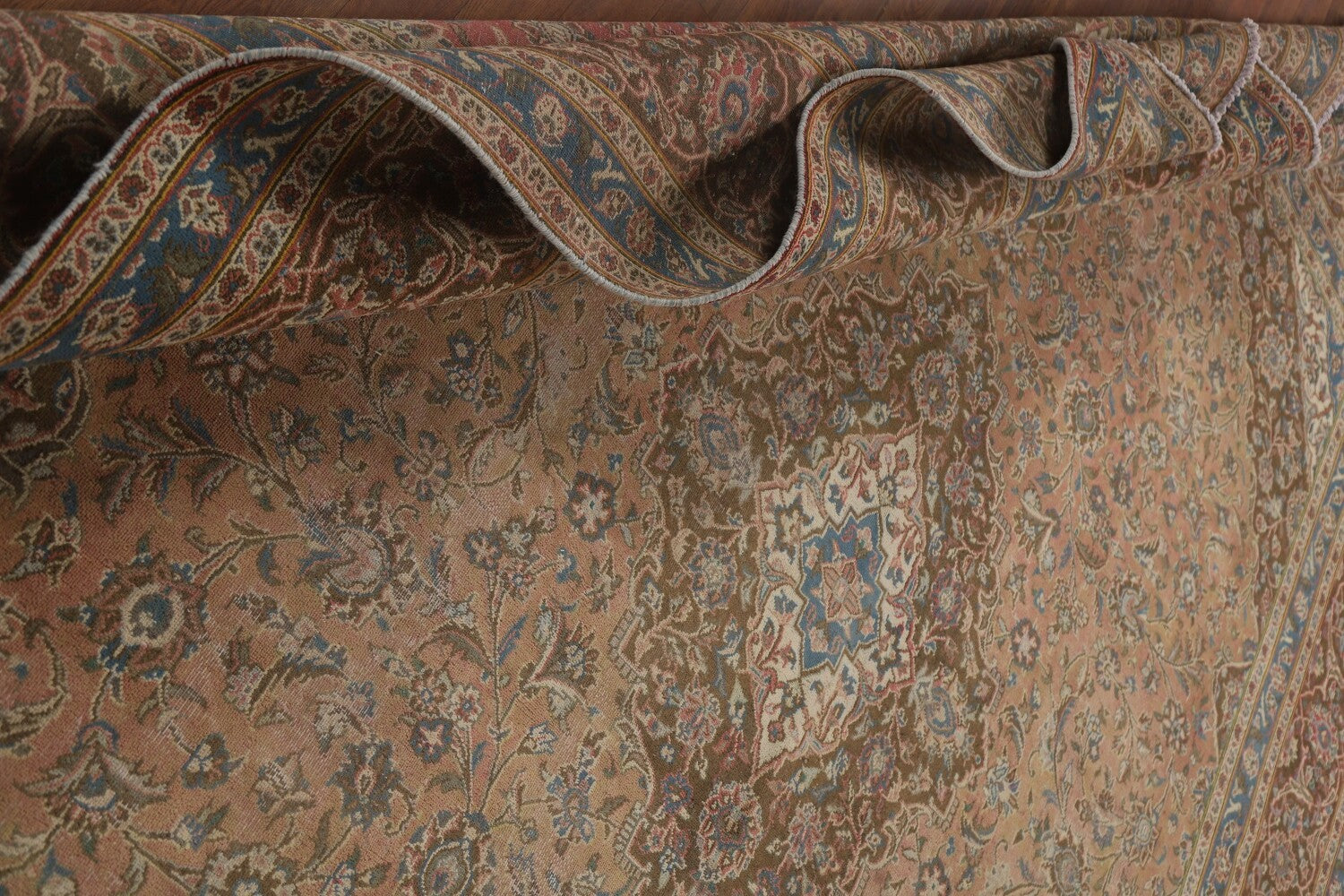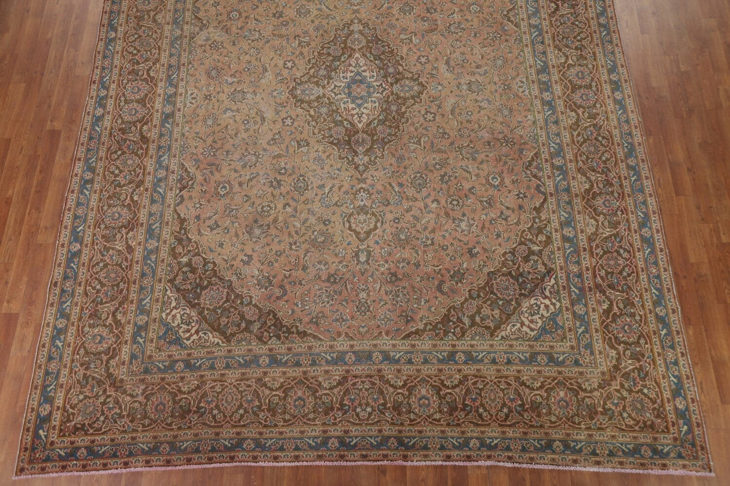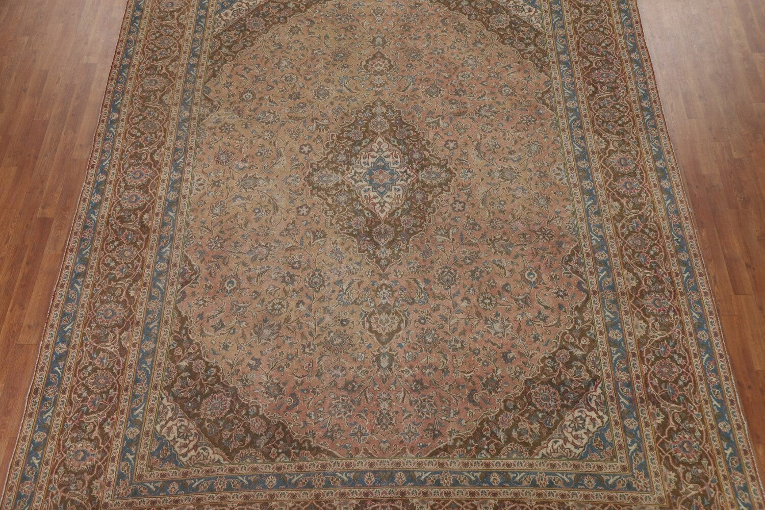 A Beautiful Genuine Persia ( Persia ) Kashan rug is Hand Knotted by skillful weavers in Persia ( Persia ) with 100% Wool Material. This rug is in Very Good (Low Pile) condition. dimensions are 12' 3'' X 9' 5'' in foot and 373 X 287 in centimeter. the primary color is Pink.