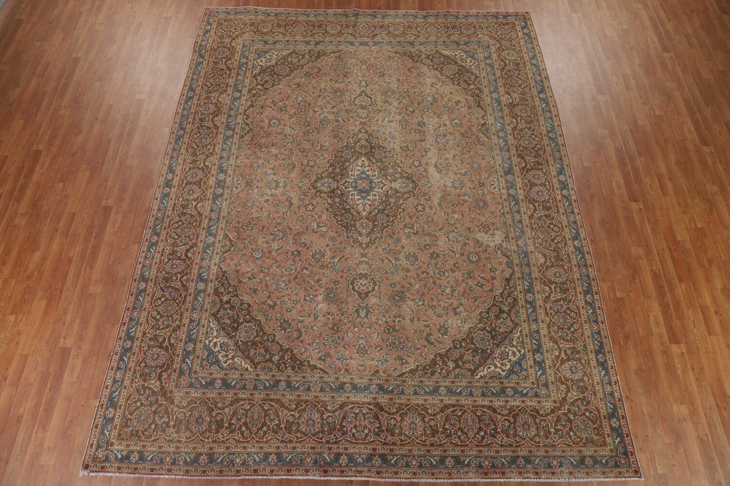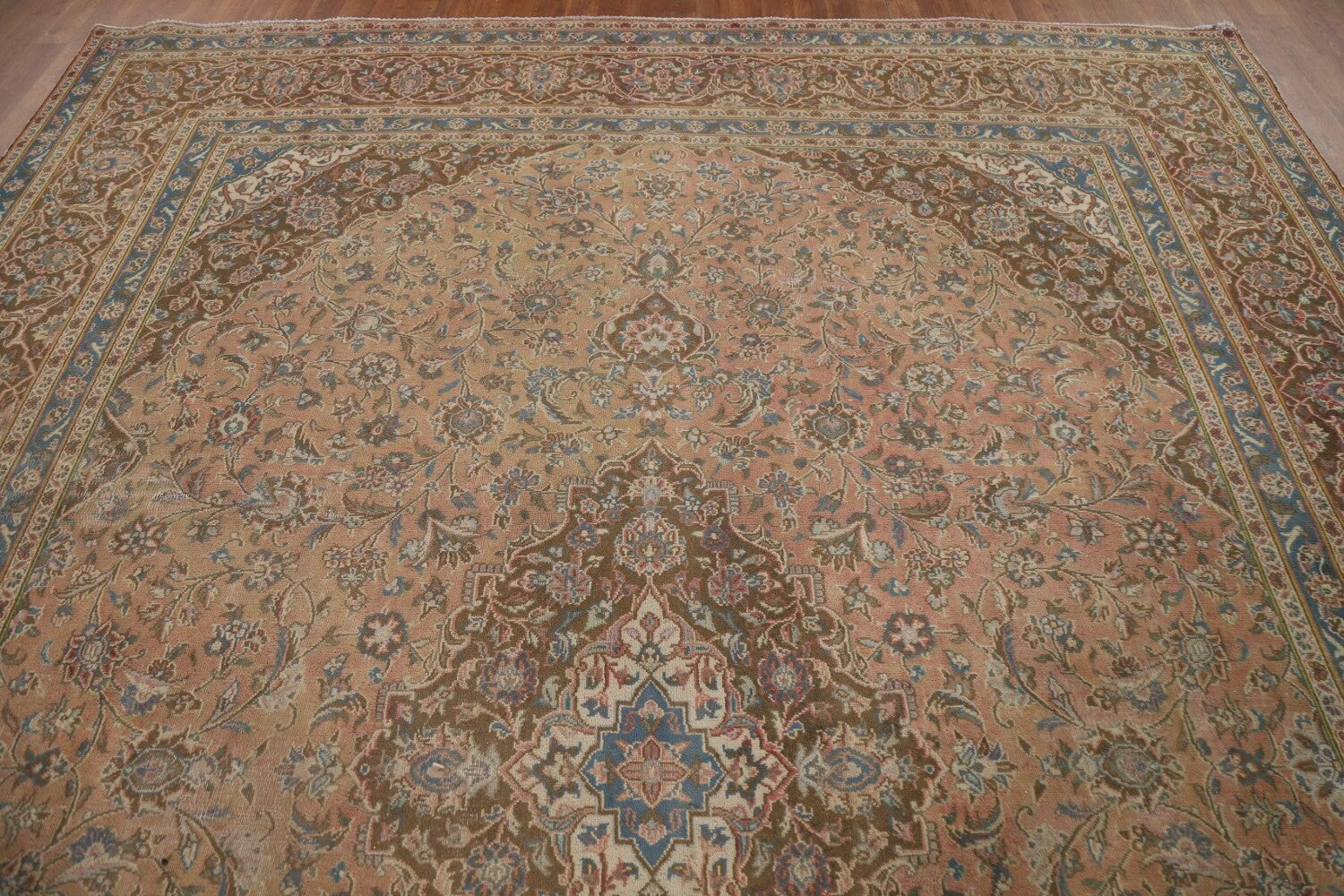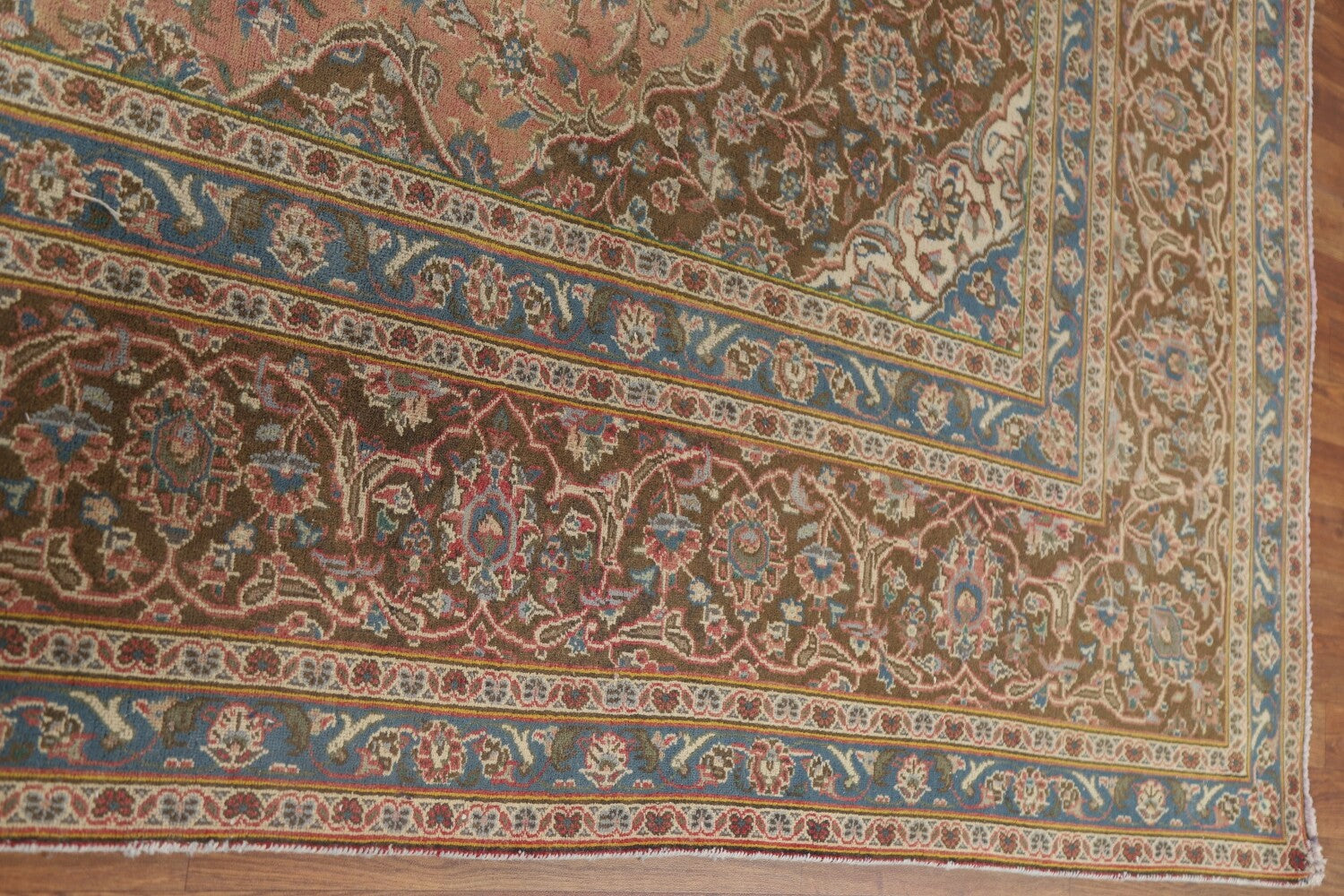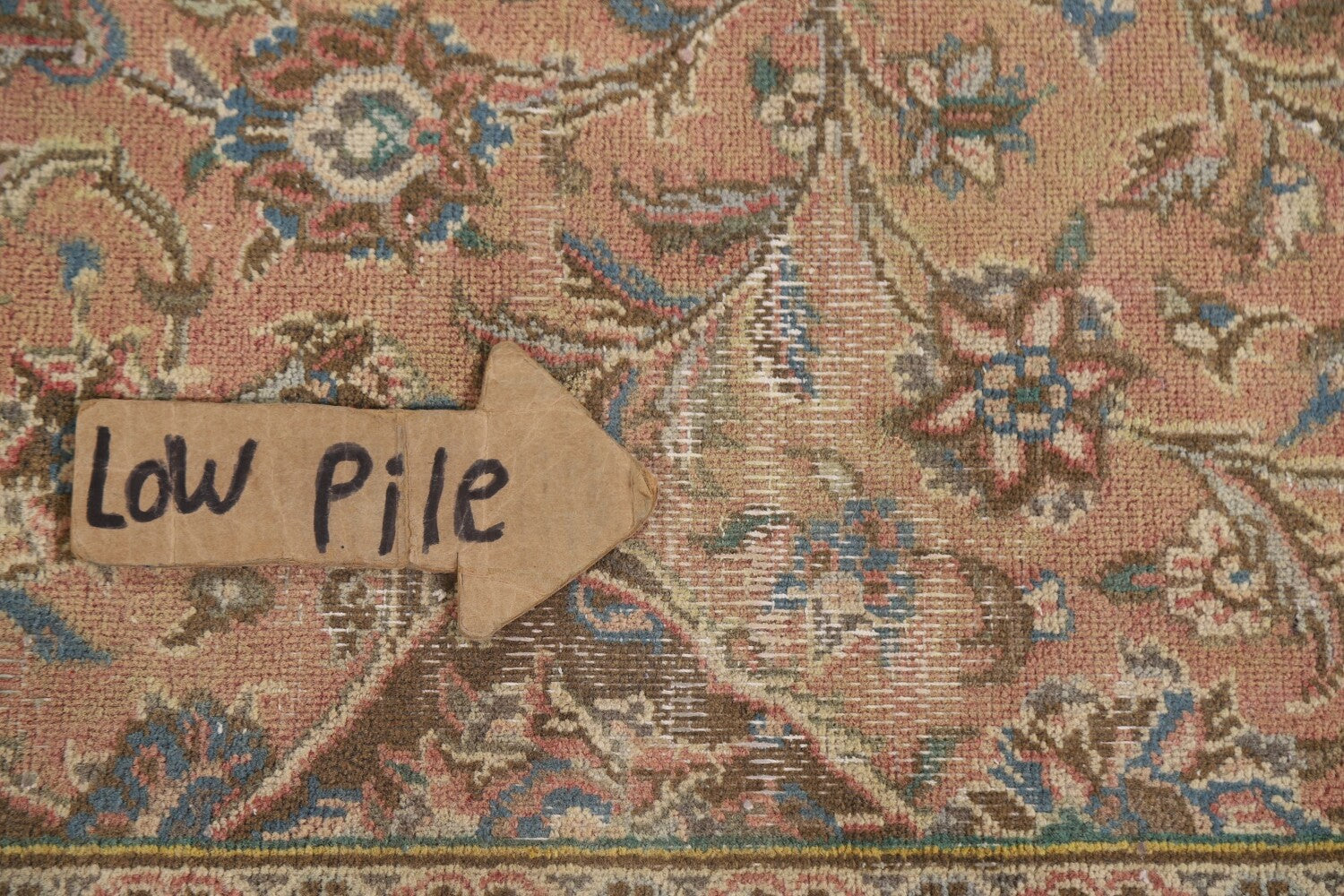 A Beautiful Genuine Persia ( Persia ) Kashan rug is Hand Knotted by skillful weavers in Persia ( Persia ) with 100% Wool Material. This rug is in Very Good (Low Pile) condition. dimensions are 12' 3'' X 9' 5'' in foot and 373 X 287 in centimeter. the primary color is Pink.