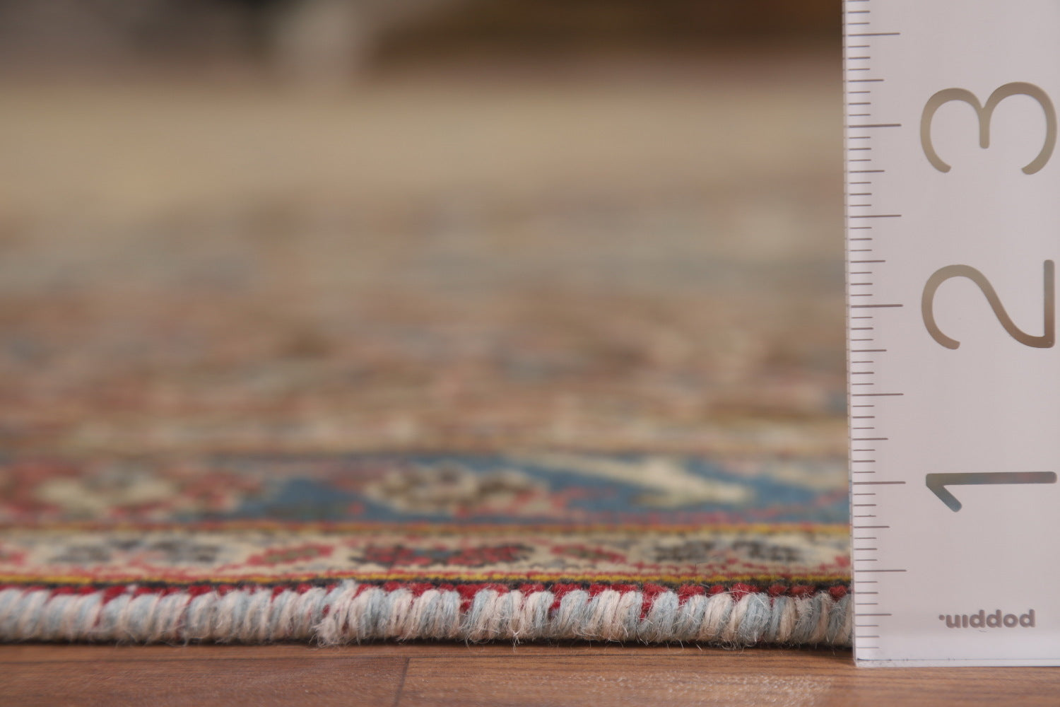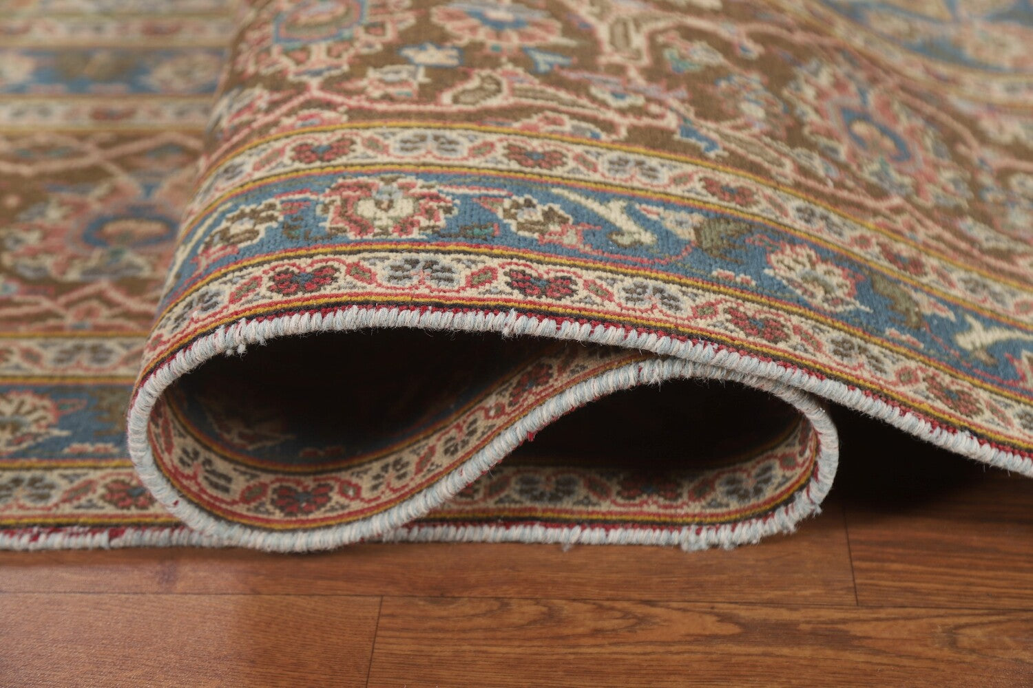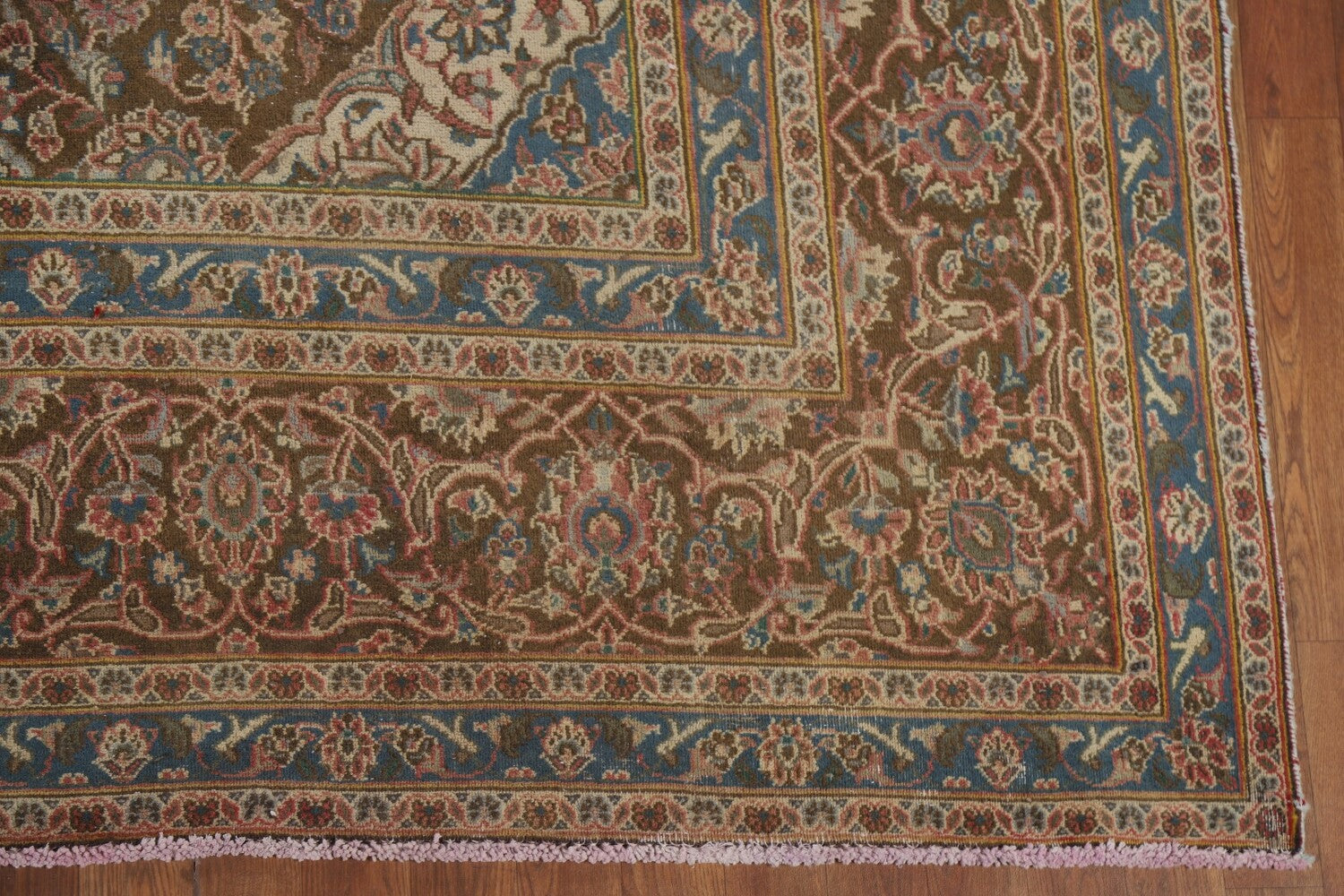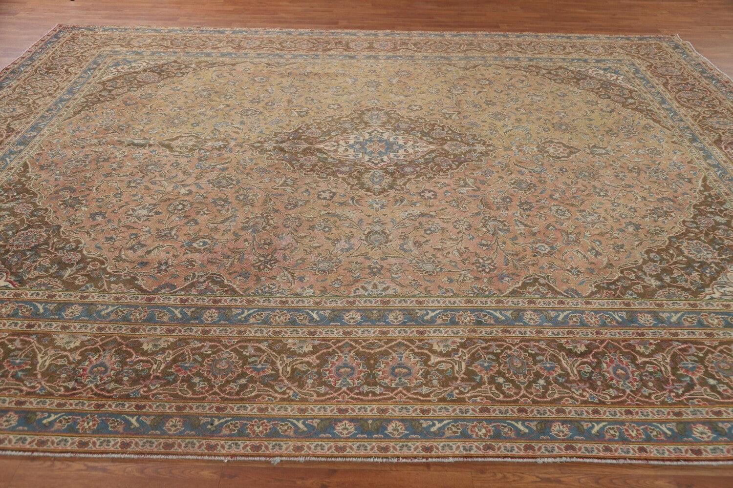 A Beautiful Genuine Persia ( Persia ) Kashan rug is Hand Knotted by skillful weavers in Persia ( Persia ) with 100% Wool Material. This rug is in Very Good (Low Pile) condition. dimensions are 12' 3'' X 9' 5'' in foot and 373 X 287 in centimeter. the primary color is Pink.