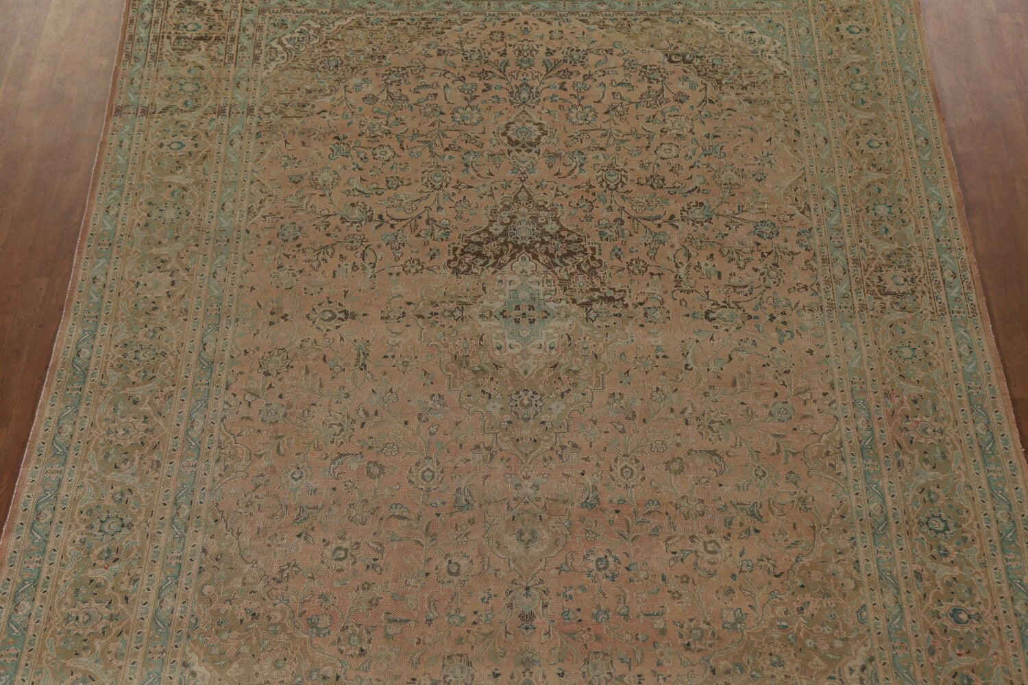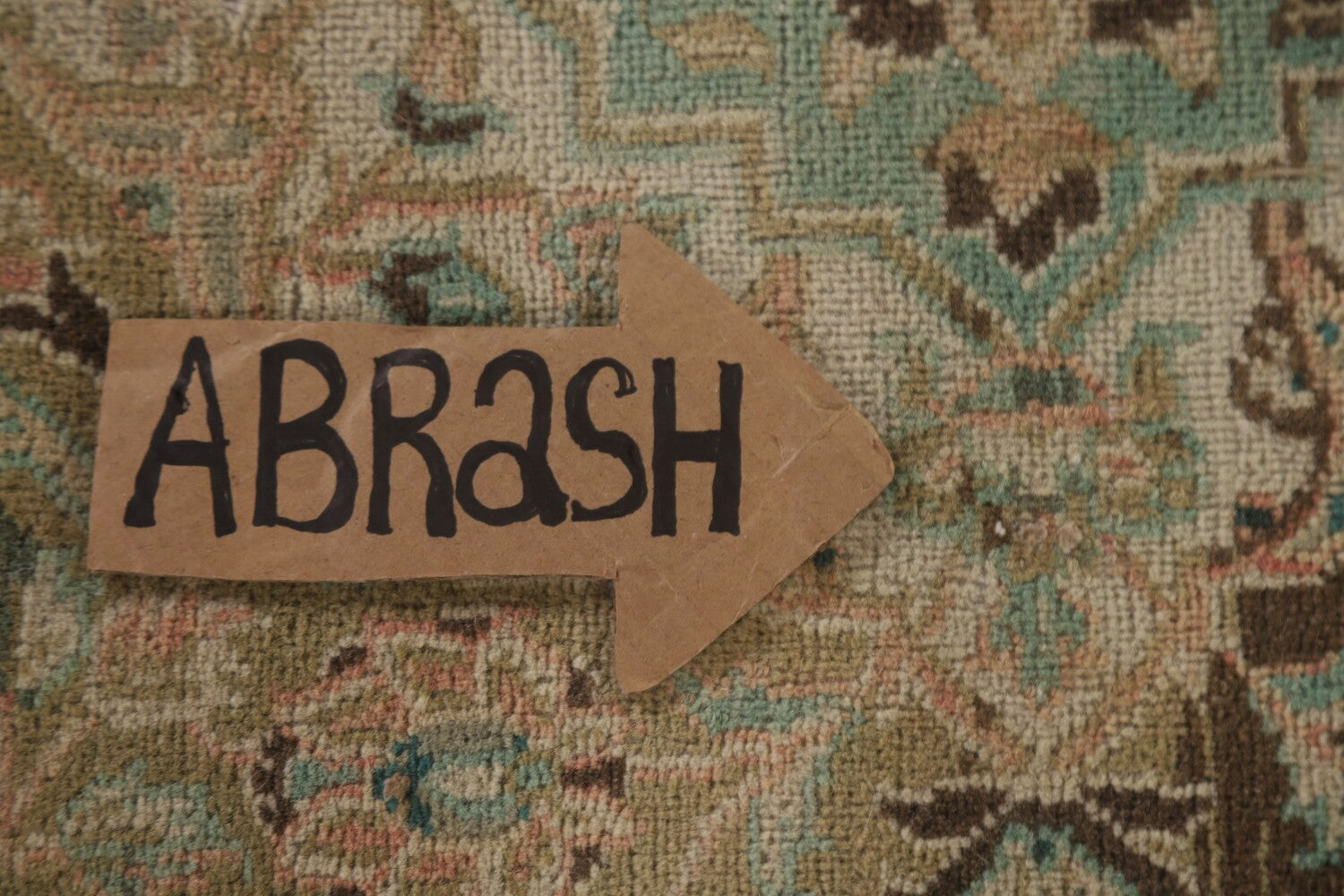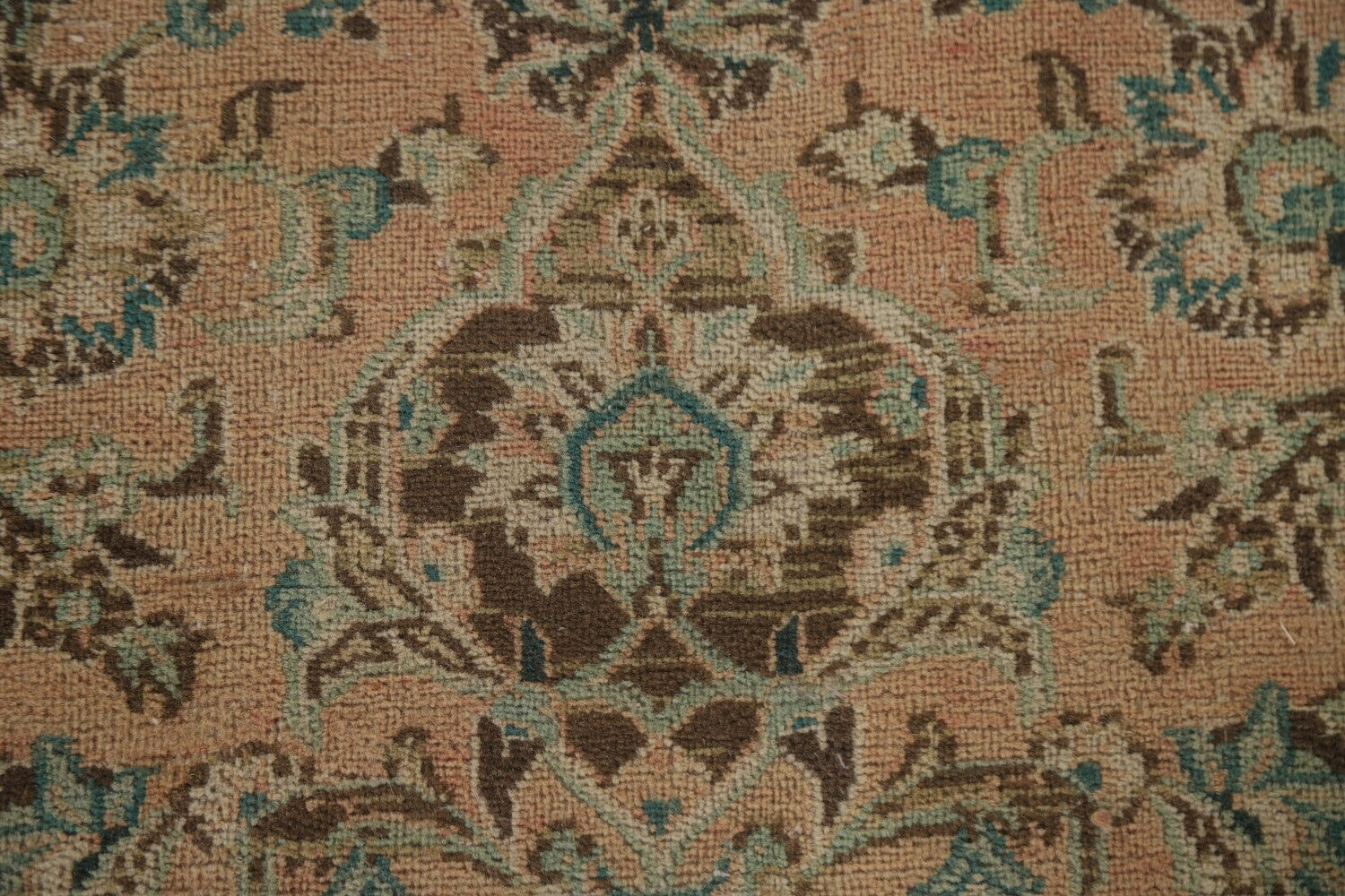 A Beautiful Genuine Persia ( Persia ) Kashan rug is Hand Knotted by skillful weavers in Persia ( Persia ) with 100% Wool Material. This rug is in Very Good (Low Pile-Abrash) condition. dimensions are 12' 5'' X 9' 5'' in foot and 378 X 287 in centimeter. the primary color is Peach.