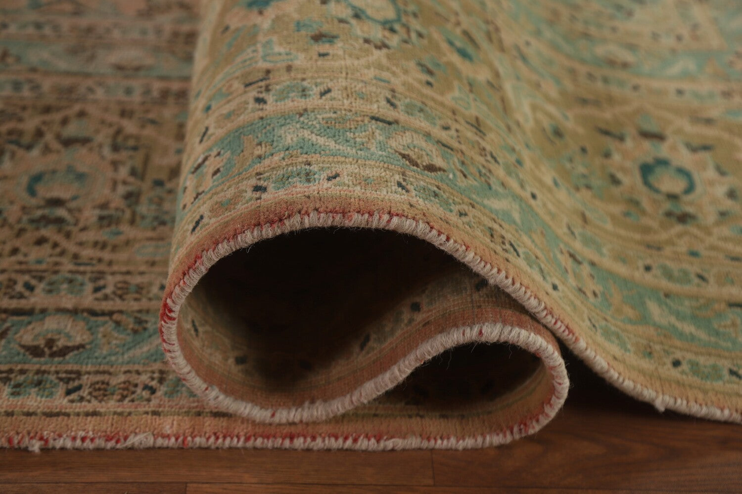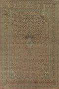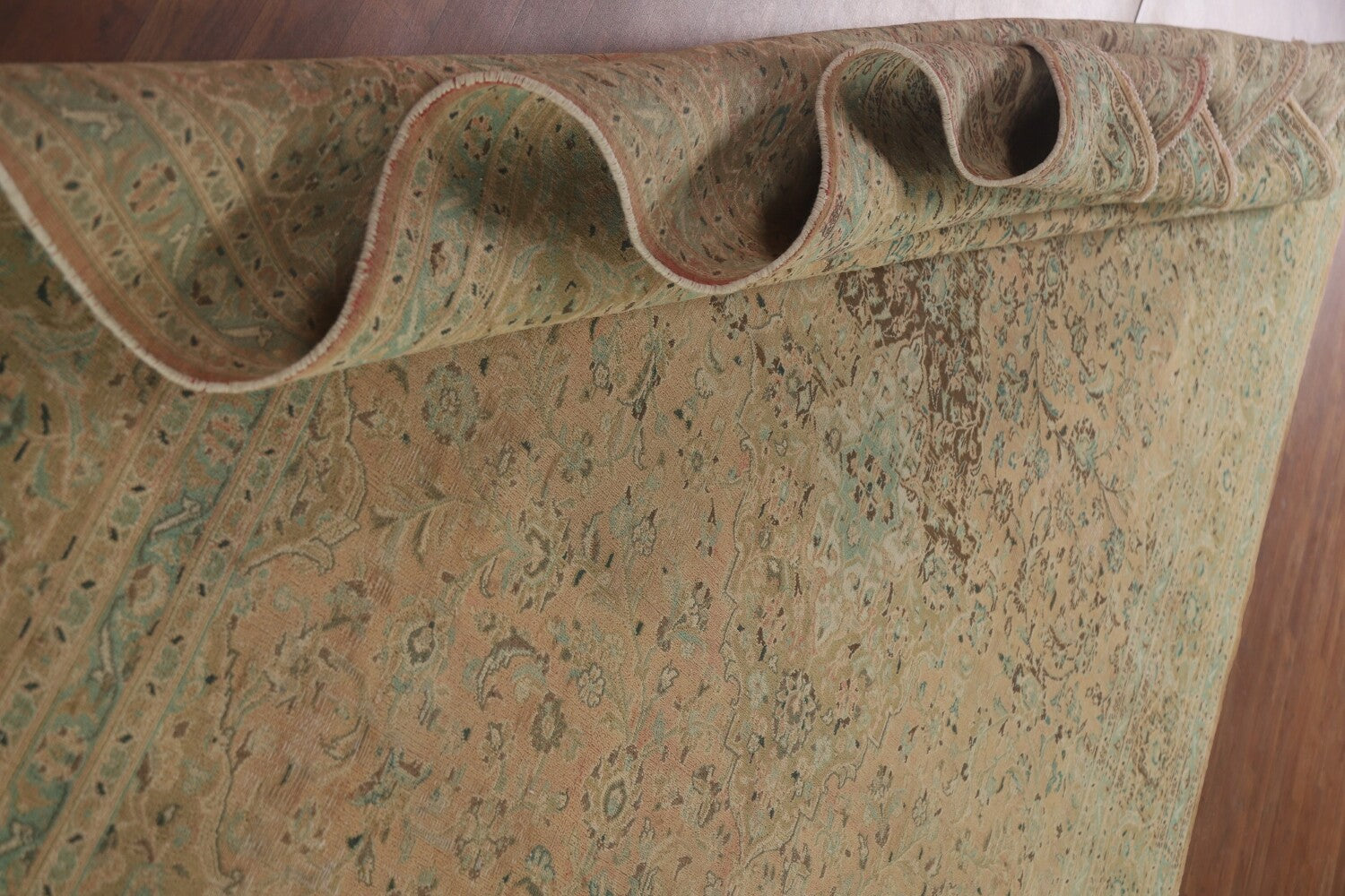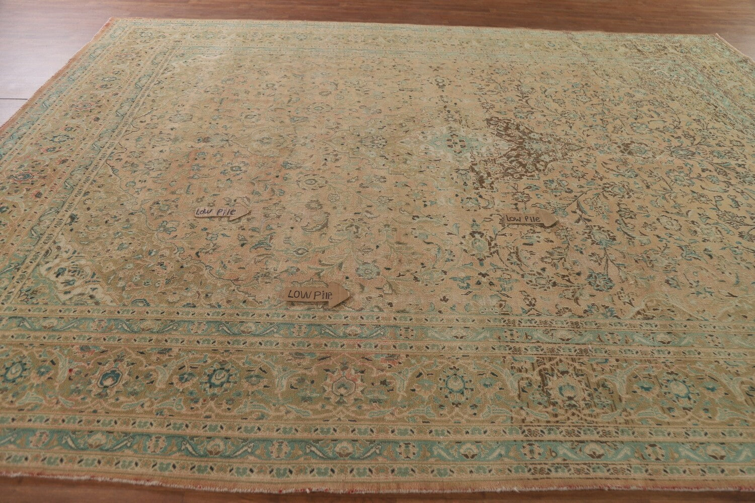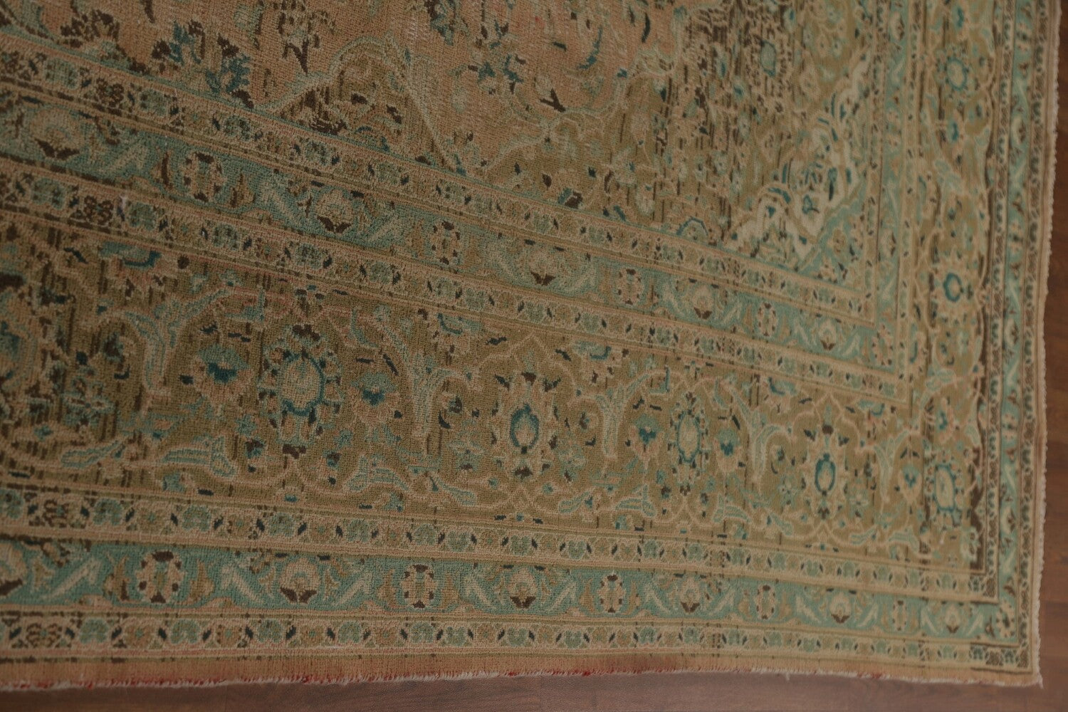 A Beautiful Genuine Persia ( Persia ) Kashan rug is Hand Knotted by skillful weavers in Persia ( Persia ) with 100% Wool Material. This rug is in Very Good (Low Pile-Abrash) condition. dimensions are 12' 5'' X 9' 5'' in foot and 378 X 287 in centimeter. the primary color is Peach.