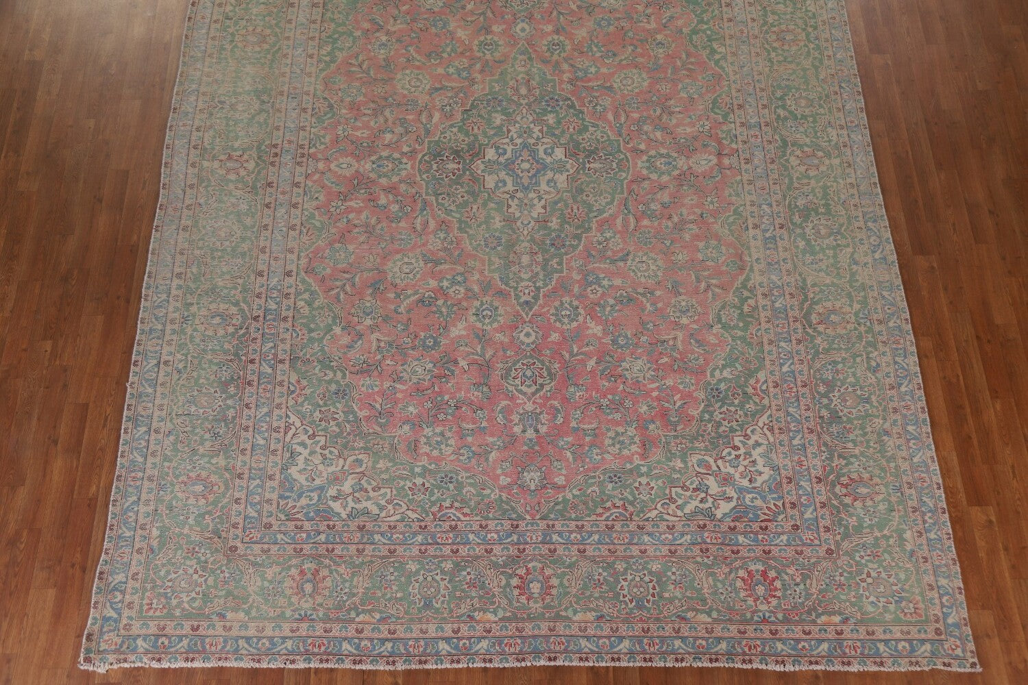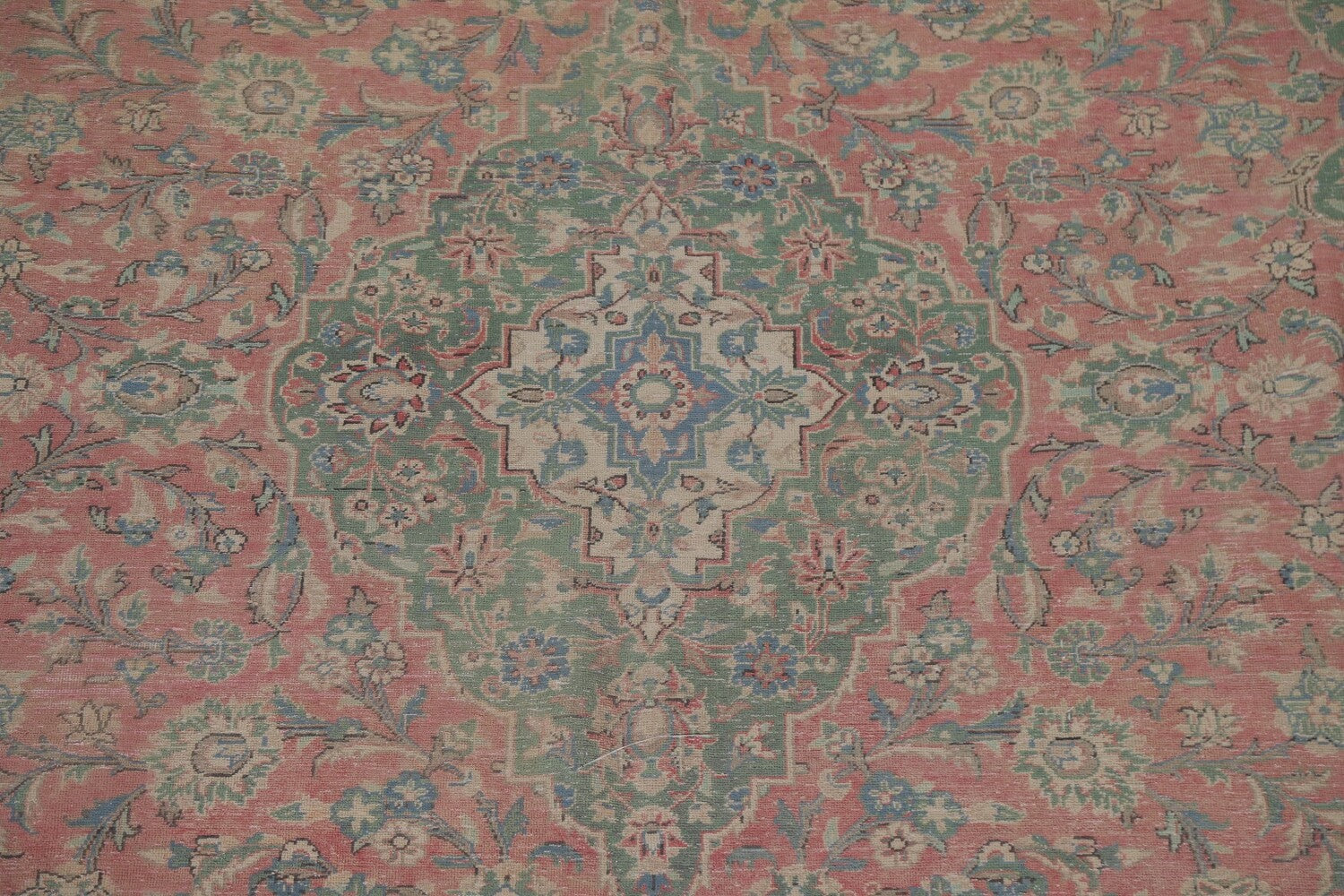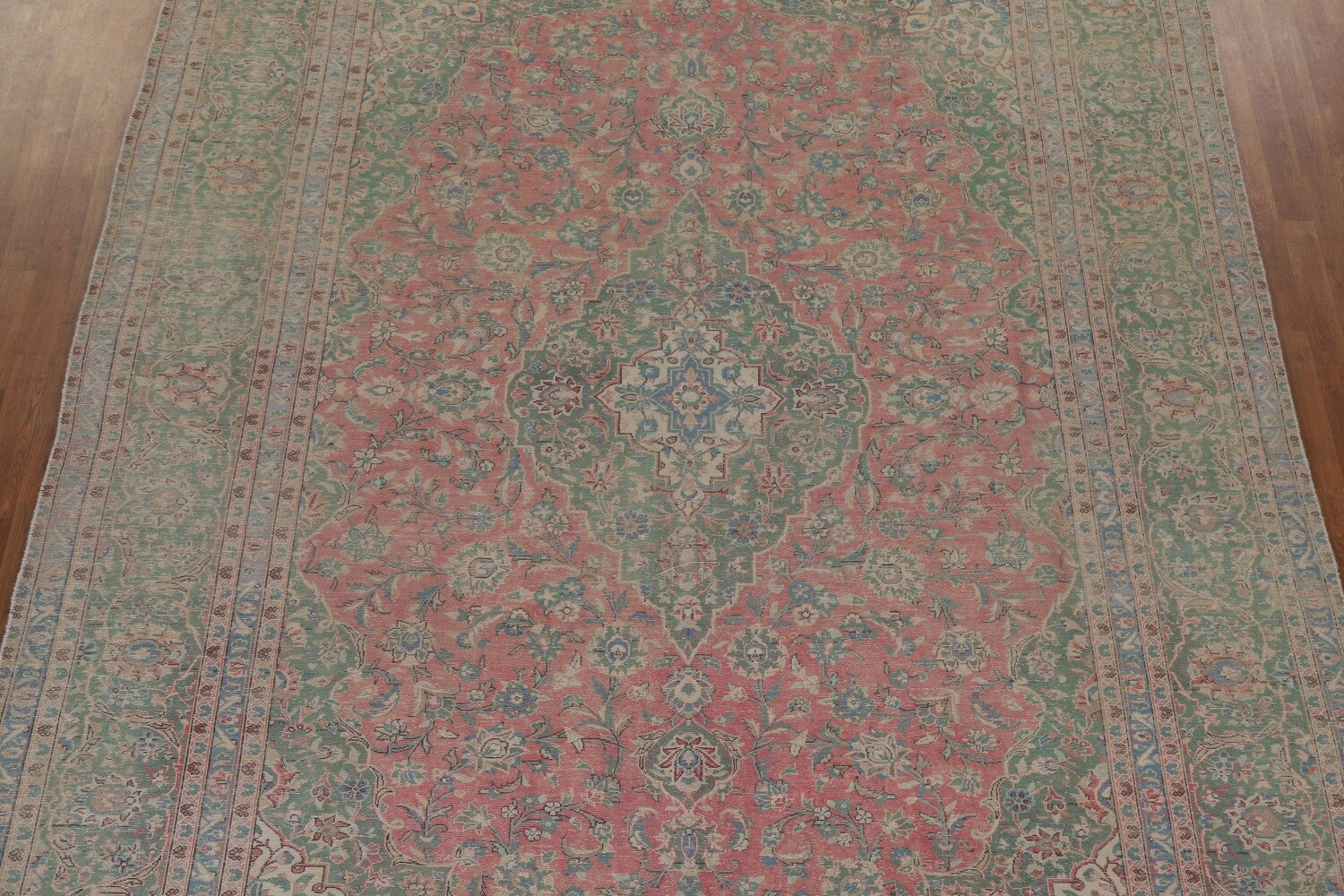 A Beautiful Genuine Persia ( Persia ) Kashan rug is Hand Knotted by skillful weavers in Persia ( Persia ) with 100% Wool Material. This rug is in Very Good (Evenly Low Pile) condition. dimensions are 12' 11'' X 9' 4'' in foot and 394 X 284 in centimeter. the primary color is Pink.