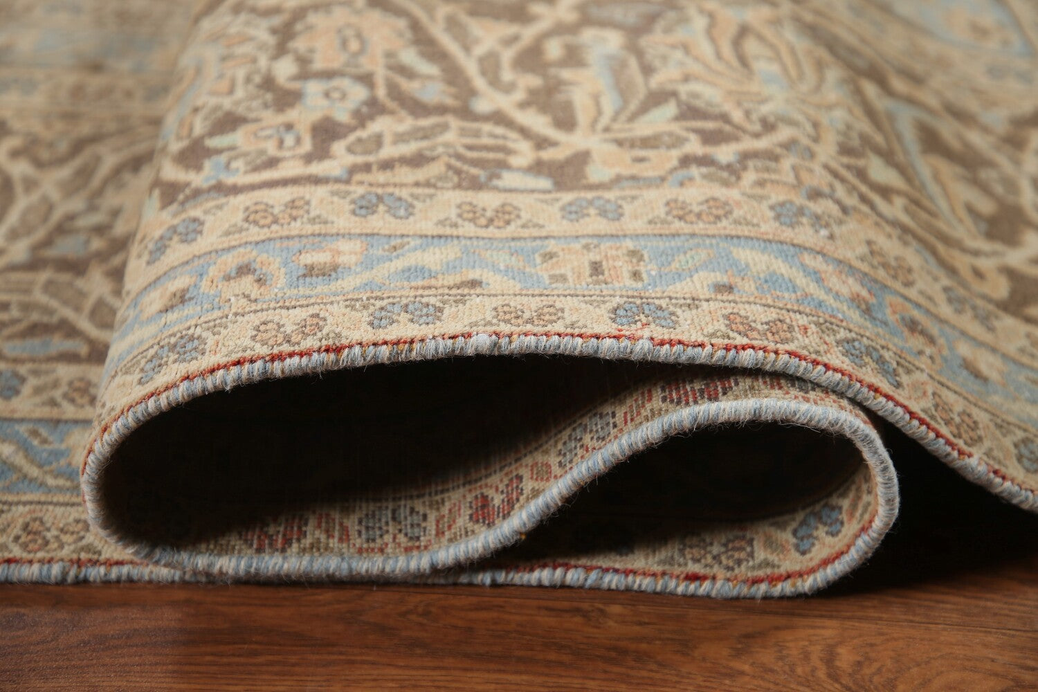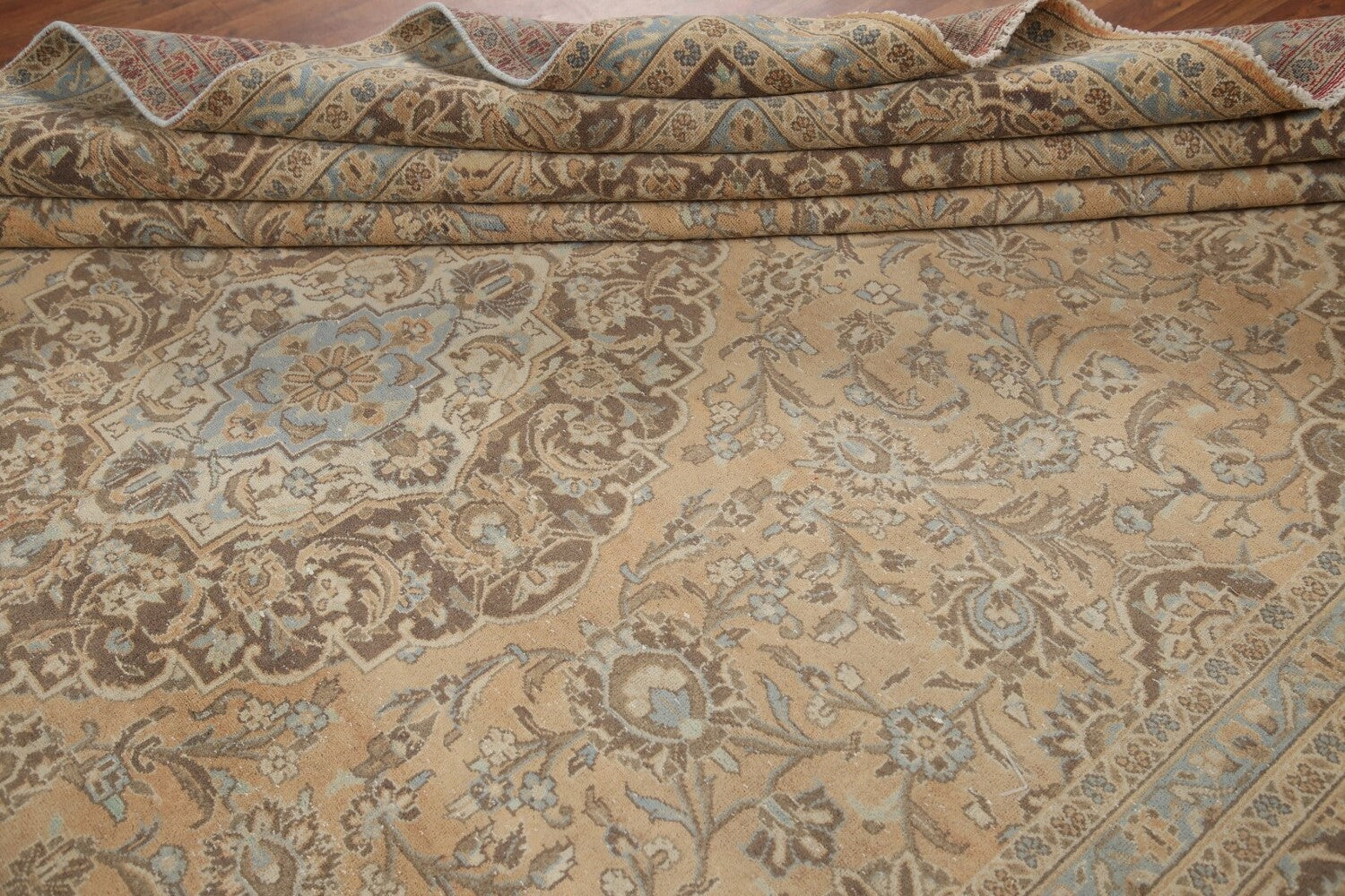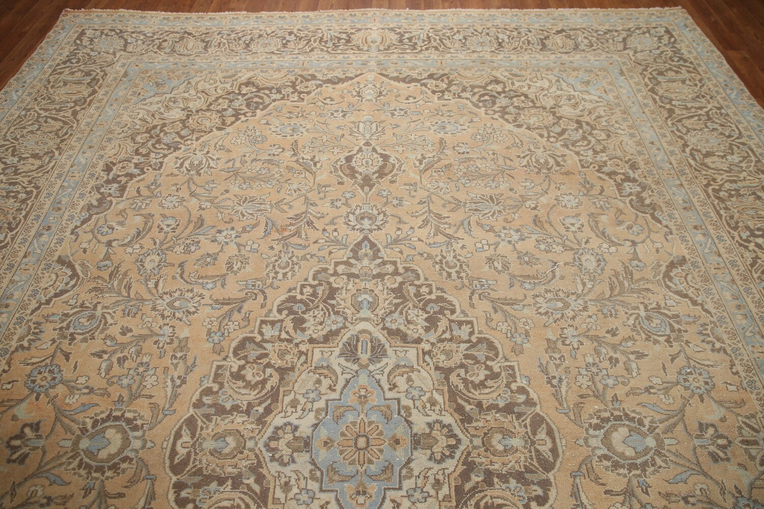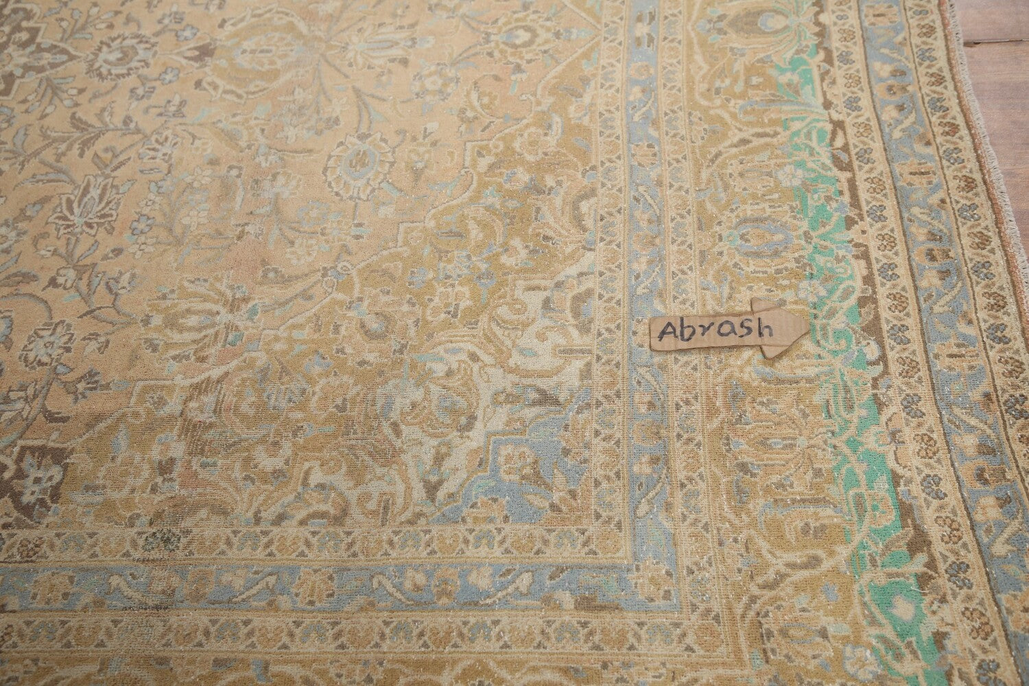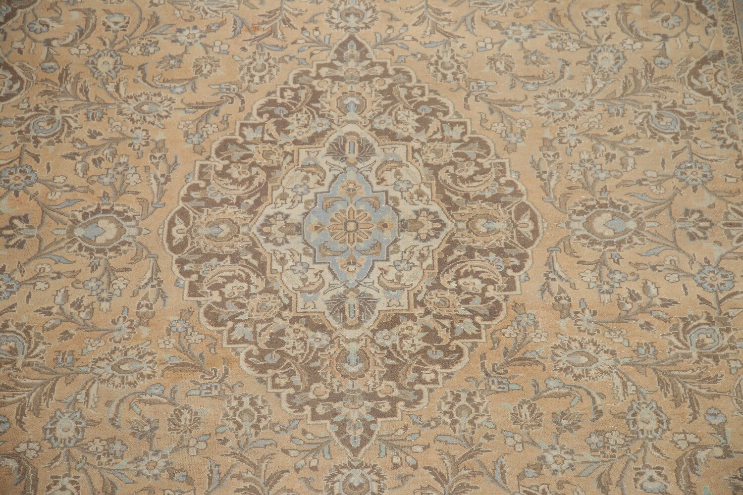 A Beautiful Genuine Persia ( Persia ) Kashan rug is Hand Knotted by skillful weavers in Persia ( Persia ) with 100% Wool Material. This rug is in Very Good (Evenly Low Pile-Abrash) condition. dimensions are 12' 10'' X 9' 4'' in foot and 391 X 284 in centimeter. the primary color is Peach.