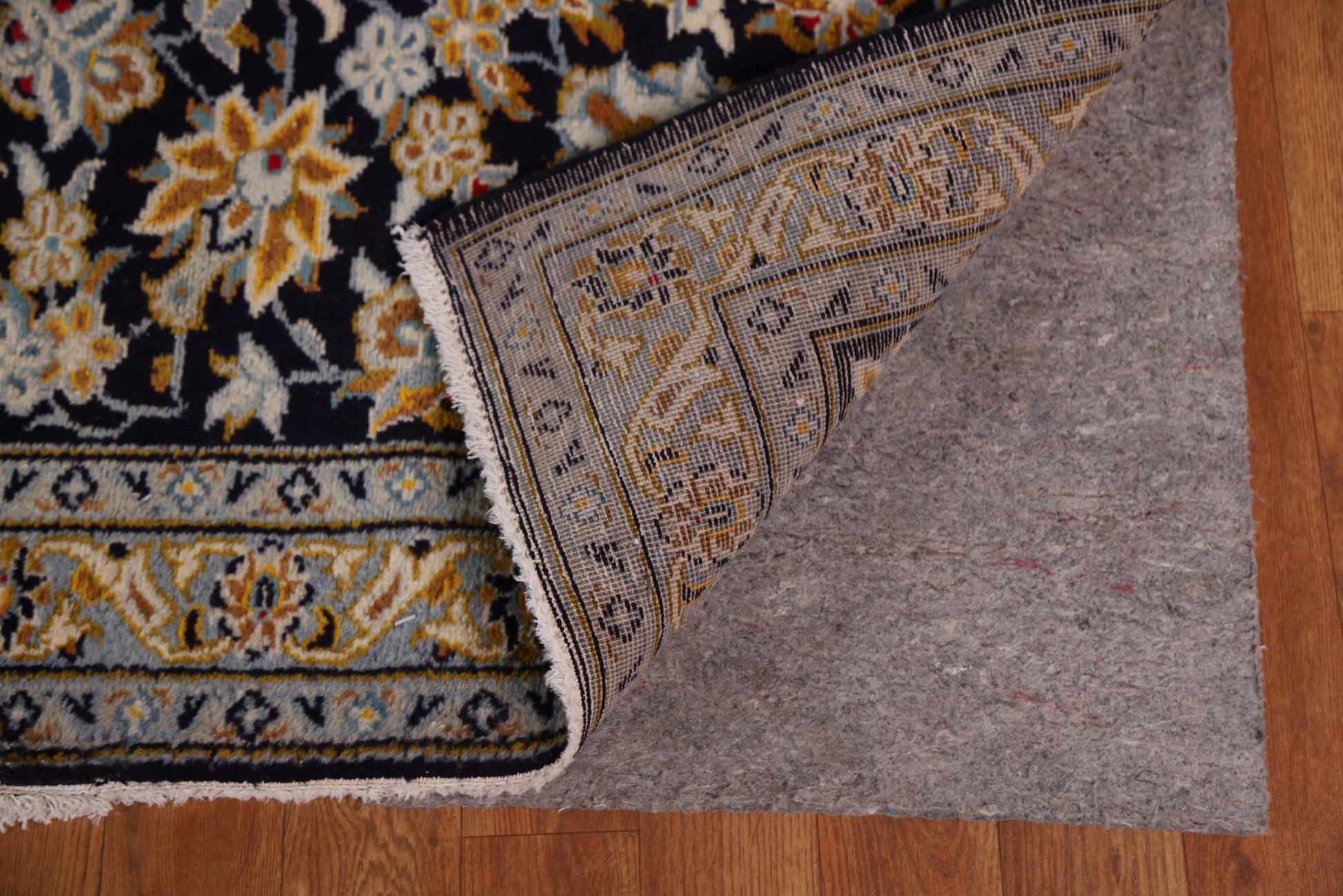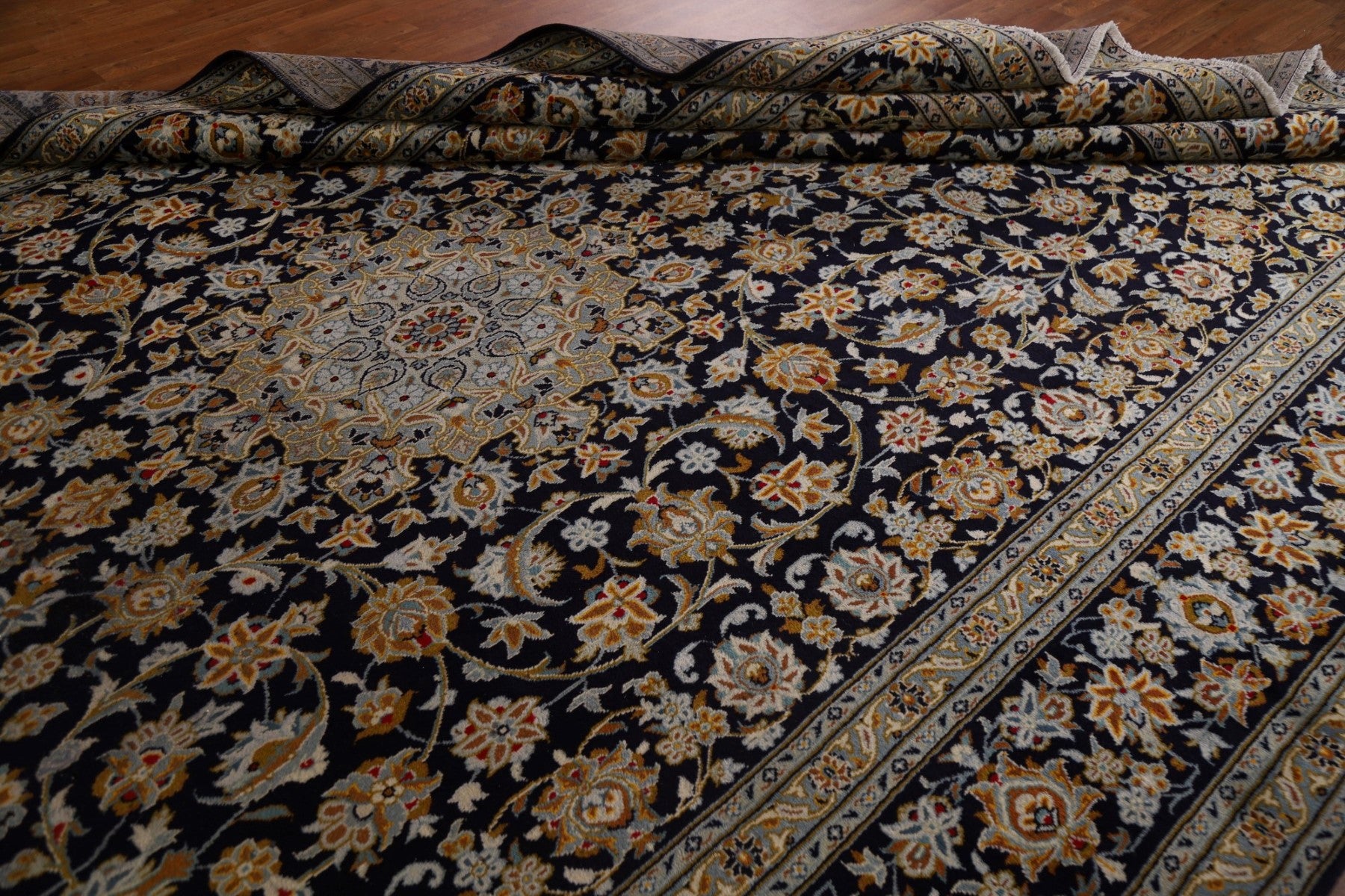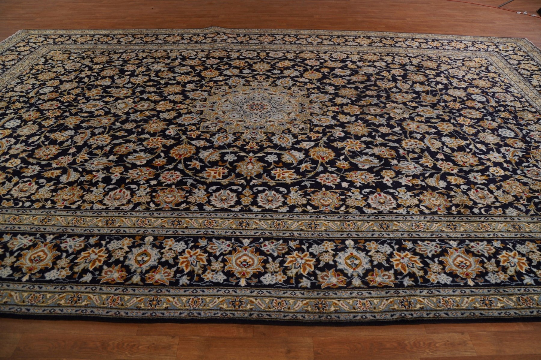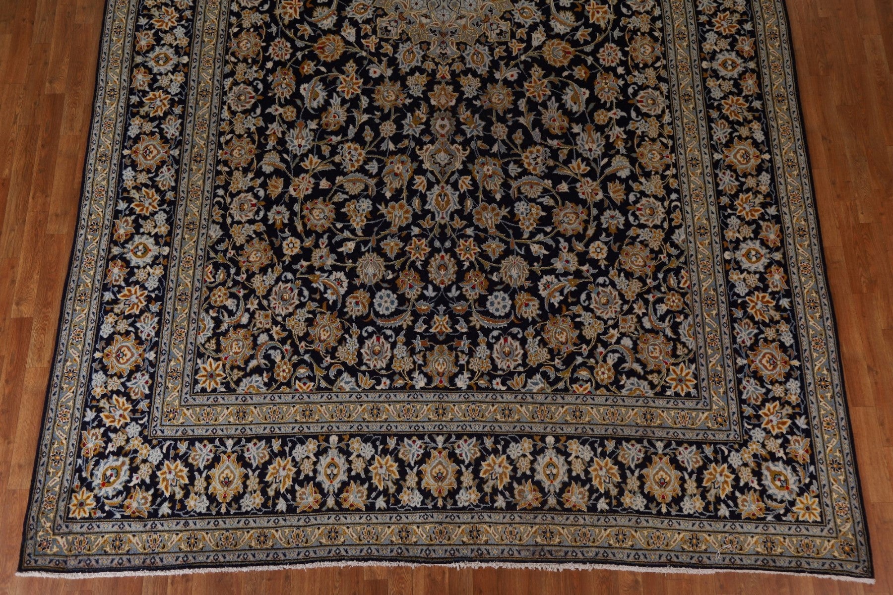 A Beautiful Genuine Persia ( Persia ) Kashan rug is Hand Knotted by skillful weavers in Persia ( Persia ) with 100% Wool Material. This rug is in Very Good ( Low Pile ) condition. dimensions are 16' 4'' X 9' 9'' in foot and 498 X 297 in centimeter. the primary color is Navy Blue & Blues.