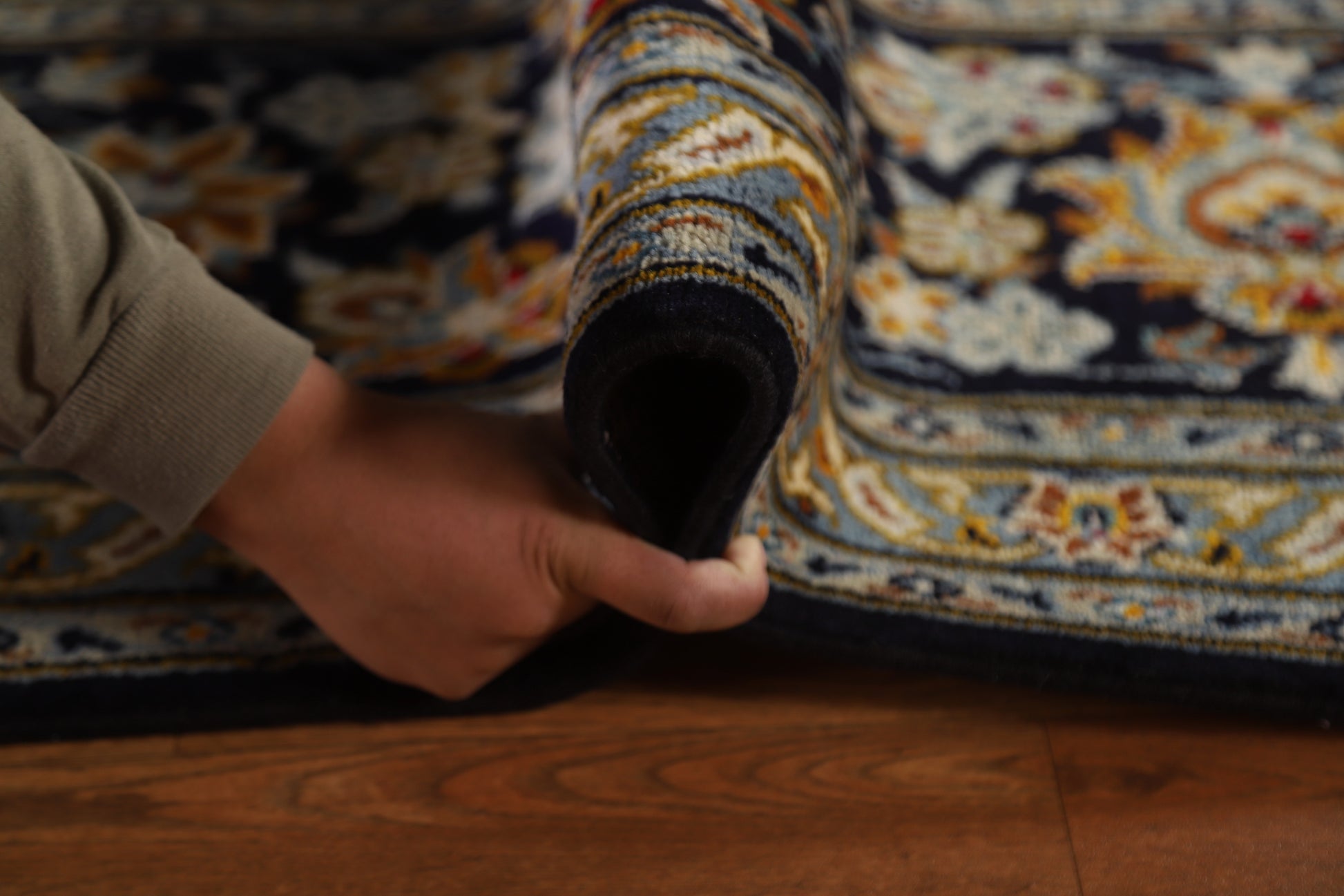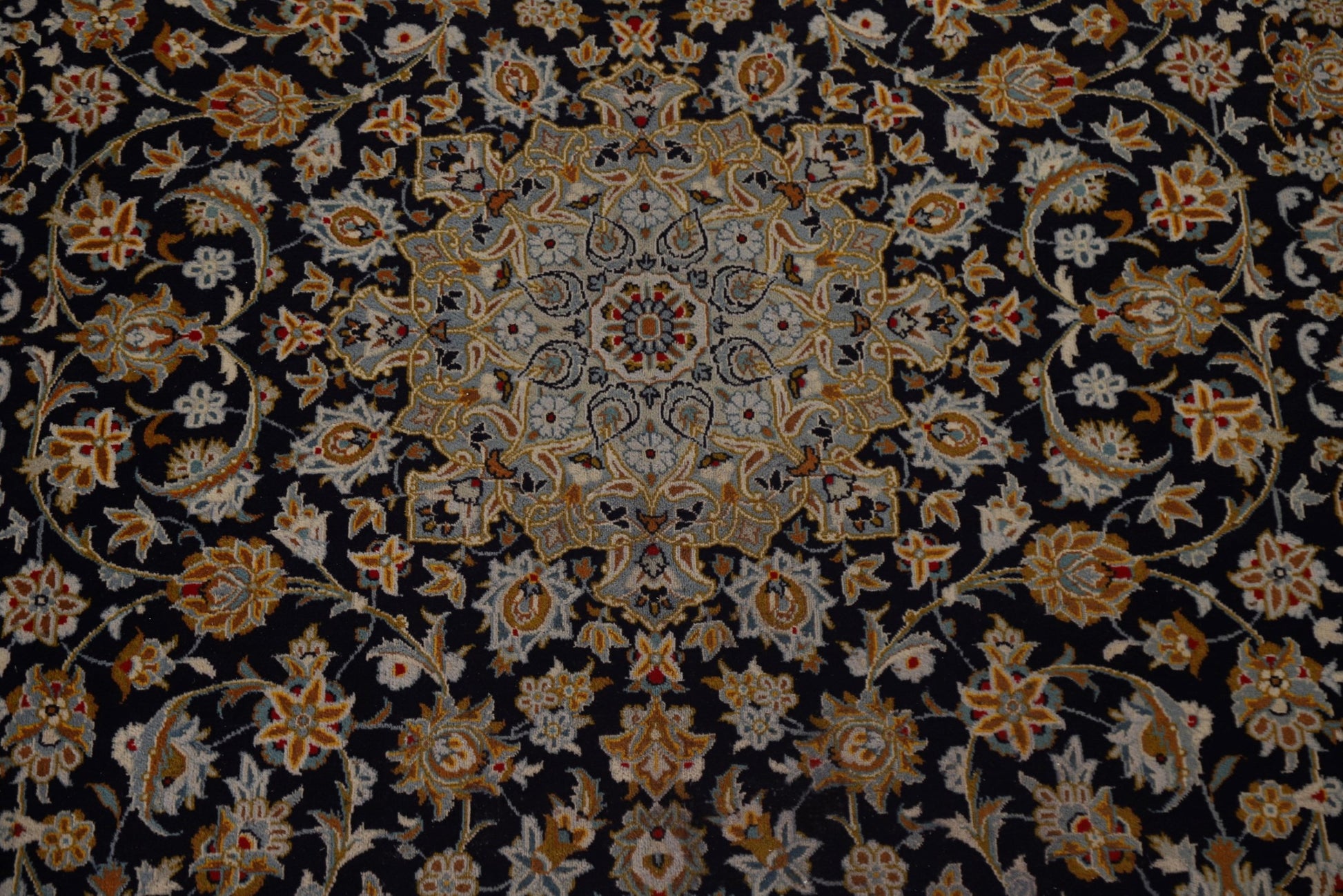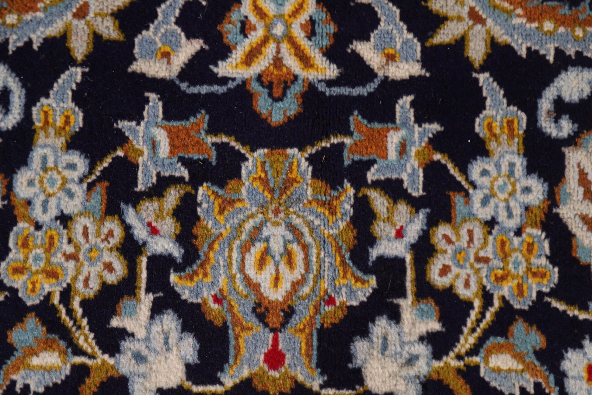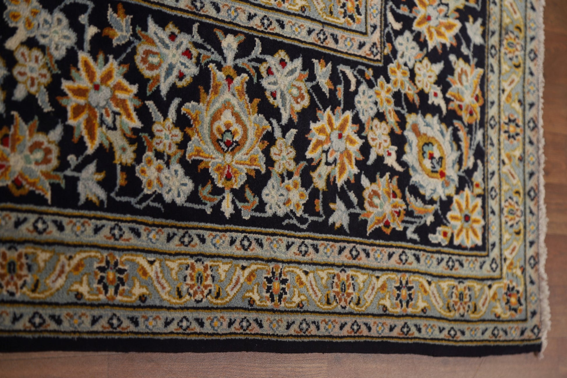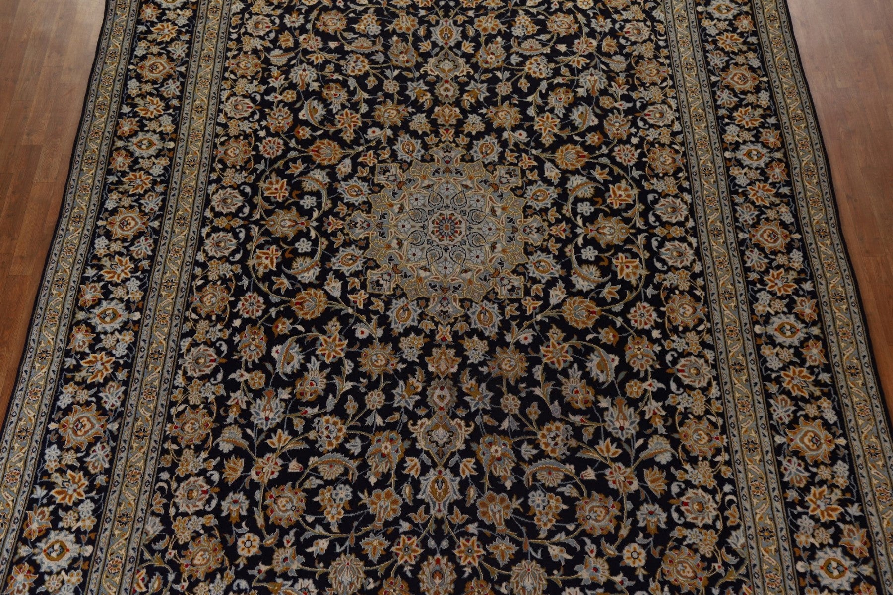 A Beautiful Genuine Persia ( Persia ) Kashan rug is Hand Knotted by skillful weavers in Persia ( Persia ) with 100% Wool Material. This rug is in Very Good ( Low Pile ) condition. dimensions are 16' 4'' X 9' 9'' in foot and 498 X 297 in centimeter. the primary color is Navy Blue & Blues.