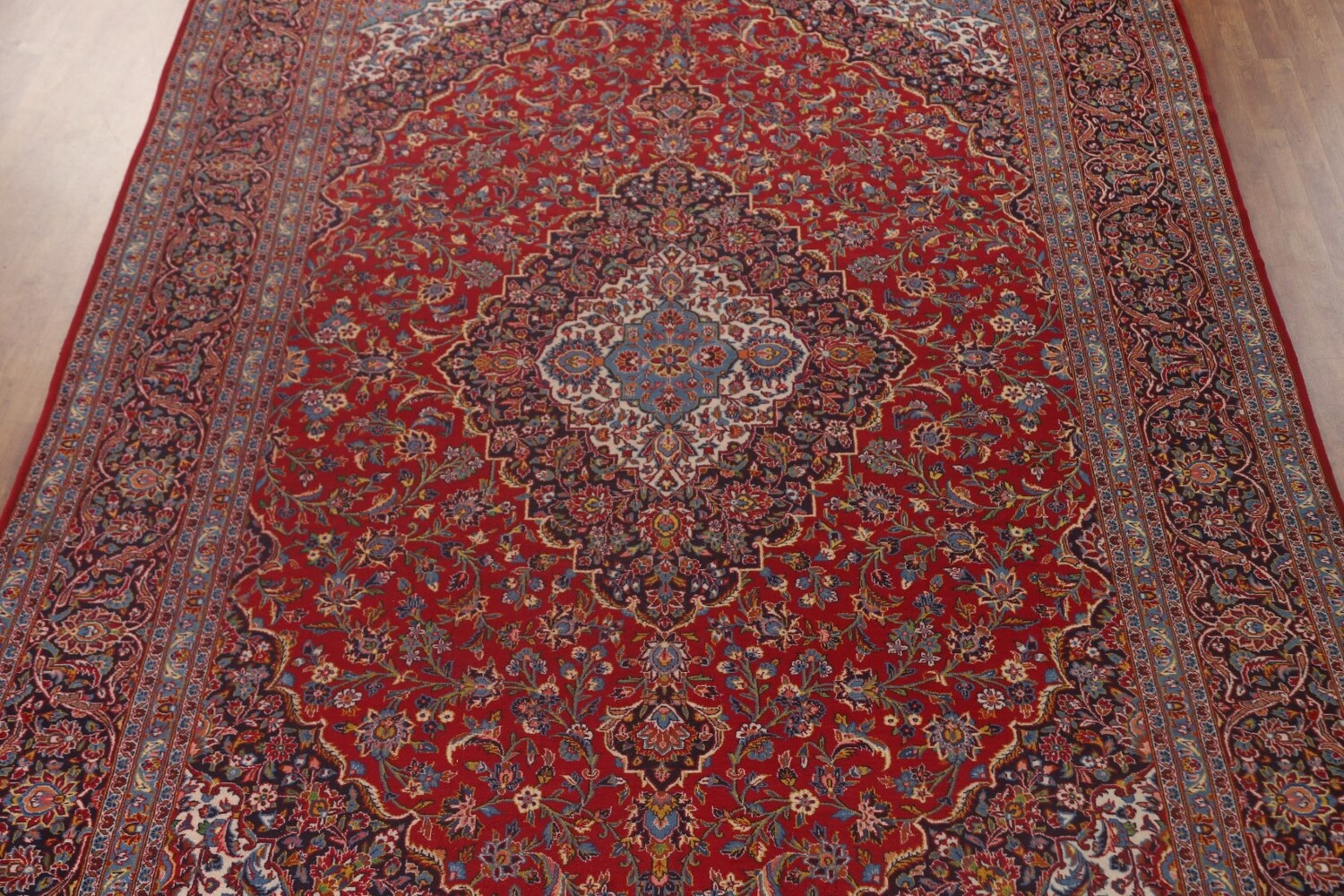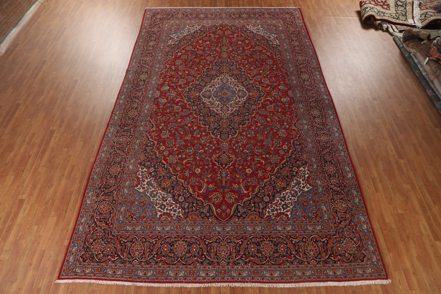 A Beautiful Genuine Persia ( Persia ) Kashan rug is Hand Knotted by skillful weavers in Persia ( Persia ) with 100% Wool Material. This rug is in Very Good condition. dimensions are 16' 2'' X 9' 8'' in foot and 493 X 295 in centimeter. the primary color is Red.