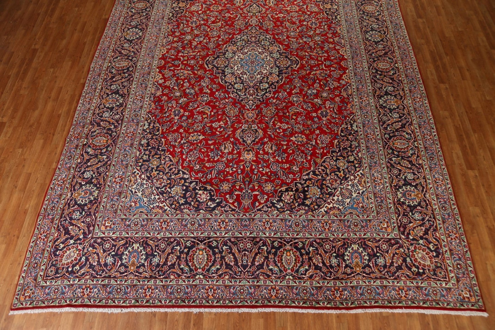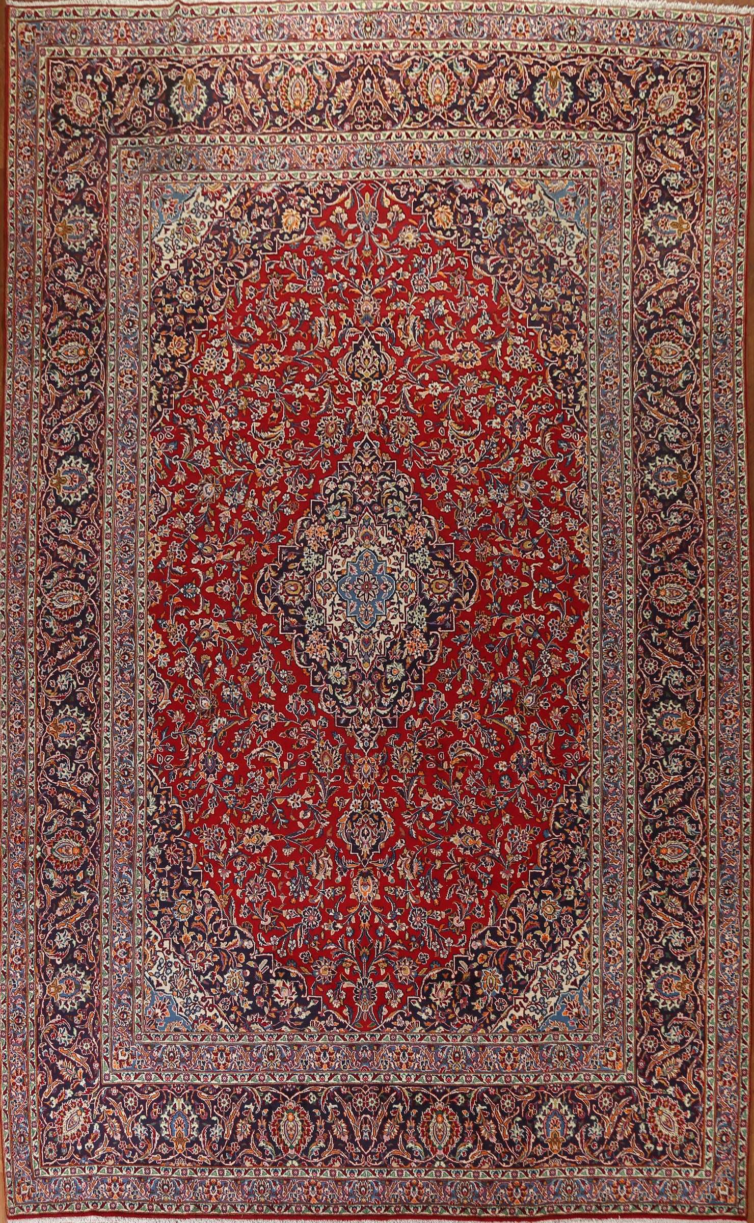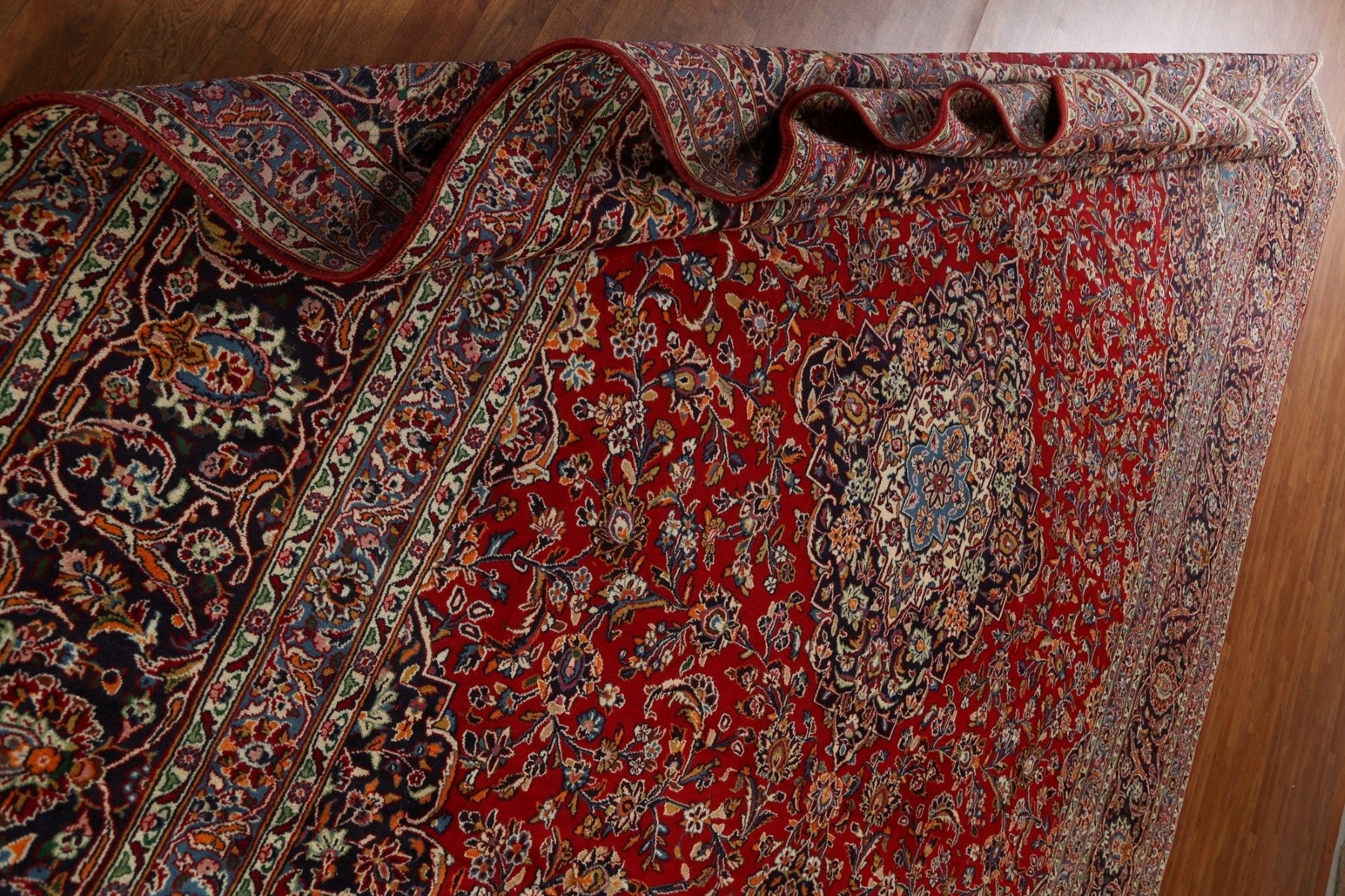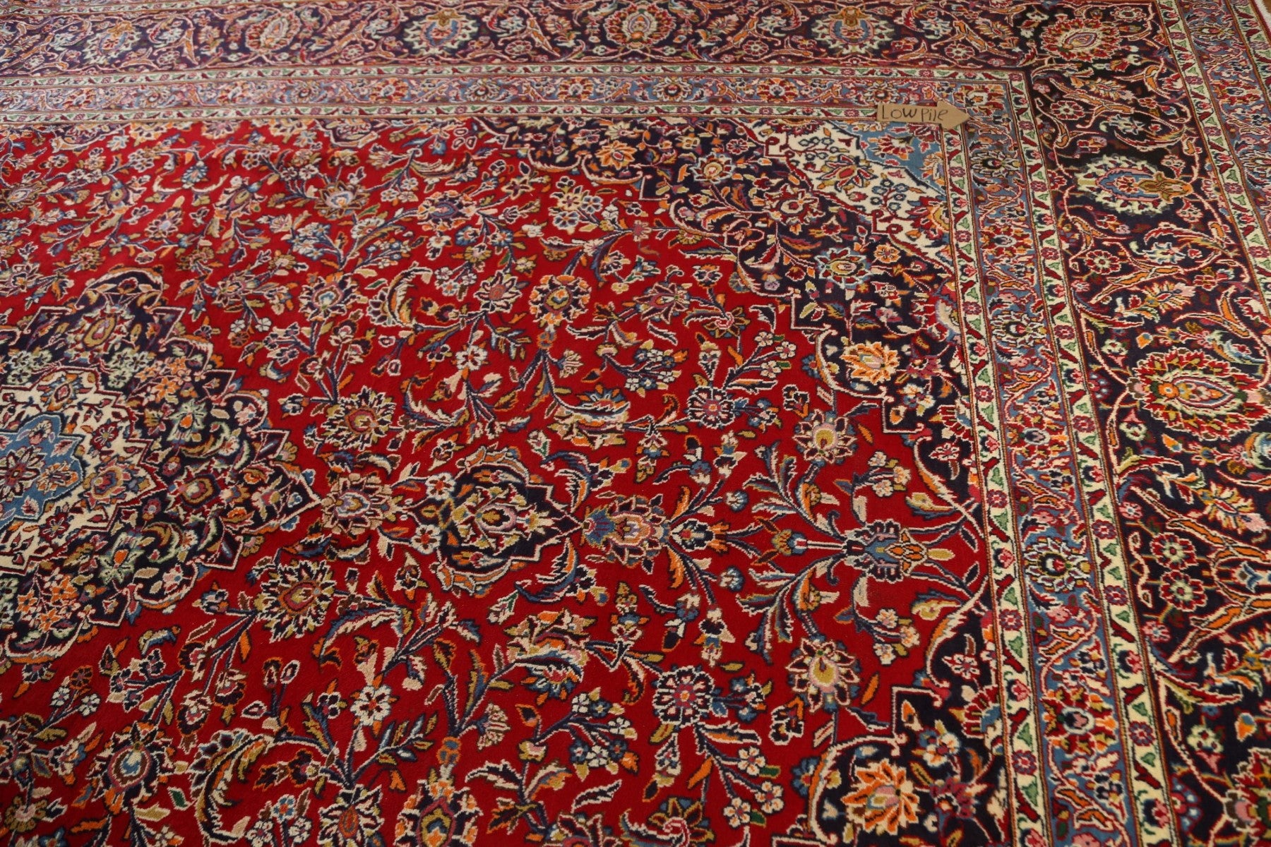 A Beautiful Genuine Persia ( Persia ) Kashan rug is Hand Knotted by skillful weavers in Persia ( Persia ) with 100% Wool Material. This rug is in Very Good ( Low Pile ) condition. dimensions are 16' 7'' X 10' 11'' in foot and 505 X 333 in centimeter. the primary color is Red.
