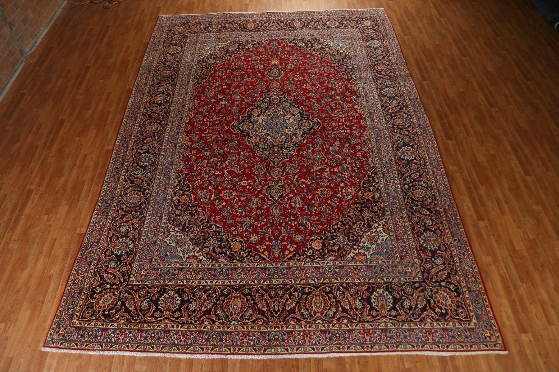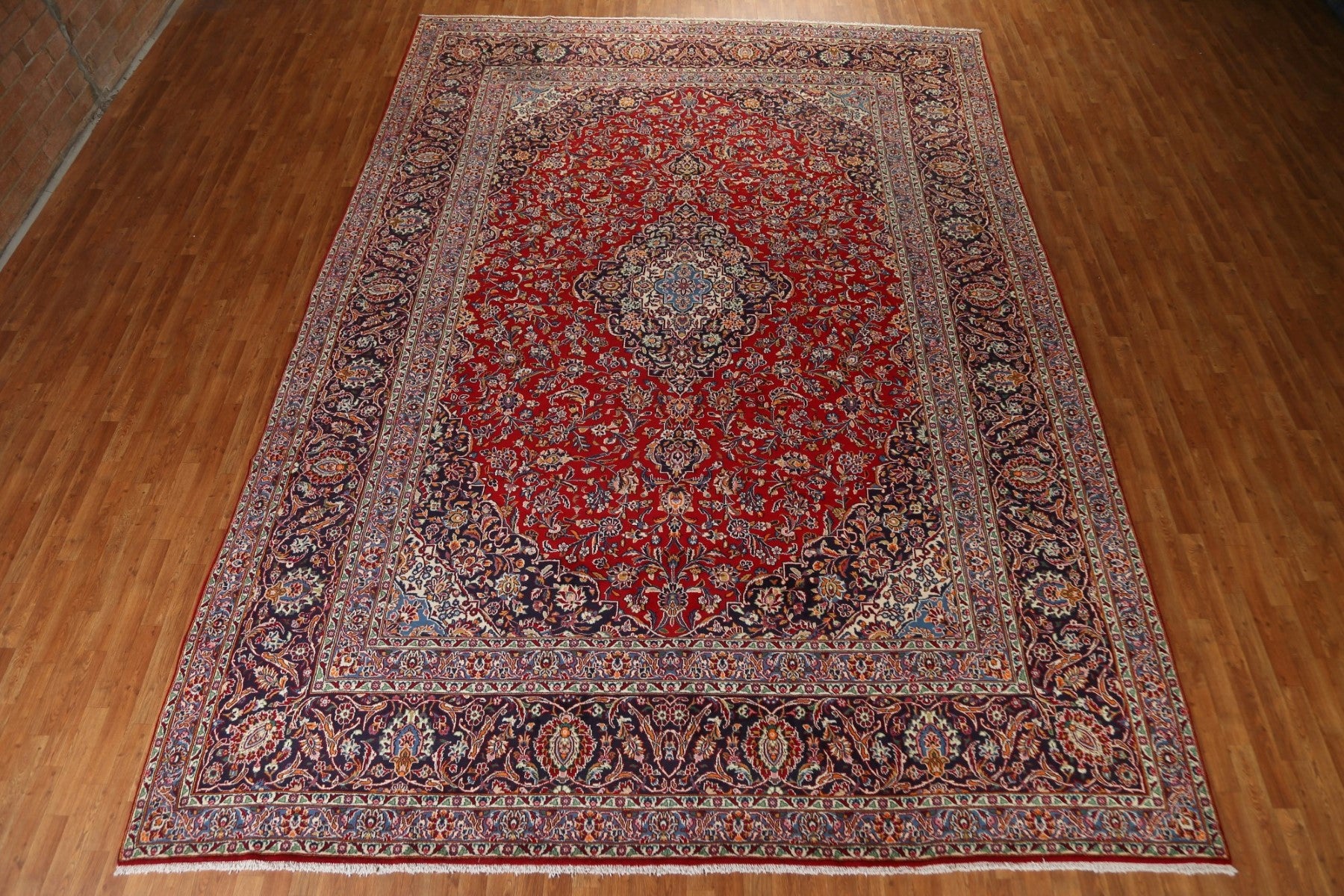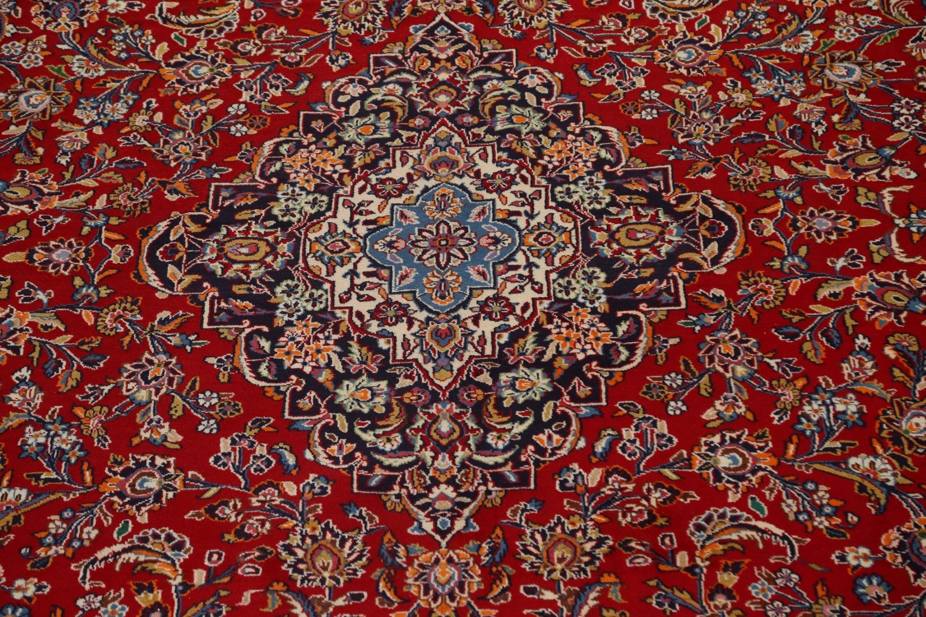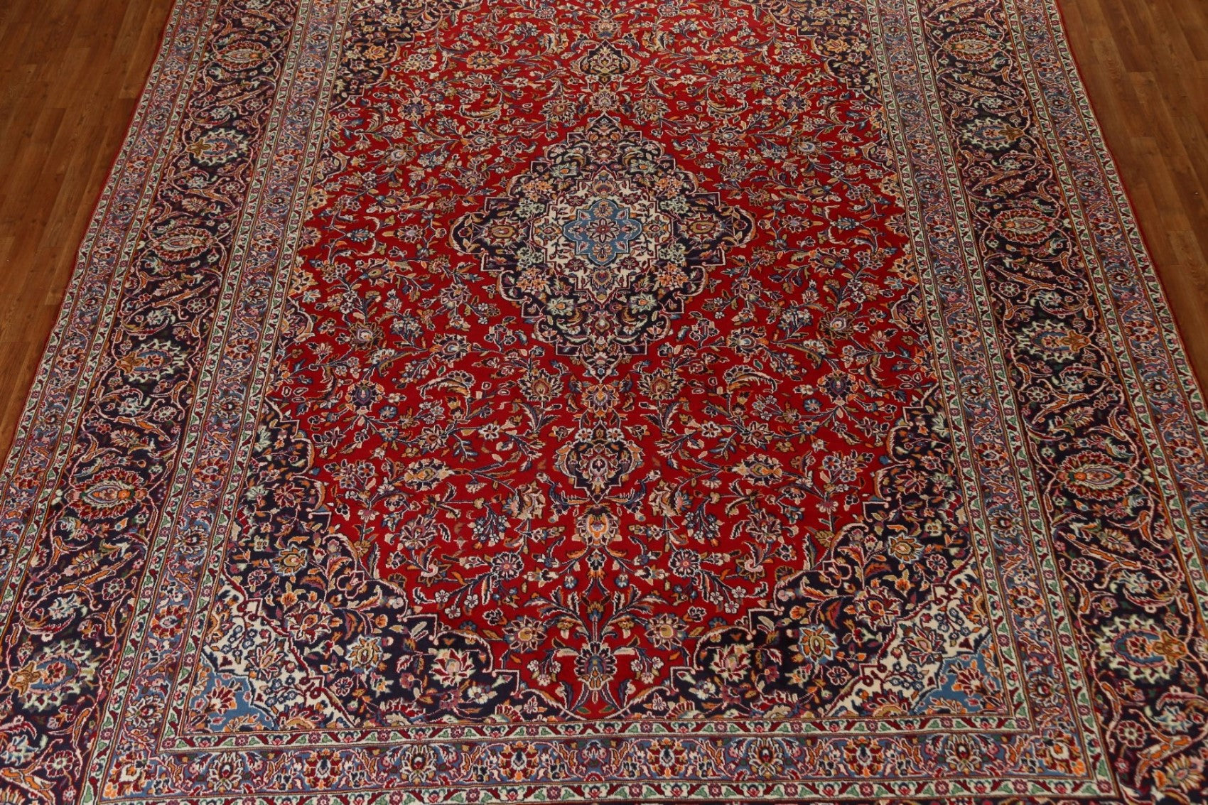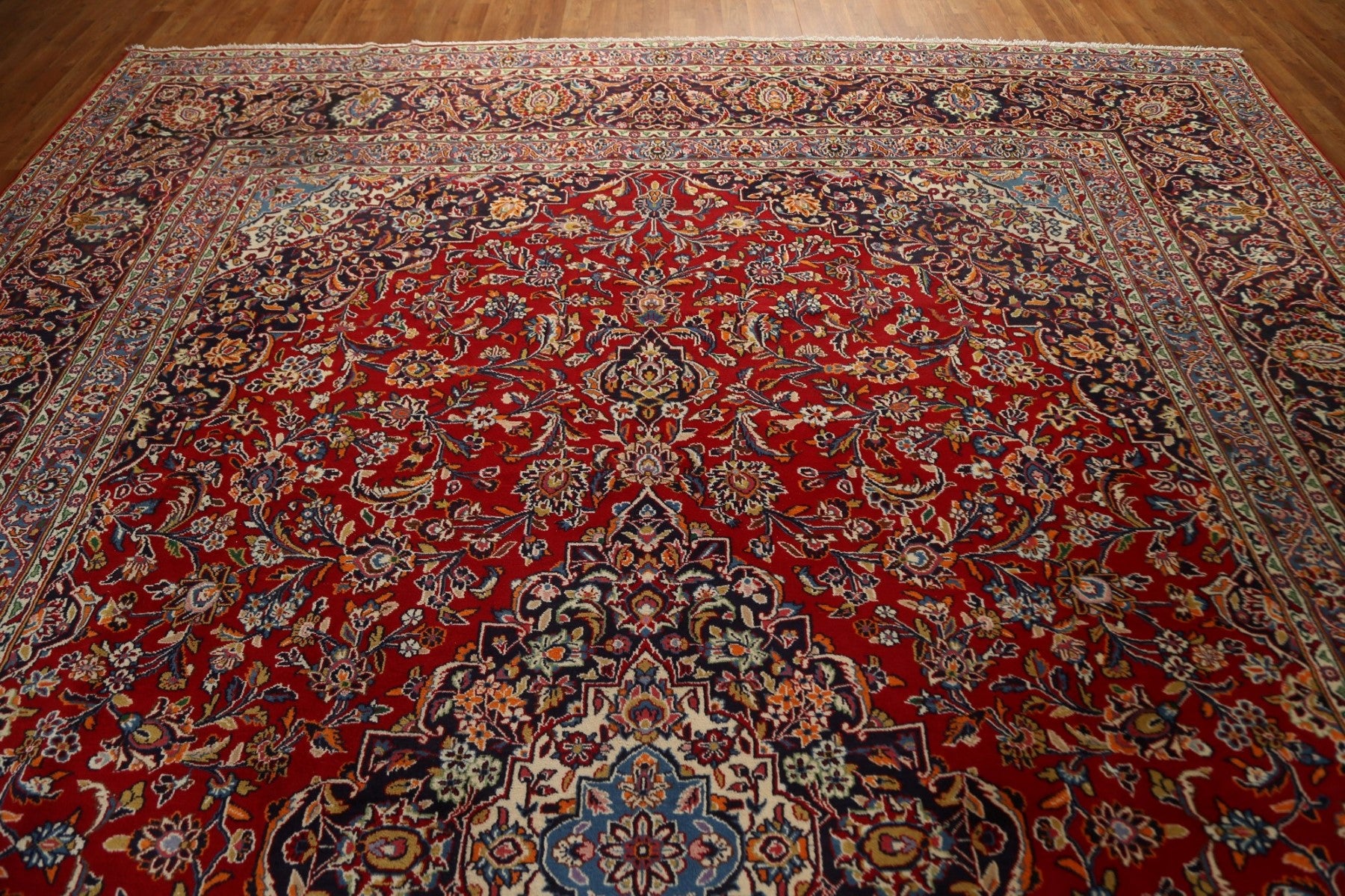 A Beautiful Genuine Persia ( Persia ) Kashan rug is Hand Knotted by skillful weavers in Persia ( Persia ) with 100% Wool Material. This rug is in Very Good ( Low Pile ) condition. dimensions are 16' 7'' X 10' 11'' in foot and 505 X 333 in centimeter. the primary color is Red.