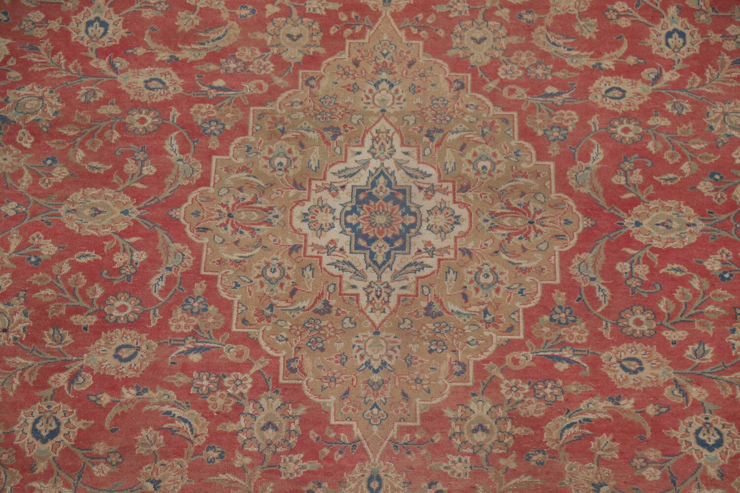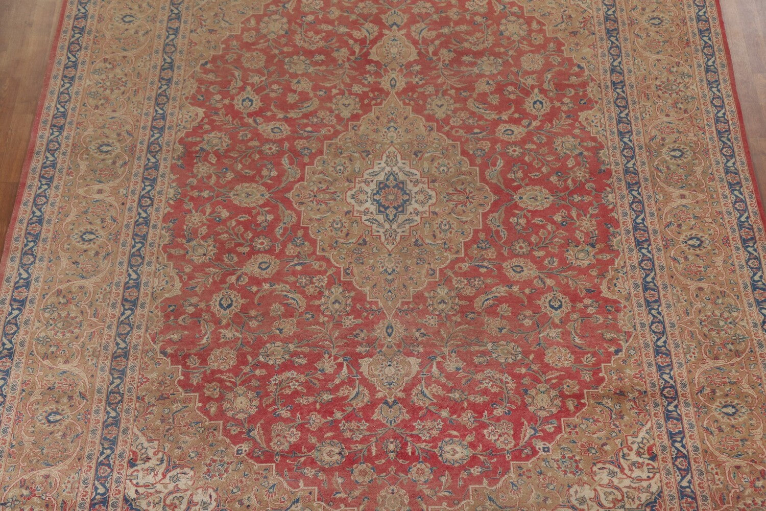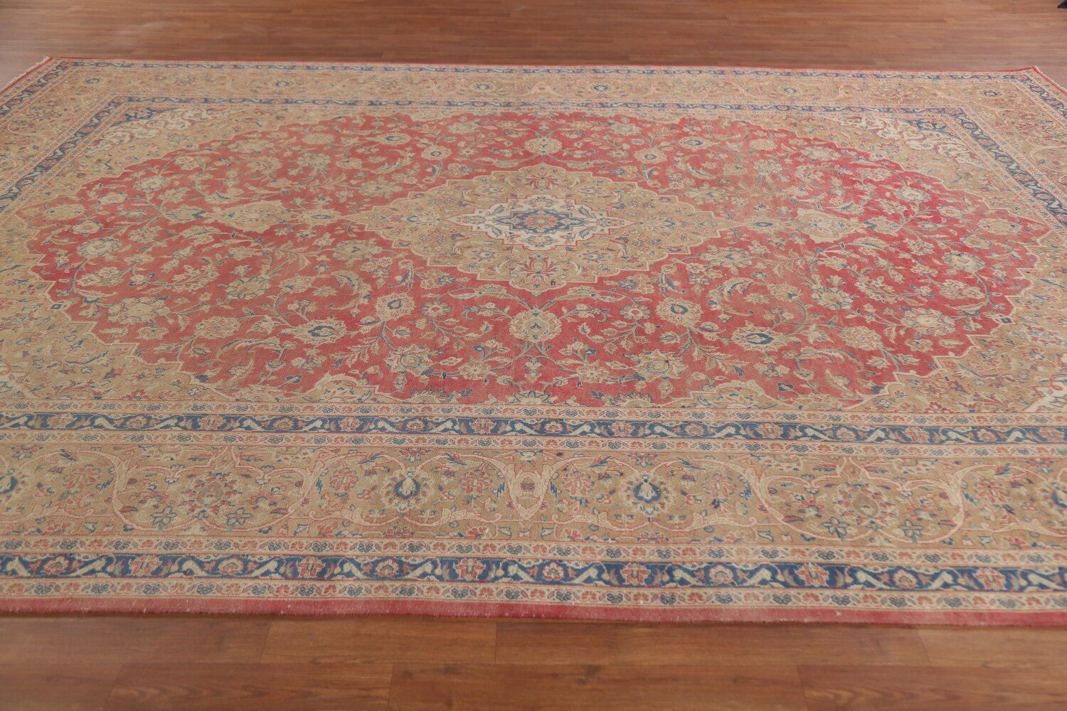 A Beautiful Genuine Persia ( Persia ) Kashan (Signed) rug is Hand Knotted by skillful weavers in Persia ( Persia ) with 100% Wool Material. This rug is in Very Good (Low Pile-Faded Color) condition. dimensions are 12' 8'' X 9' 8'' in foot and 386 X 295 in centimeter. the primary color is Pink.
