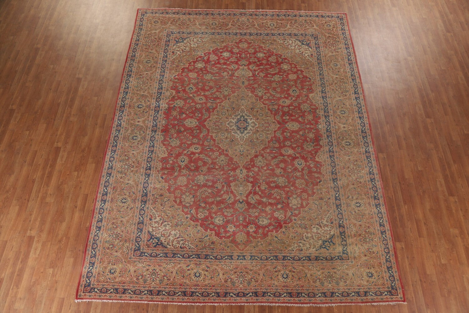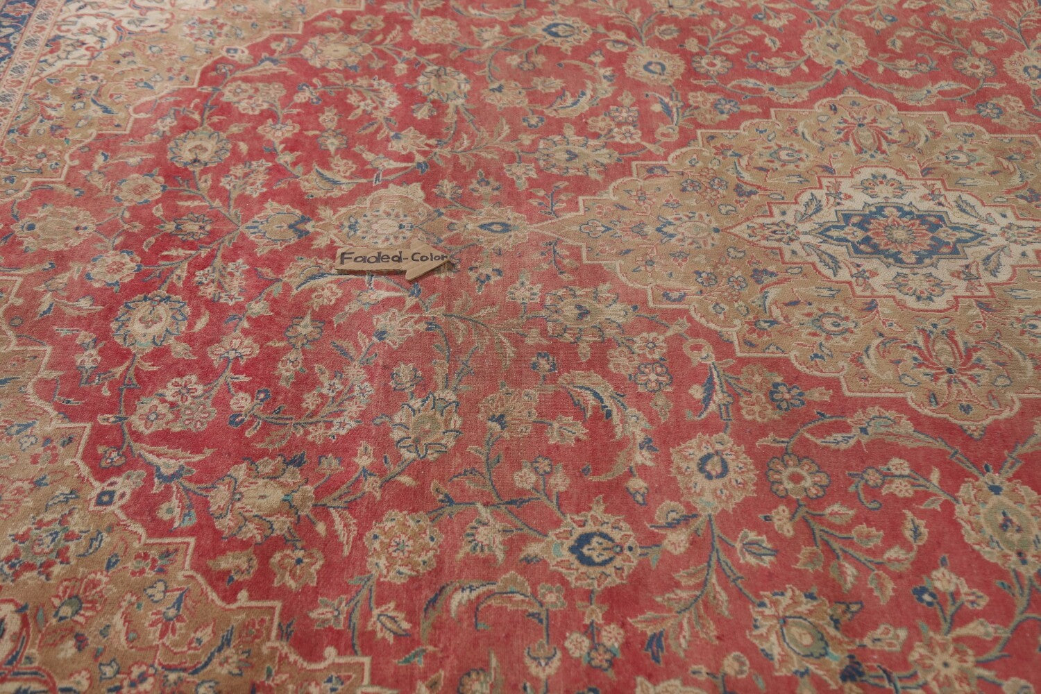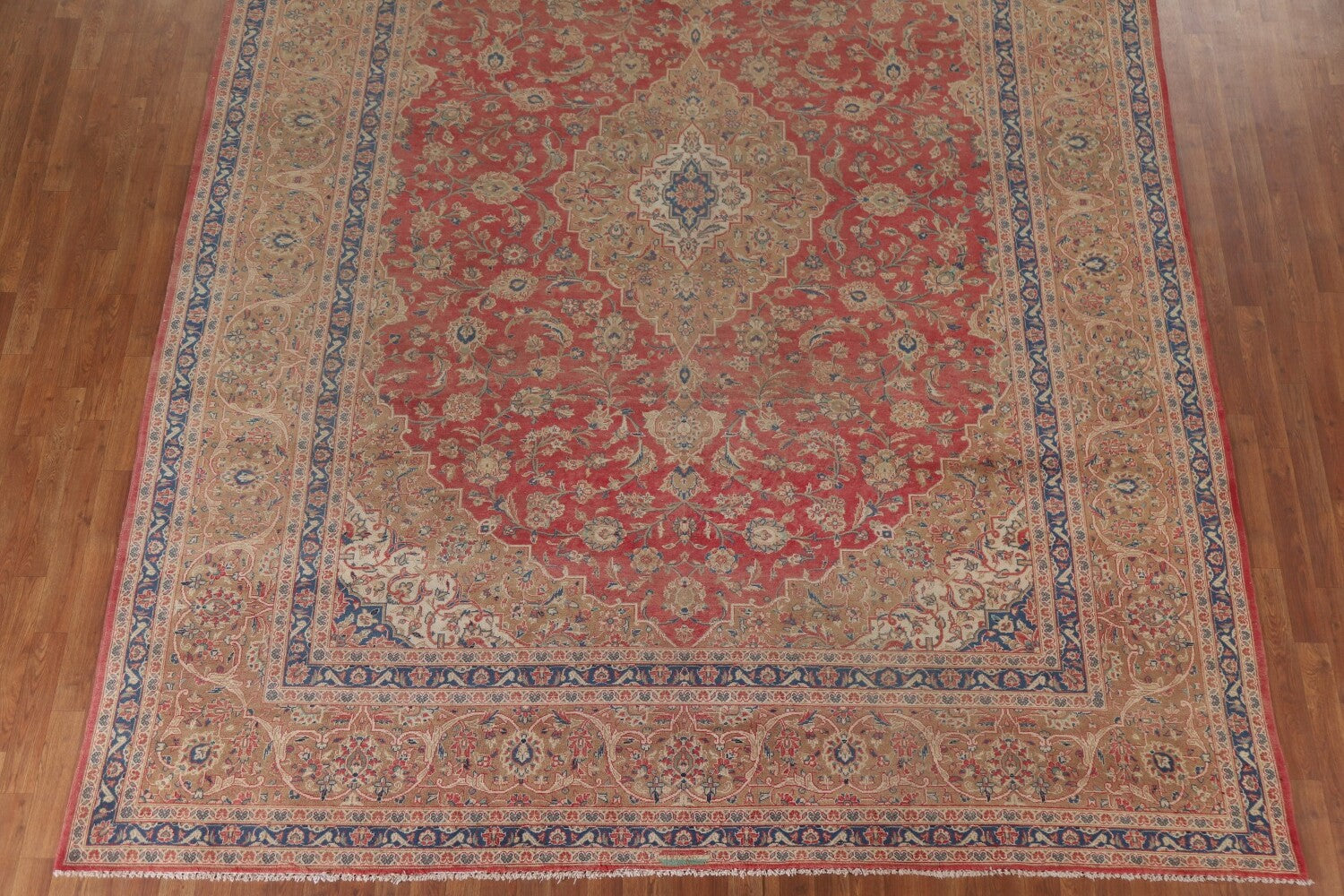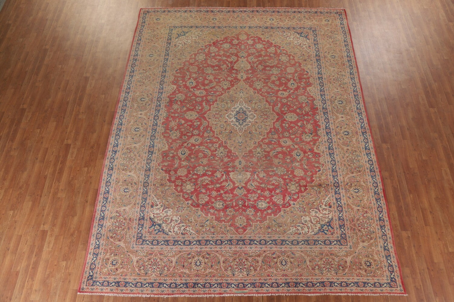 A Beautiful Genuine Persia ( Persia ) Kashan (Signed) rug is Hand Knotted by skillful weavers in Persia ( Persia ) with 100% Wool Material. This rug is in Very Good (Low Pile-Faded Color) condition. dimensions are 12' 8'' X 9' 8'' in foot and 386 X 295 in centimeter. the primary color is Pink.
