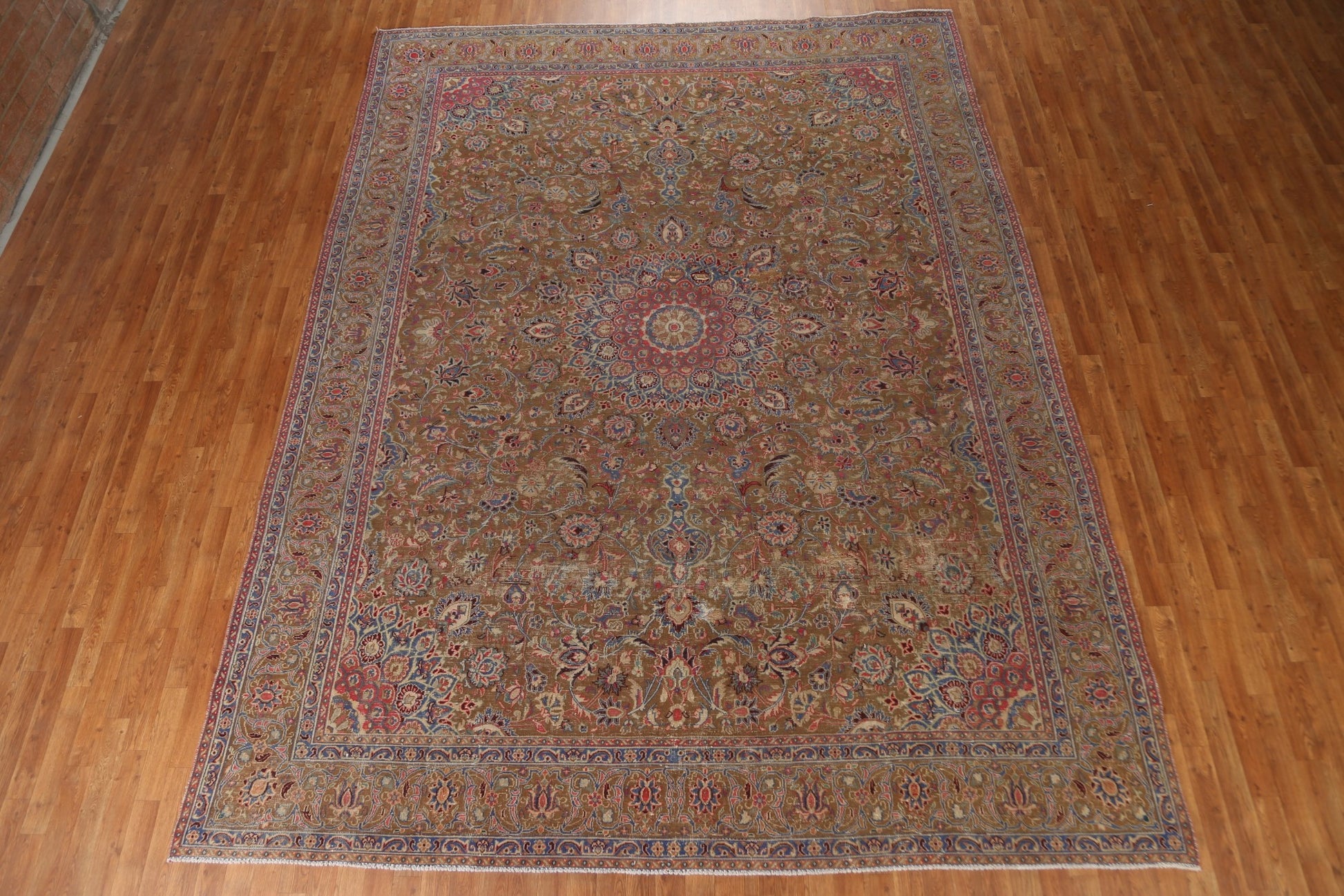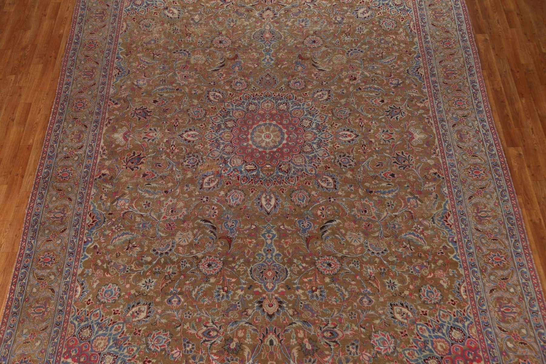 A Beautiful Genuine Persia ( Persia ) Kashmar rug is Hand Knotted by skillful weavers in Persia ( Persia ) with 100% Wool Material. This rug is in Very Good (Evenly Low Pile) condition. dimensions are 12' 6'' X 9' 6'' in foot and 381 X 290 in centimeter. the primary color is Brown.