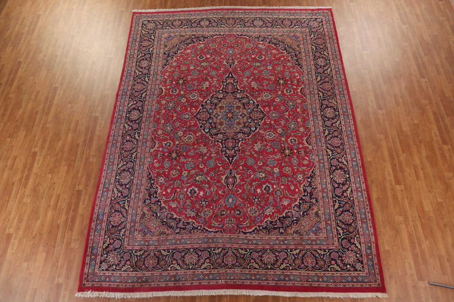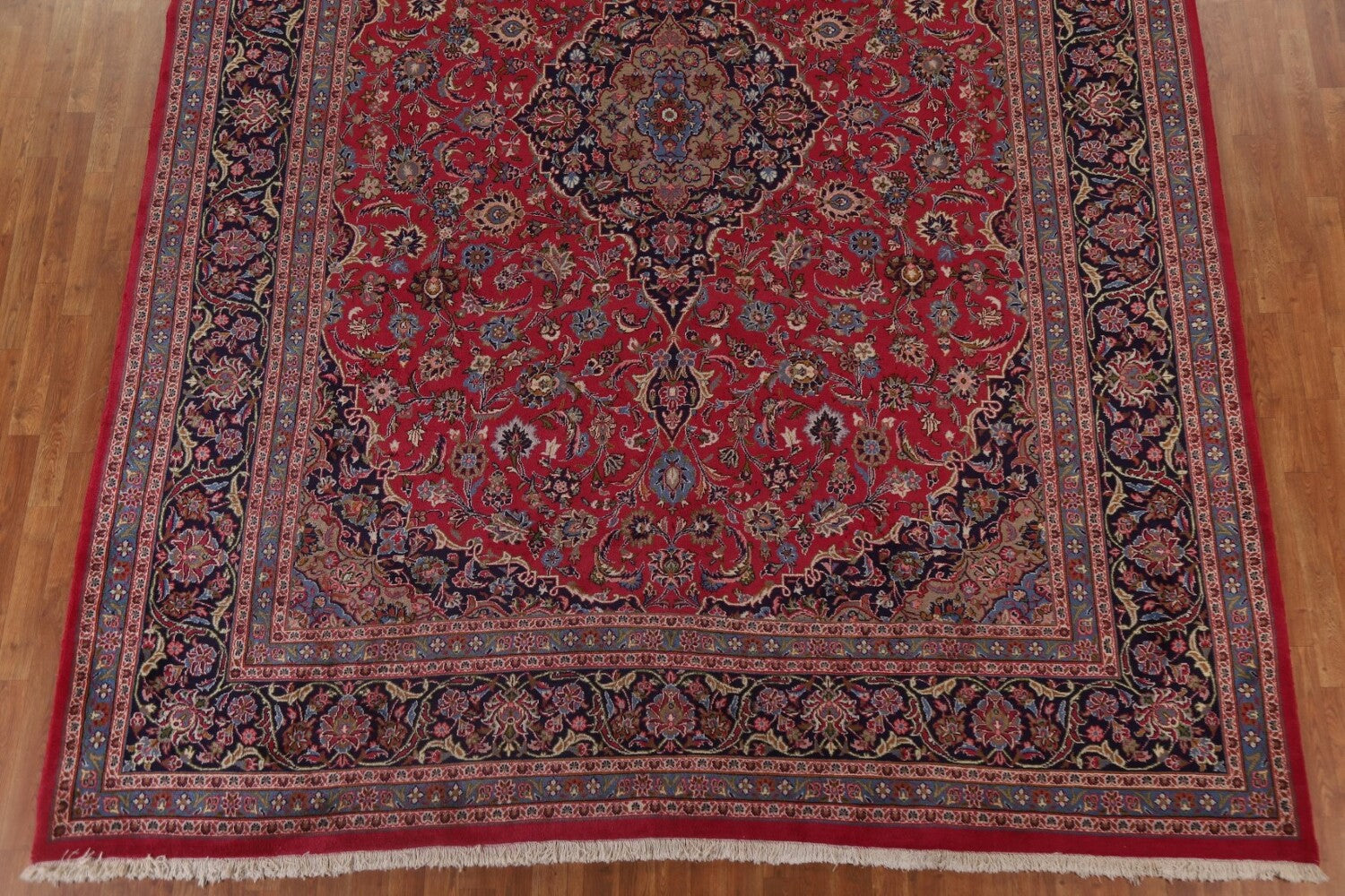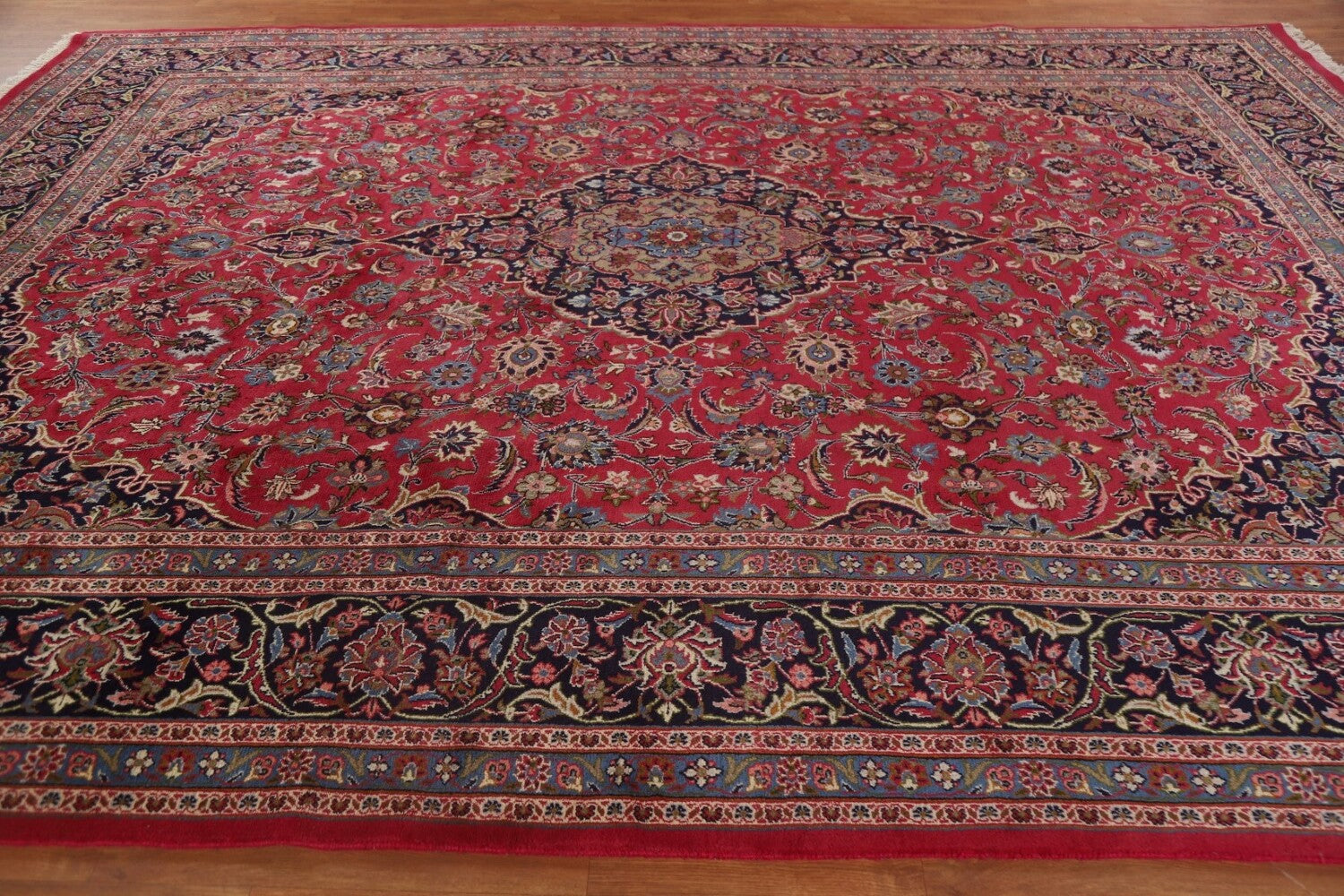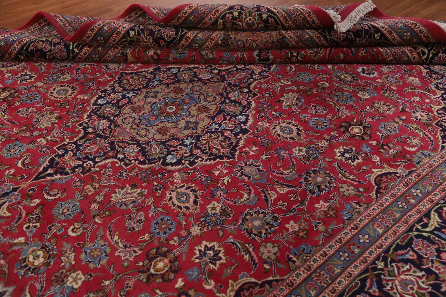 A Beautiful Genuine Persia ( Persia ) Kashmar rug is Hand Knotted by skillful weavers in Persia ( Persia ) with 100% Wool Material. This rug is in Very Good (Missing Pile) condition. dimensions are 13' 1'' X 9' 10'' in foot and 399 X 300 in centimeter. the primary color is Red.