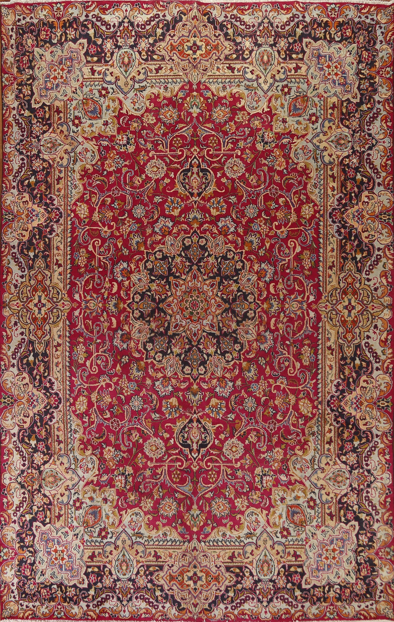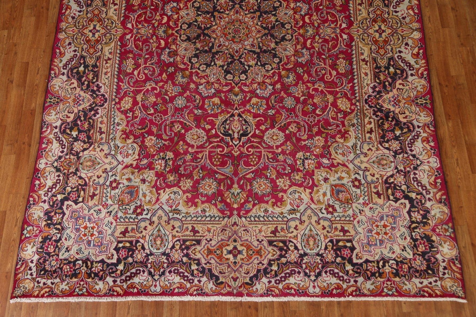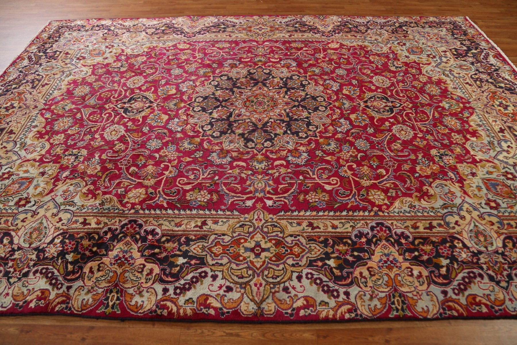 A Beautiful Genuine Persia ( Persia ) Kashmar rug is Hand Knotted by skillful weavers in Persia ( Persia ) with 100% Wool Material. This rug is in Very Good condition. dimensions are 11' 2'' X 7' 11'' in foot and 340 X 241 in centimeter. the primary color is Pink.