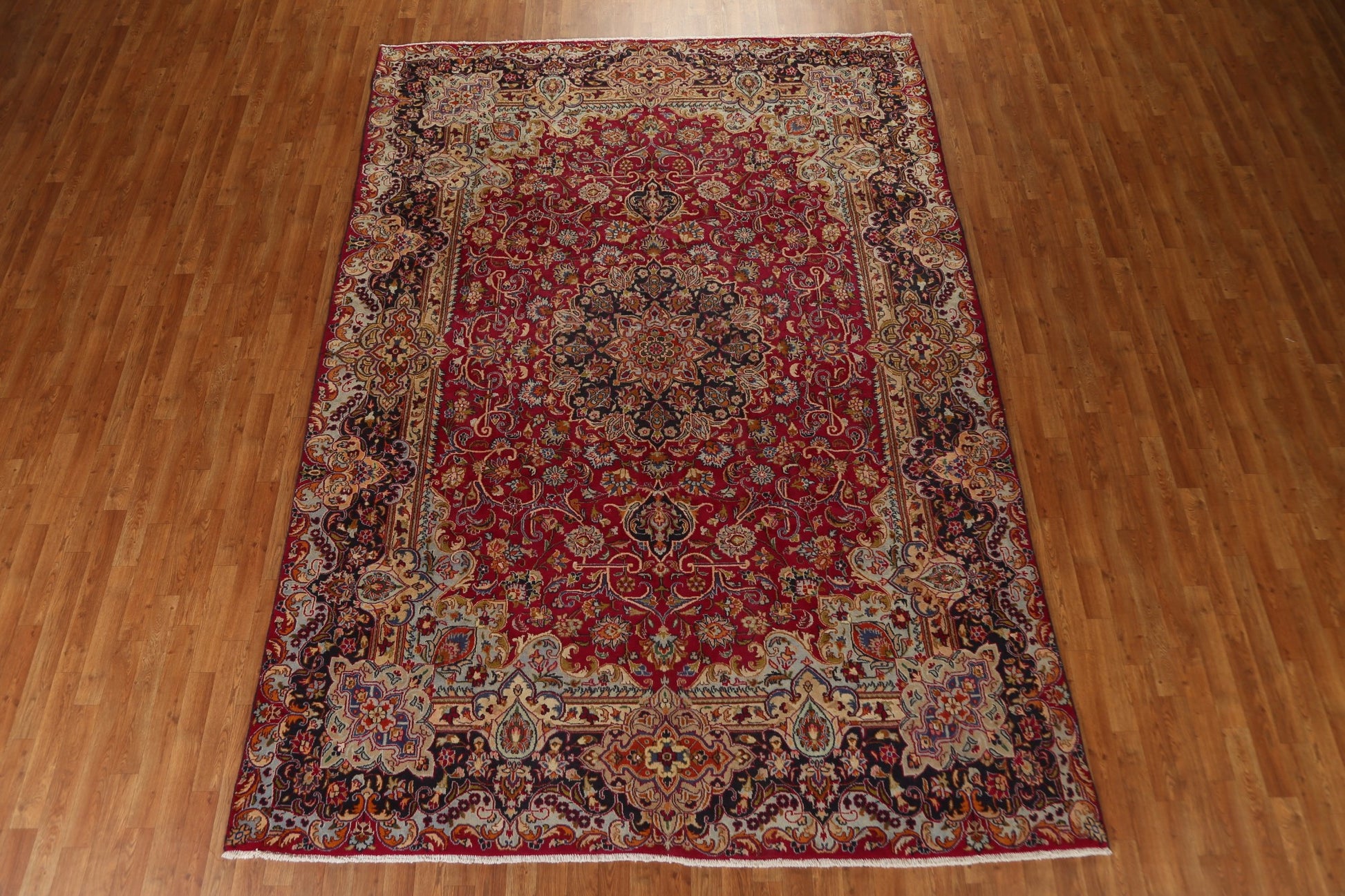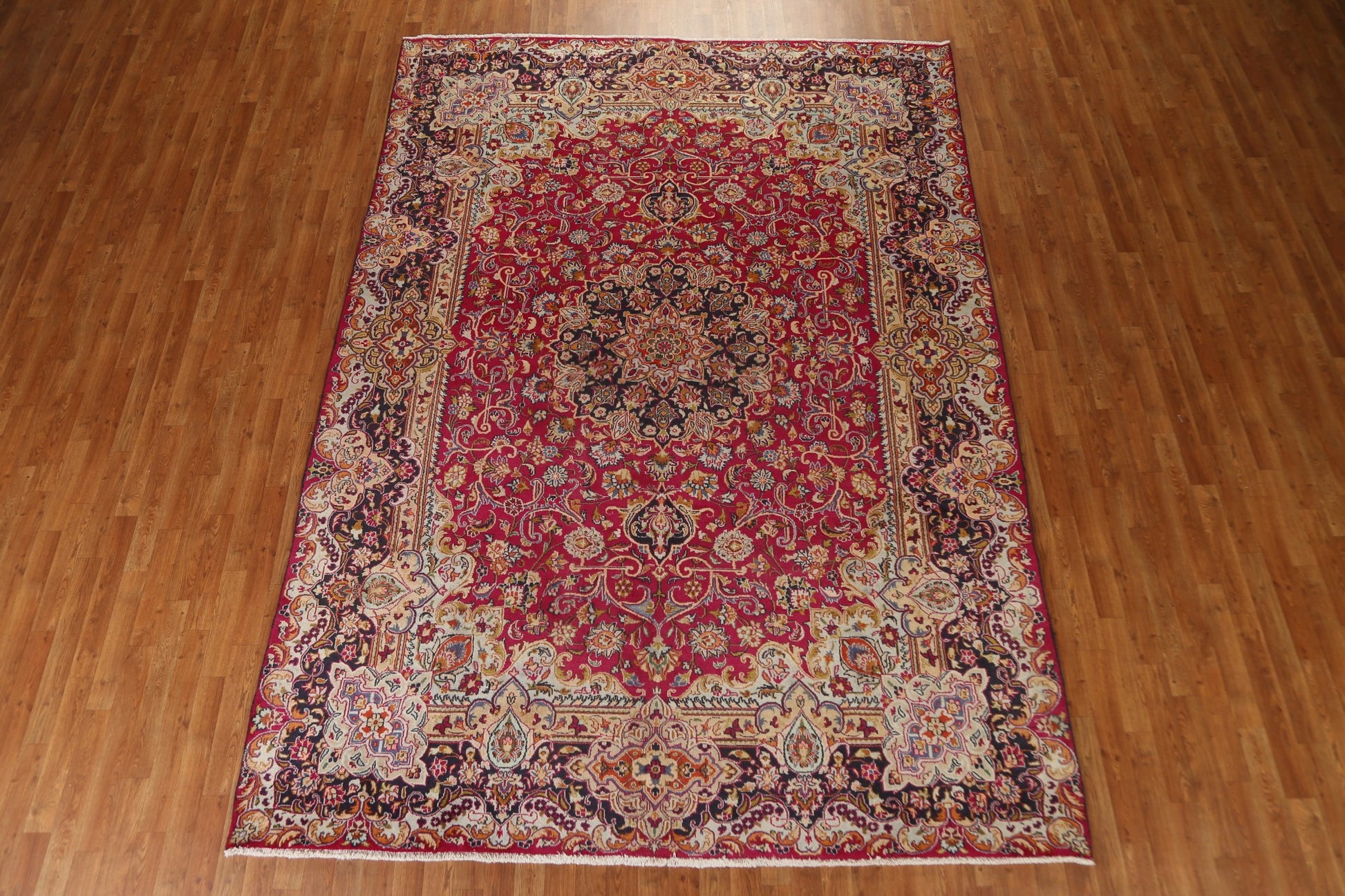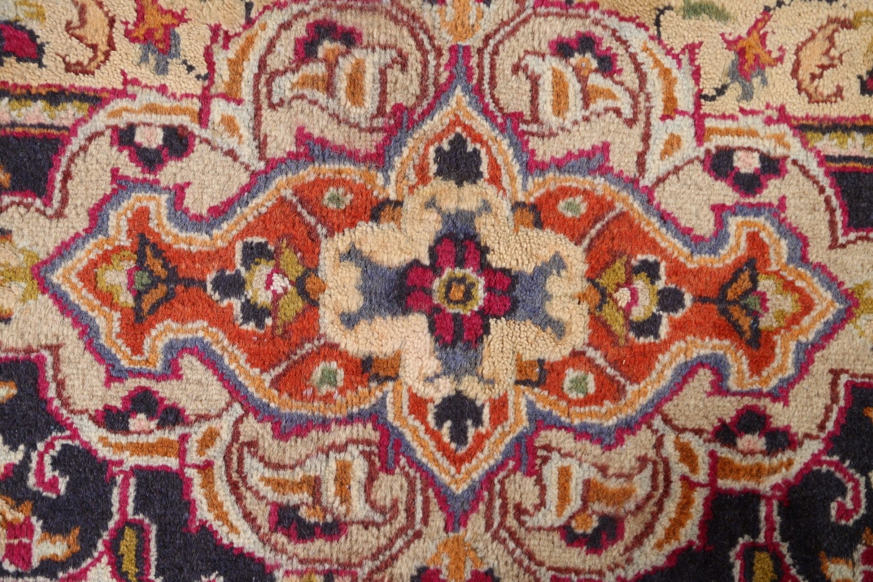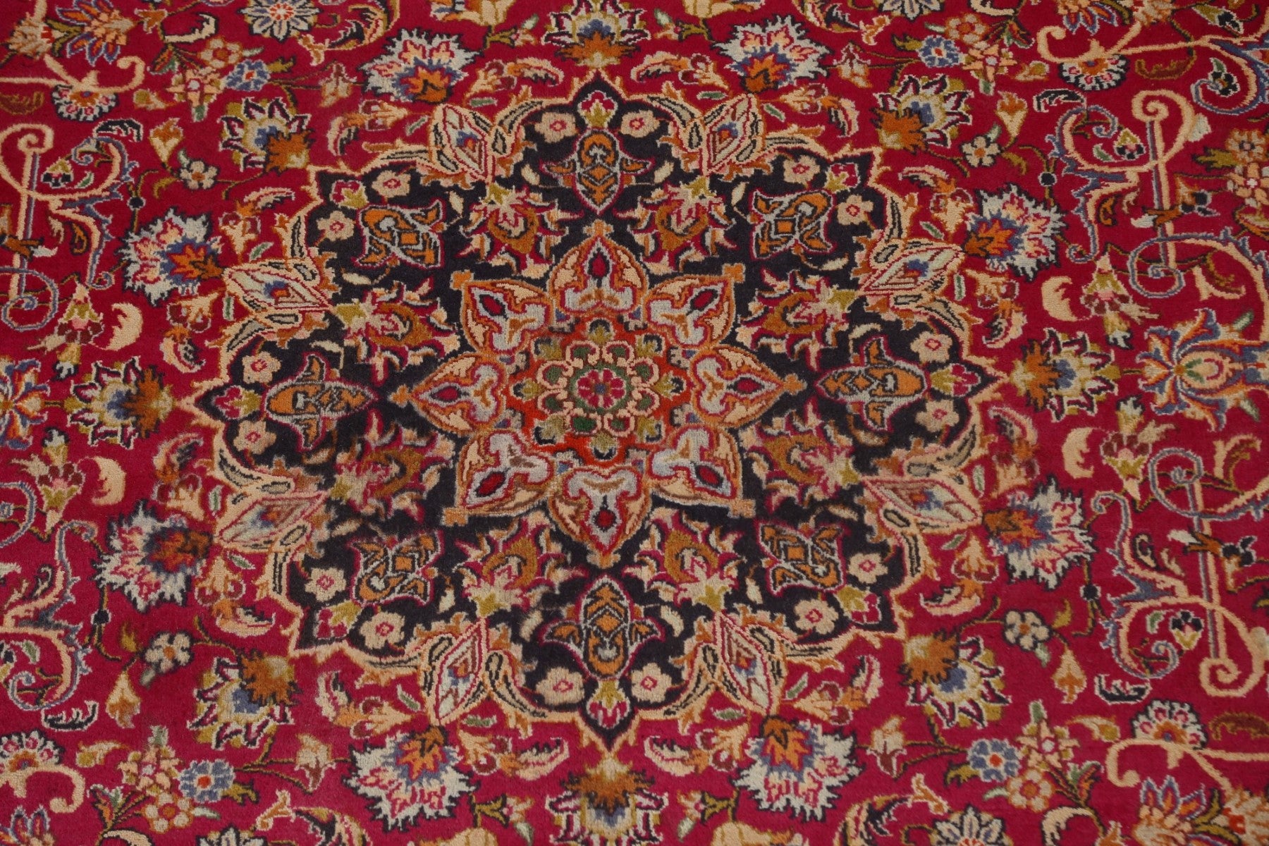 A Beautiful Genuine Persia ( Persia ) Kashmar rug is Hand Knotted by skillful weavers in Persia ( Persia ) with 100% Wool Material. This rug is in Very Good condition. dimensions are 11' 2'' X 7' 11'' in foot and 340 X 241 in centimeter. the primary color is Pink.