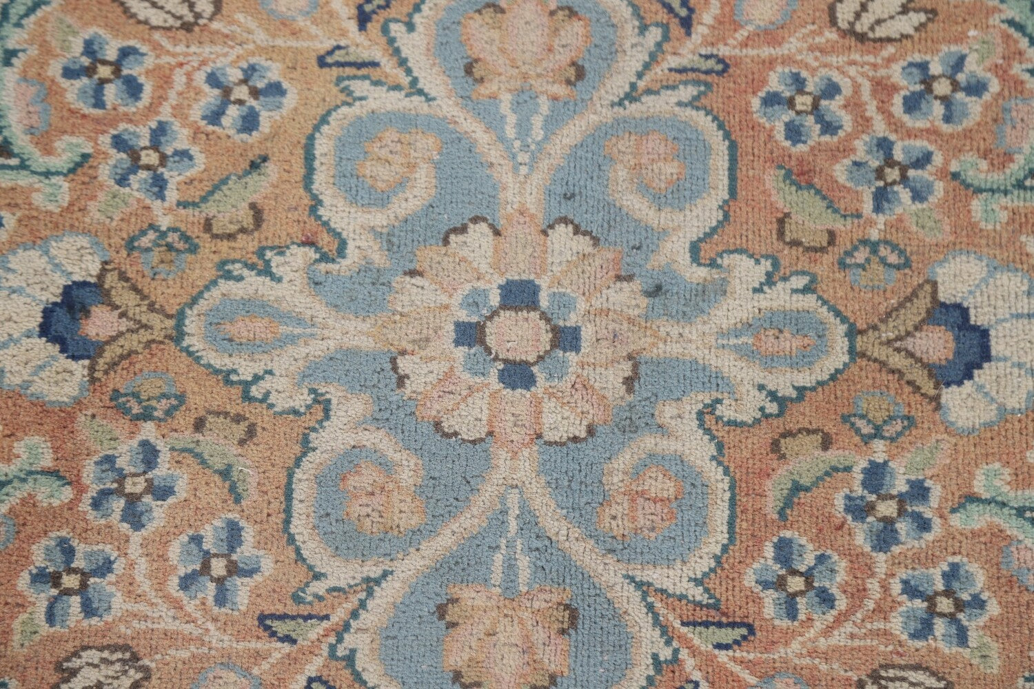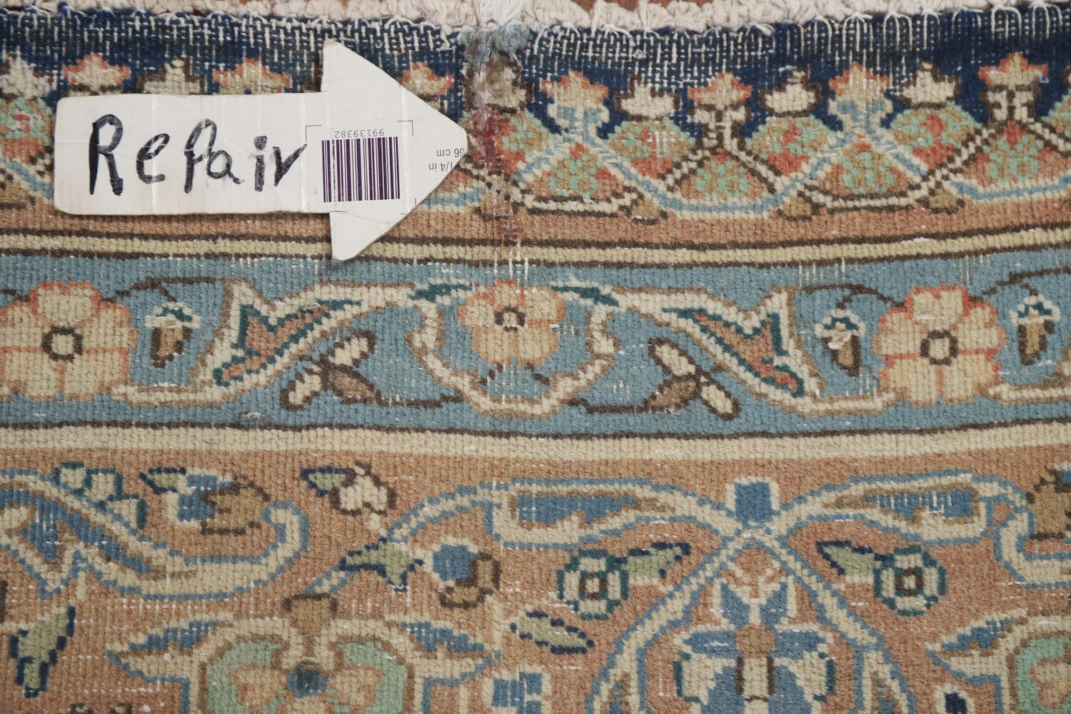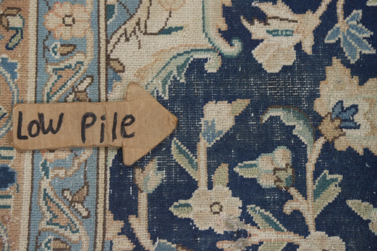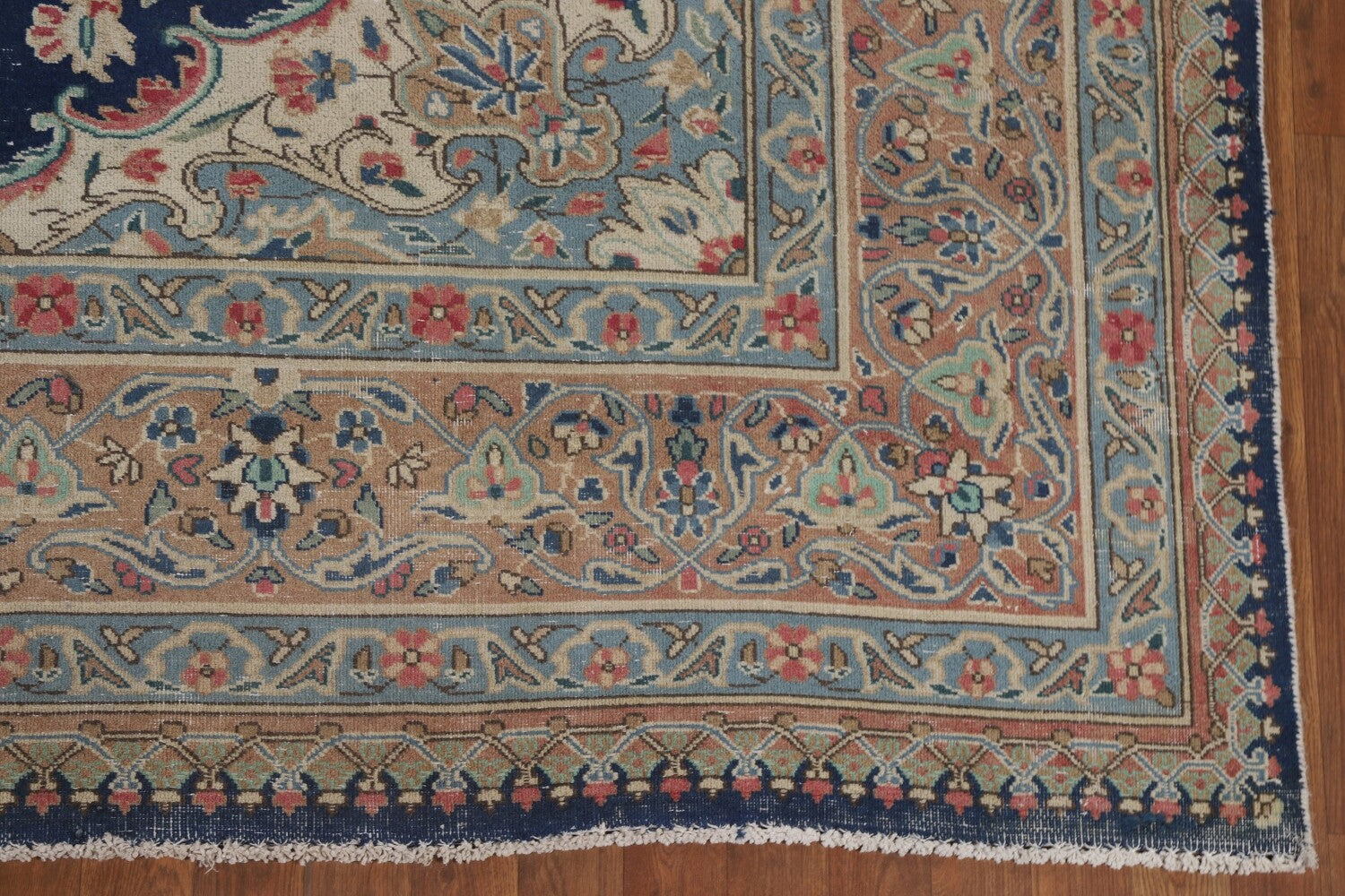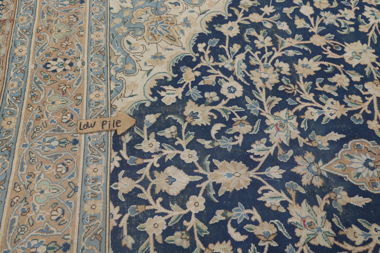 A Beautiful Genuine Persia ( Persia ) Kashmar rug is Hand Knotted by skillful weavers in Persia ( Persia ) with 100% Wool Material. This rug is in Very Good (Low Pile-Repair) condition. dimensions are 11' 8'' X 8' 9'' in foot and 356 X 267 in centimeter. the primary color is Navy Blue & Blues.