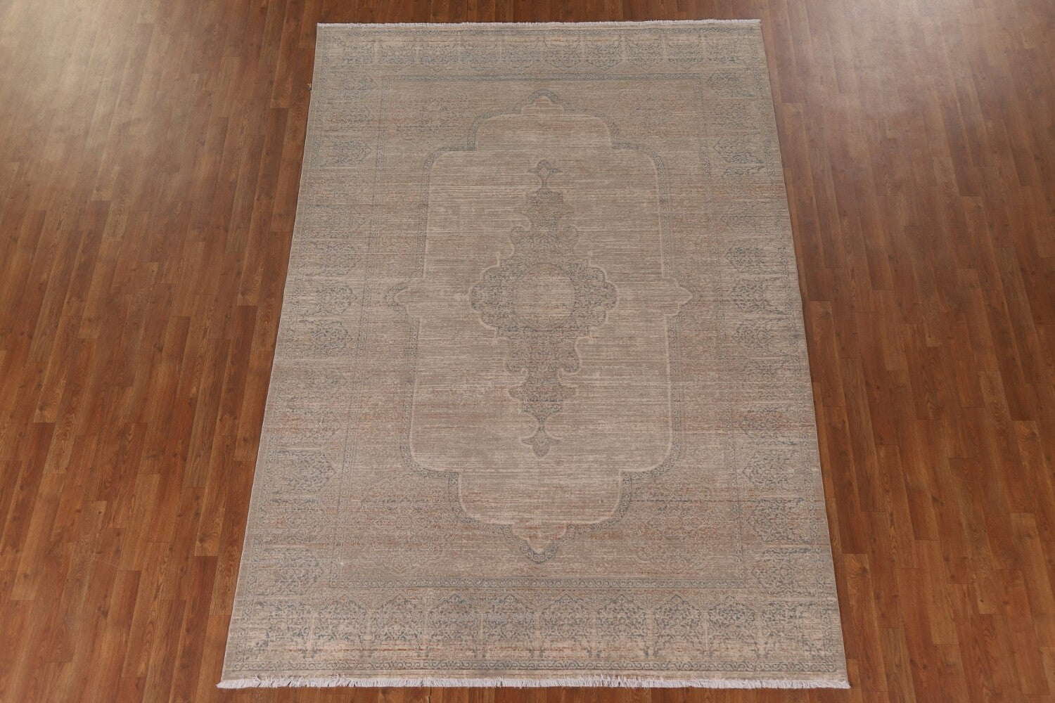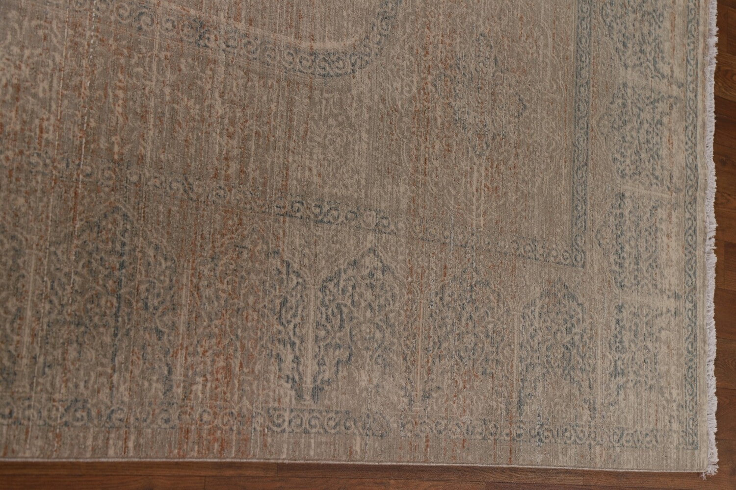 A Beautiful Genuine Turkey Kerman rug is Machine Made by skillful weavers in Turkey with 90% Silk - 10% Polyester Material. This rug is in condition. dimensions are 9' 6'' X 6' 7'' in foot and 290 X 201 in centimeter. the primary color is Beige & Ivories.