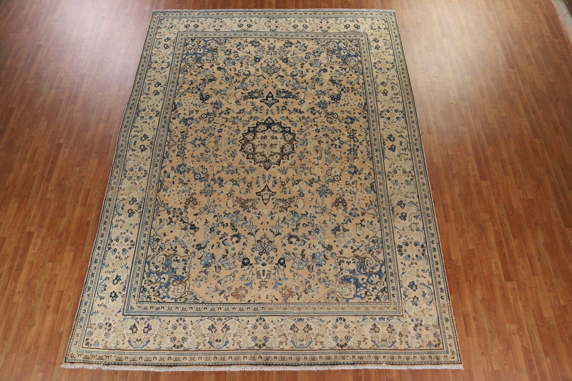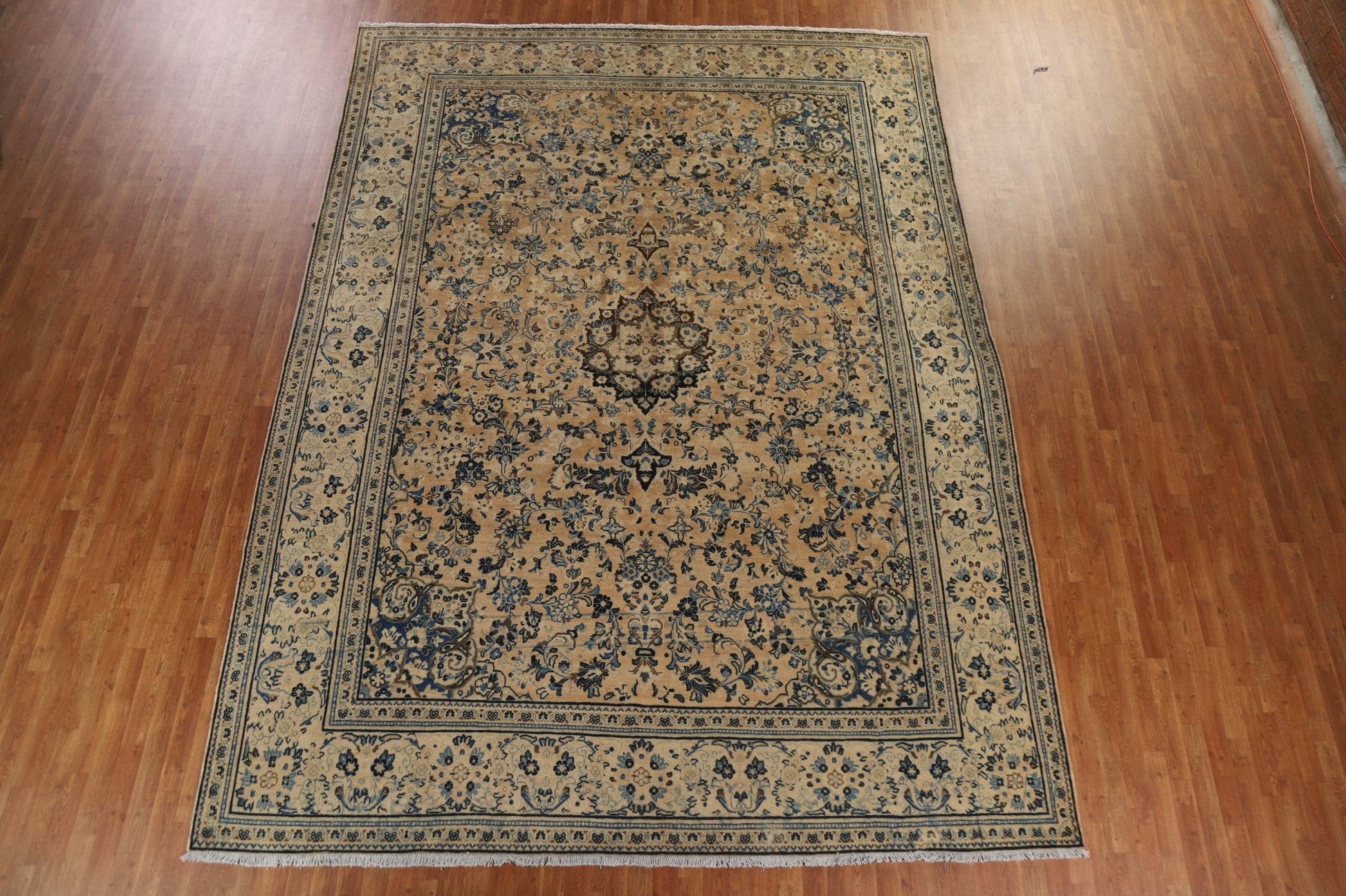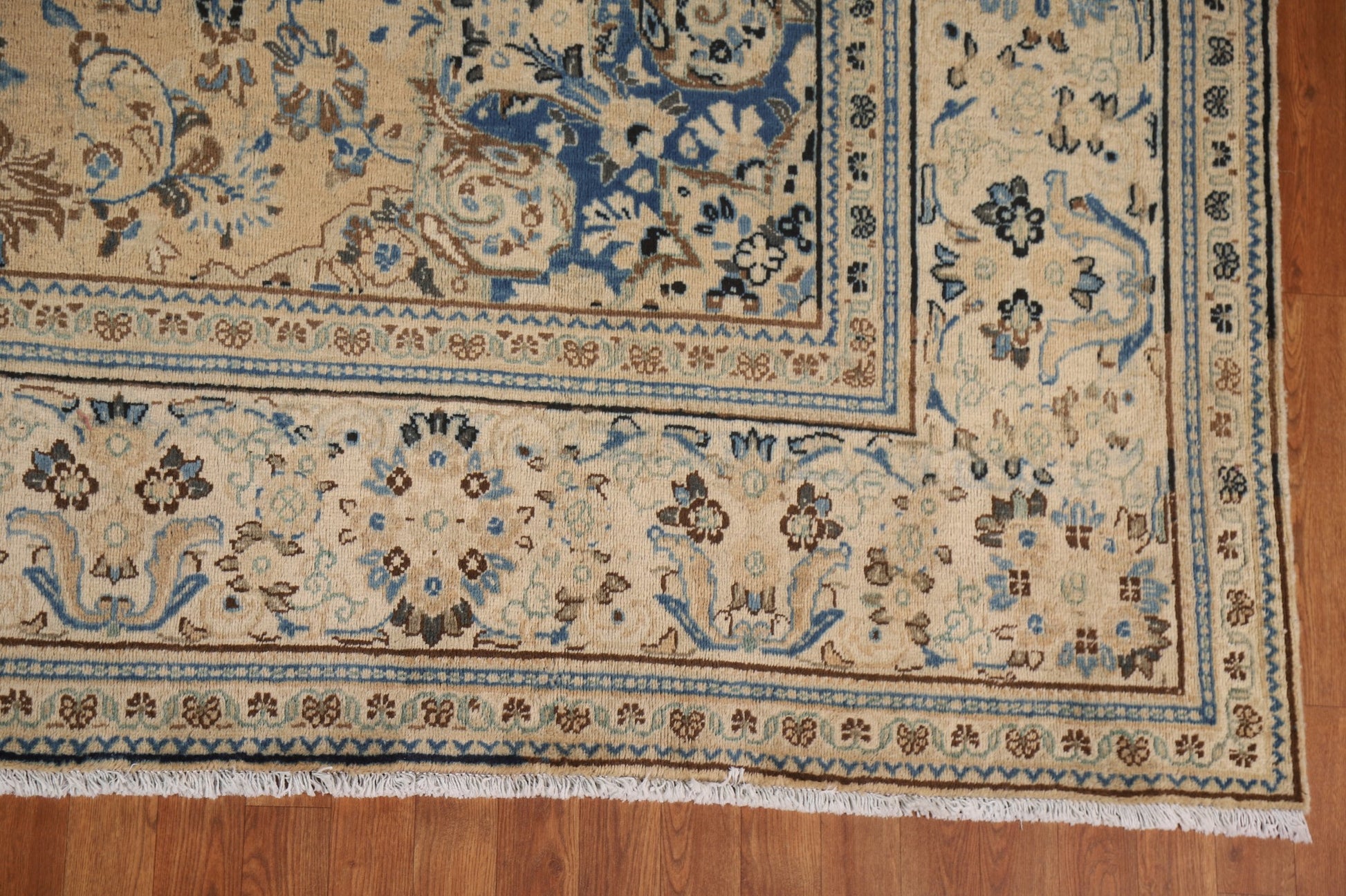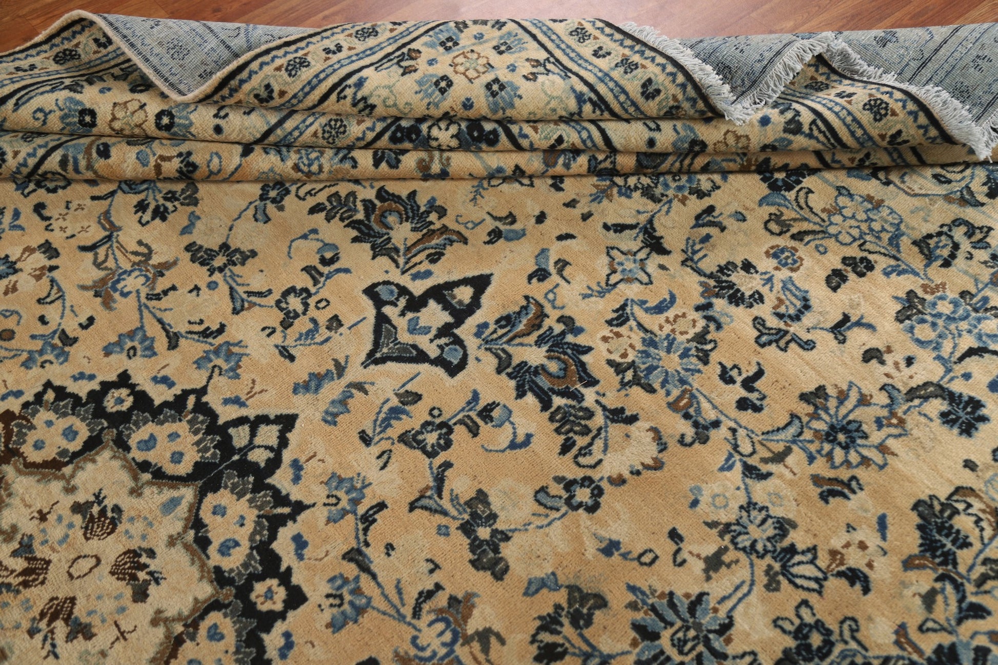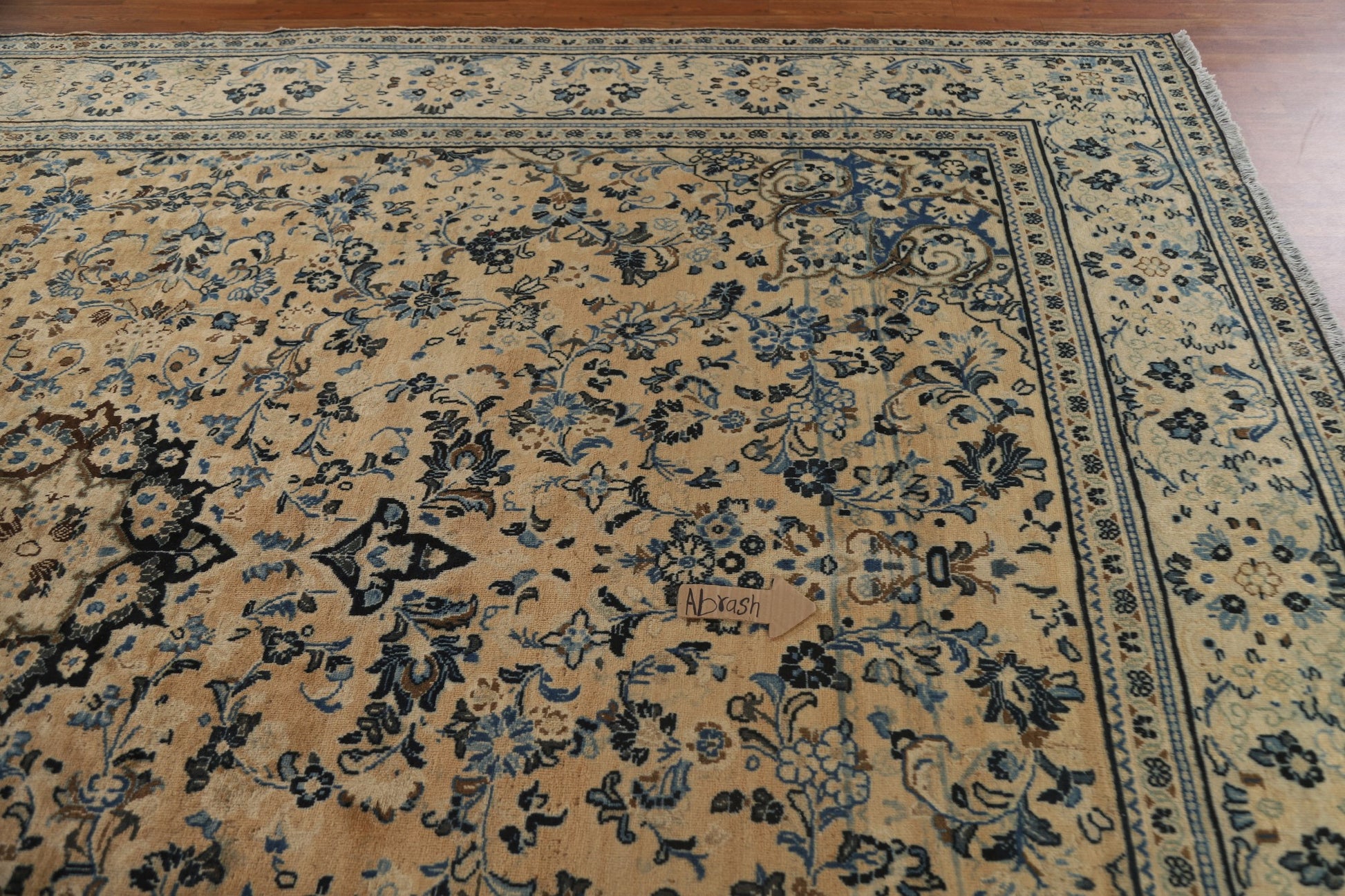 A Beautiful Genuine Persia ( Persia ) Mahal rug is Hand Knotted by skillful weavers in Persia ( Persia ) with 100% Wool Material. This rug is in Very Good (Low Pile-Abrash) condition. dimensions are 13' 9'' X 10' 1'' in foot and 419 X 307 in centimeter. the primary color is Peach.