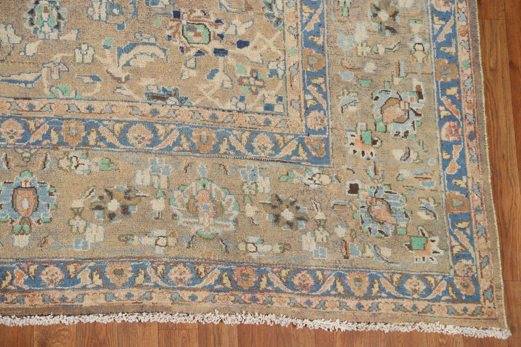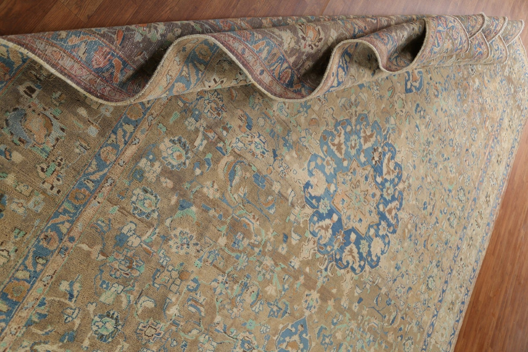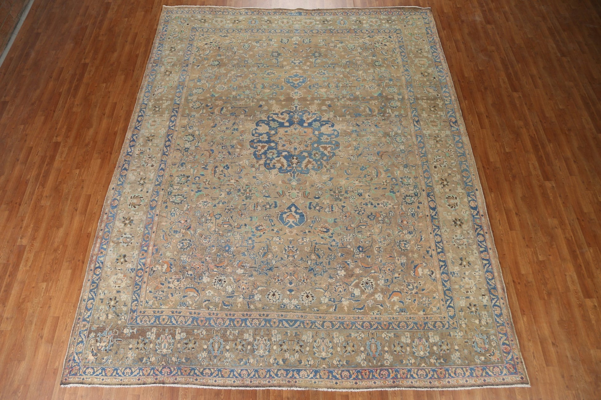 A Beautiful Genuine Persia ( Persia ) Mashad rug is Hand Knotted by skillful weavers in Persia ( Persia ) with 100% Wool Material. This rug is in Very Good (Low Pile-Abrash) condition. dimensions are 12' 5'' X 9' 11'' in foot and 378 X 302 in centimeter. the primary color is Brown.