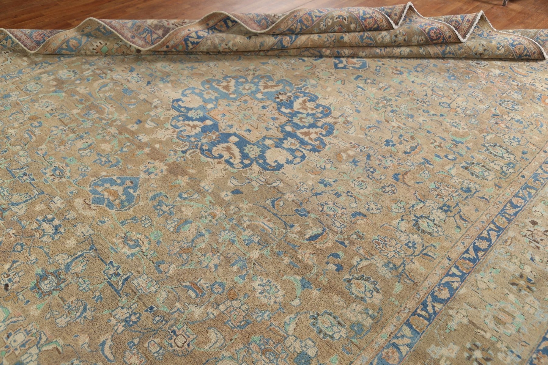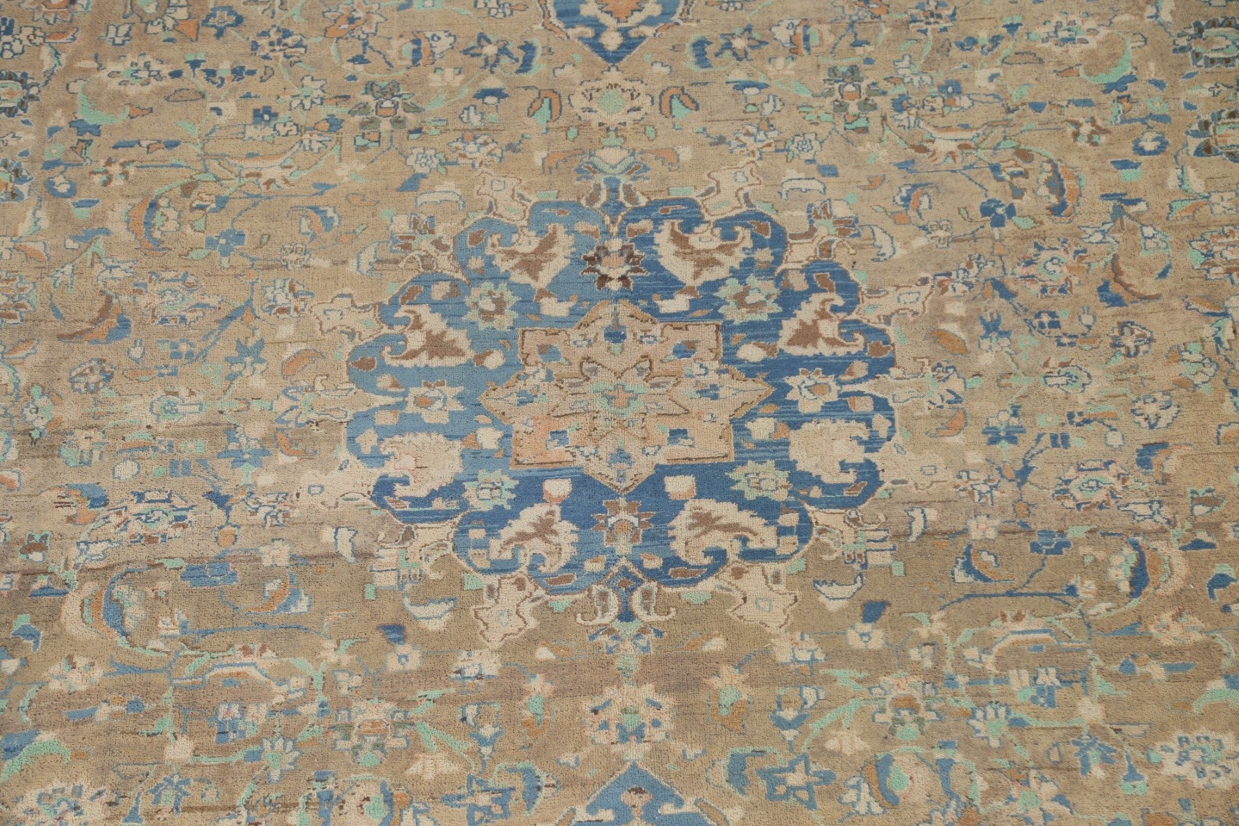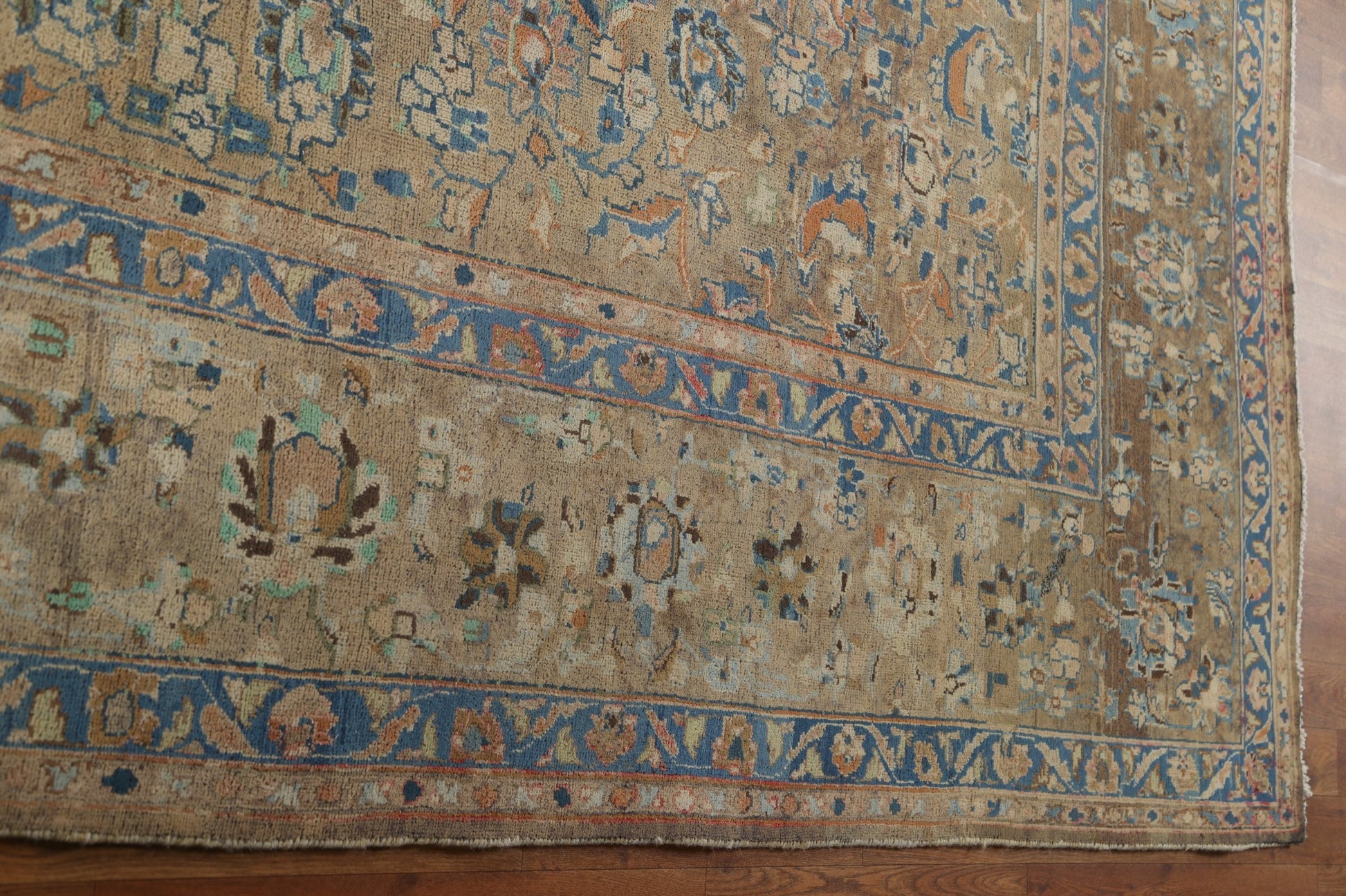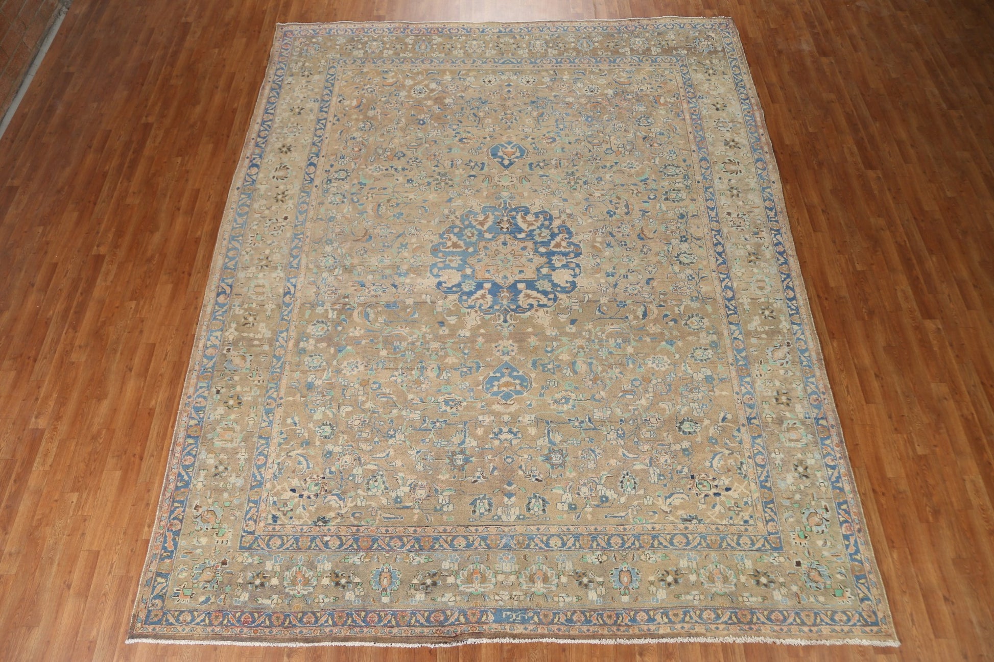 A Beautiful Genuine Persia ( Persia ) Mashad rug is Hand Knotted by skillful weavers in Persia ( Persia ) with 100% Wool Material. This rug is in Very Good (Low Pile-Abrash) condition. dimensions are 12' 5'' X 9' 11'' in foot and 378 X 302 in centimeter. the primary color is Brown.