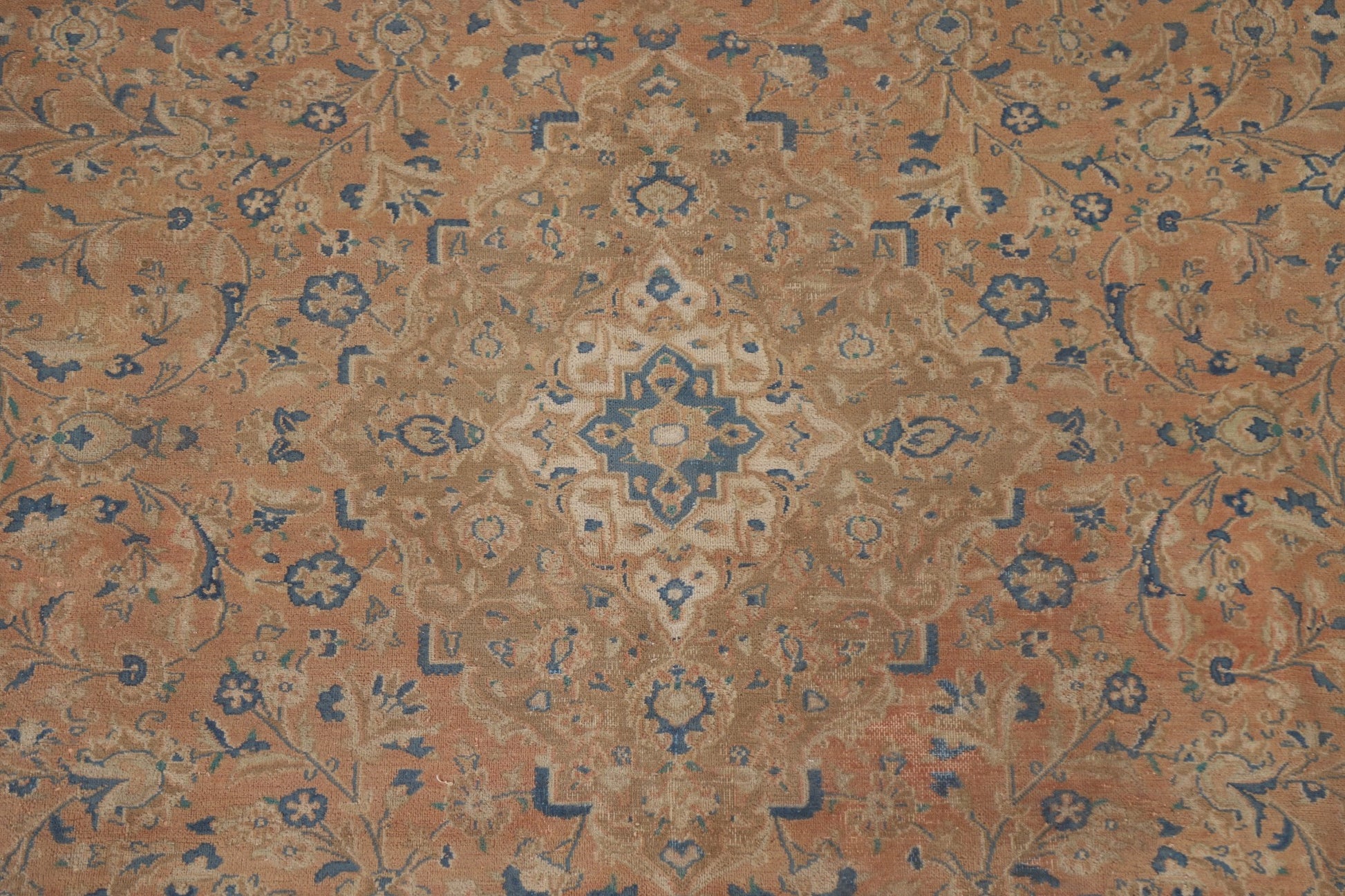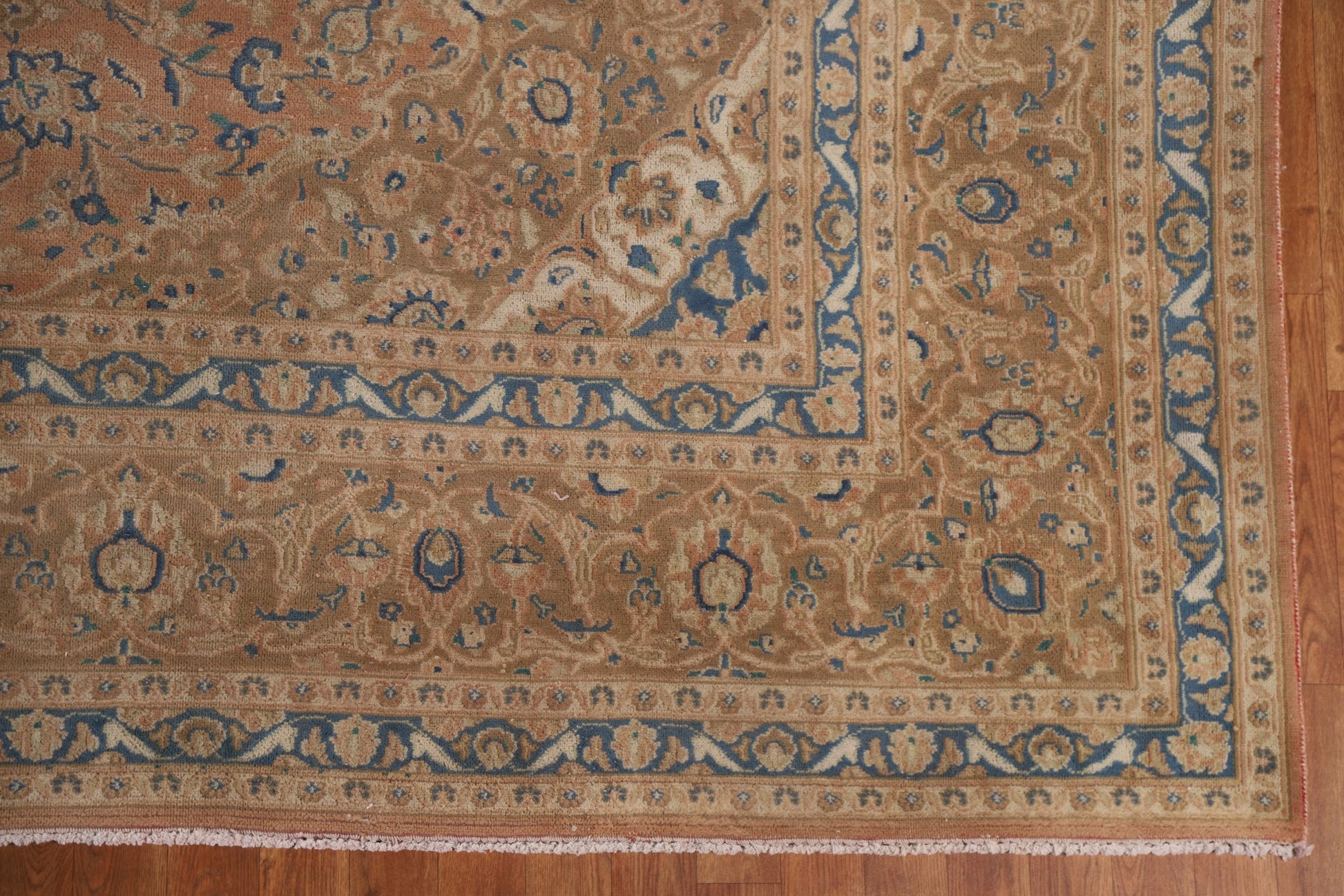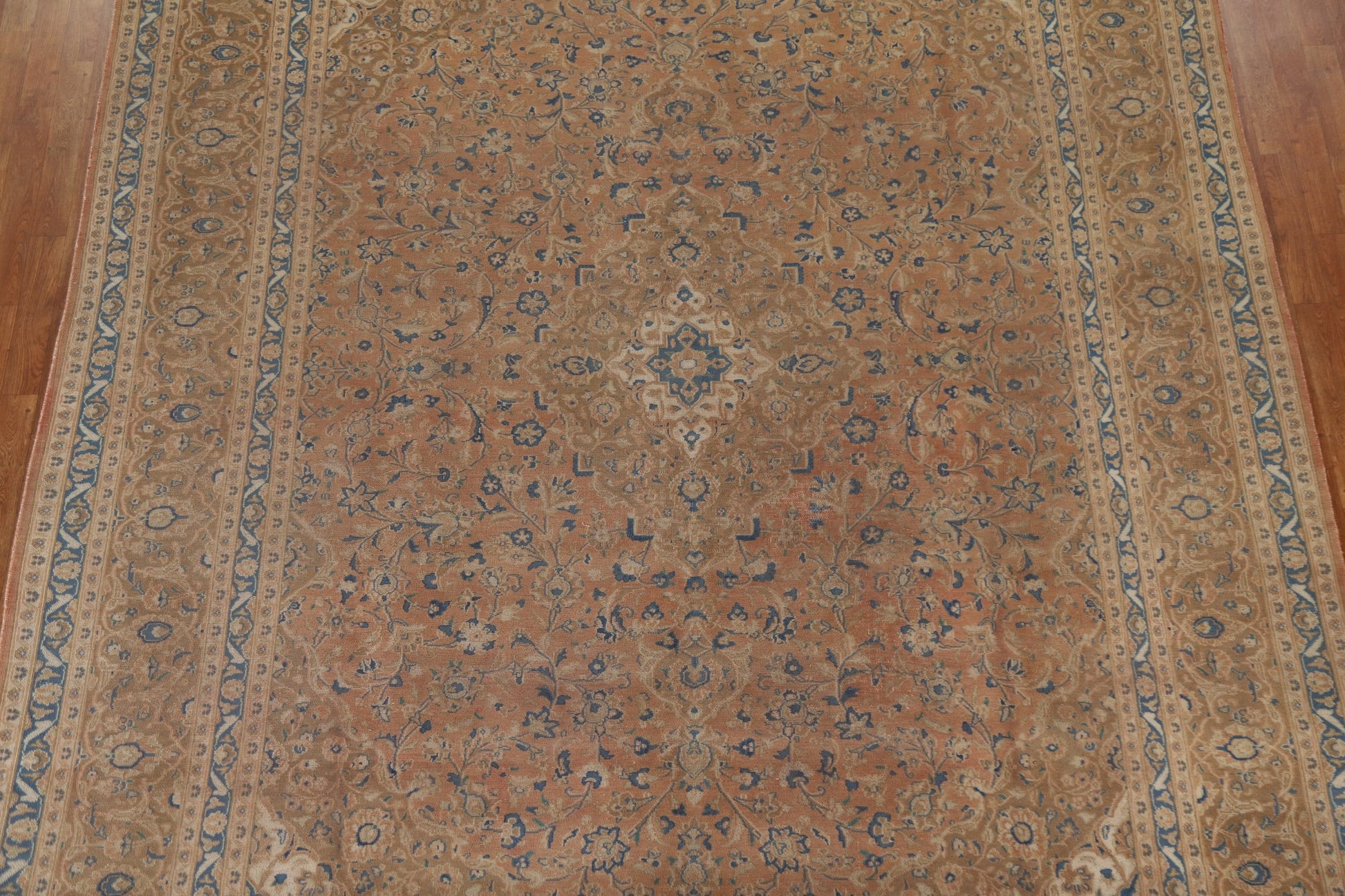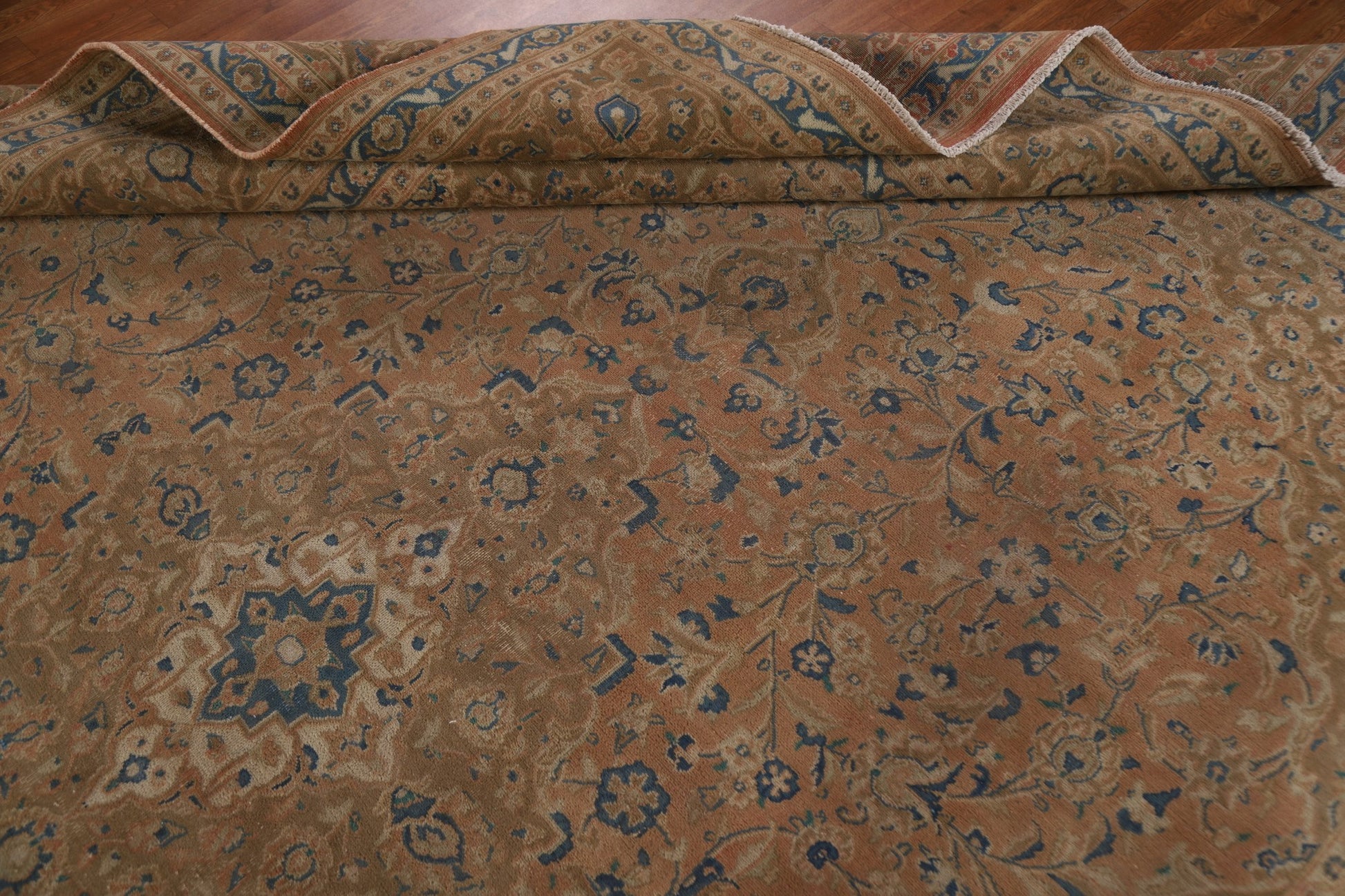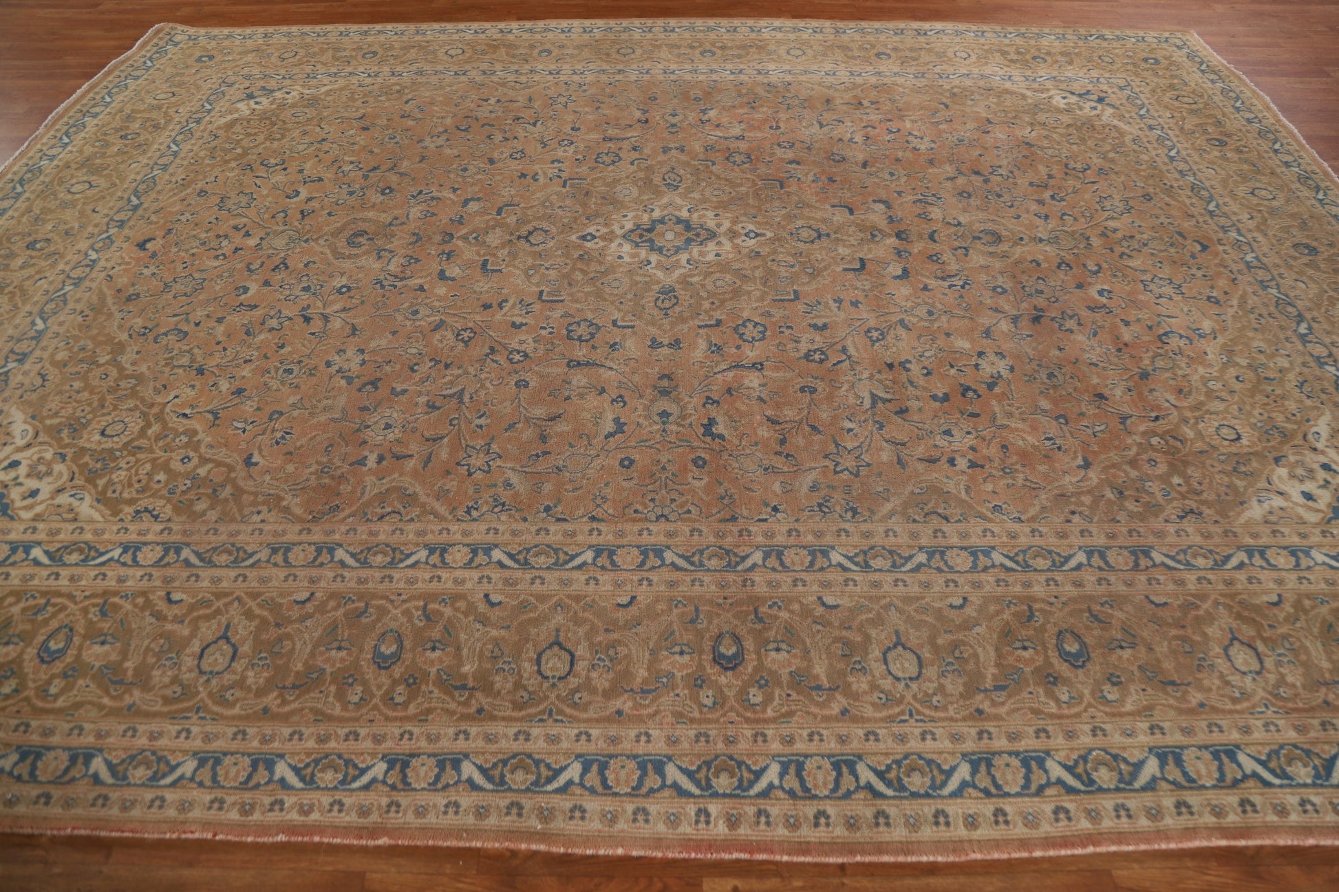 A Beautiful Genuine Persia ( Persia ) Mashad rug is Hand Knotted by skillful weavers in Persia ( Persia ) with 100% Wool Material. This rug is in Very Good (Evenly Low Pile) condition. dimensions are 12' 5'' X 9' 7'' in foot and 378 X 292 in centimeter. the primary color is Coral.