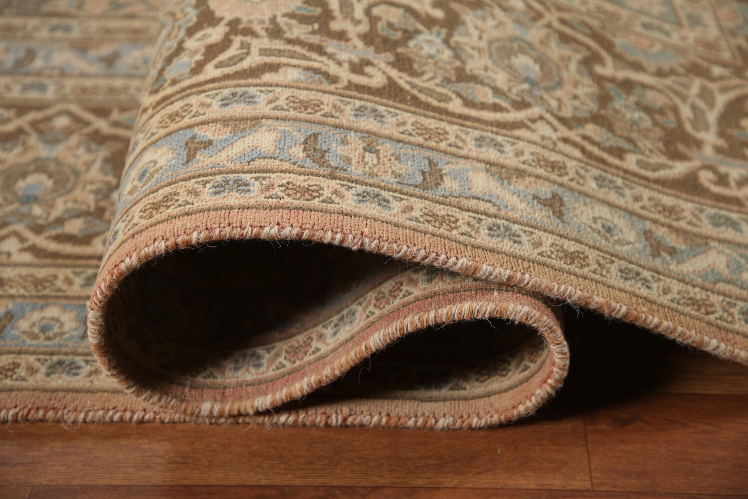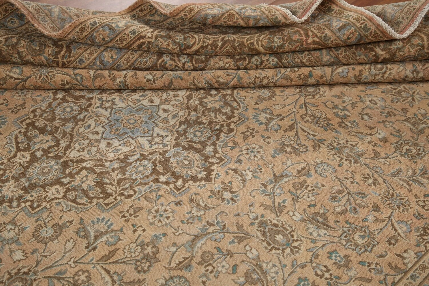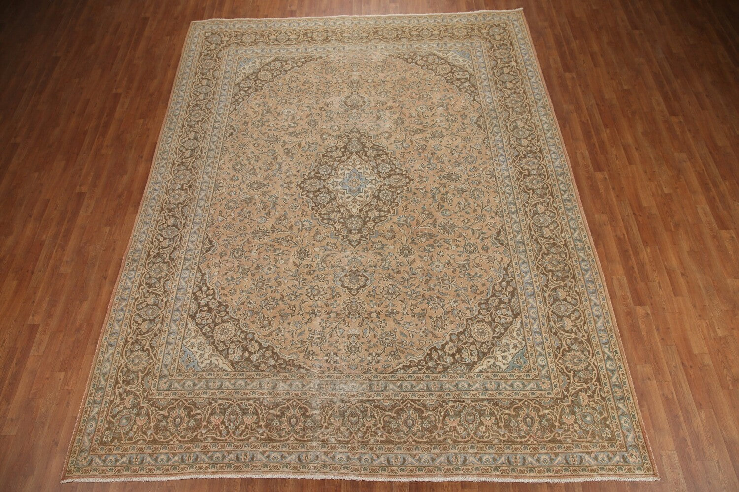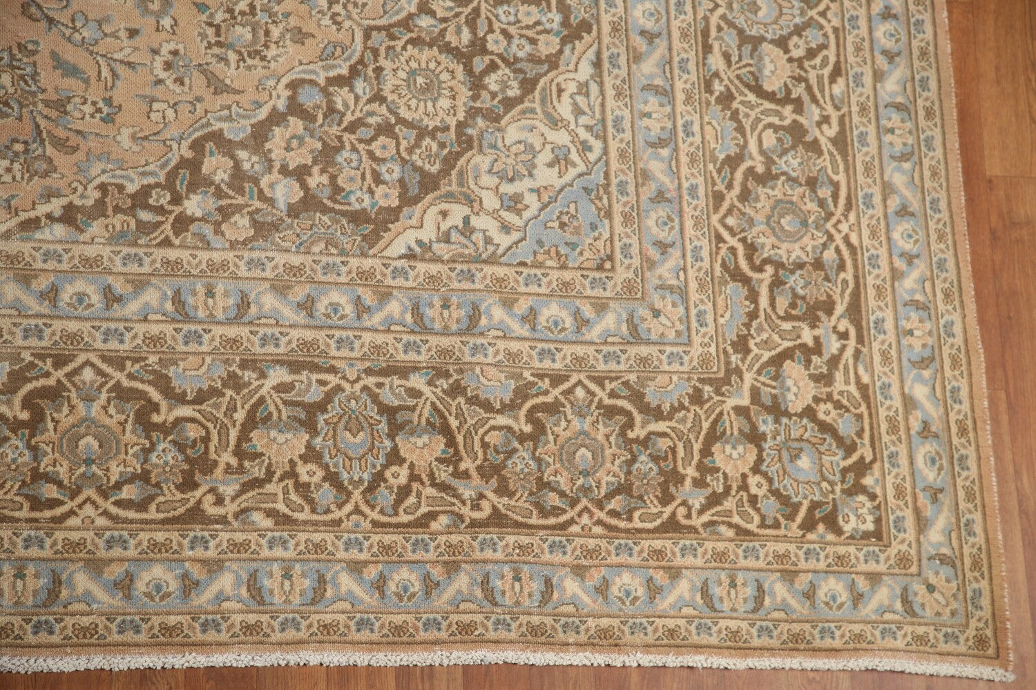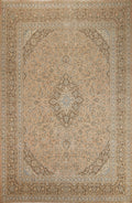 A Beautiful Genuine Persia ( Persia ) Mashad rug is Hand Knotted by skillful weavers in Persia ( Persia ) with 100% Wool Material. This rug is in Very Good (Evenly Low Pile) condition. dimensions are 12' 3'' X 9' 7'' in foot and 373 X 292 in centimeter. the primary color is Peach.