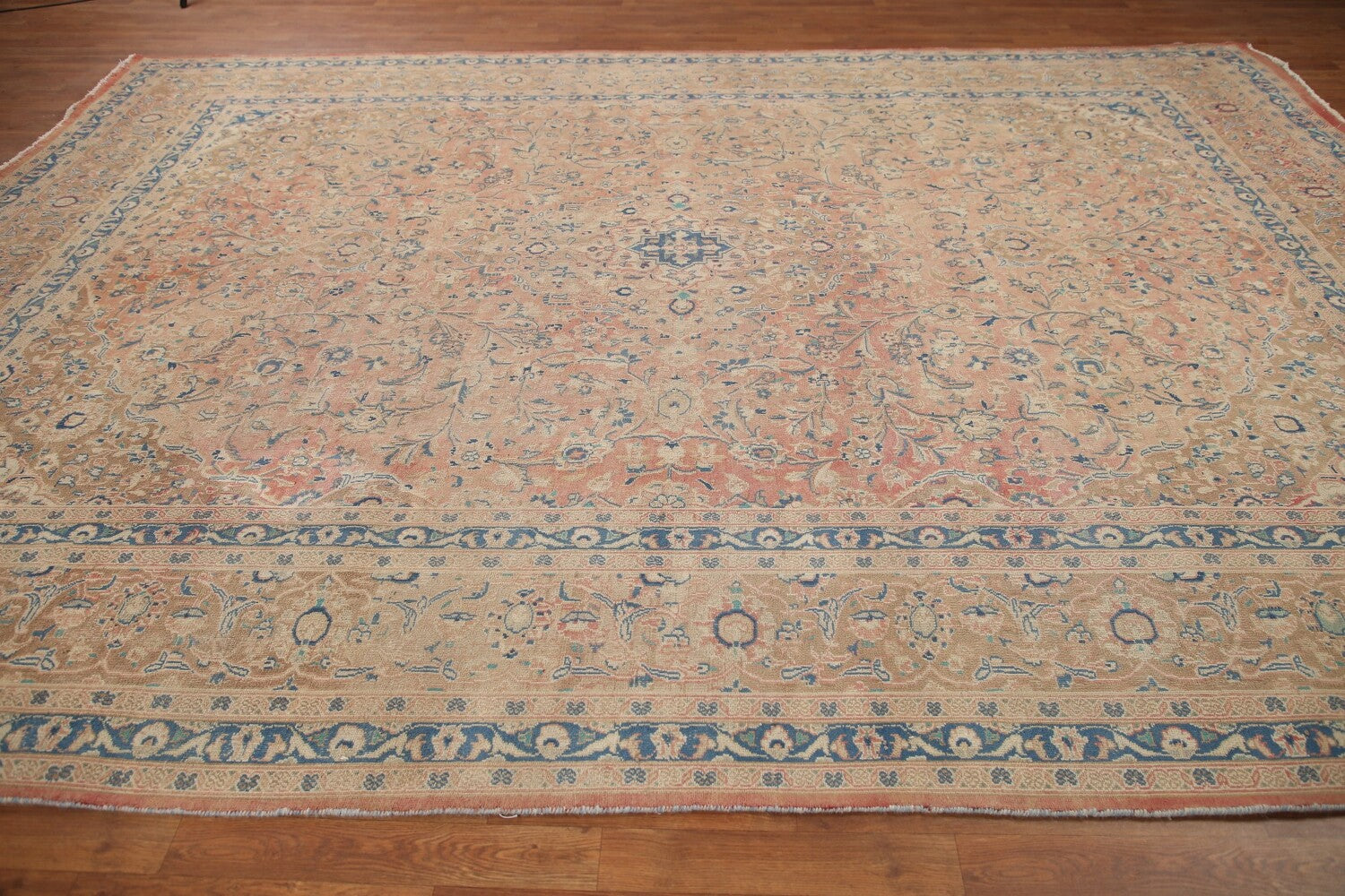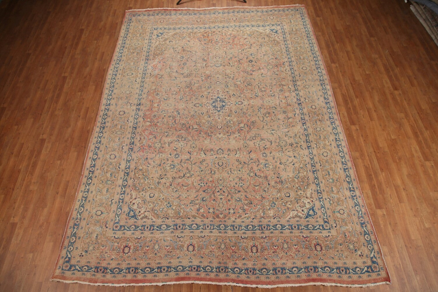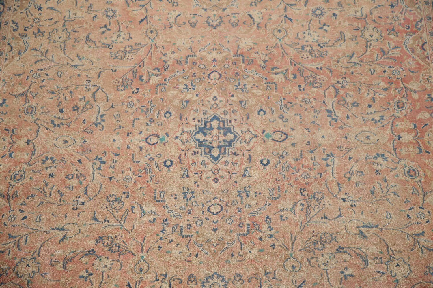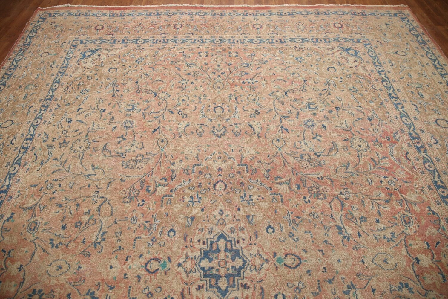 A Beautiful Genuine Persia ( Persia ) Mashad rug is Hand Knotted by skillful weavers in Persia ( Persia ) with 100% Wool Material. This rug is in Very Good (Evenly Low Pile) condition. dimensions are 12' 10'' X 9' 6'' in foot and 391 X 290 in centimeter. the primary color is Pink.