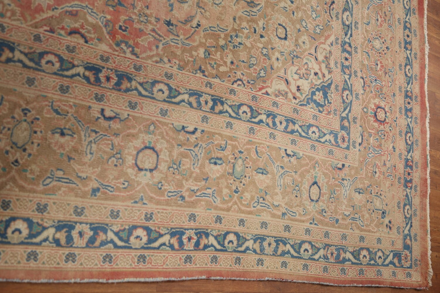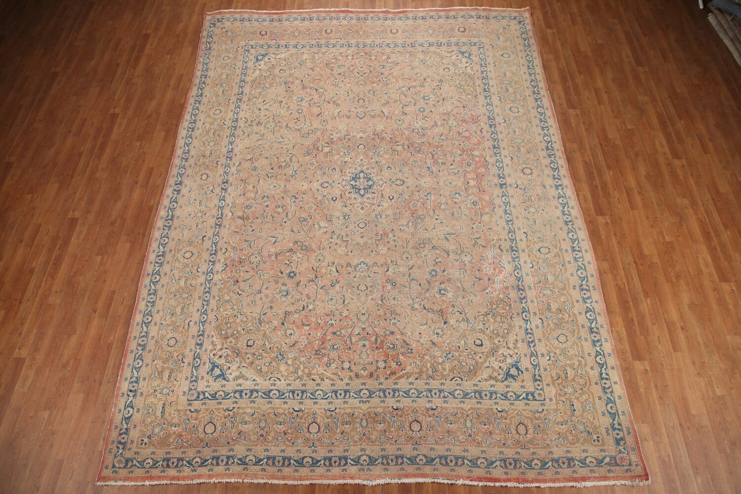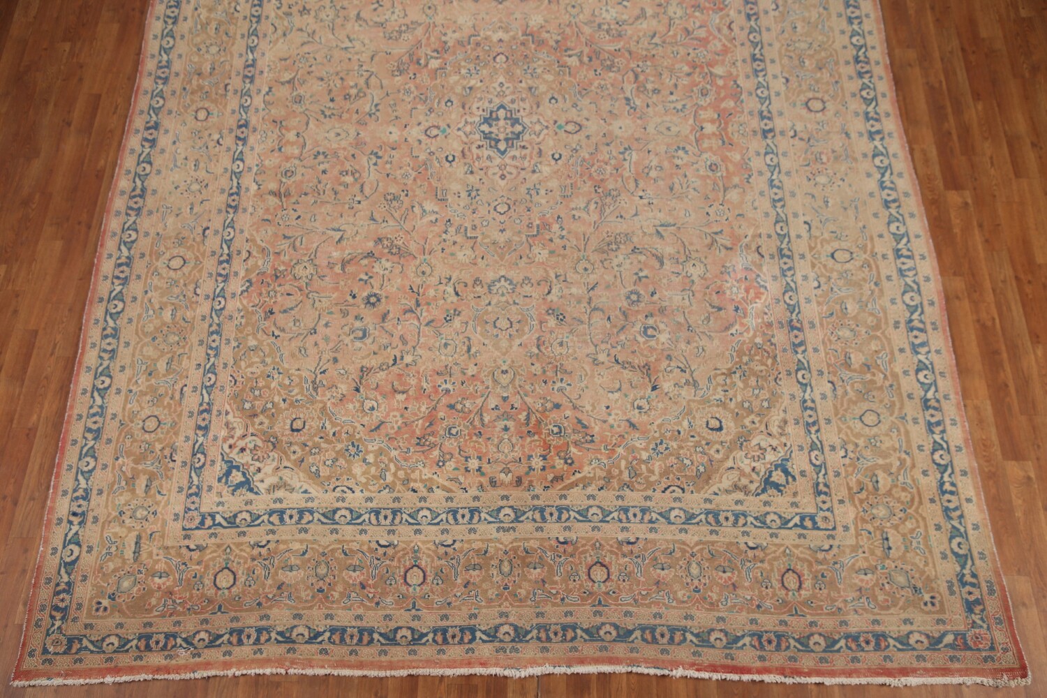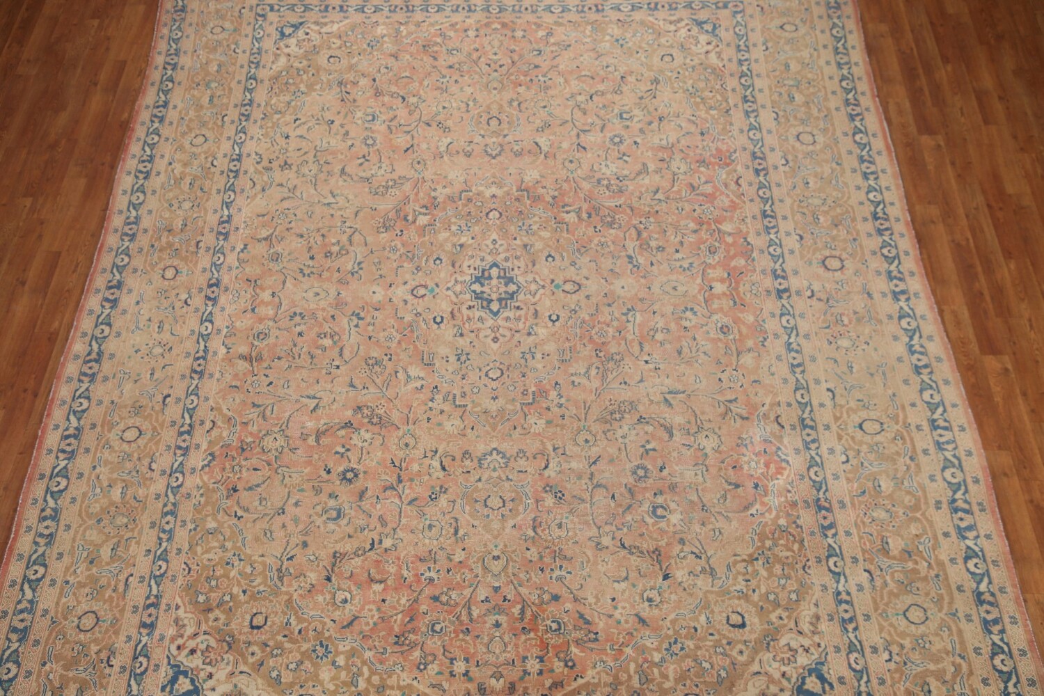 A Beautiful Genuine Persia ( Persia ) Mashad rug is Hand Knotted by skillful weavers in Persia ( Persia ) with 100% Wool Material. This rug is in Very Good (Evenly Low Pile) condition. dimensions are 12' 10'' X 9' 6'' in foot and 391 X 290 in centimeter. the primary color is Pink.