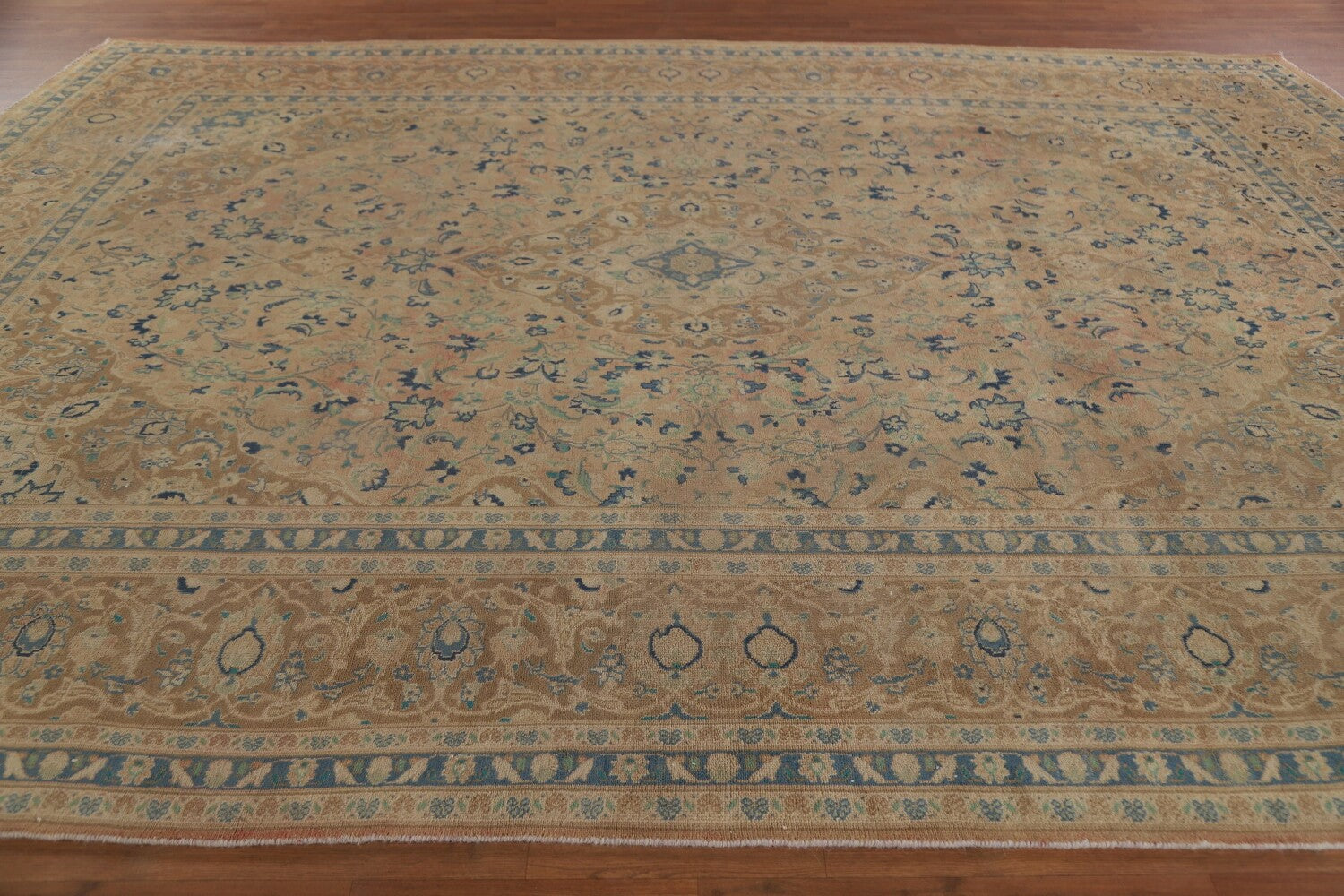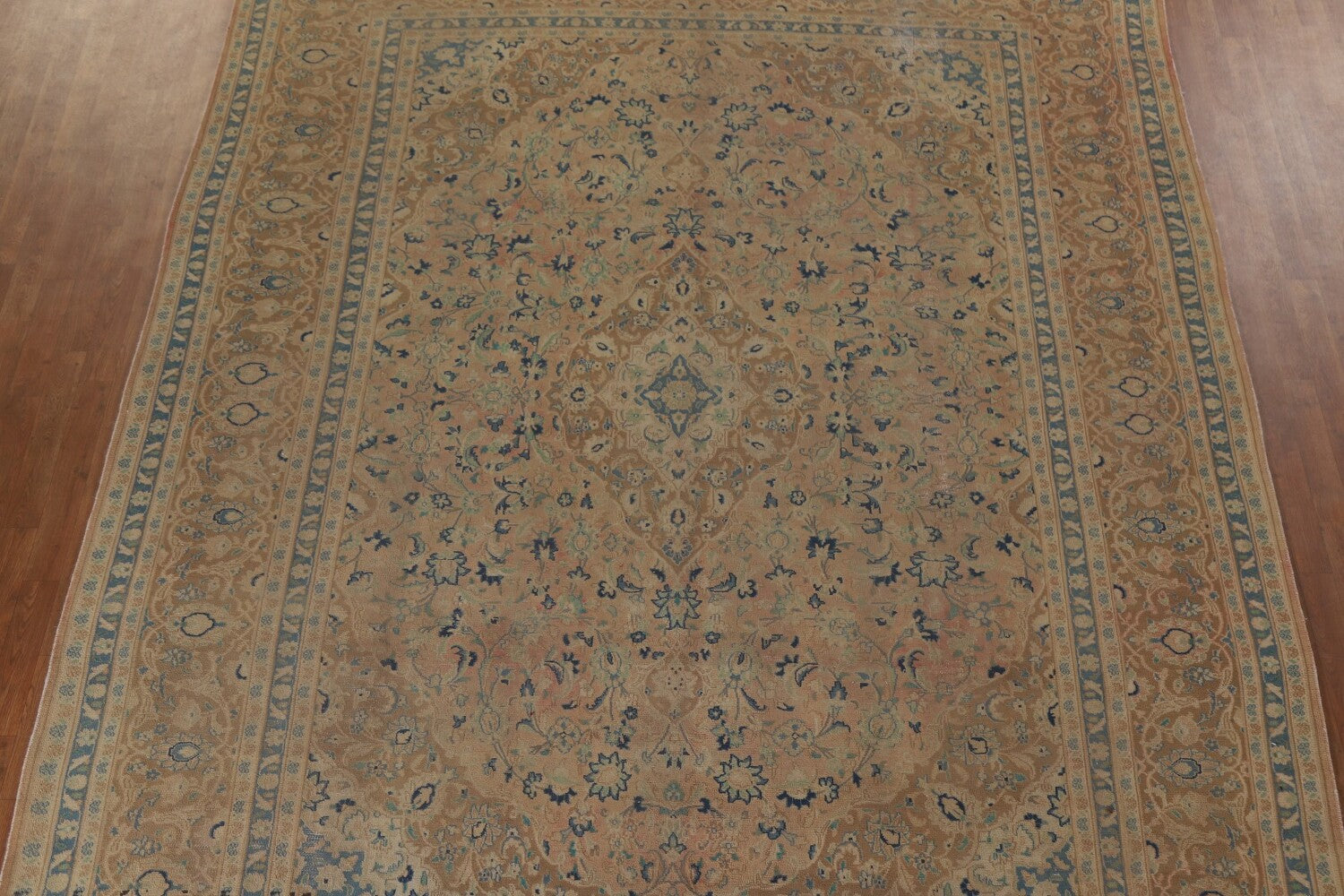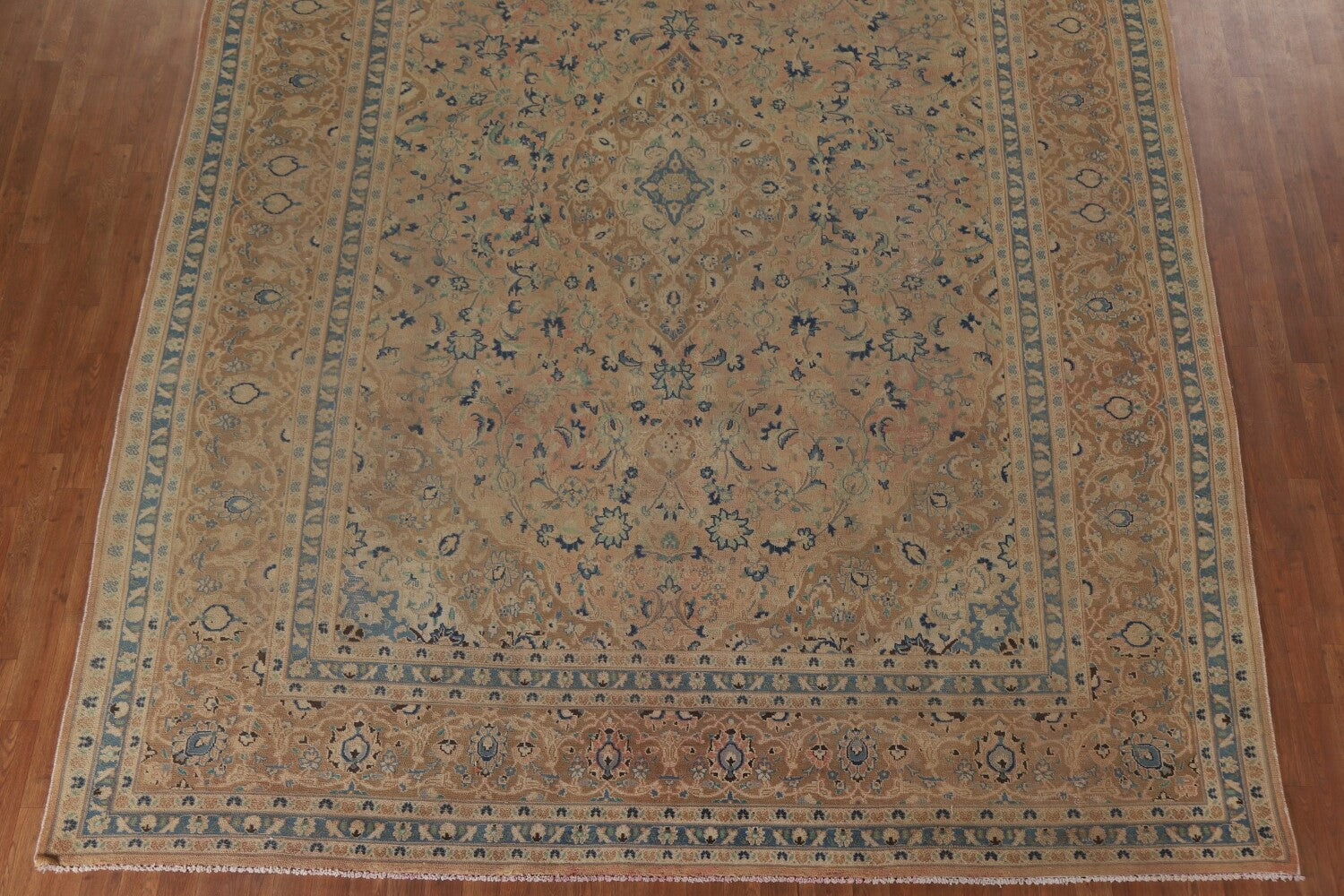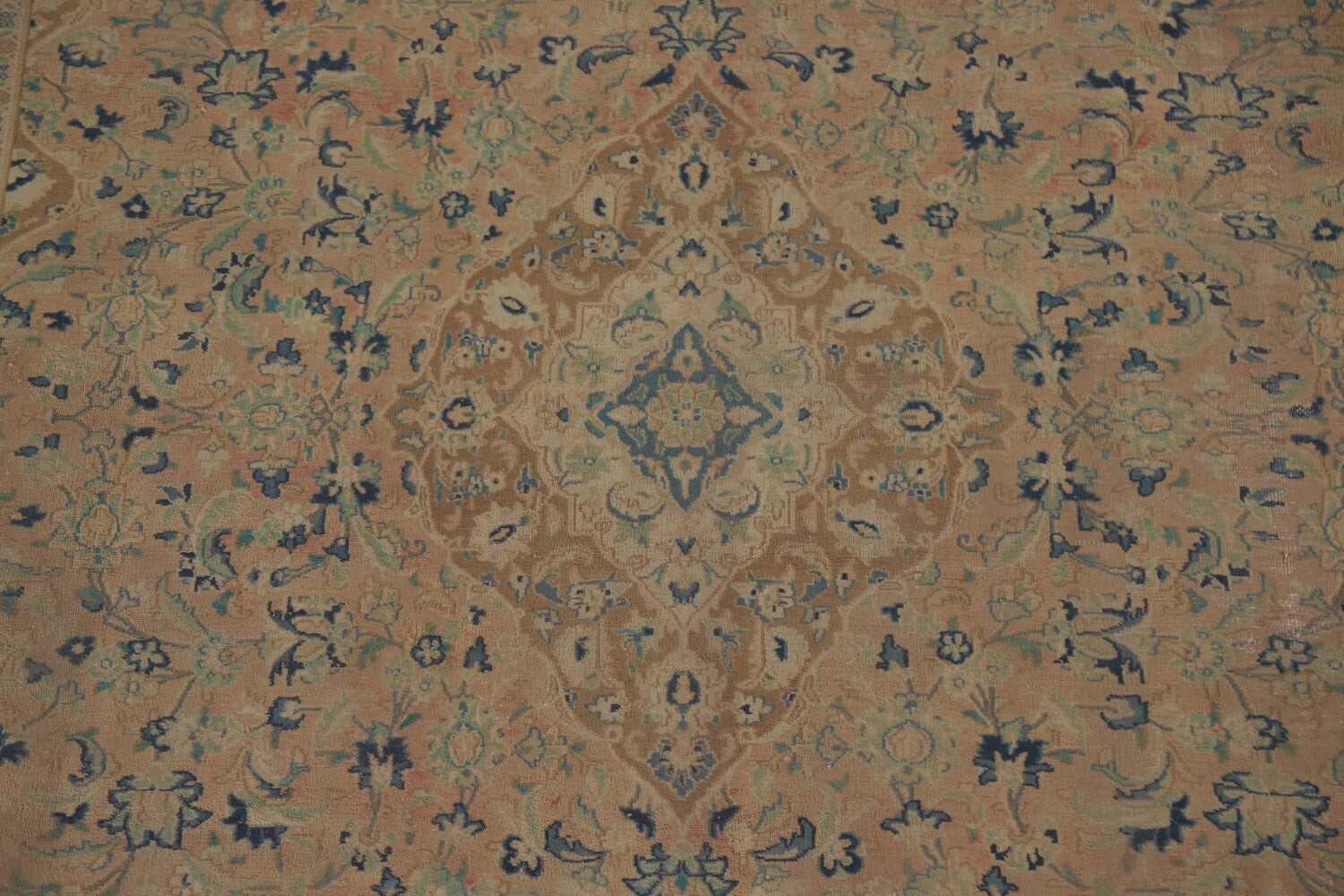 A Beautiful Genuine Persia ( Persia ) Mashad rug is Hand Knotted by skillful weavers in Persia ( Persia ) with 100% Wool Material. This rug is in Good (Low pile-Repair) condition. dimensions are 12' 8'' X 9' 7'' in foot and 386 X 292 in centimeter. the primary color is Pink.