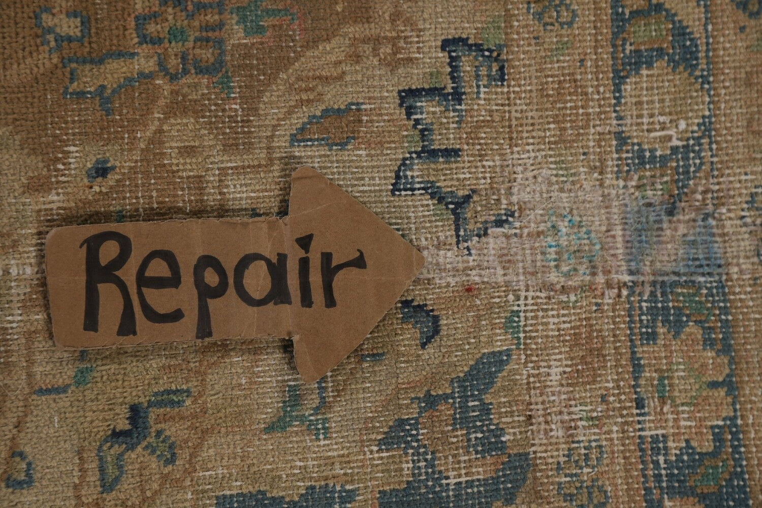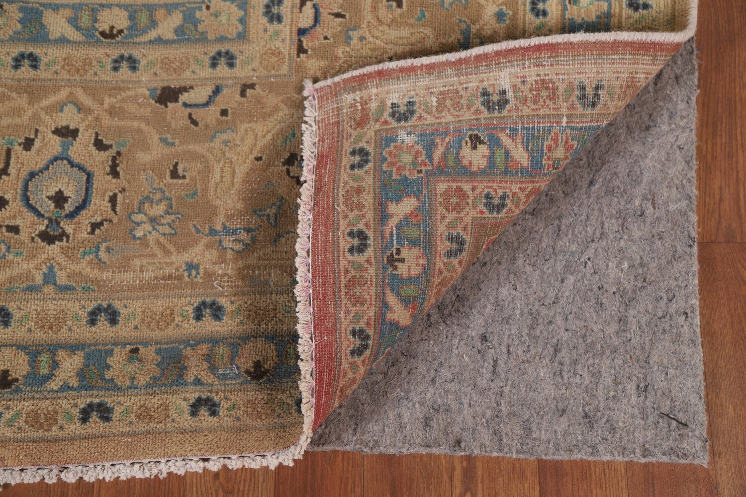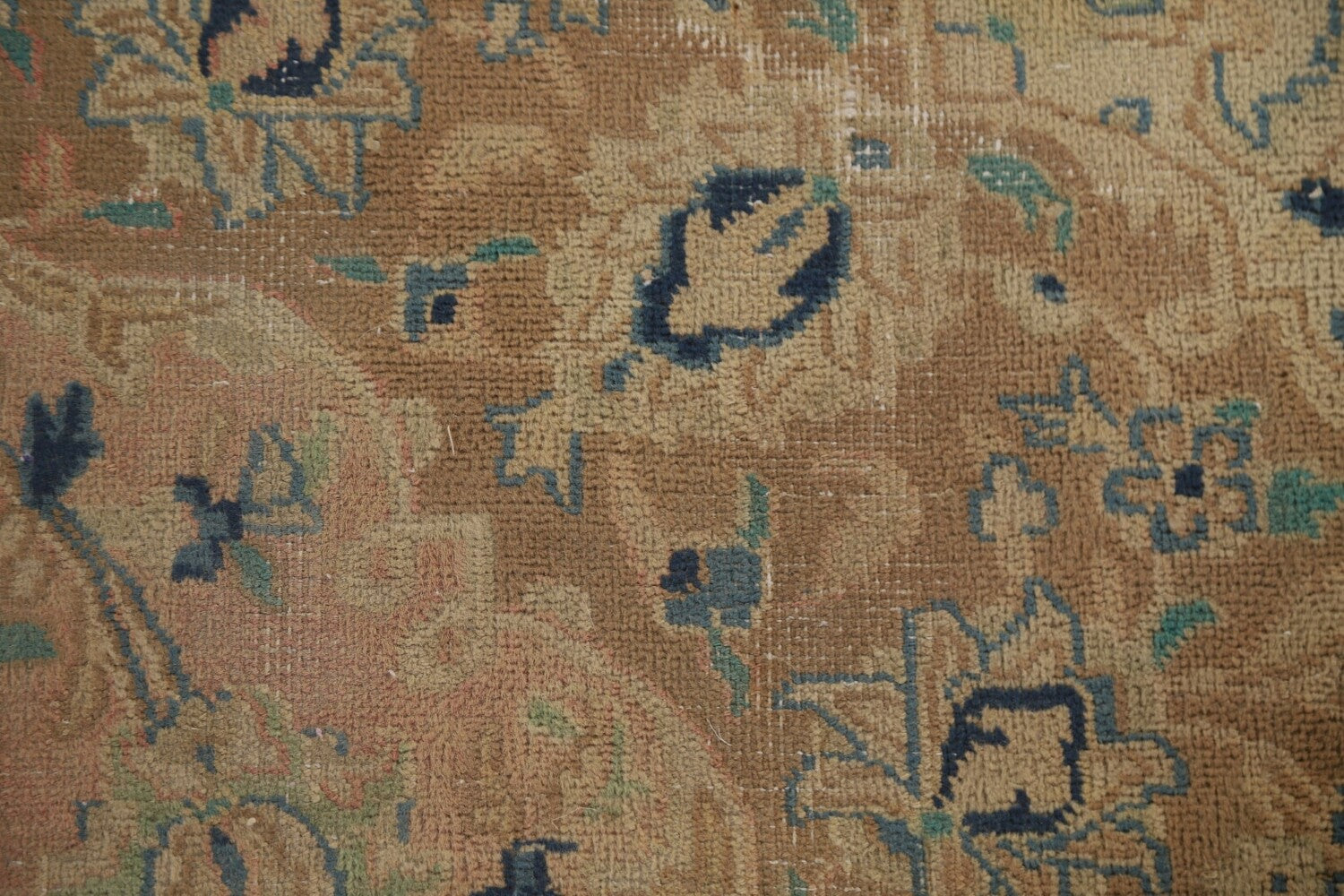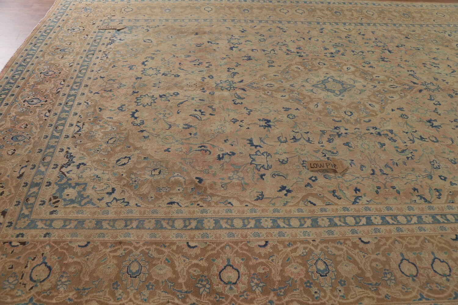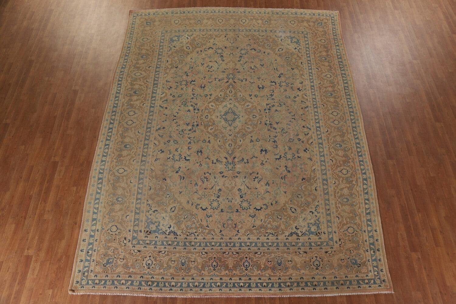 A Beautiful Genuine Persia ( Persia ) Mashad rug is Hand Knotted by skillful weavers in Persia ( Persia ) with 100% Wool Material. This rug is in Good (Low pile-Repair) condition. dimensions are 12' 8'' X 9' 7'' in foot and 386 X 292 in centimeter. the primary color is Pink.